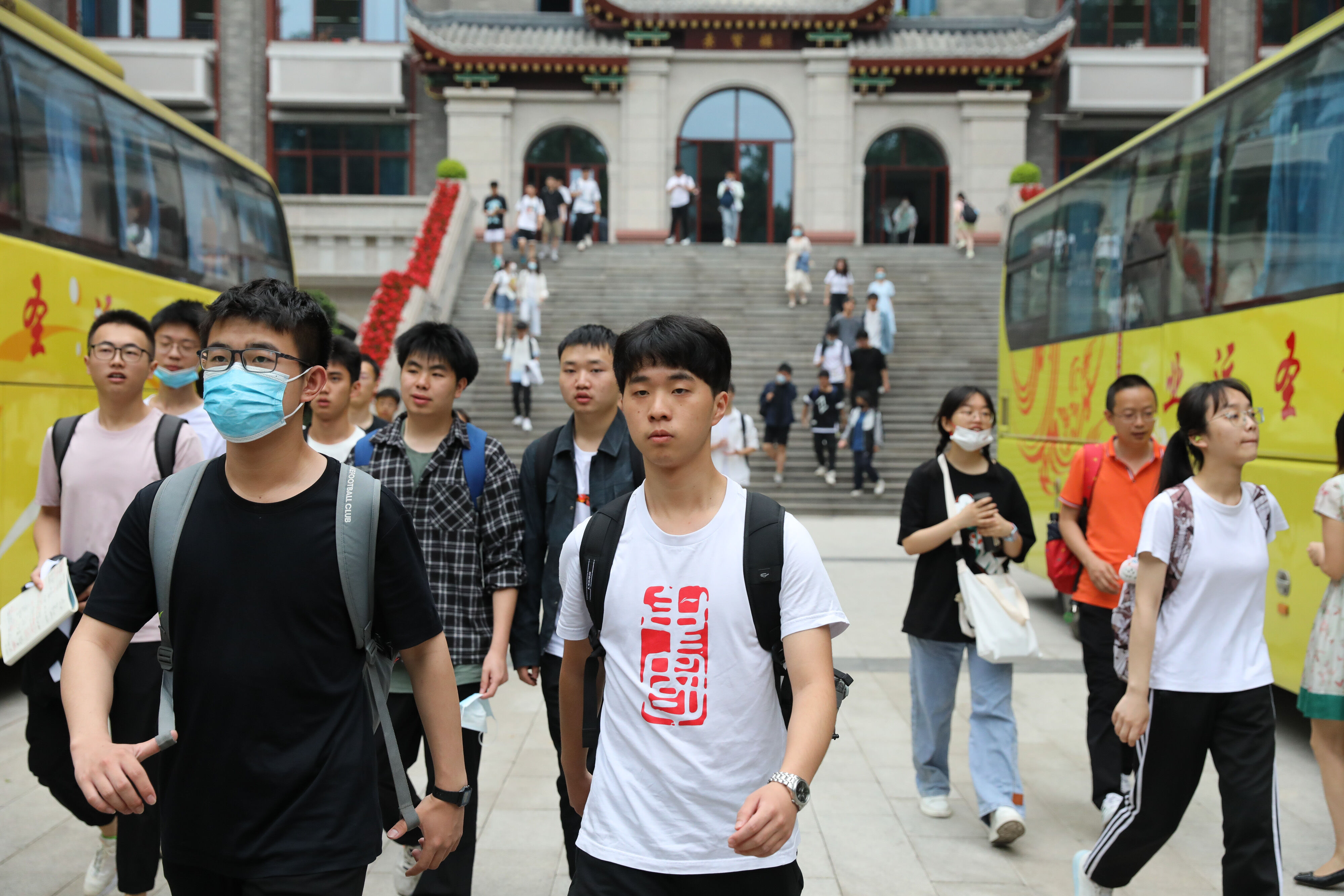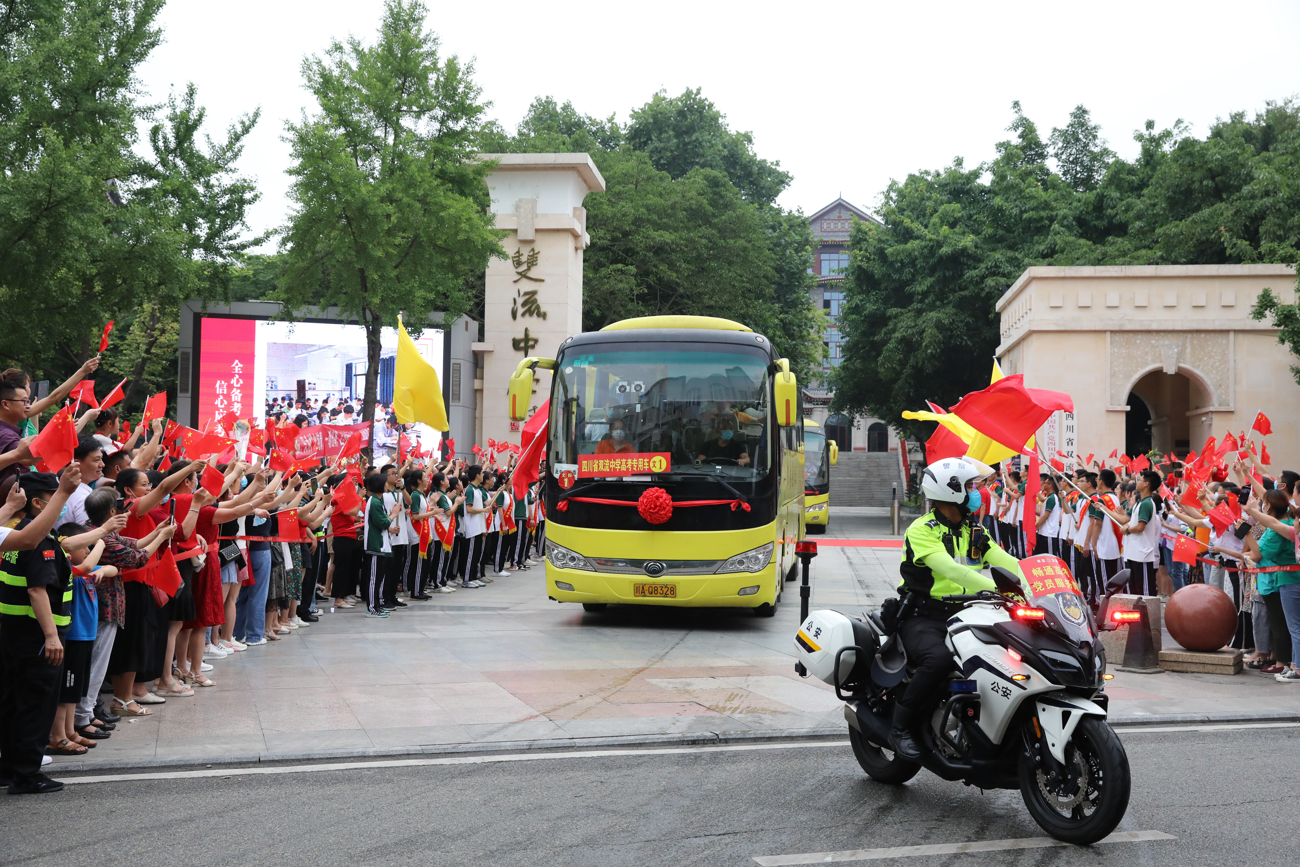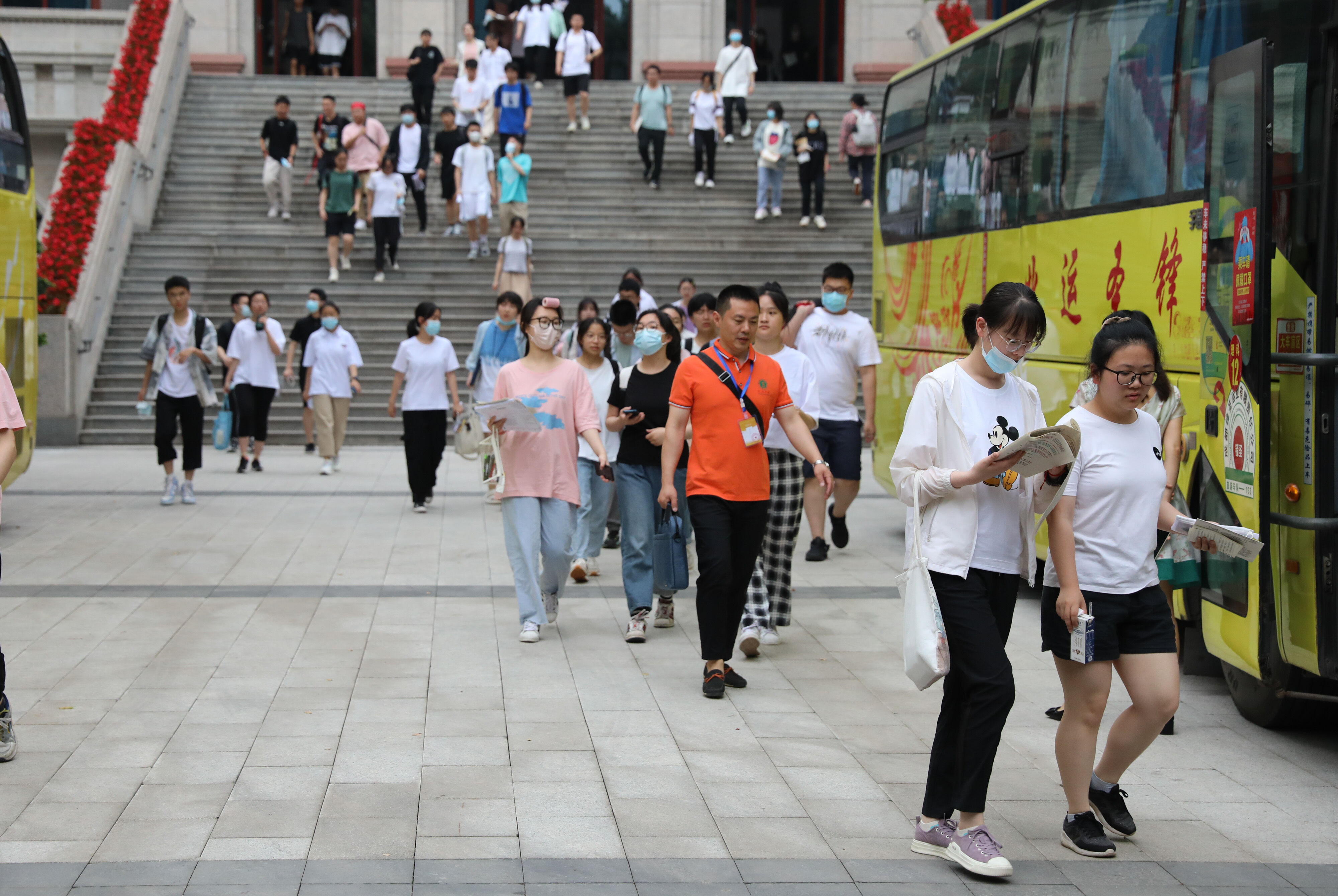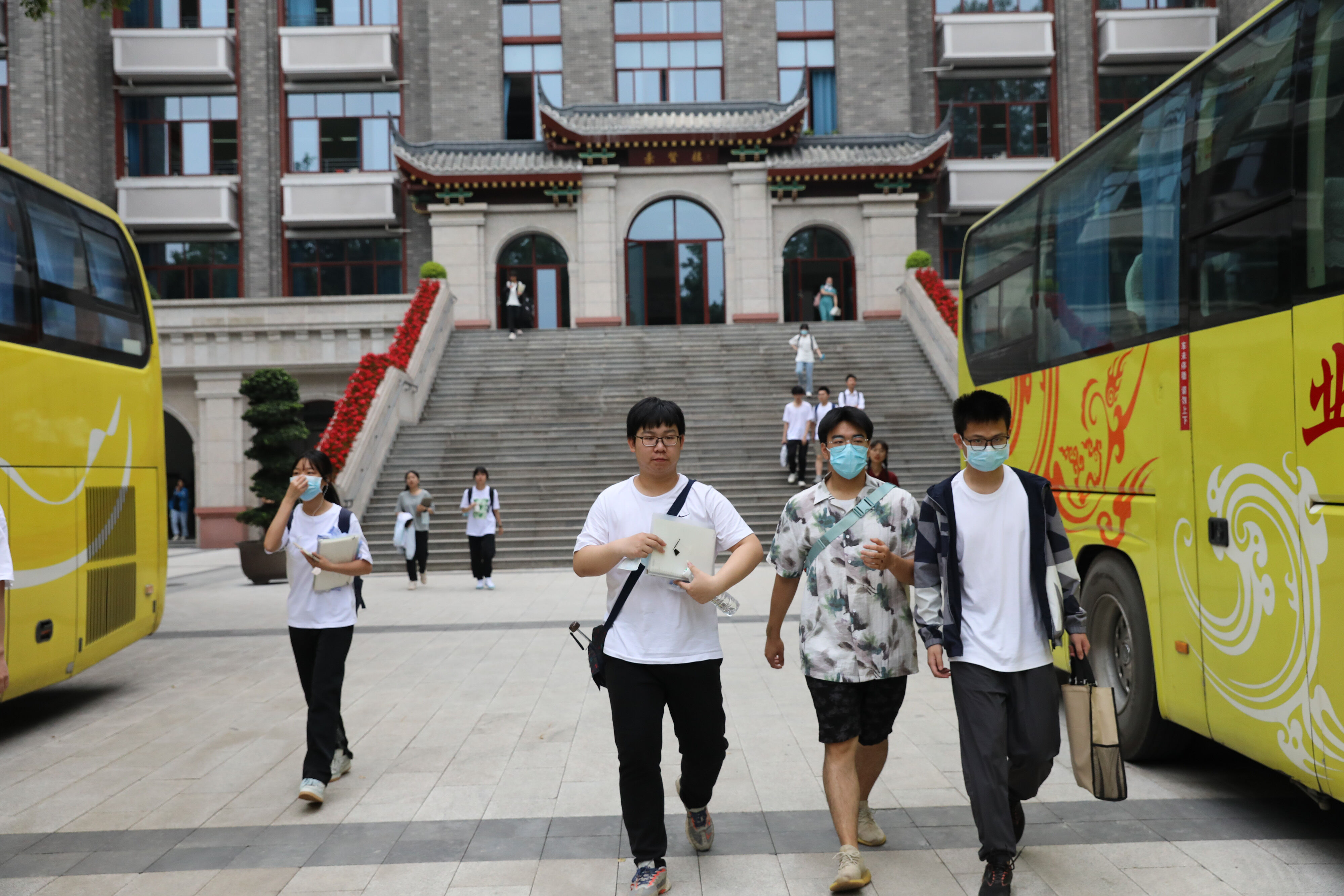2022年6月8日早上,高三的學(xué)生陸續(xù)走出景賢樓,準(zhǔn)備乘大巴出發(fā),前往考場
