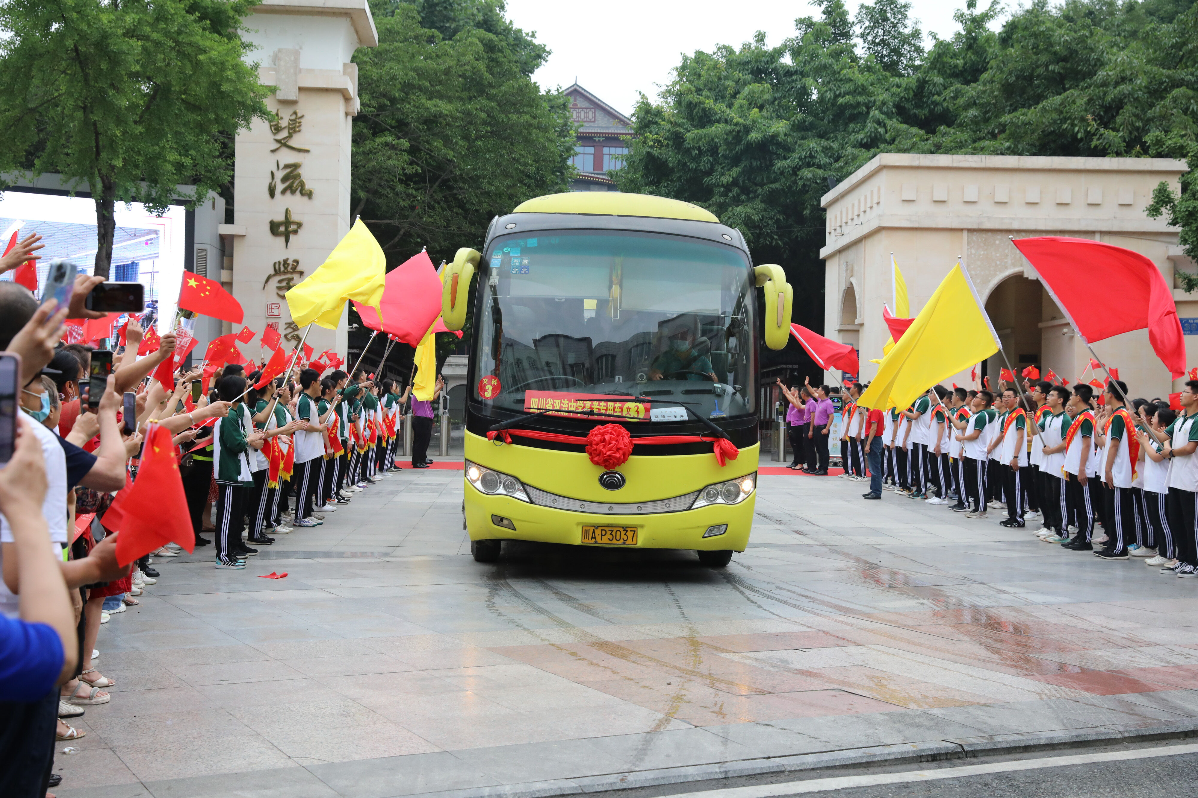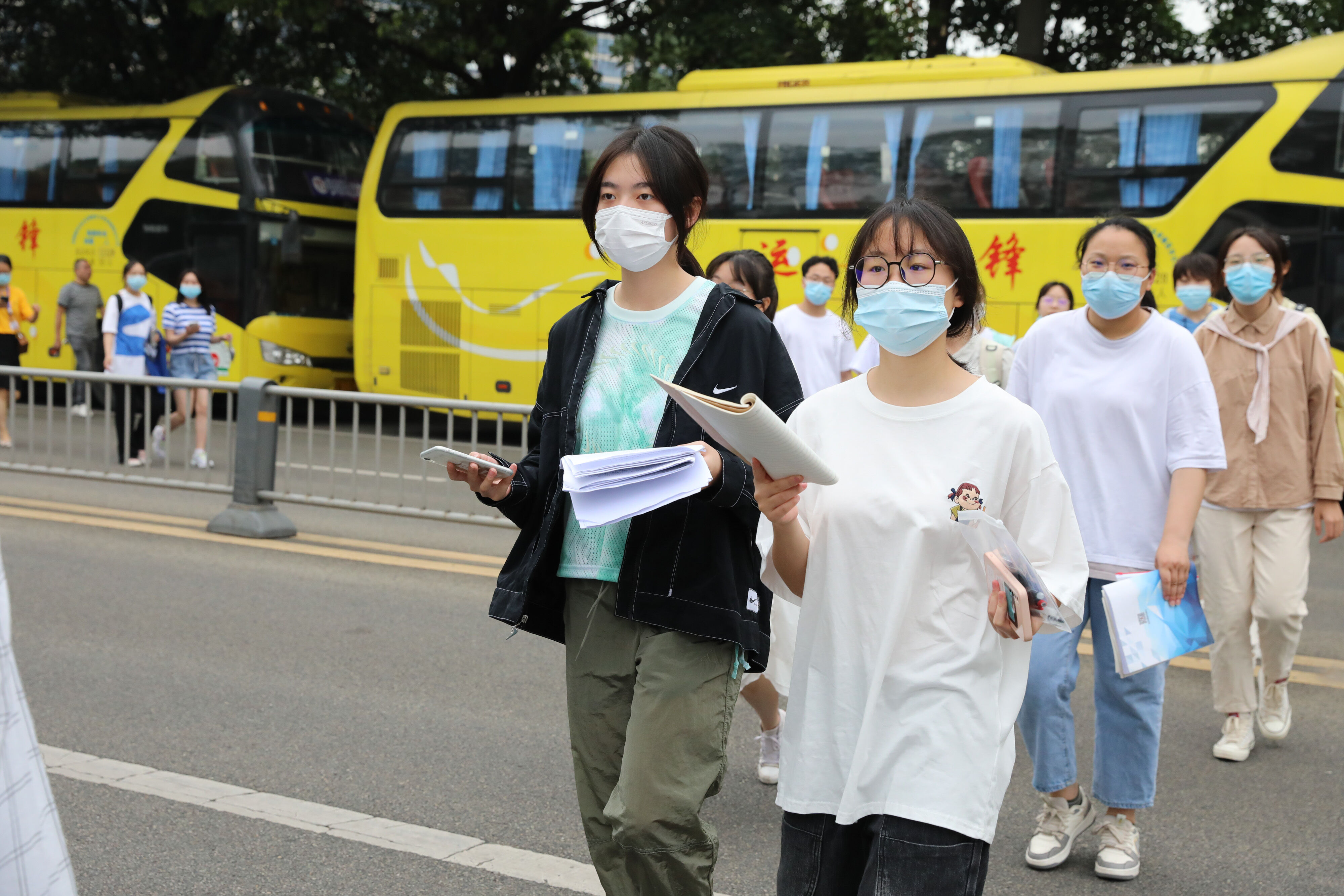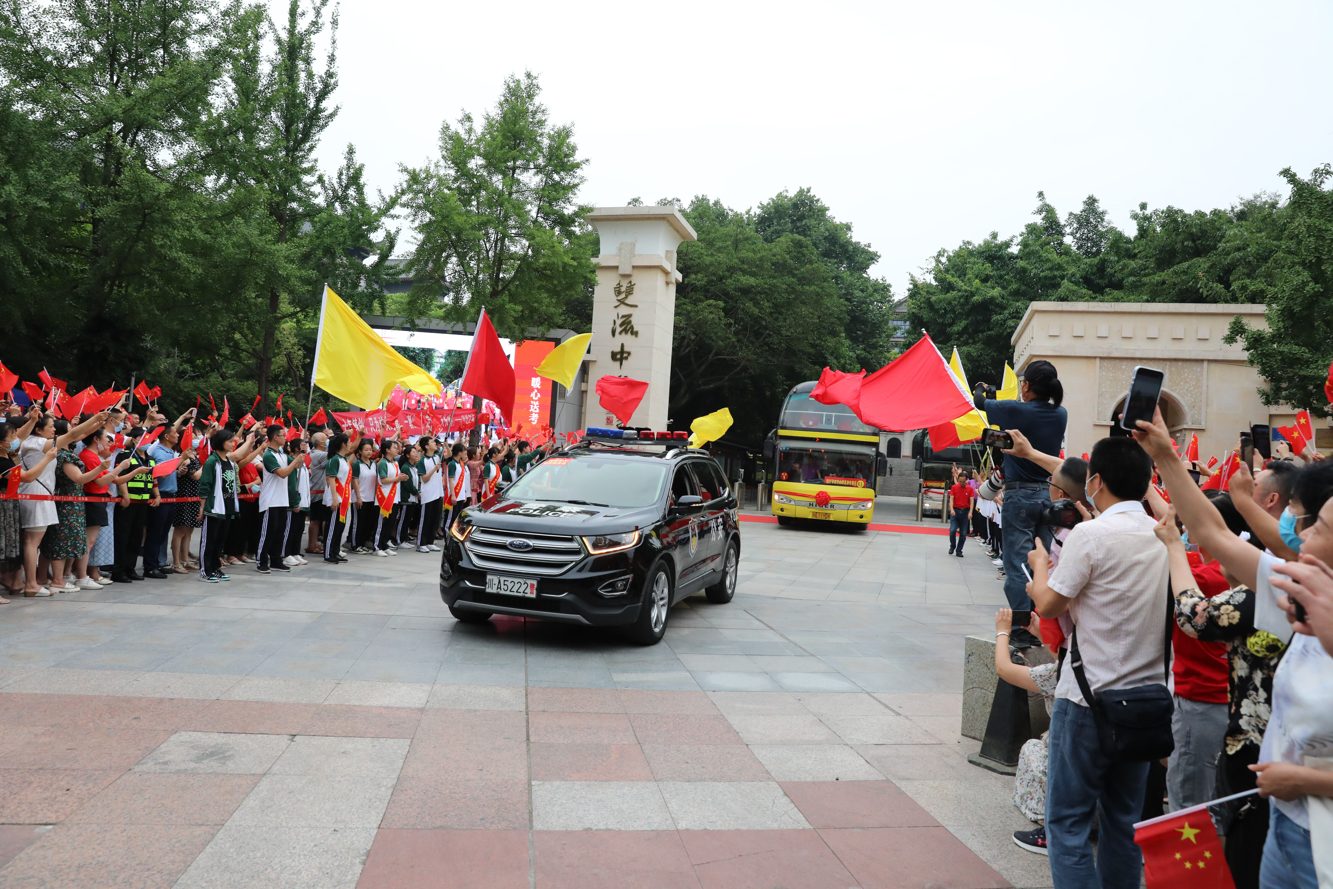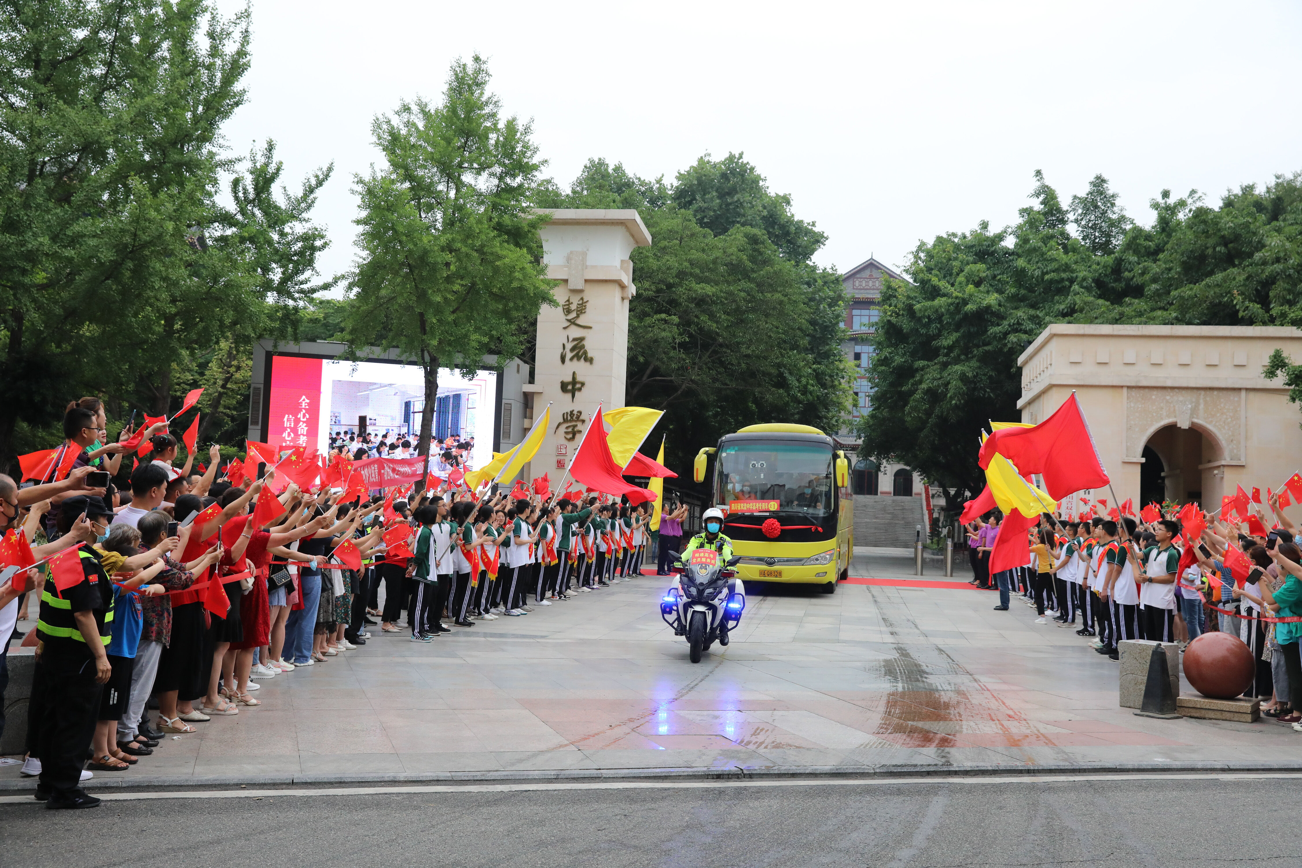 2022年6月8日早上,高三的學(xué)生陸續(xù)走出景賢樓,準(zhǔn)備乘大巴出發(fā),前往考場