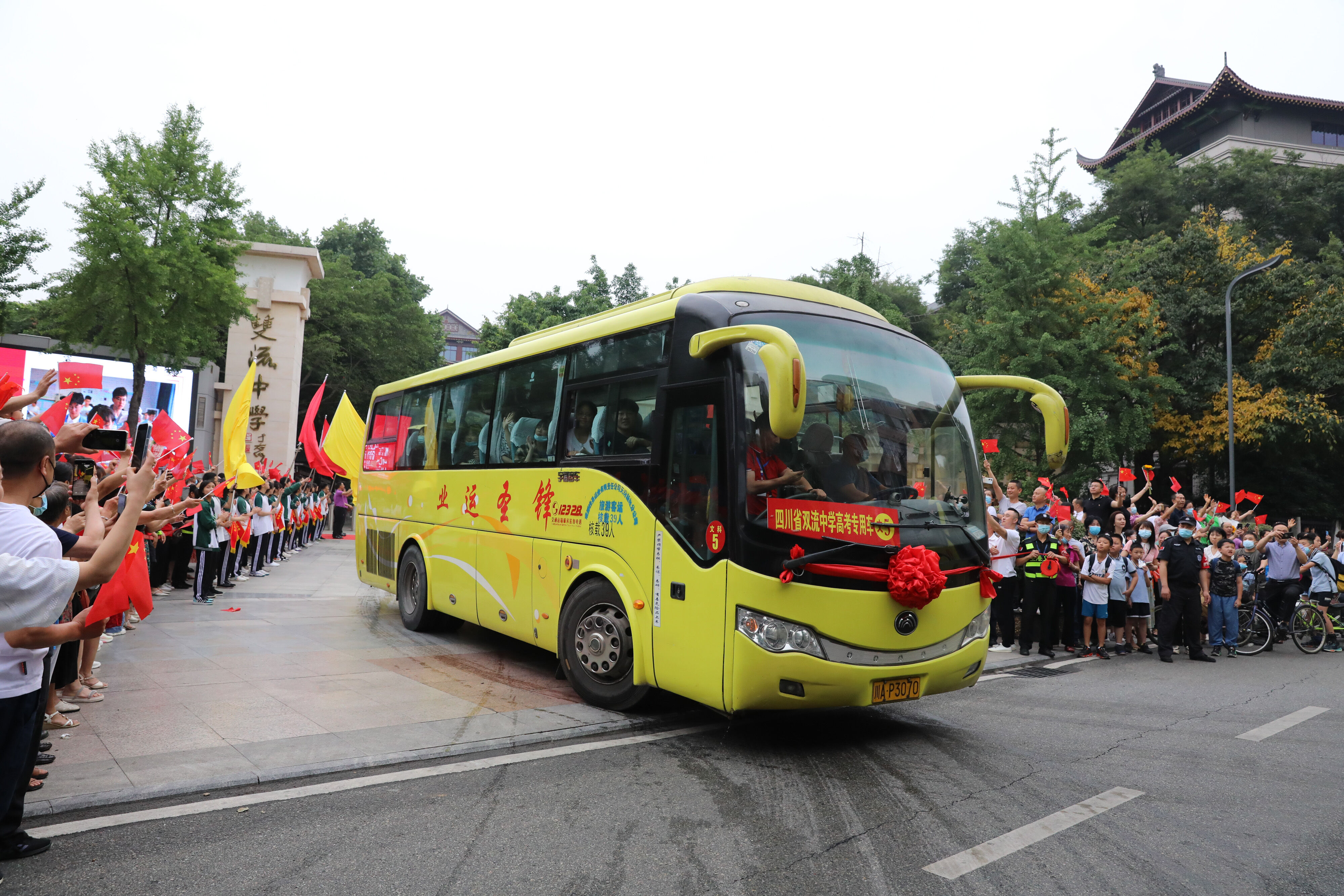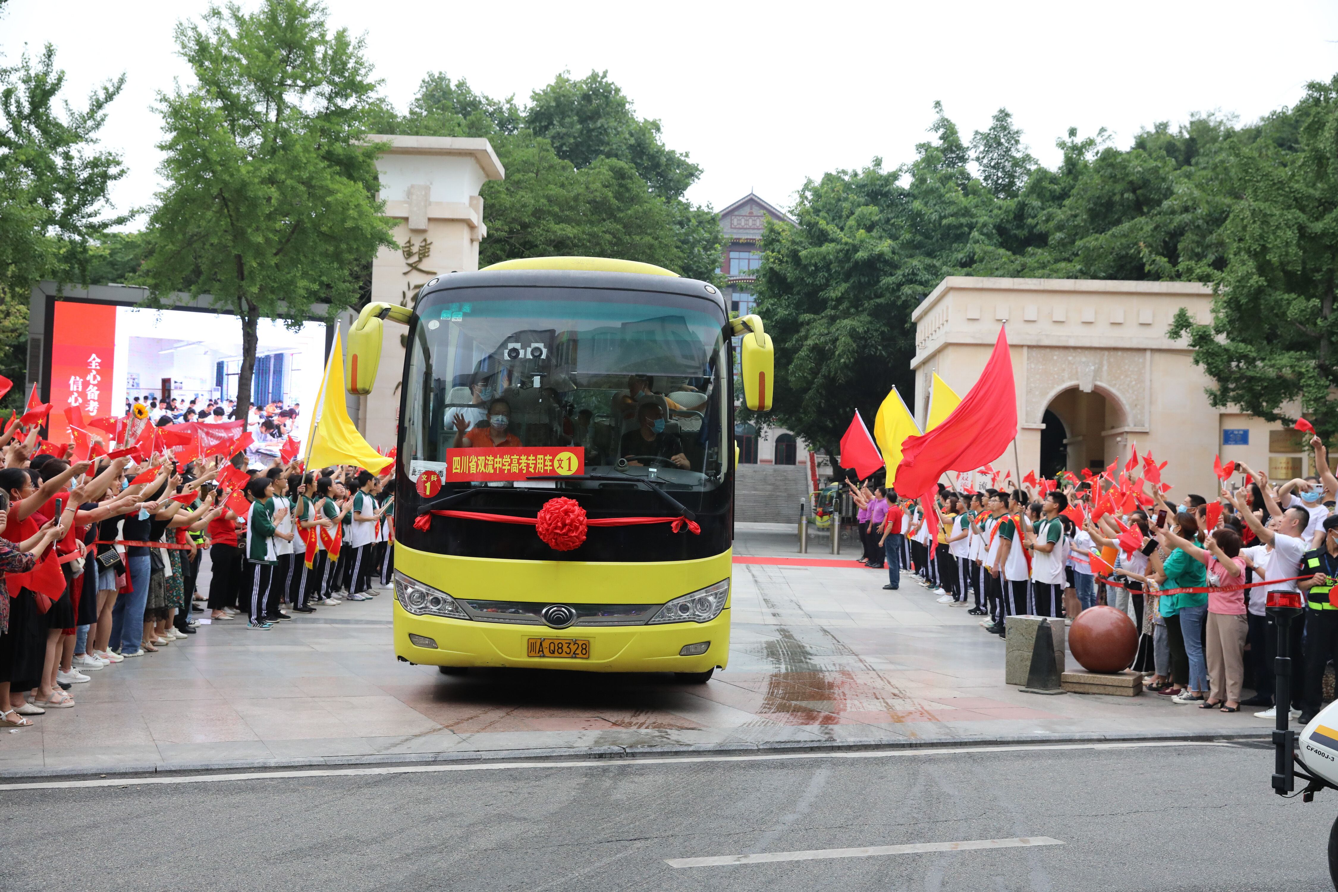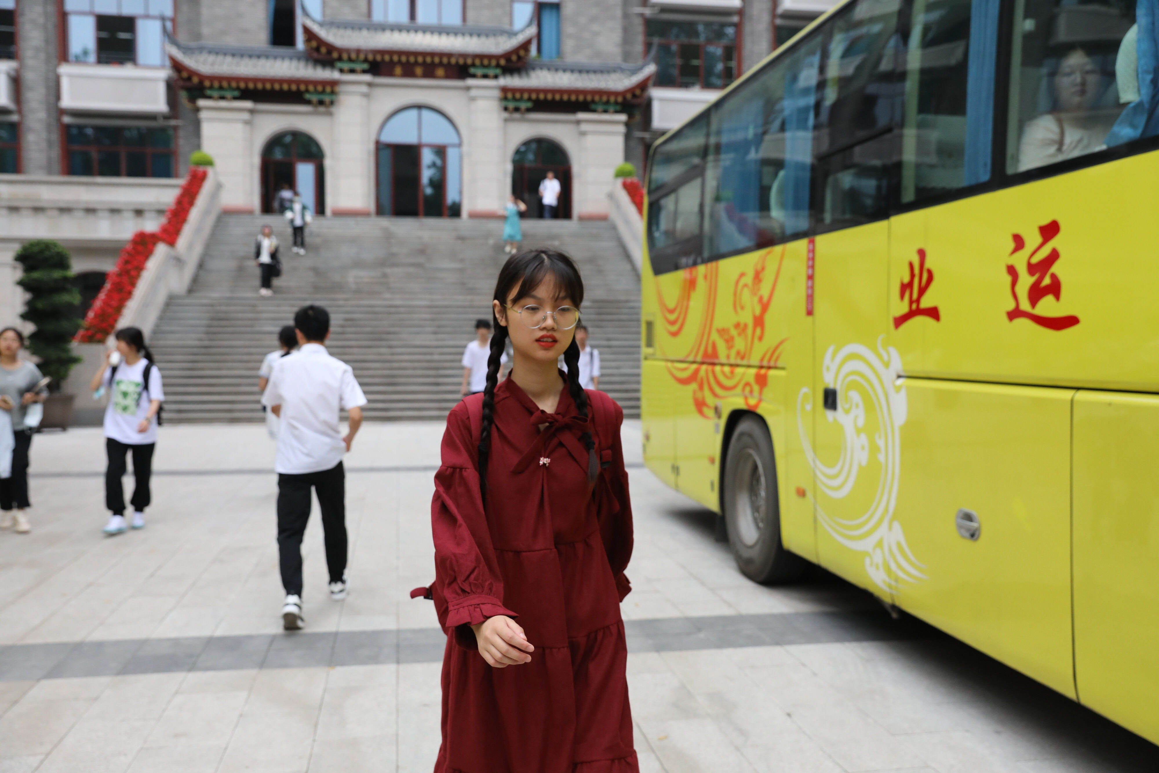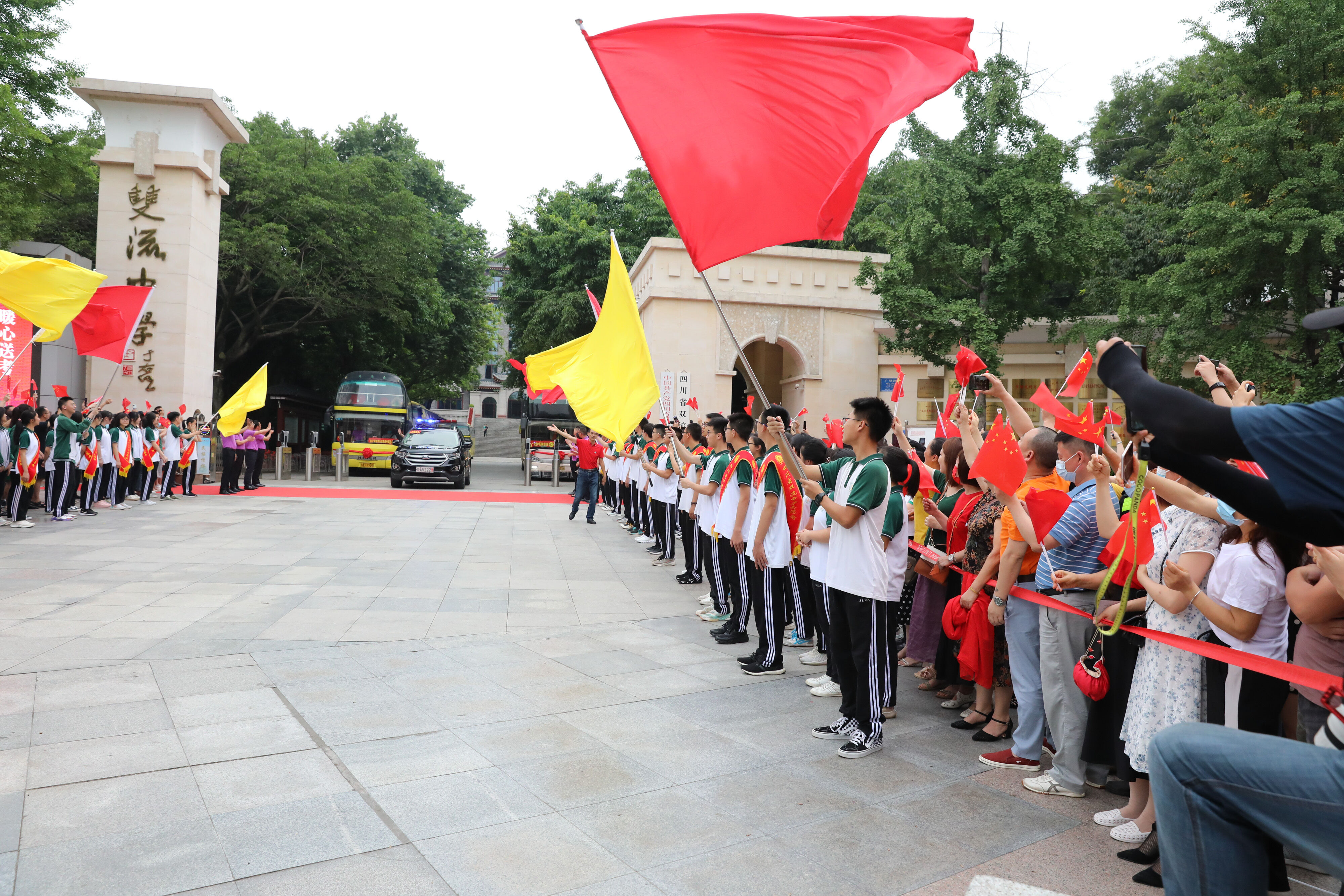 2022年6月8日早上,高三的學(xué)生陸續(xù)走出景賢樓,準(zhǔn)備乘大巴出發(fā),前往考場