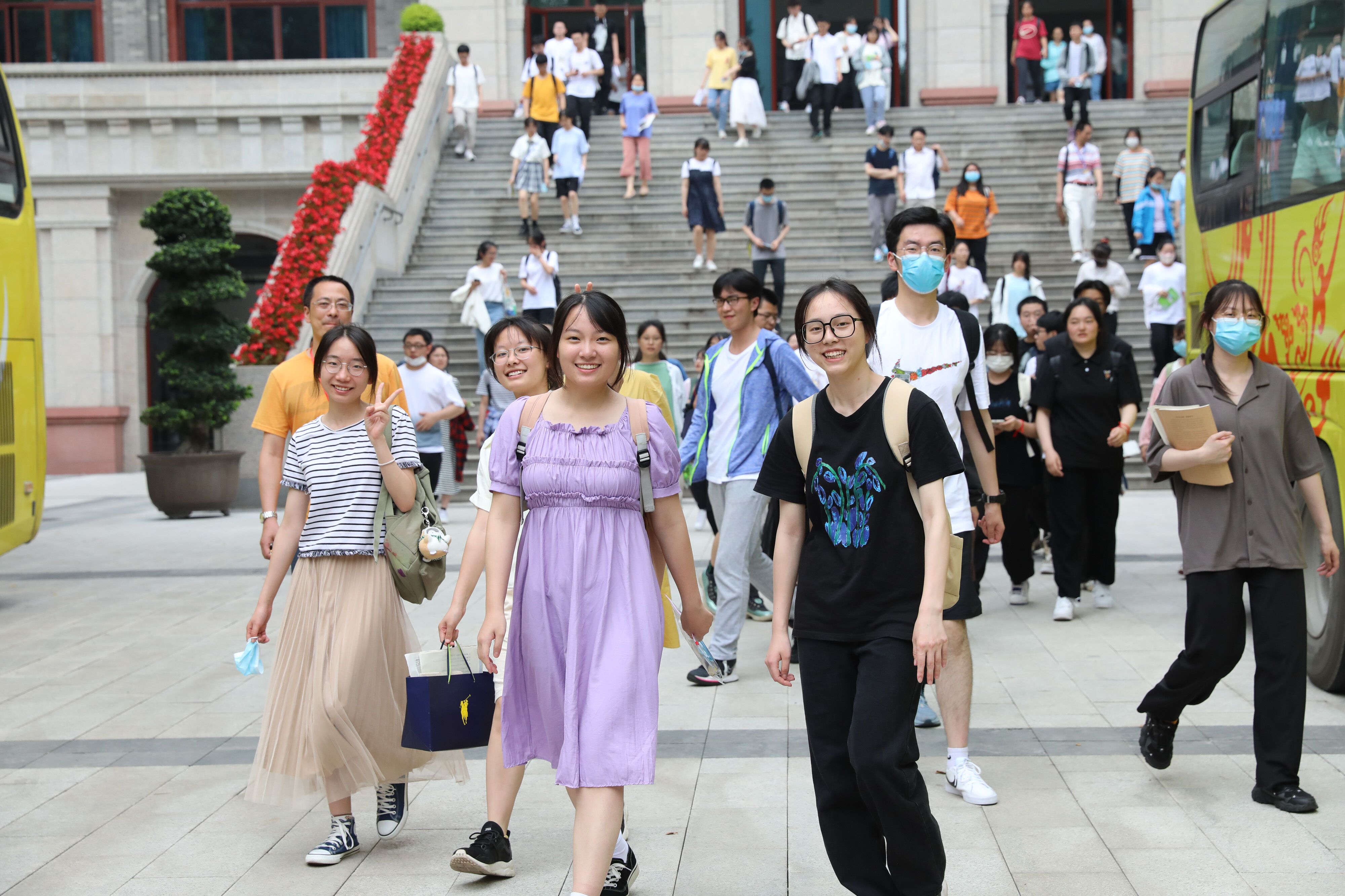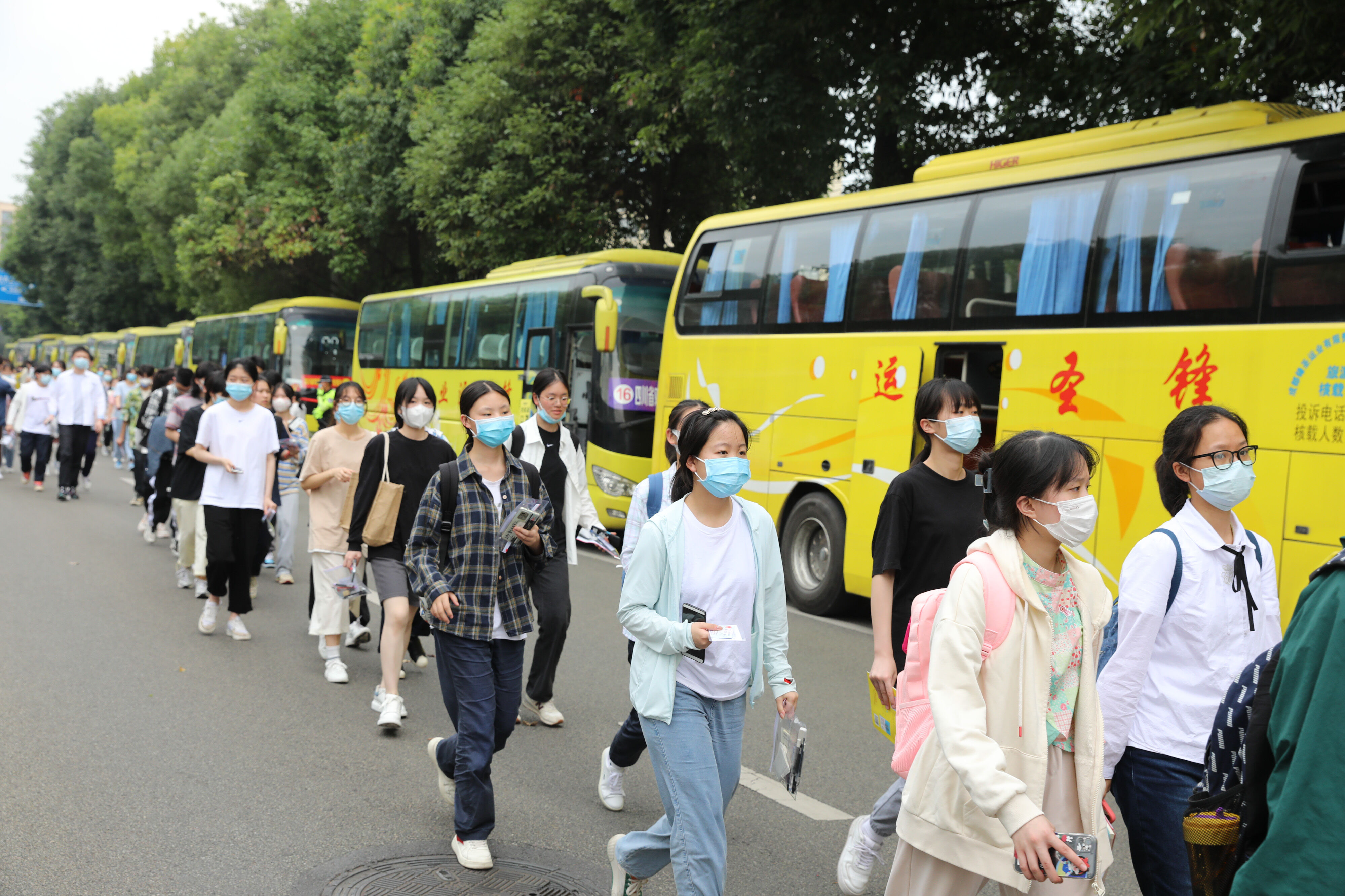 2022年6月8日下午,高考第二天。雙流中學(xué)的高三考生陸續(xù)走出教學(xué)樓,準(zhǔn)備考試專用大巴車去參加今年高考的最后一堂外語科的考試。同學(xué)們有說有笑,心情不錯(cuò),應(yīng)該會(huì)考個(gè)好成績!