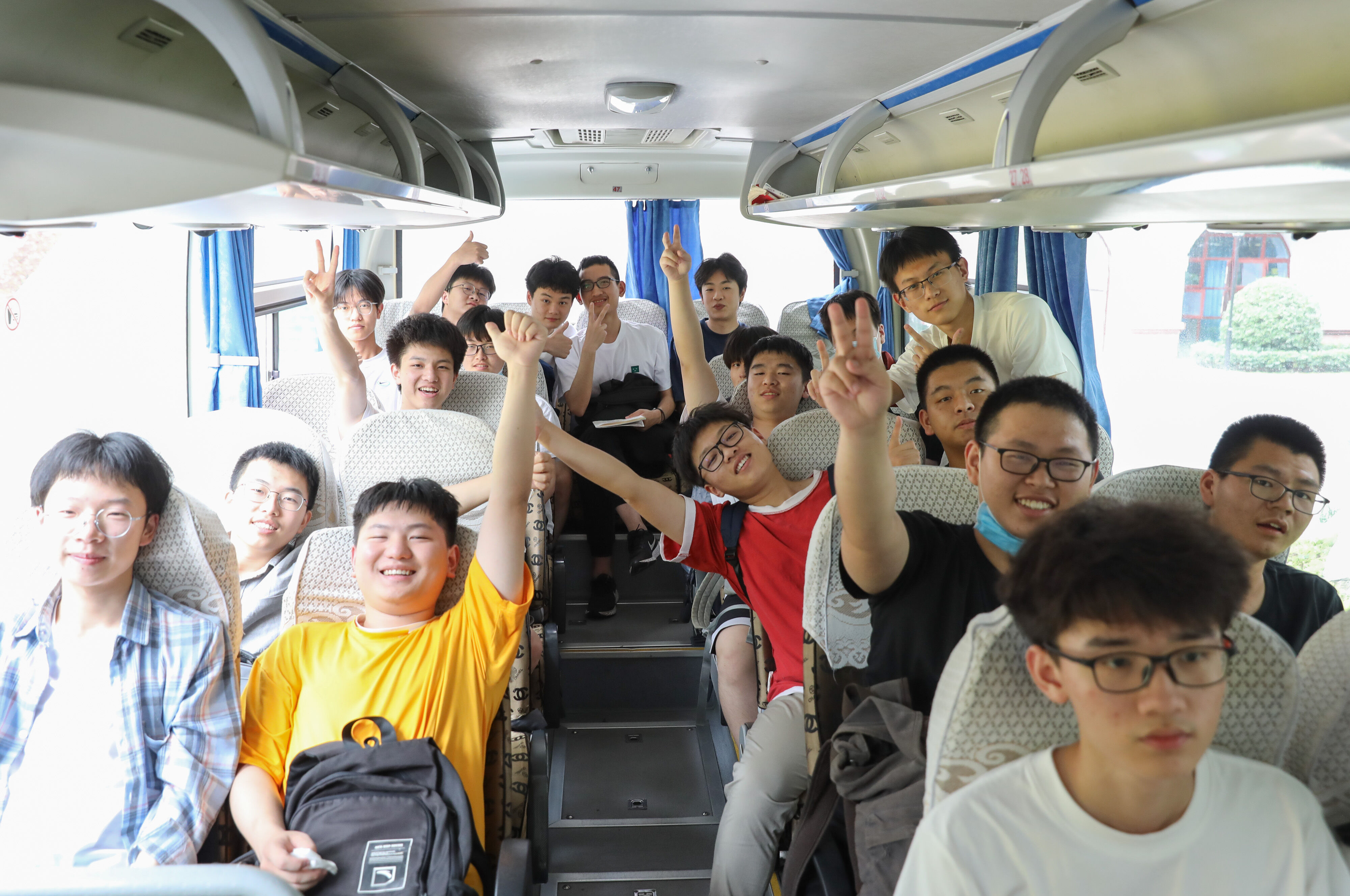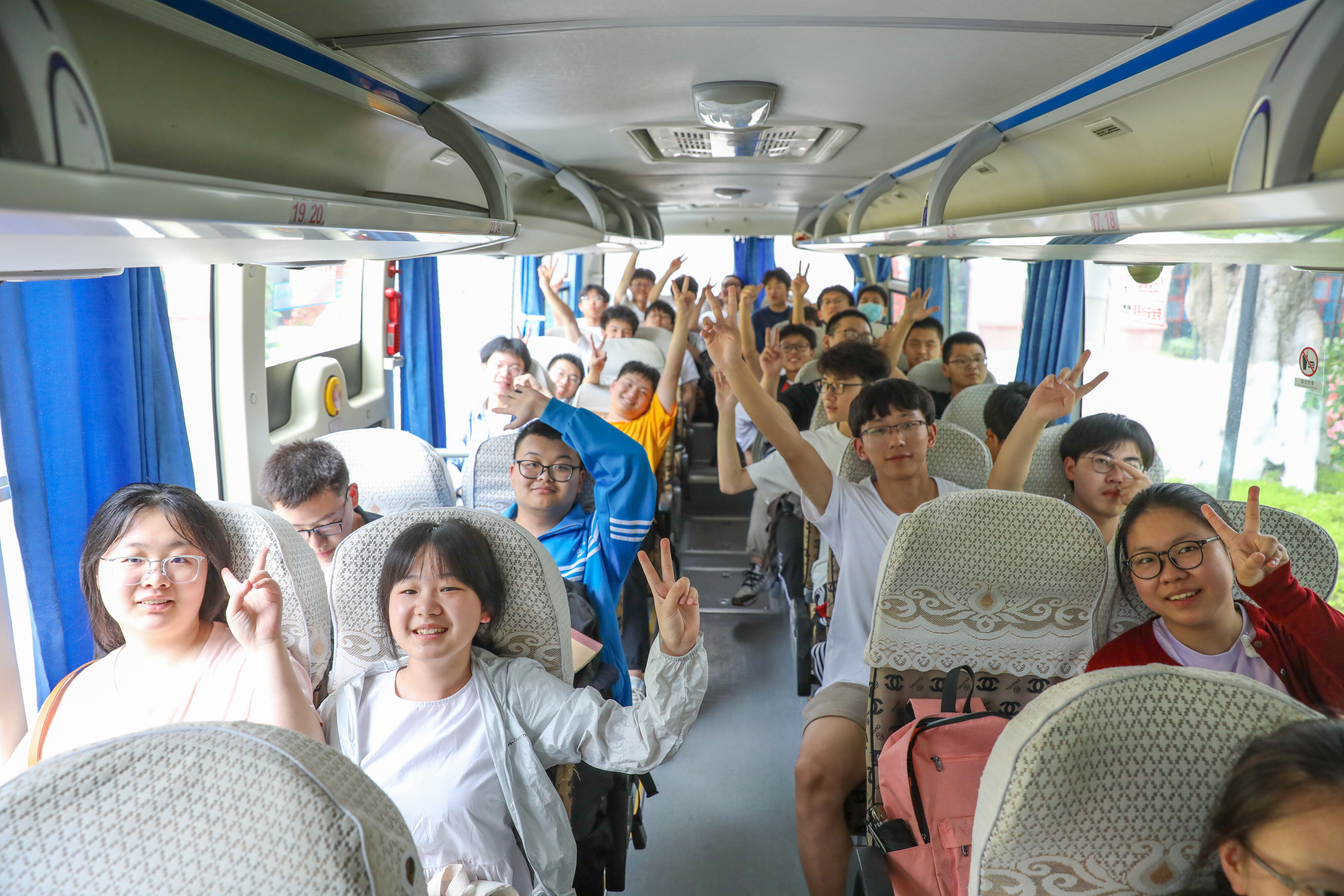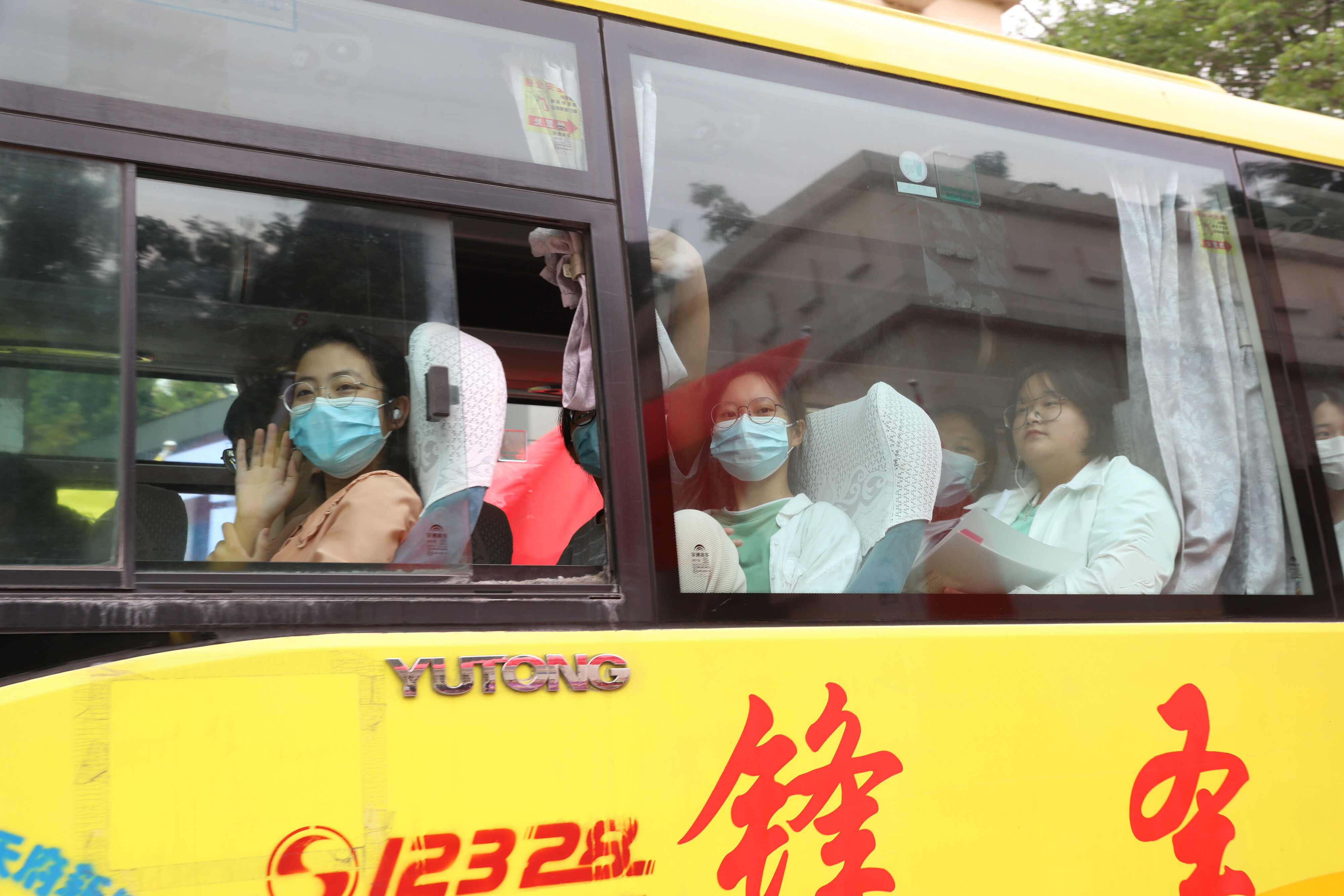 2022年6月8日下午,高考第二天,高三學(xué)生坐上大巴,準(zhǔn)備前往考點(diǎn)參加最后一堂外語考試。