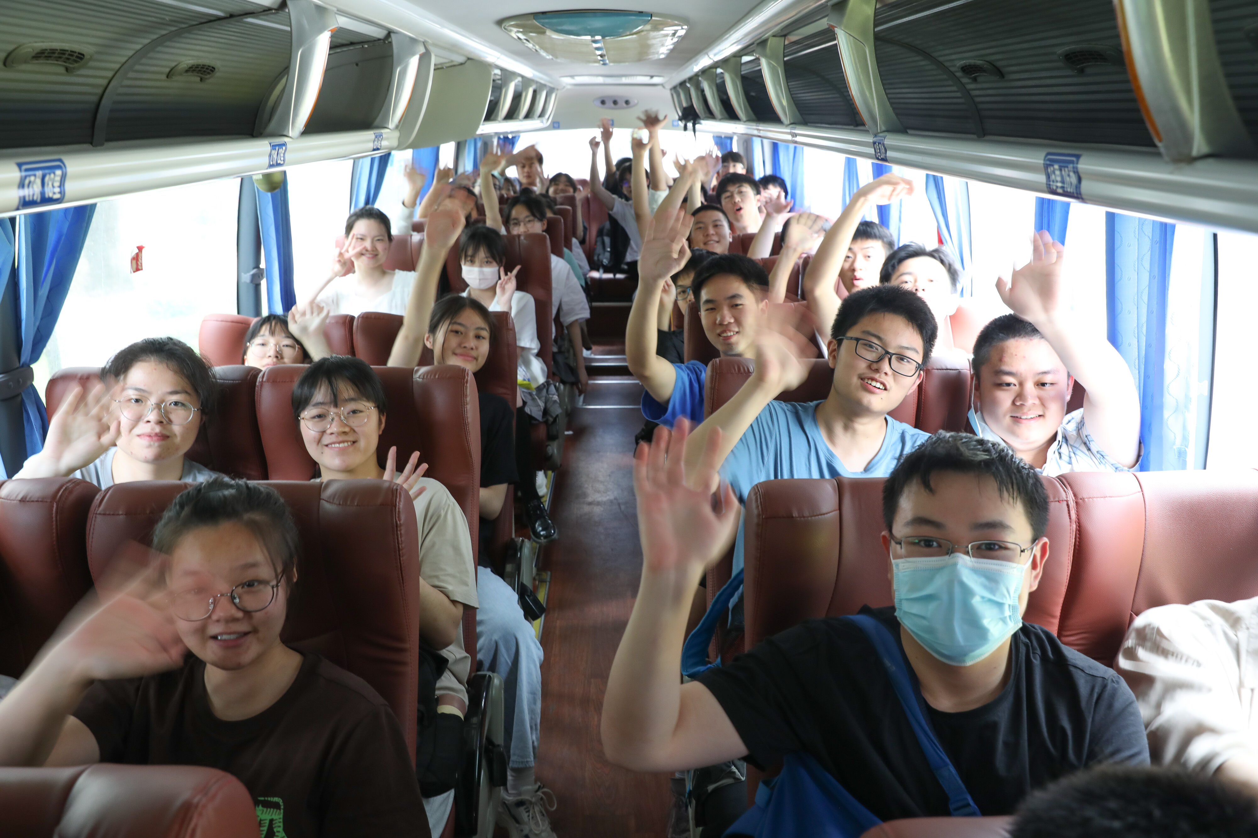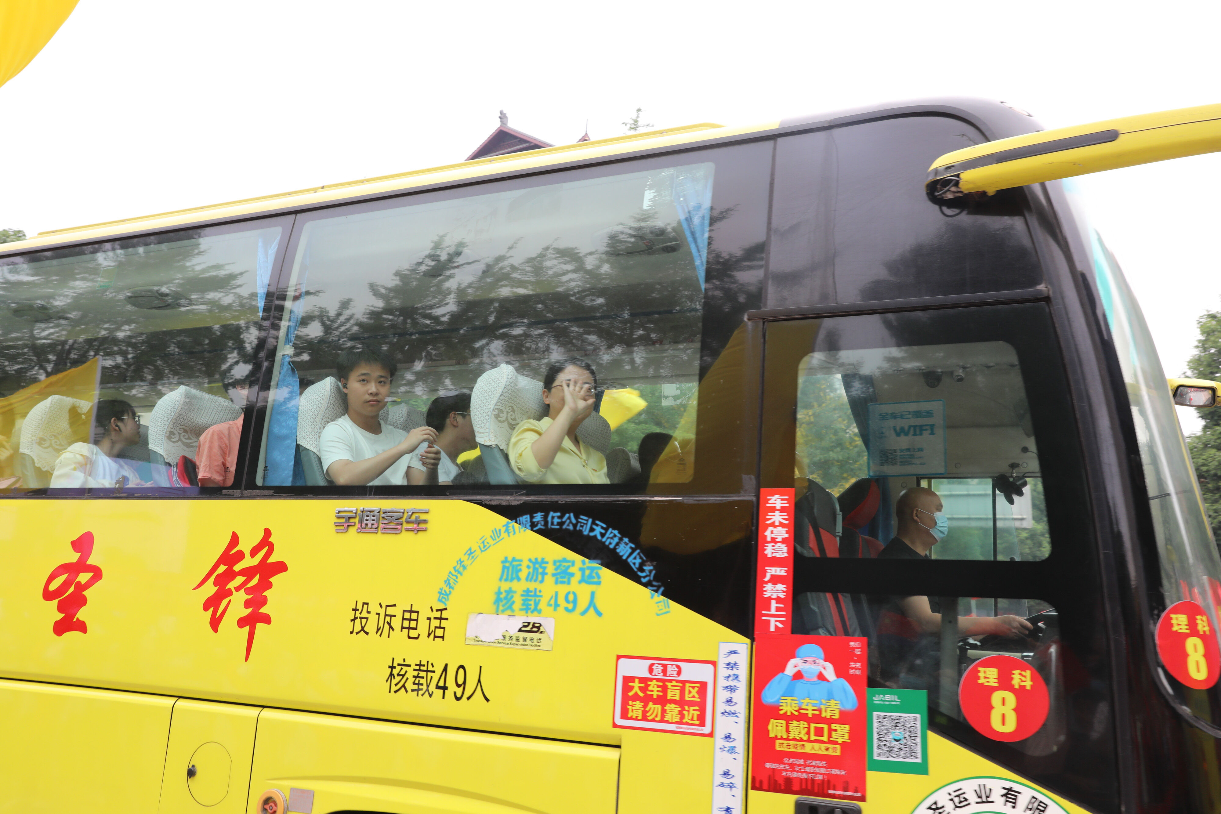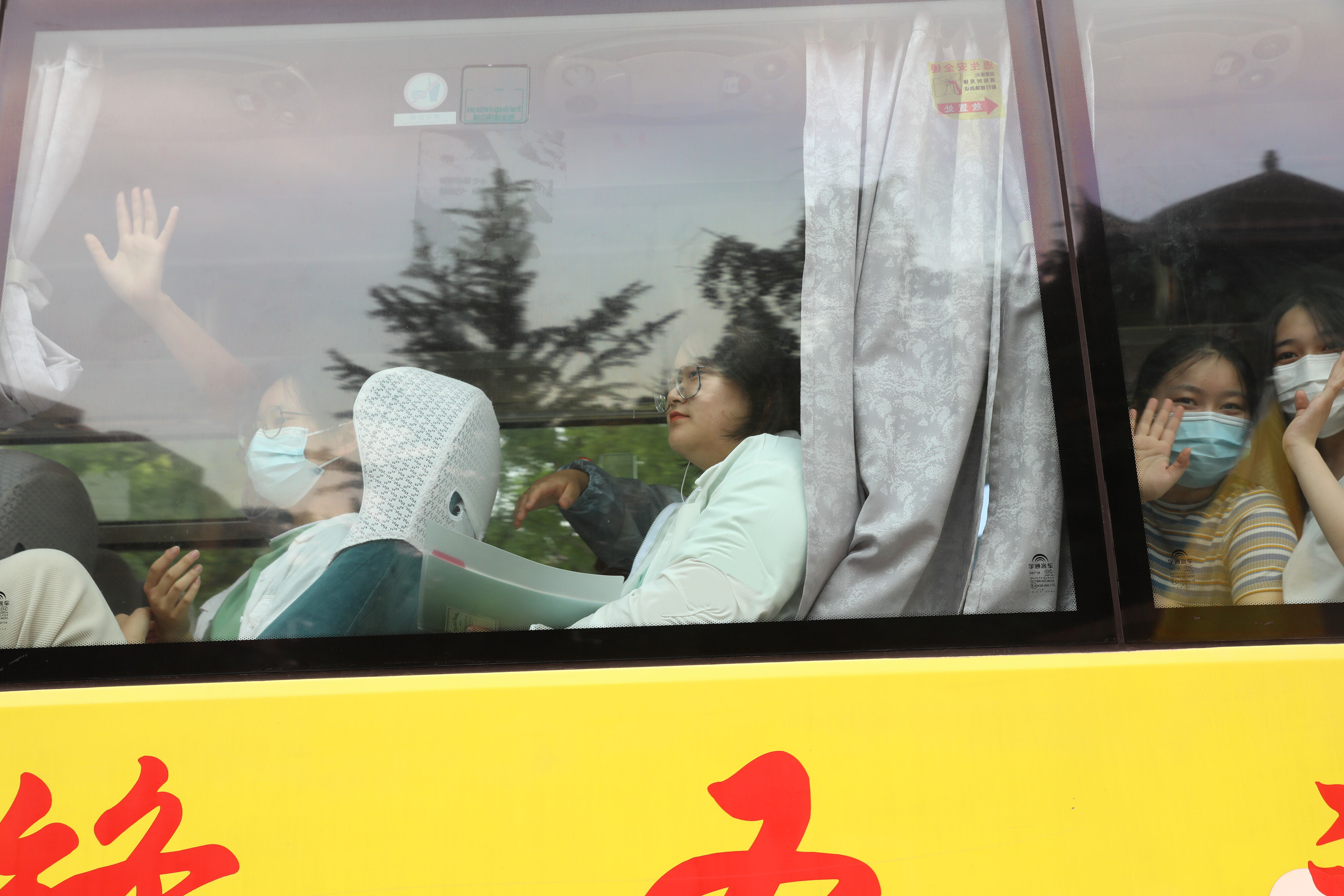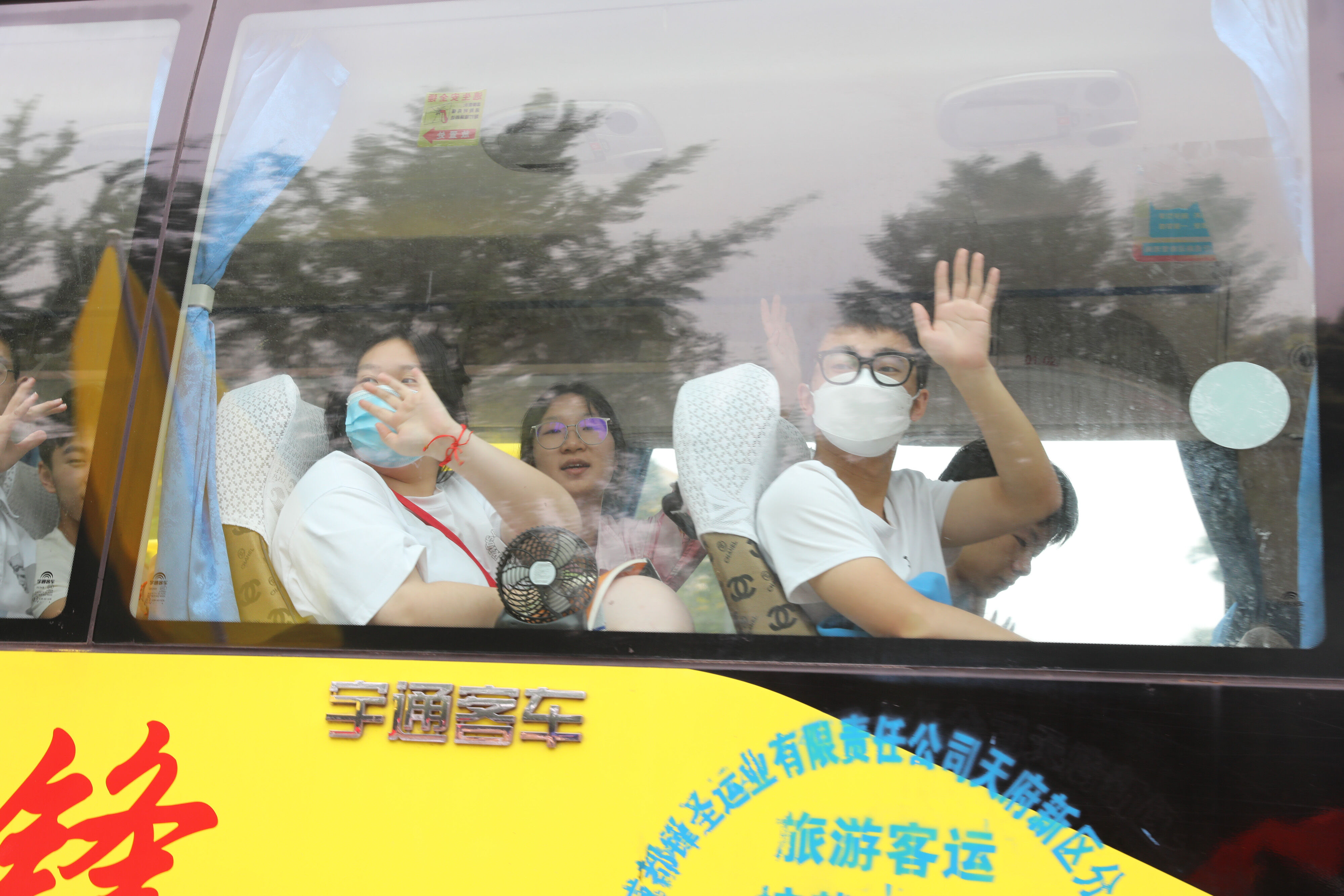 2022年6月8日下午,高考第二天,高三學(xué)生坐上大巴,準(zhǔn)備前往考點(diǎn)參加最后一堂外語考試。