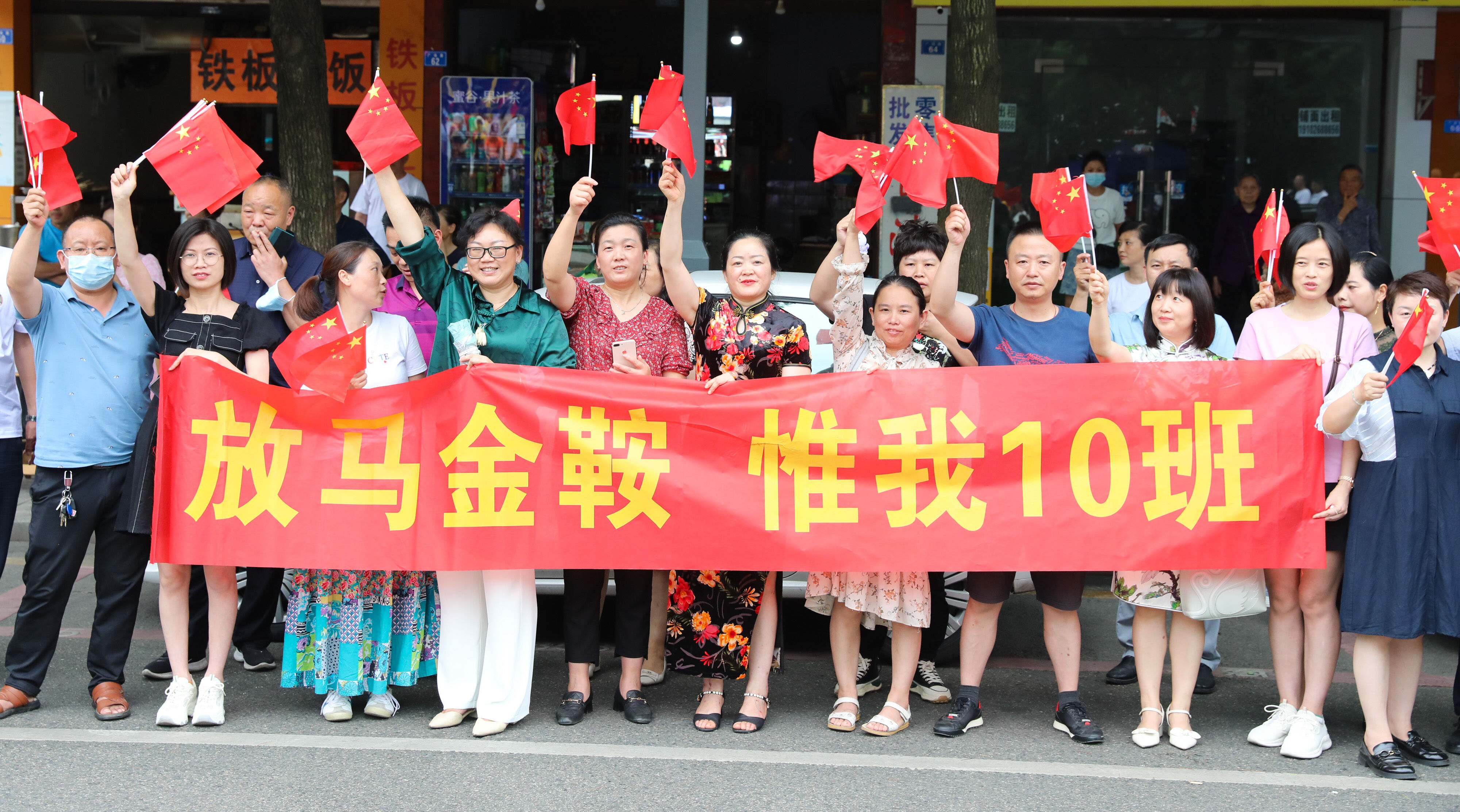學(xué)生家長拉起橫幅為高三考生壯行