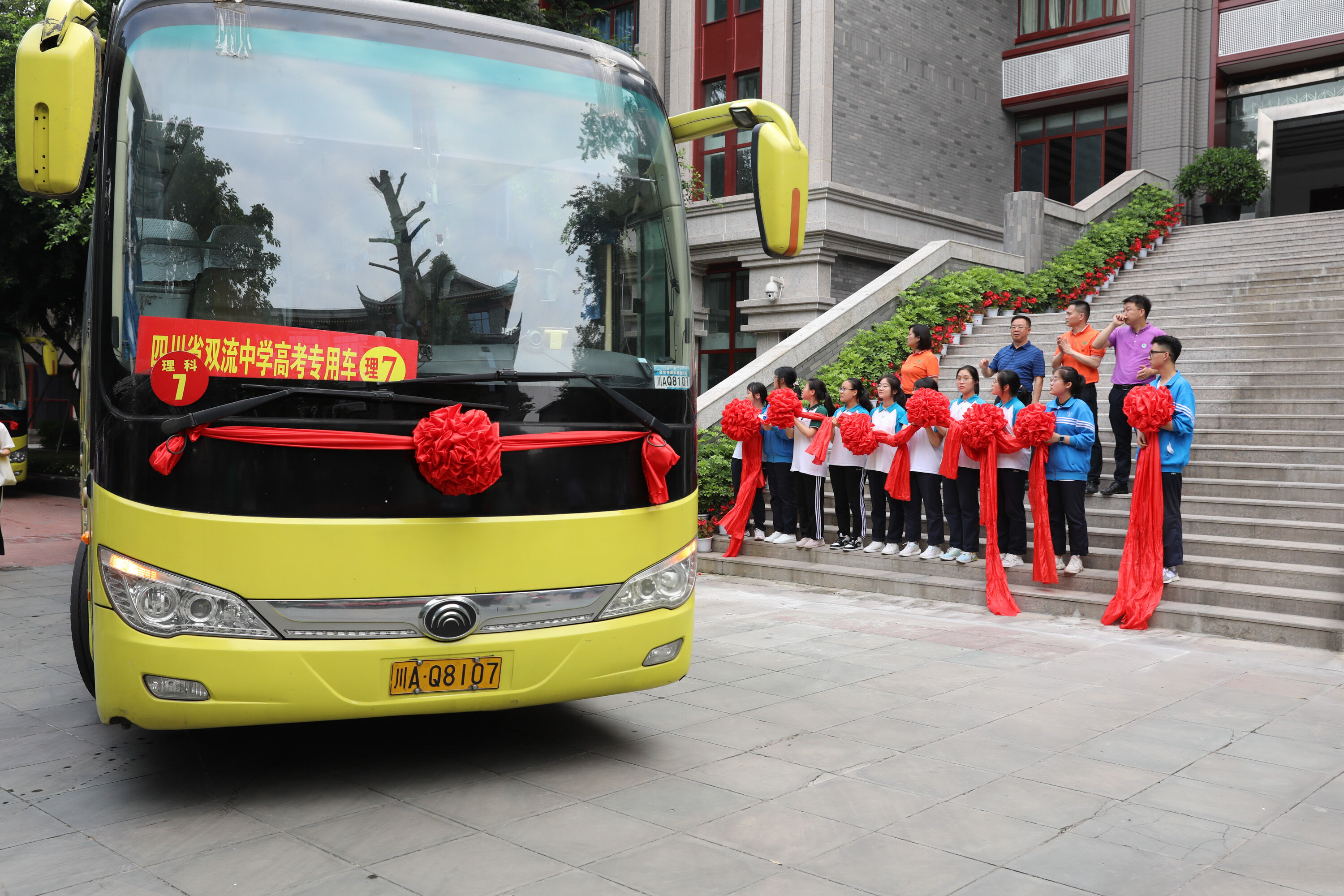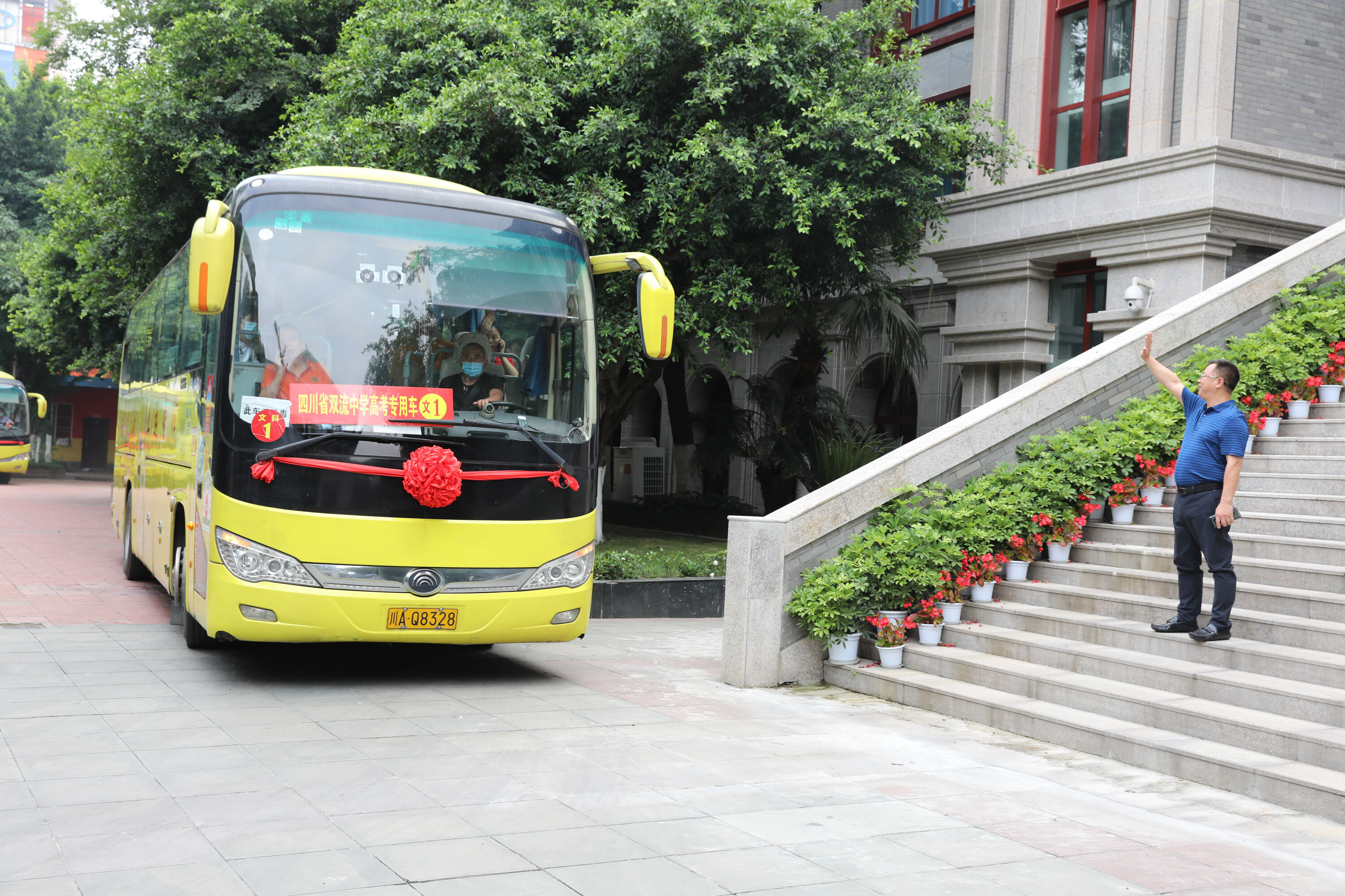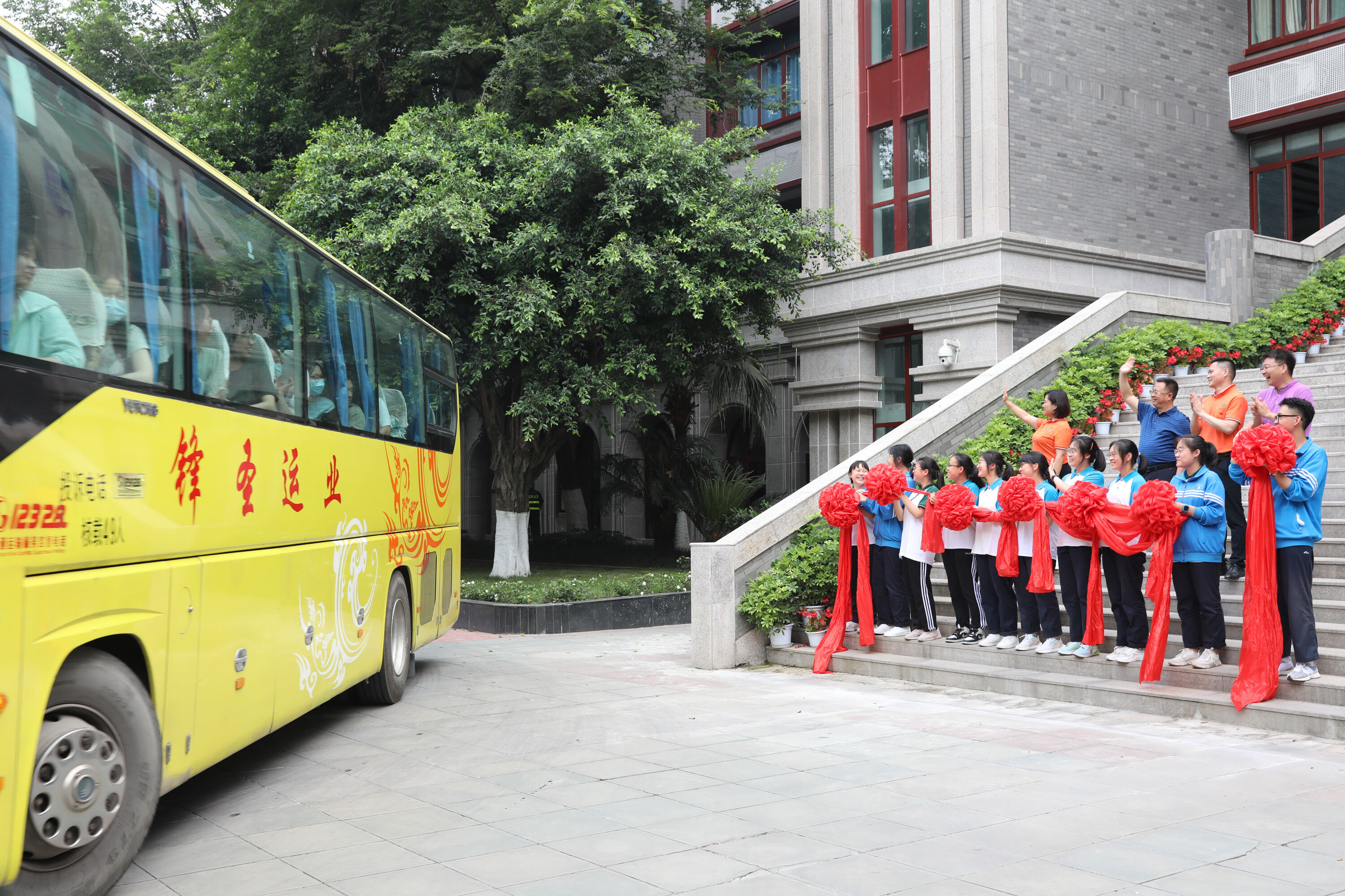 2022年6月8日,高考結束。龍校長在學校科技樓前親自迎接剛參加完高考的雙中考生歸隊。圖為:龍校長迎接文科考生車隊凱旋