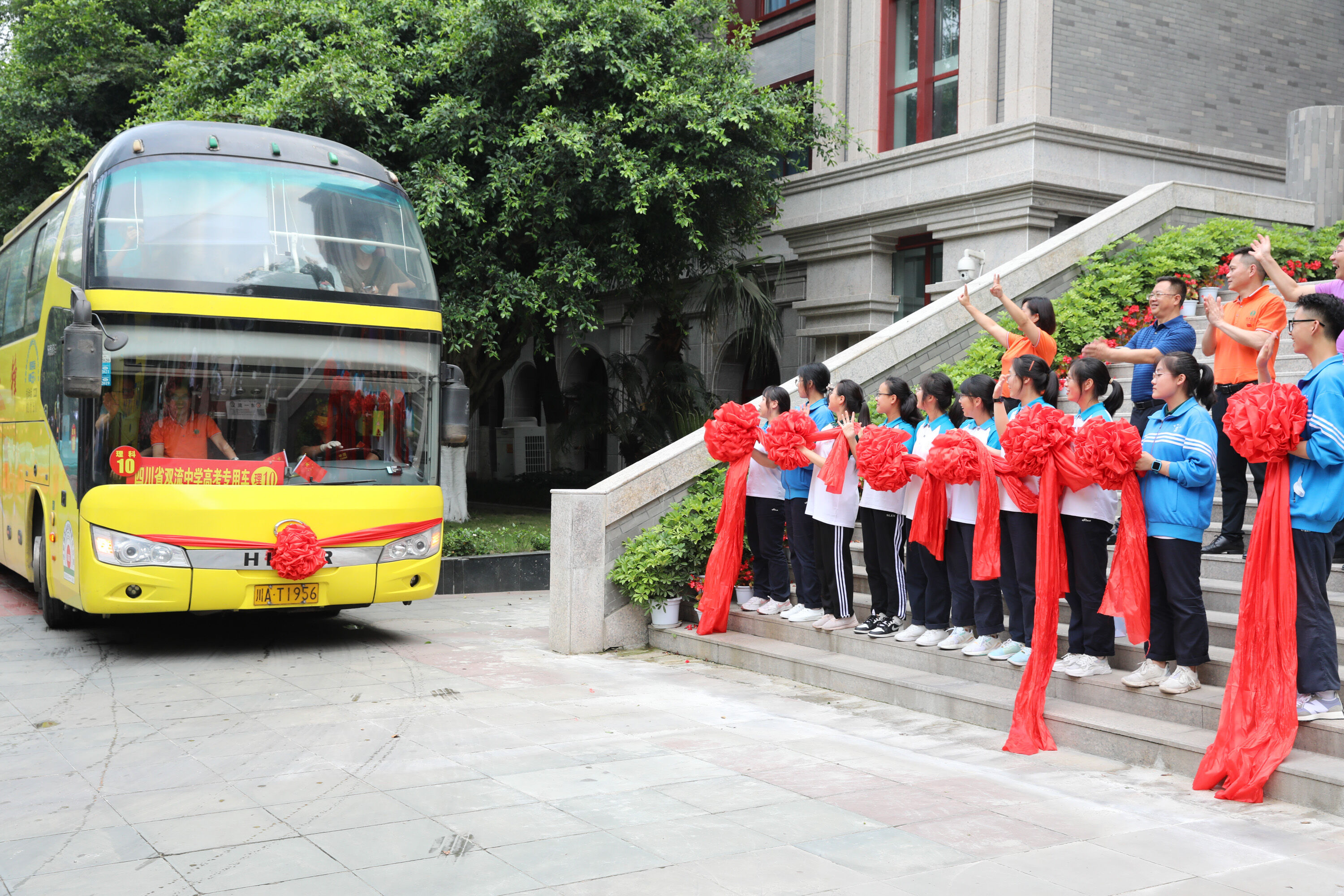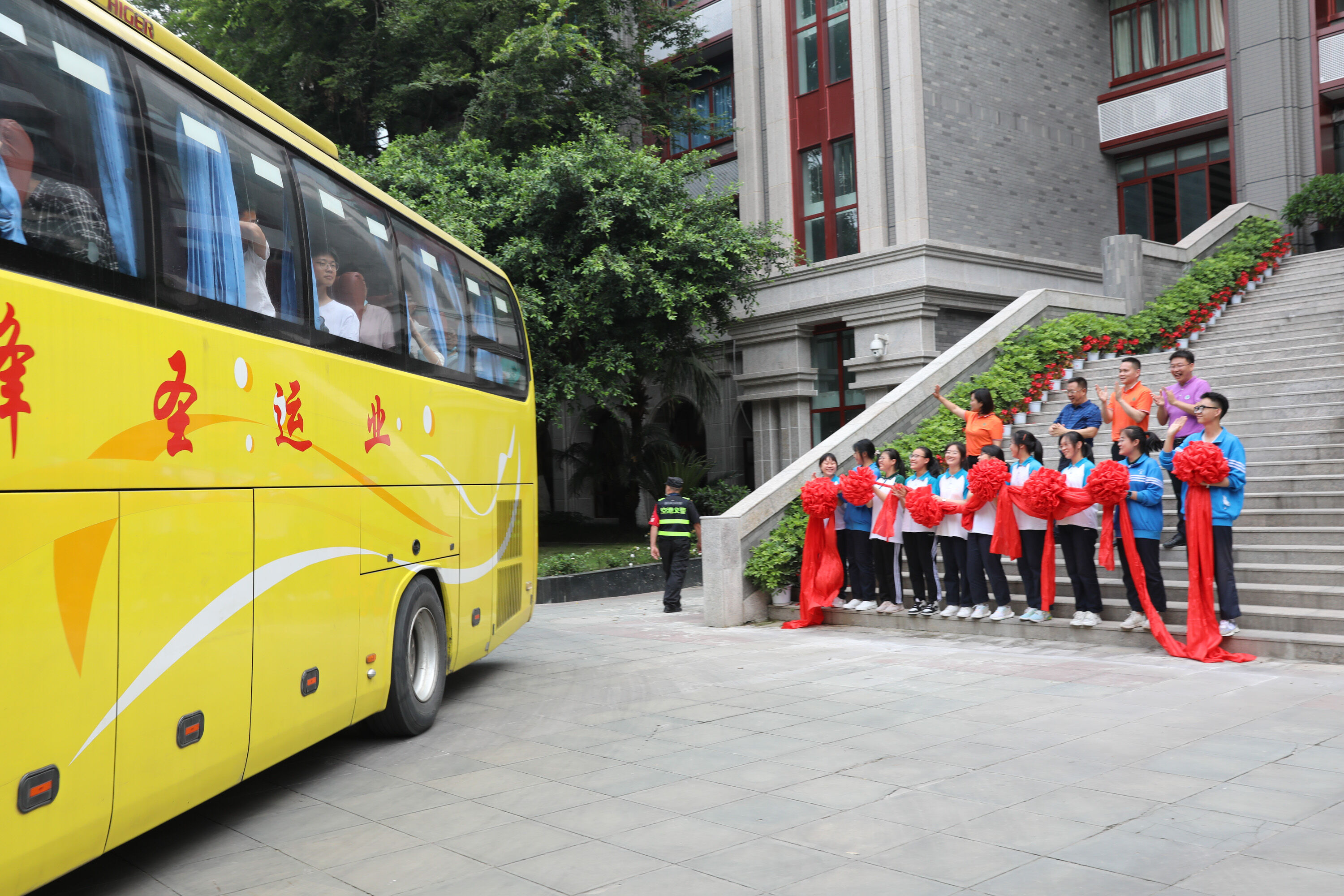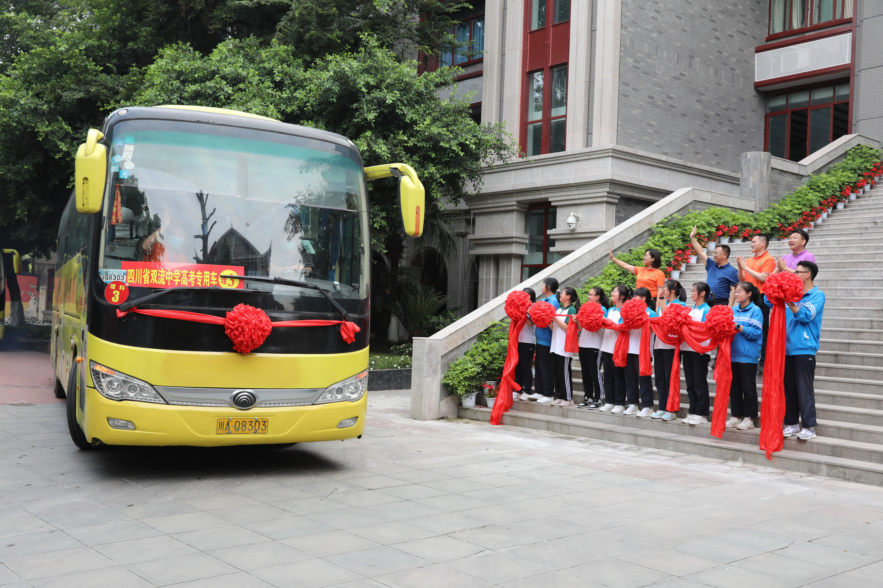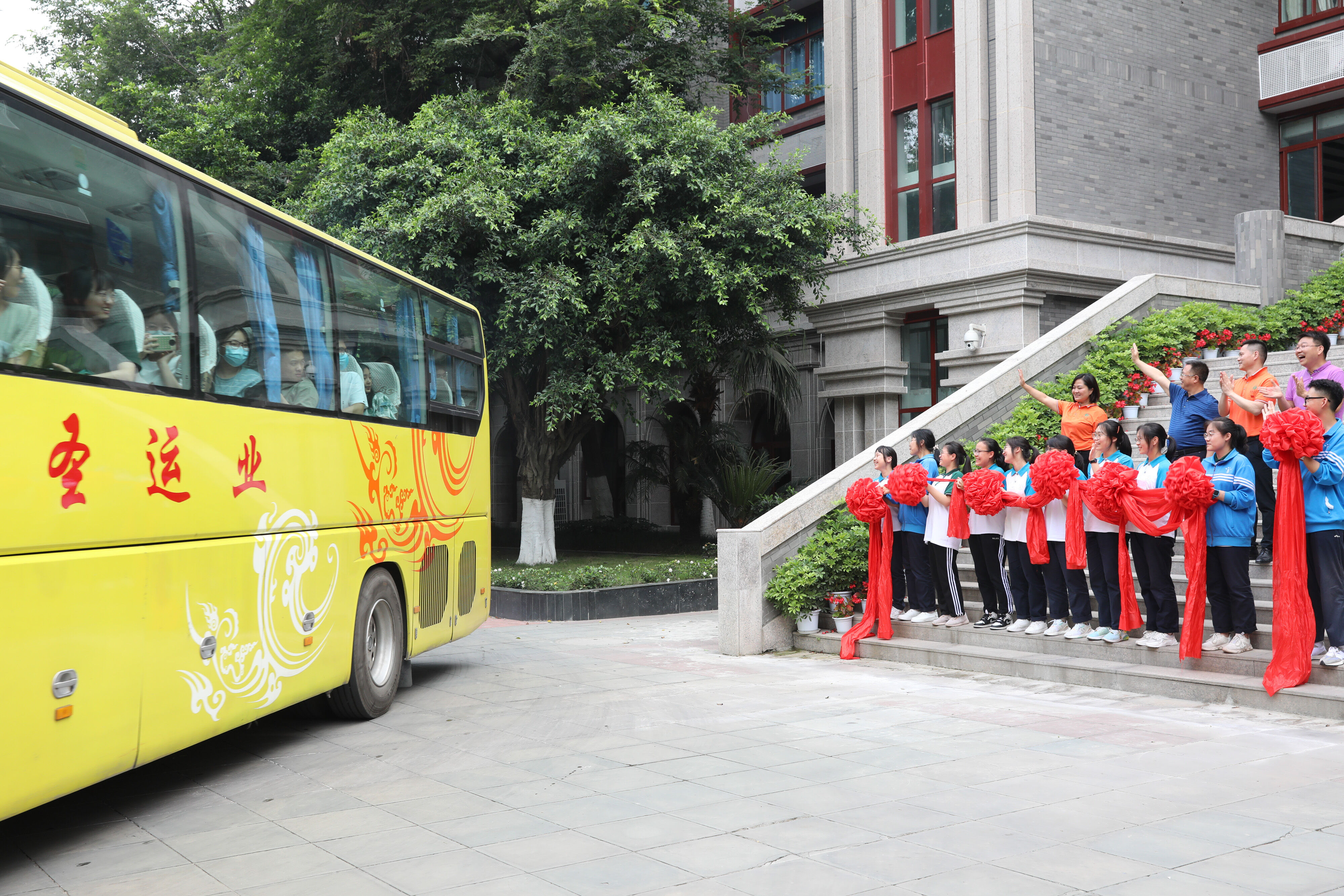 2022年6月8日,高考結束。龍校長在學校科技樓前親自迎接剛參加完高考的雙中考生歸隊。圖為:龍校長迎接文科考生車隊凱旋