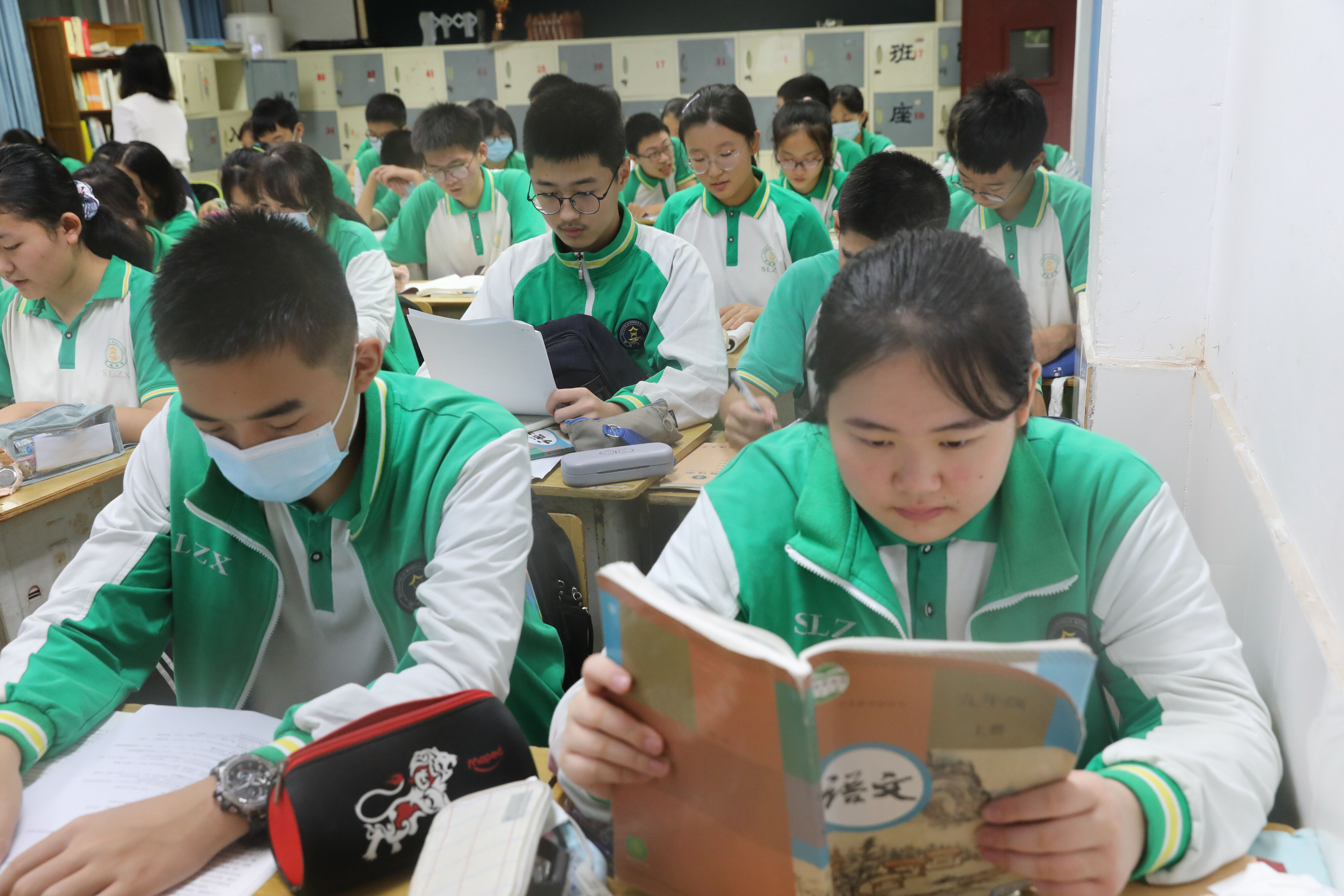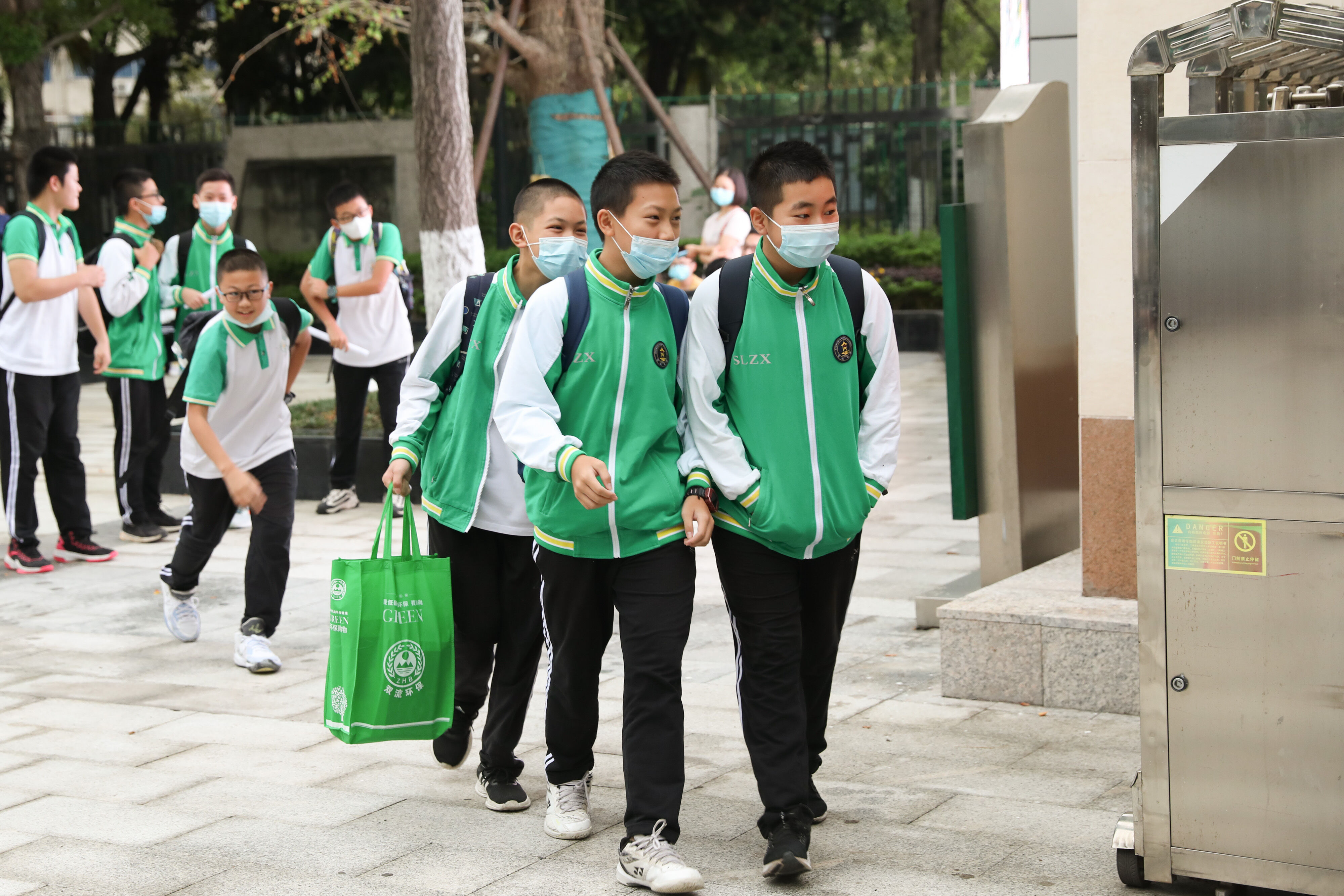 早上8:30,是初中八、九年年級入校報到的時間,大家有序排隊,測體溫進入學校。