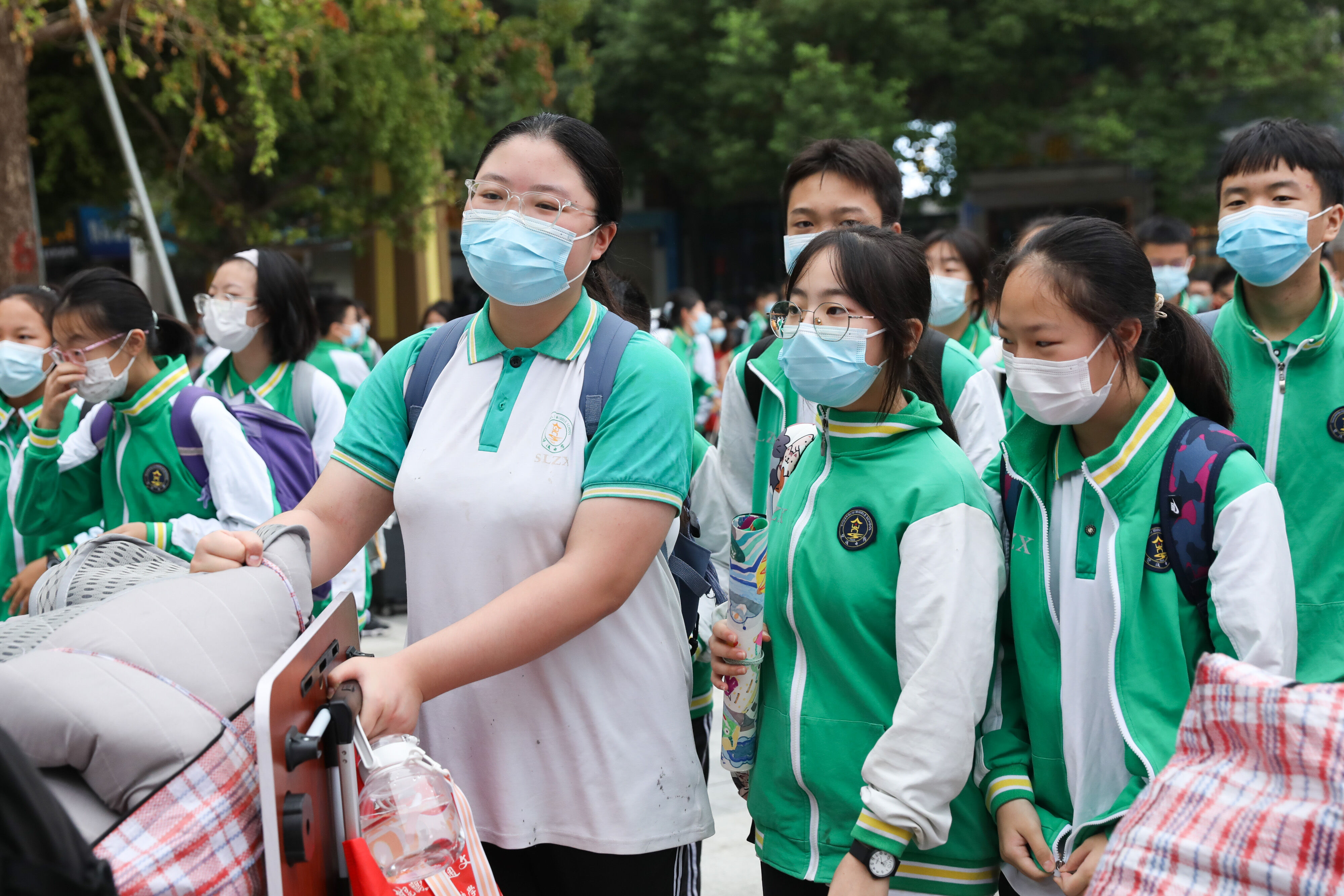 早上9:30,高三年級迎來歸校時間,圖為高三年級學生歸校