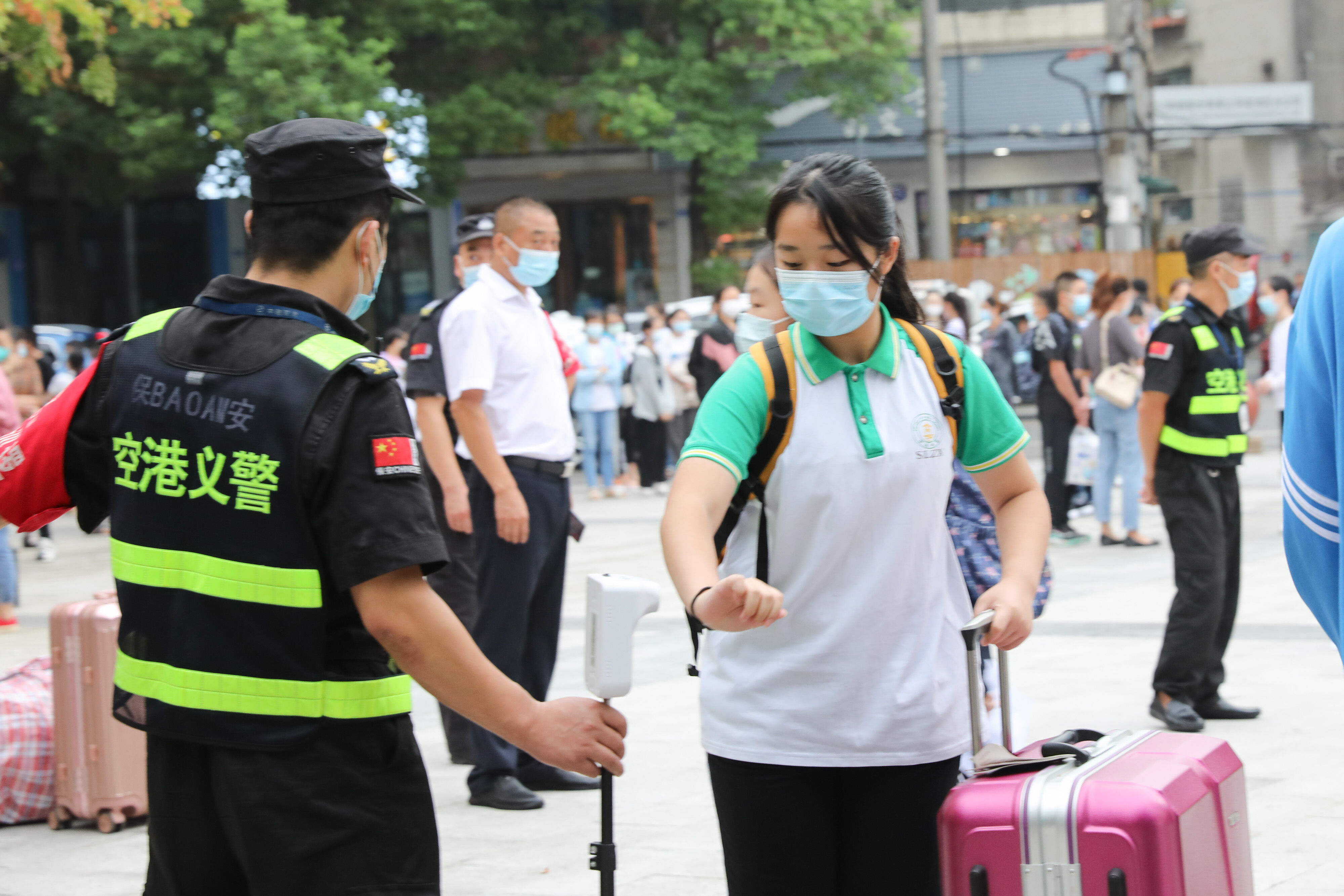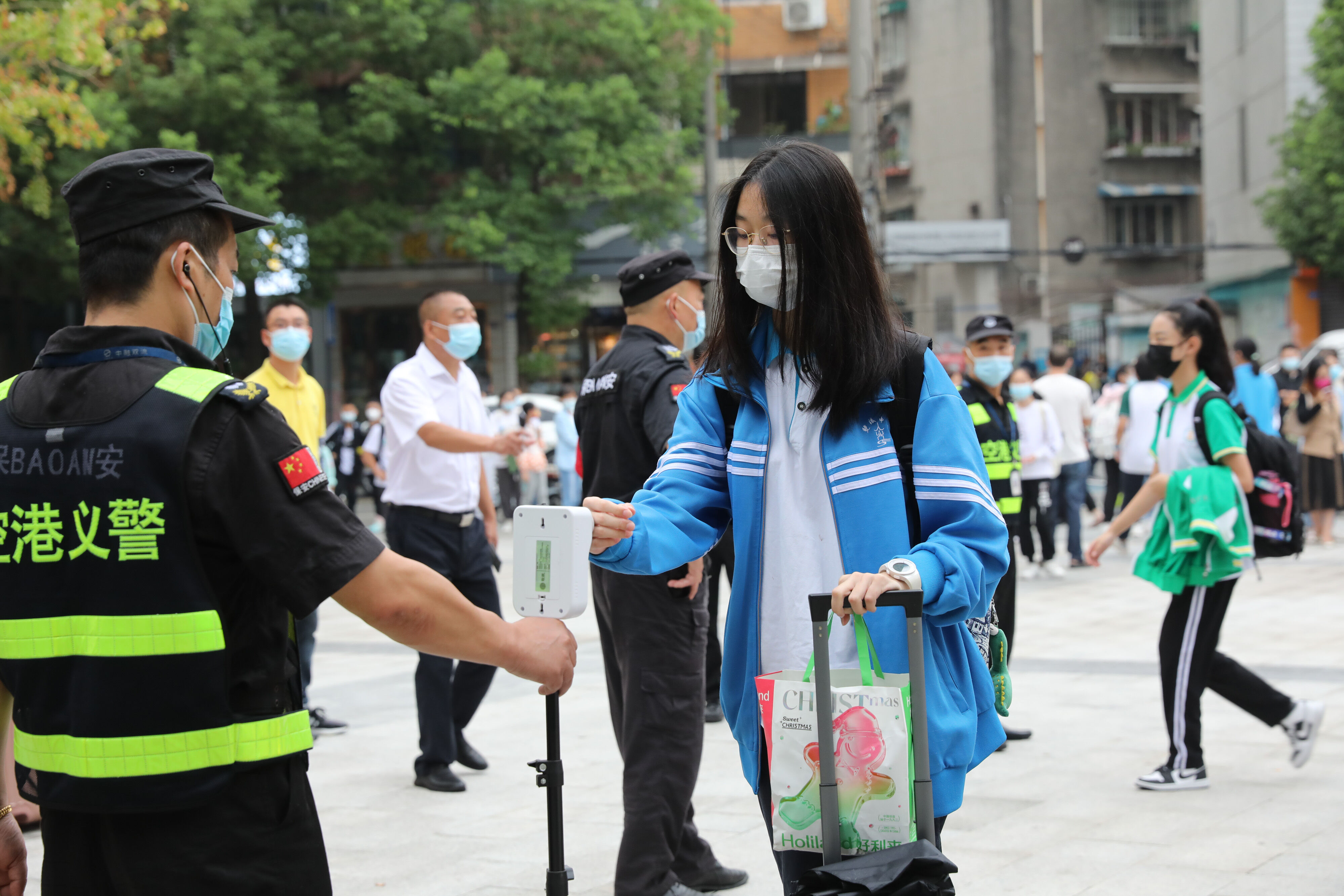 早上10:30,是高二年級入校時間,圖為高二年級住校生入校測體溫