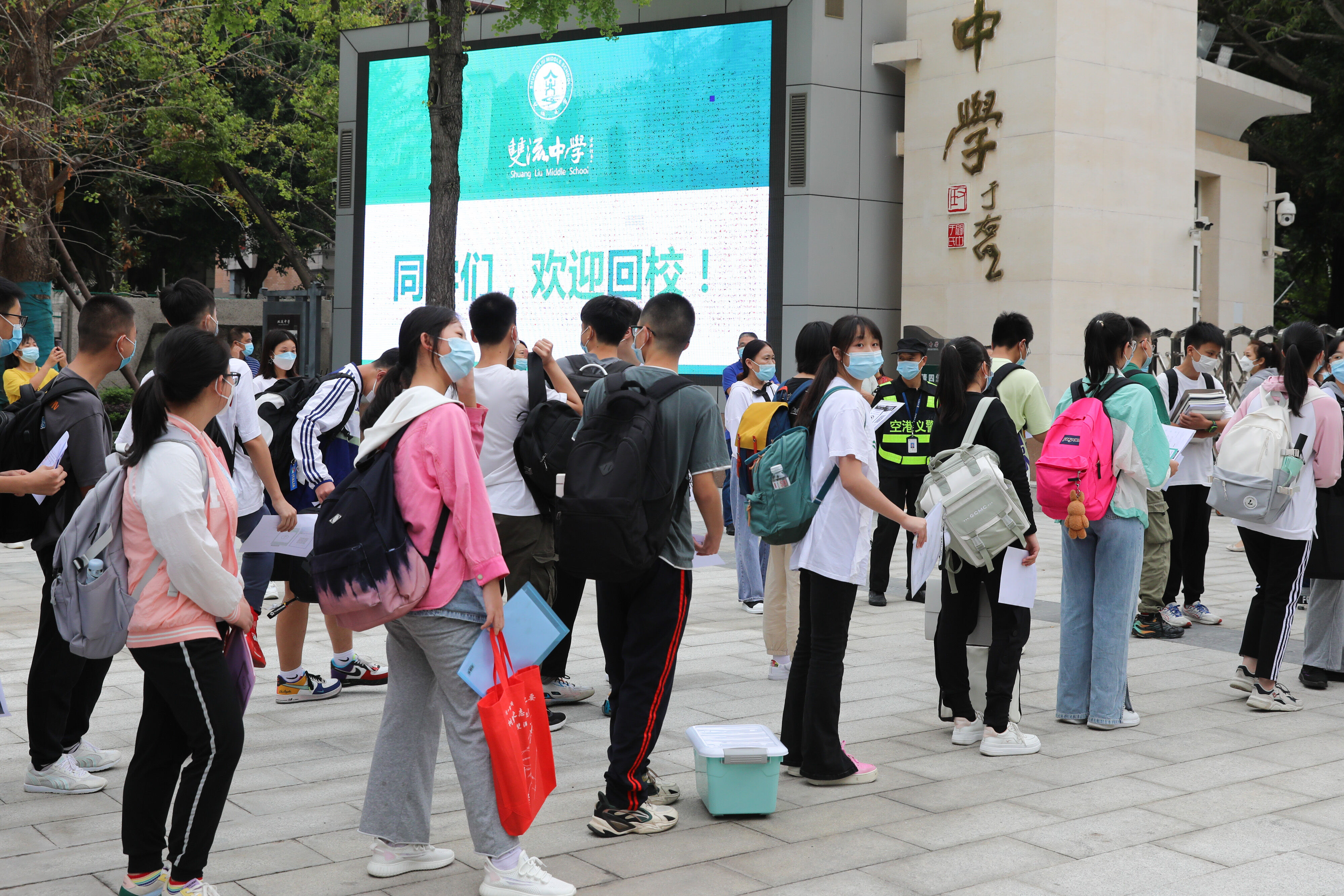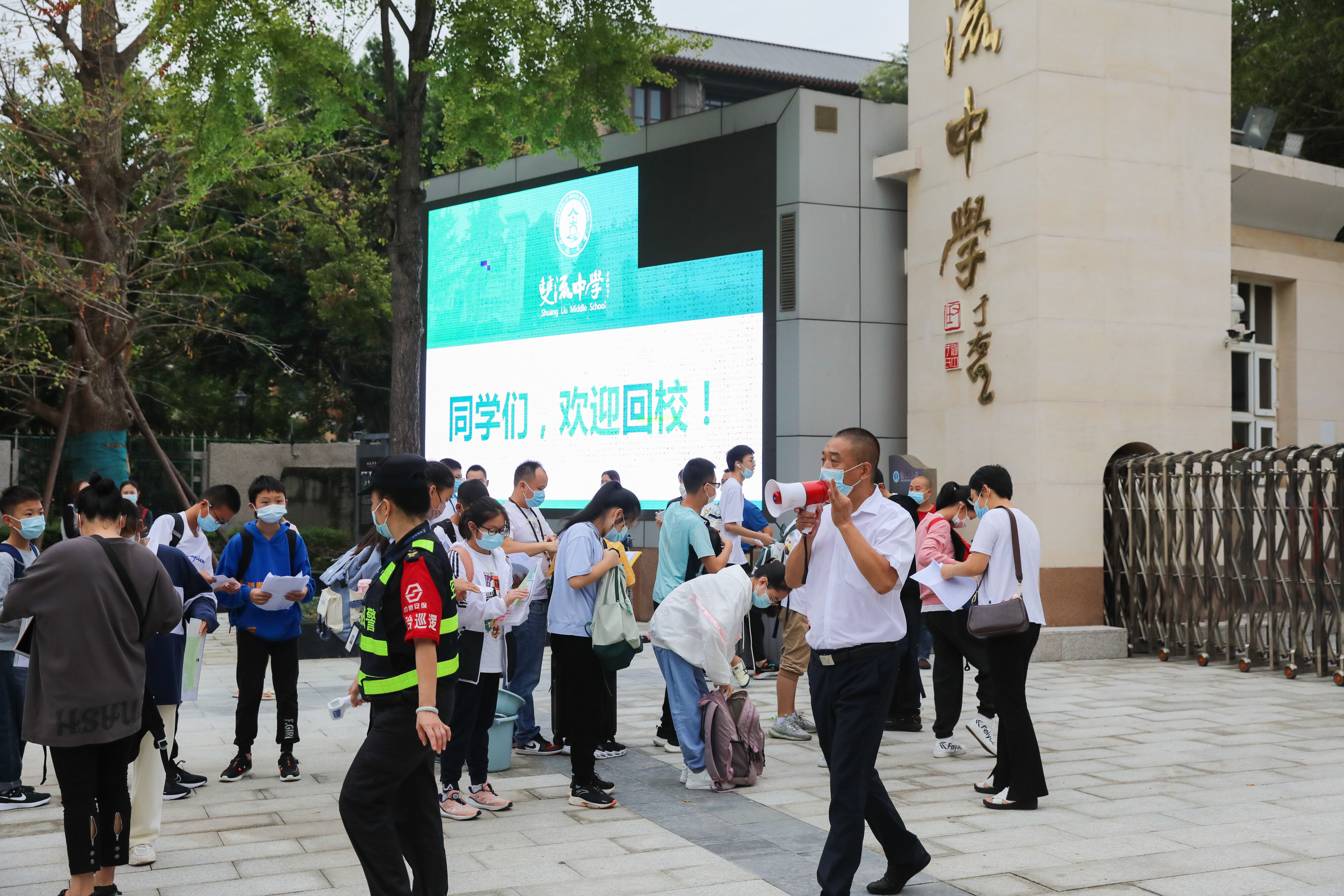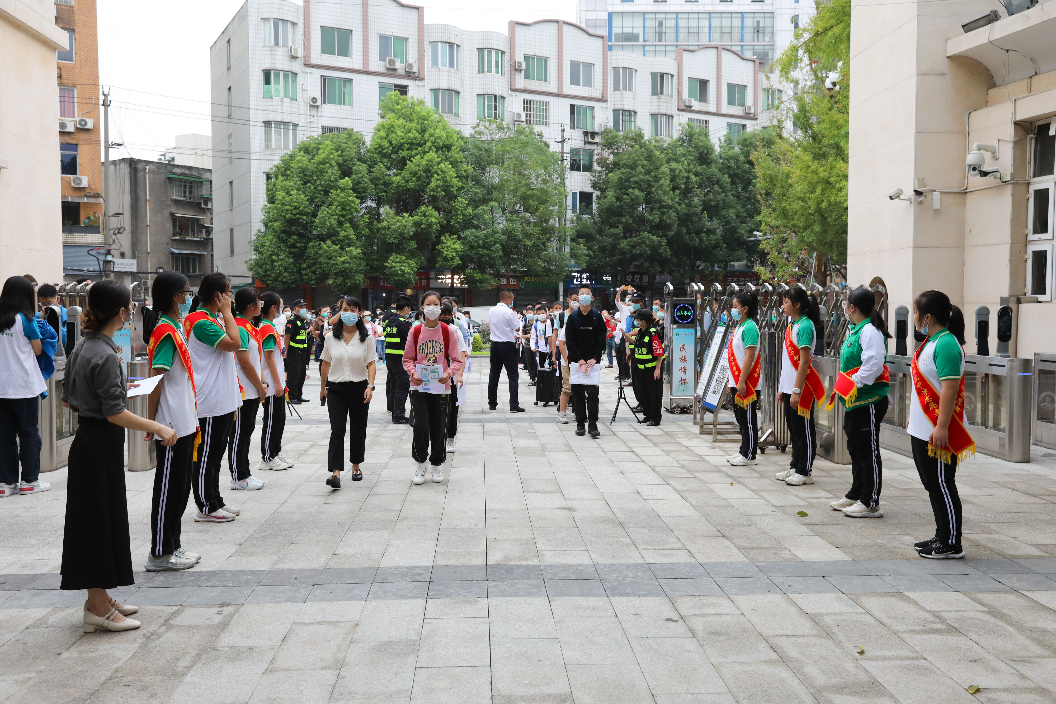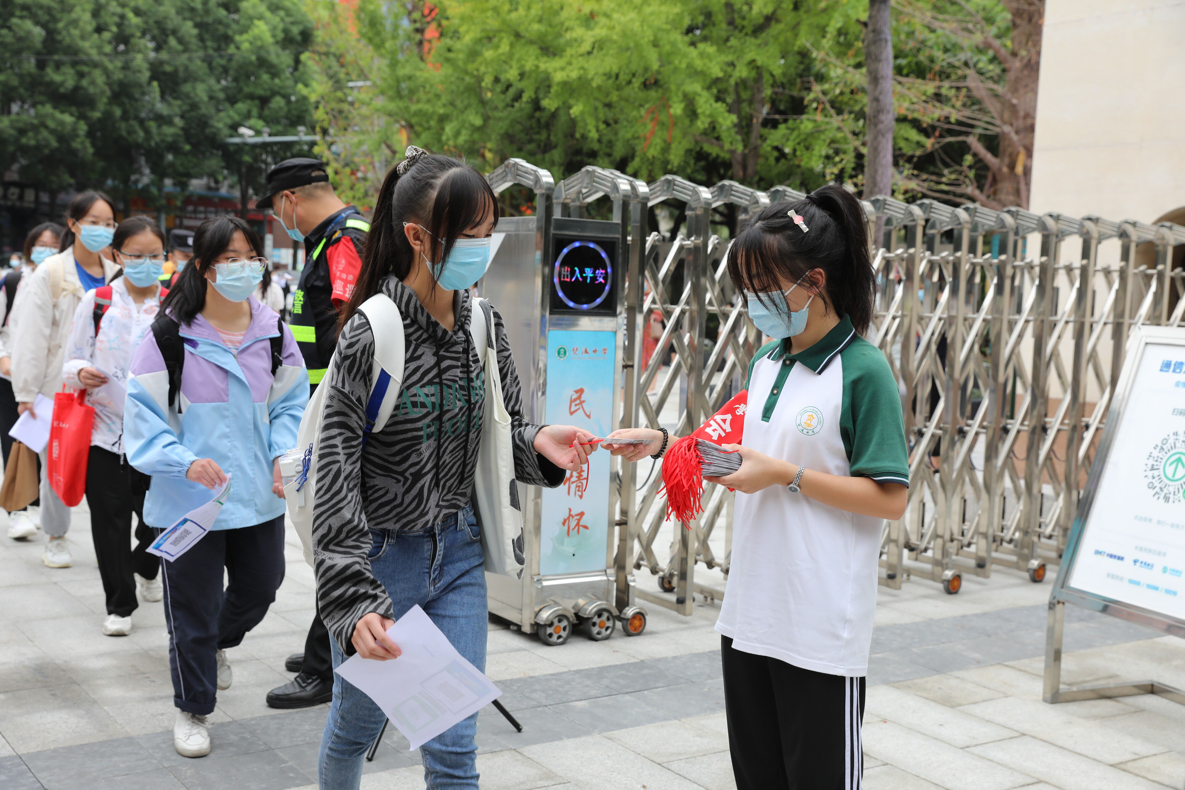 七年級(jí)新生有序排隊(duì),準(zhǔn)備好核酸報(bào)告,準(zhǔn)備進(jìn)入校園