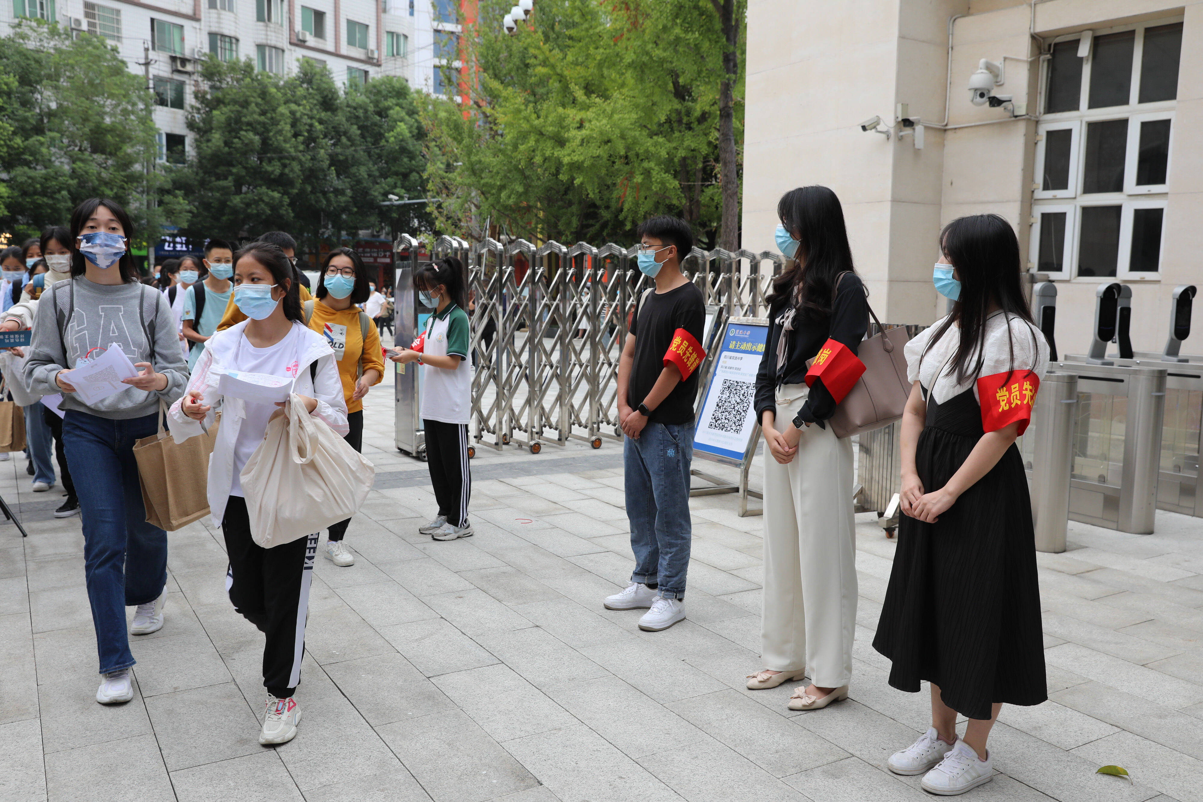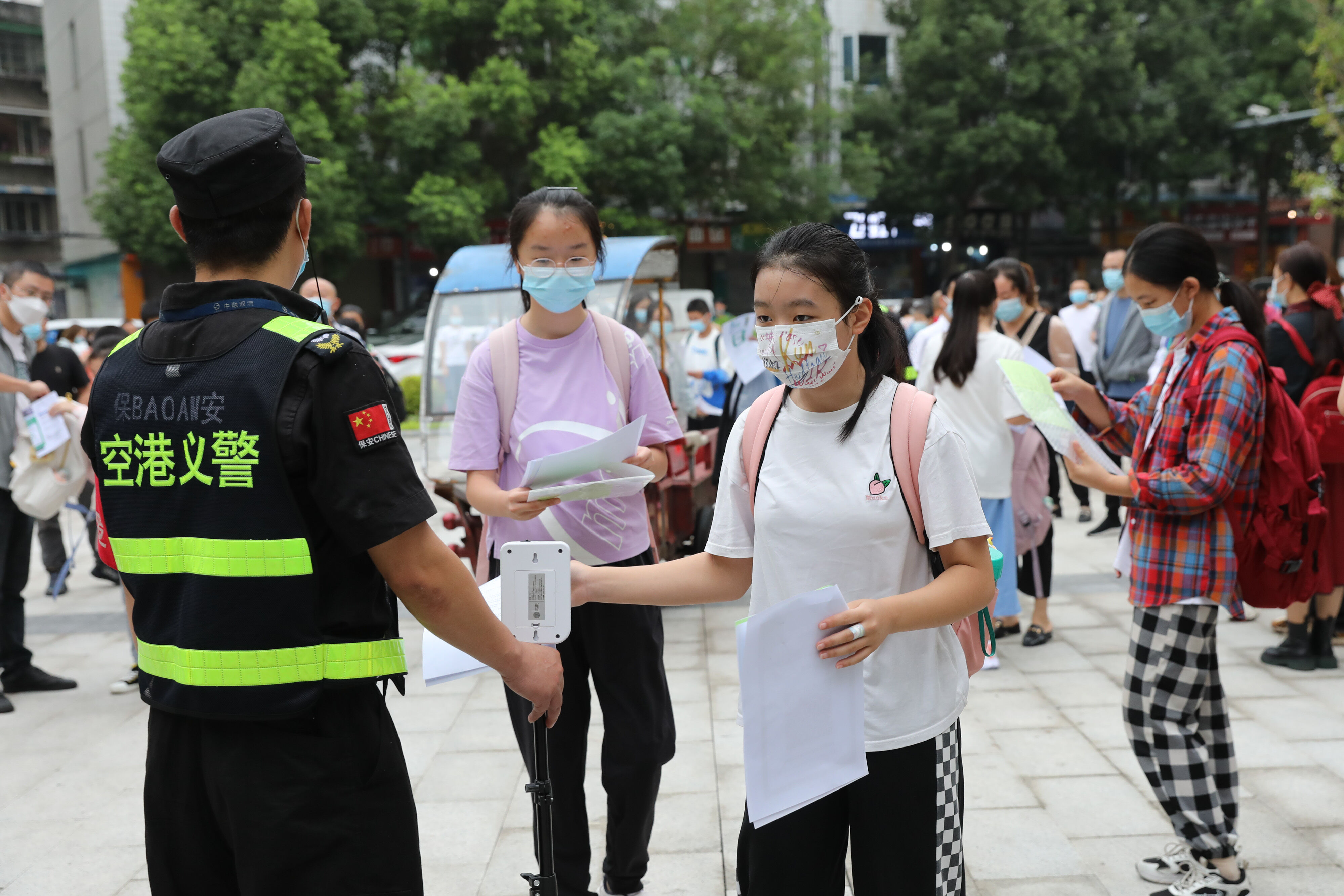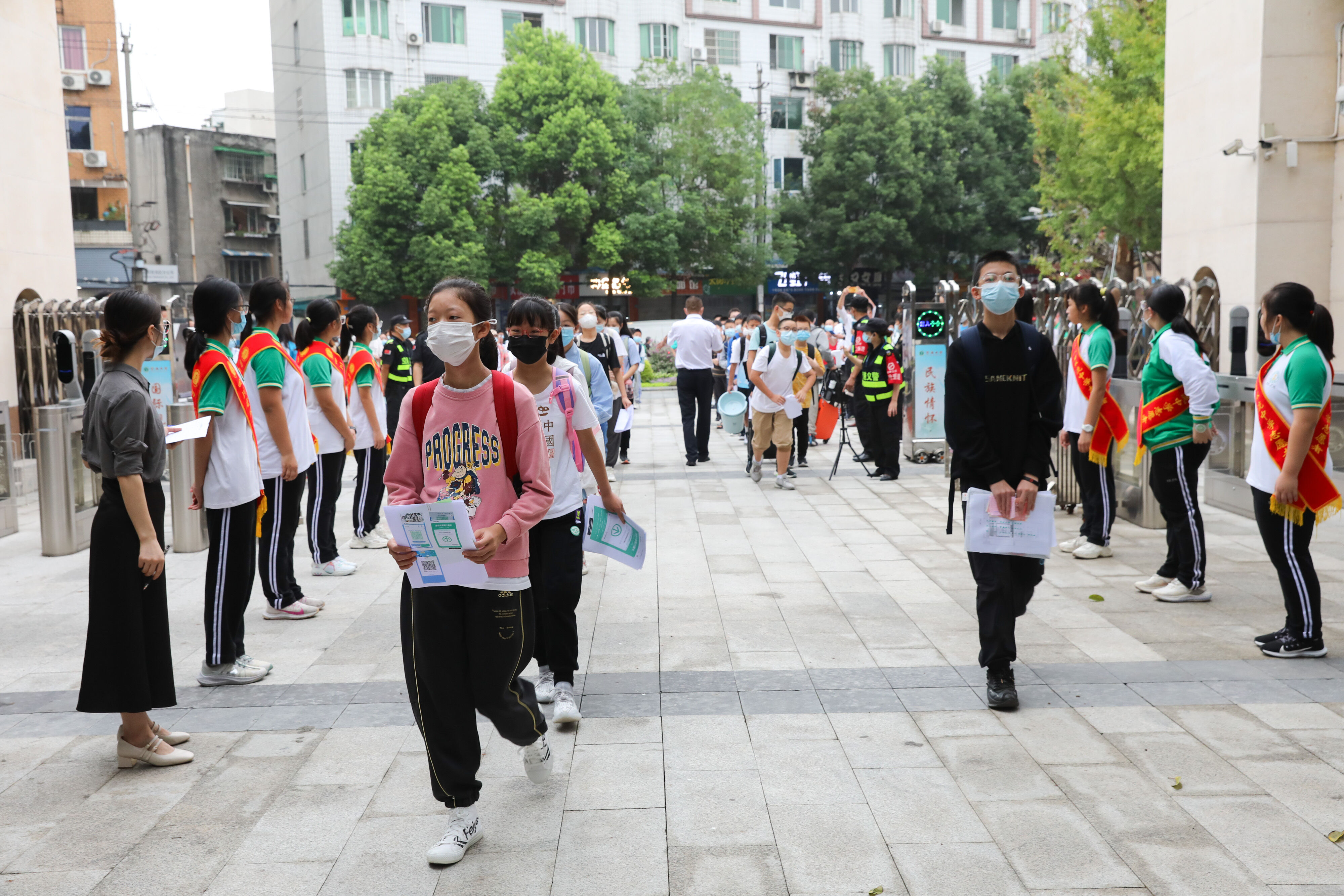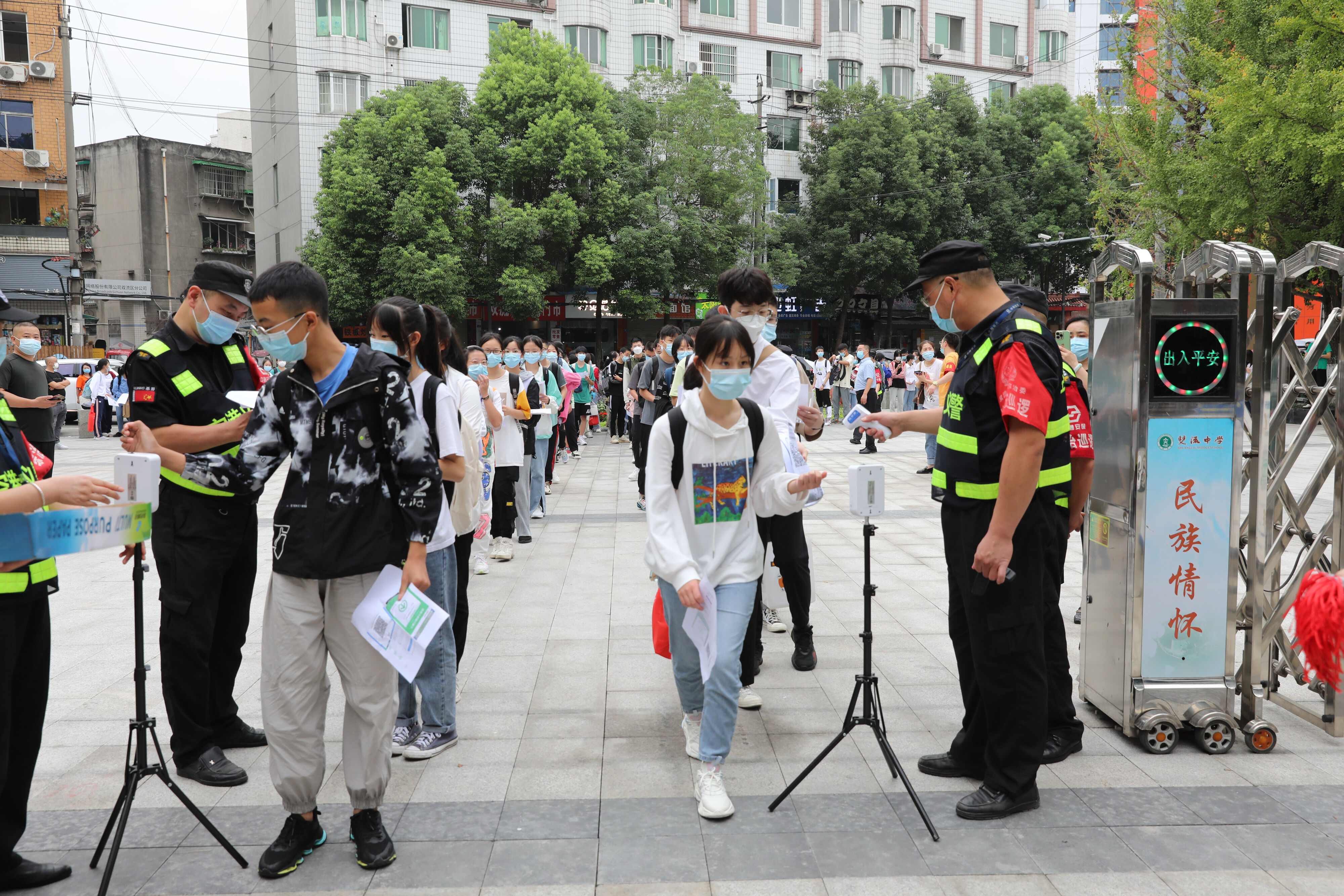 七年級(jí)新生有序排隊(duì),準(zhǔn)備好核酸報(bào)告,準(zhǔn)備進(jìn)入校園