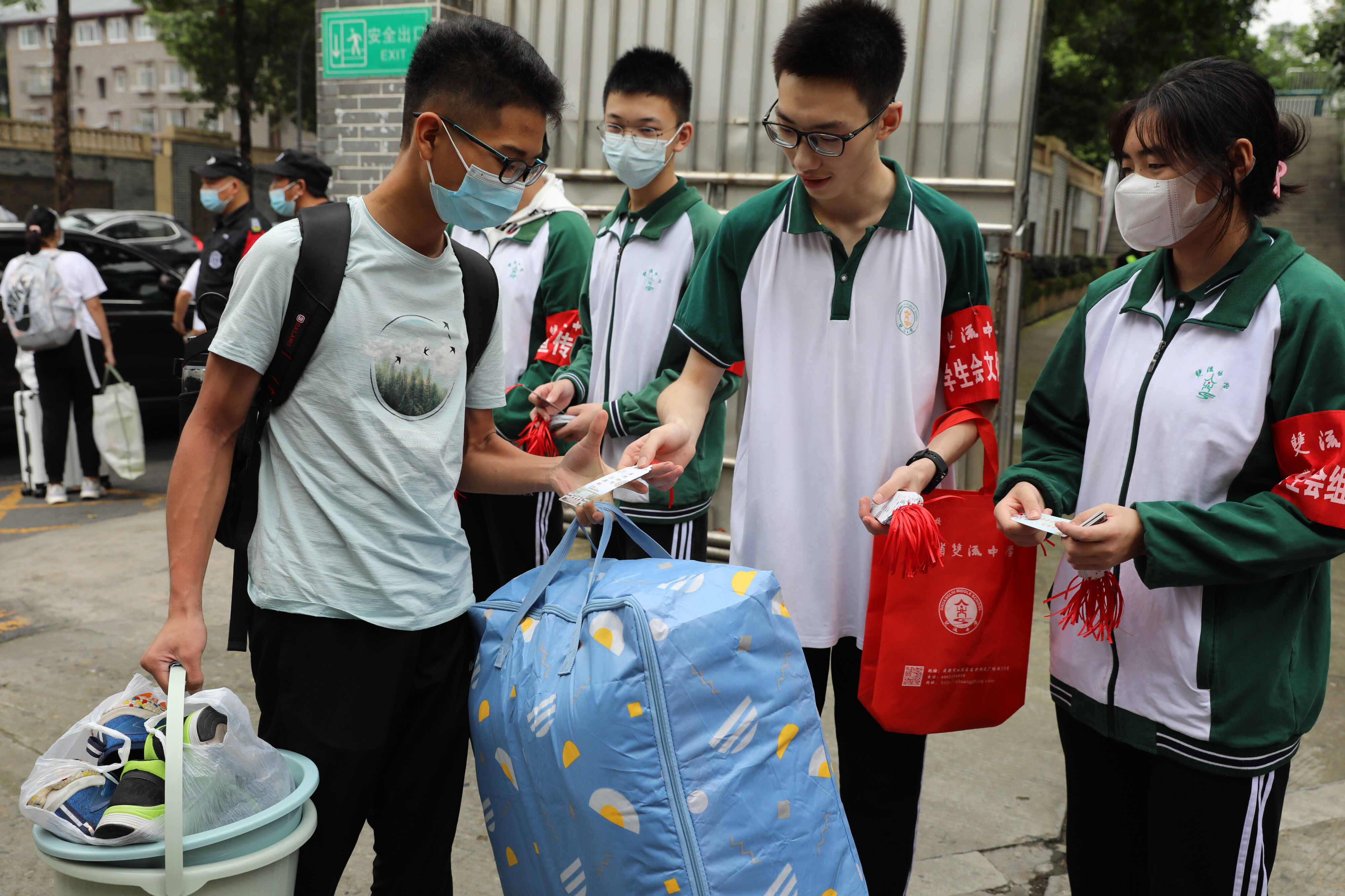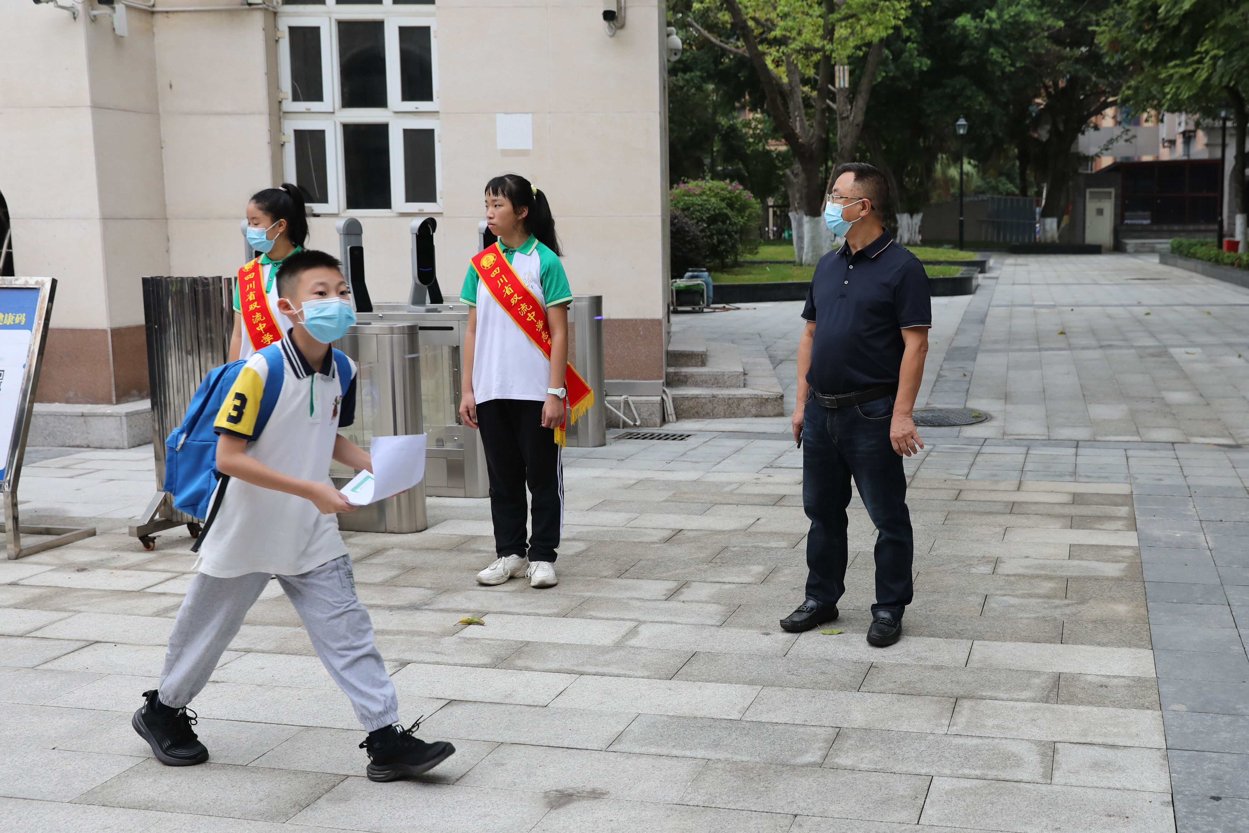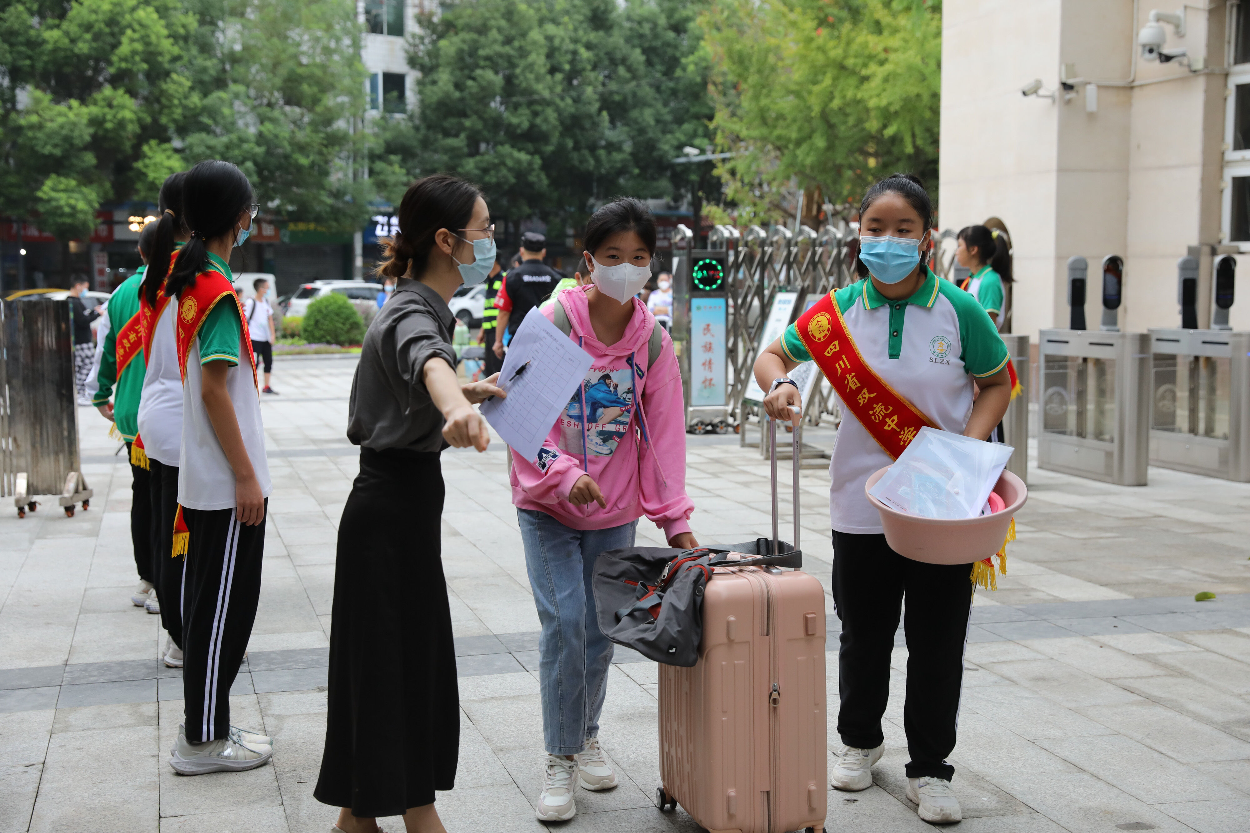 老雙中本該在20天前迎來新學(xué)生,一場(chǎng)突如其來的疫情打亂了既定的安排。2022年9月19日,老雙中終于在等待20天后迎來了她的又一批新學(xué)生。早上8:30,是七年級(jí)新生的入學(xué)報(bào)到時(shí)間,龍清明校長(zhǎng)和高年級(jí)學(xué)生志愿者早早在校門口迎接新同學(xué)的到來。