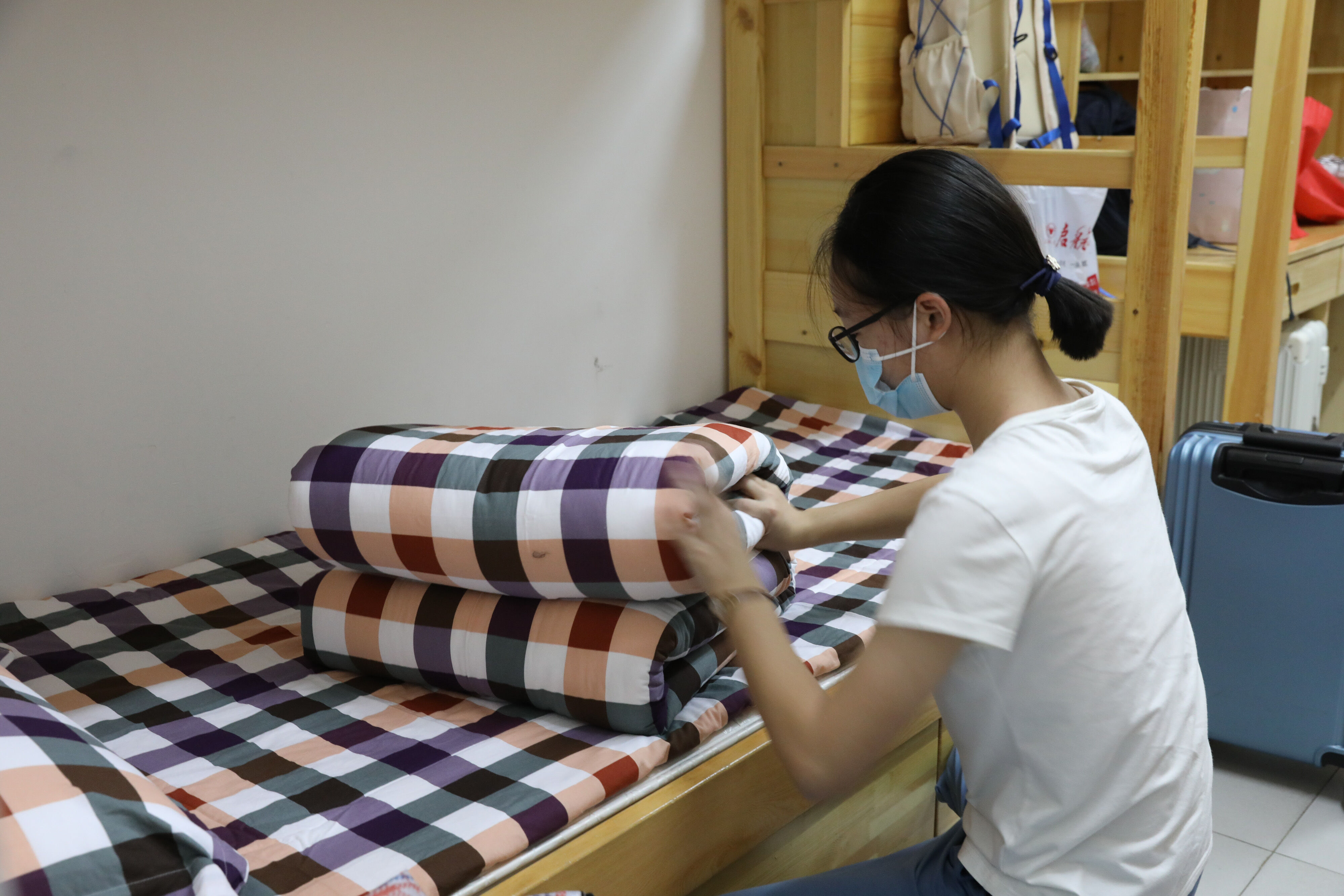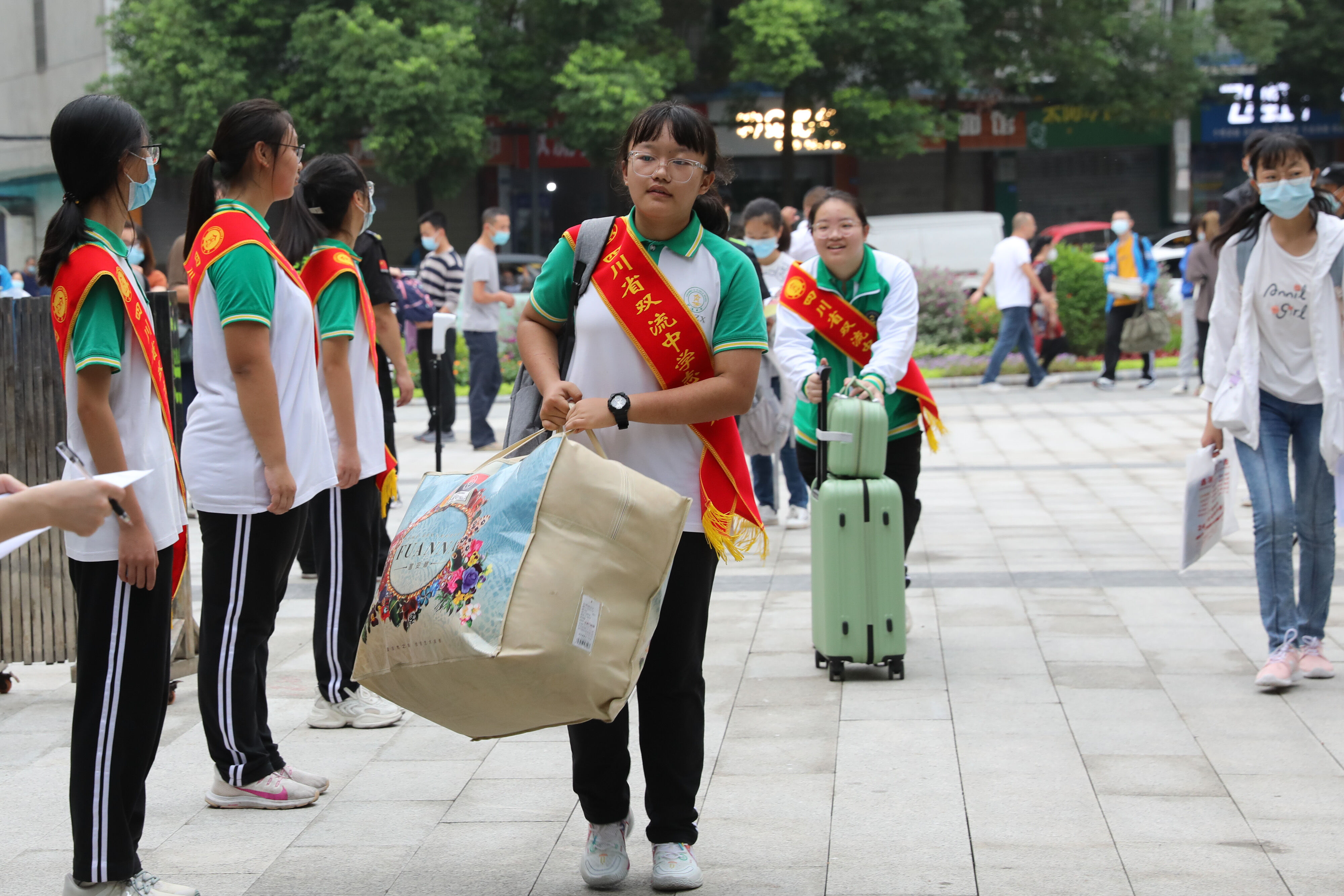高年級(jí)志愿者幫助七年級(jí)新生搬行李g