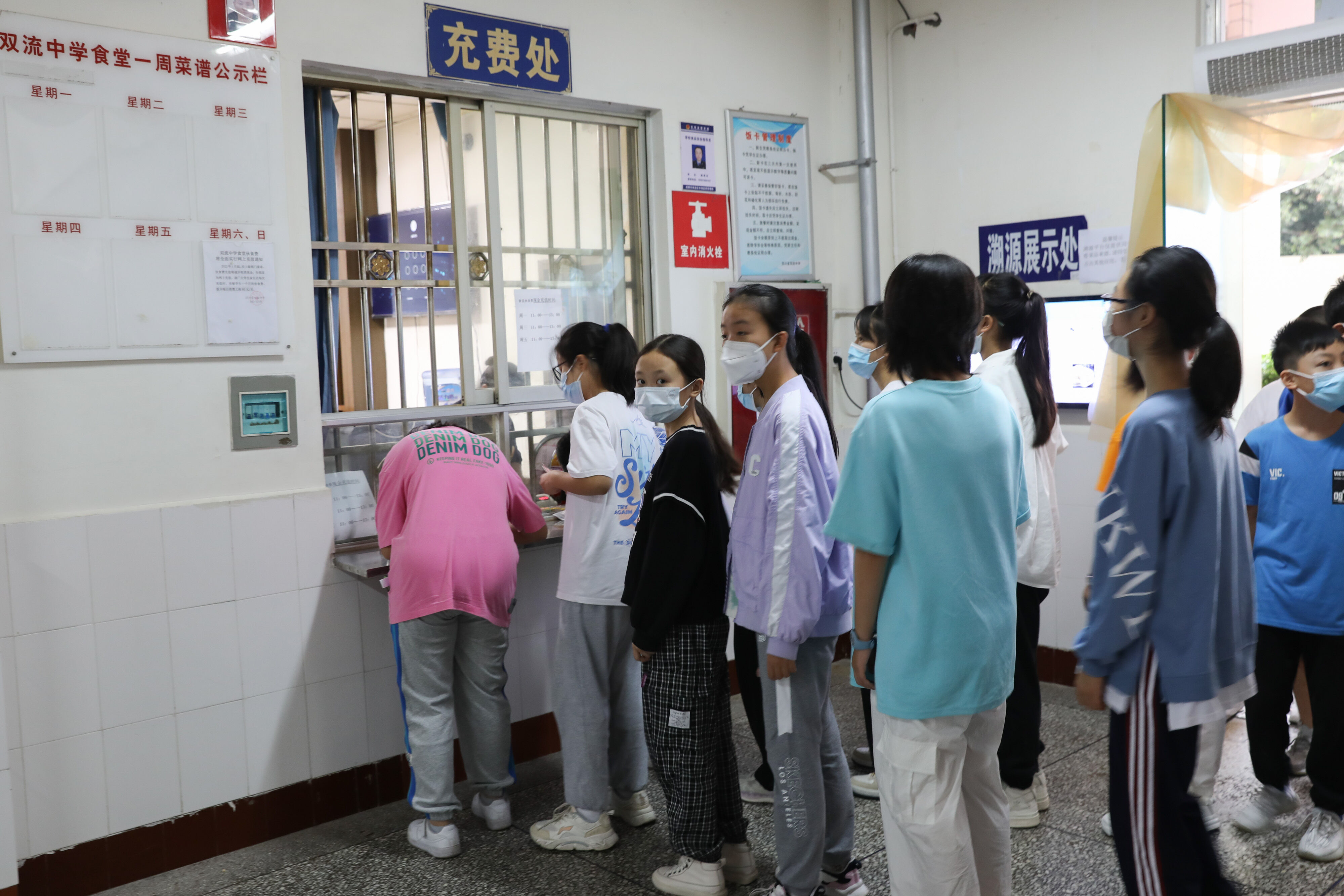 龍校長(zhǎng)到食堂關(guān)心七年級(jí)新生飯卡辦理情況