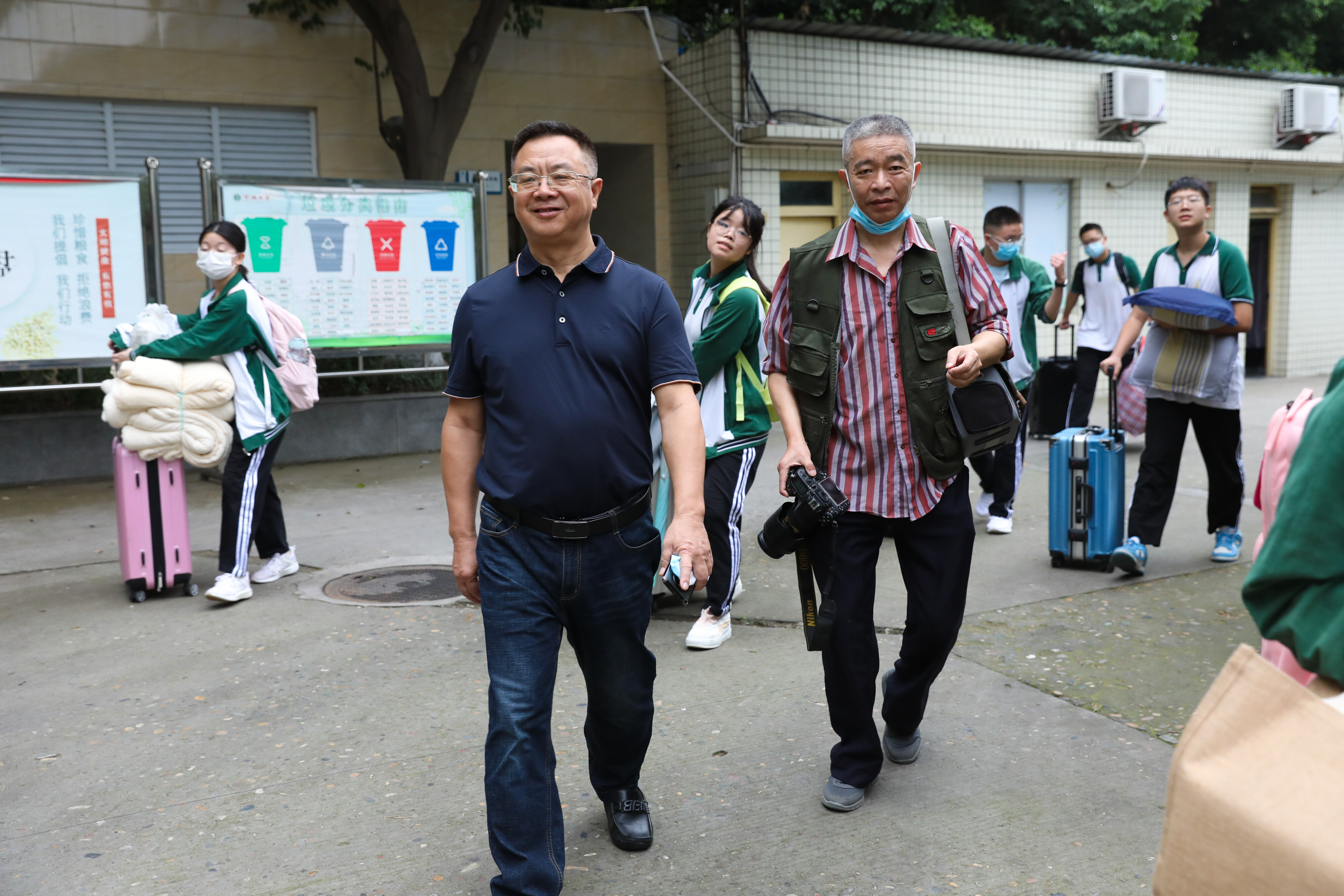龍校長(zhǎng)在校門口迎接七年級(jí)新生入學(xué)