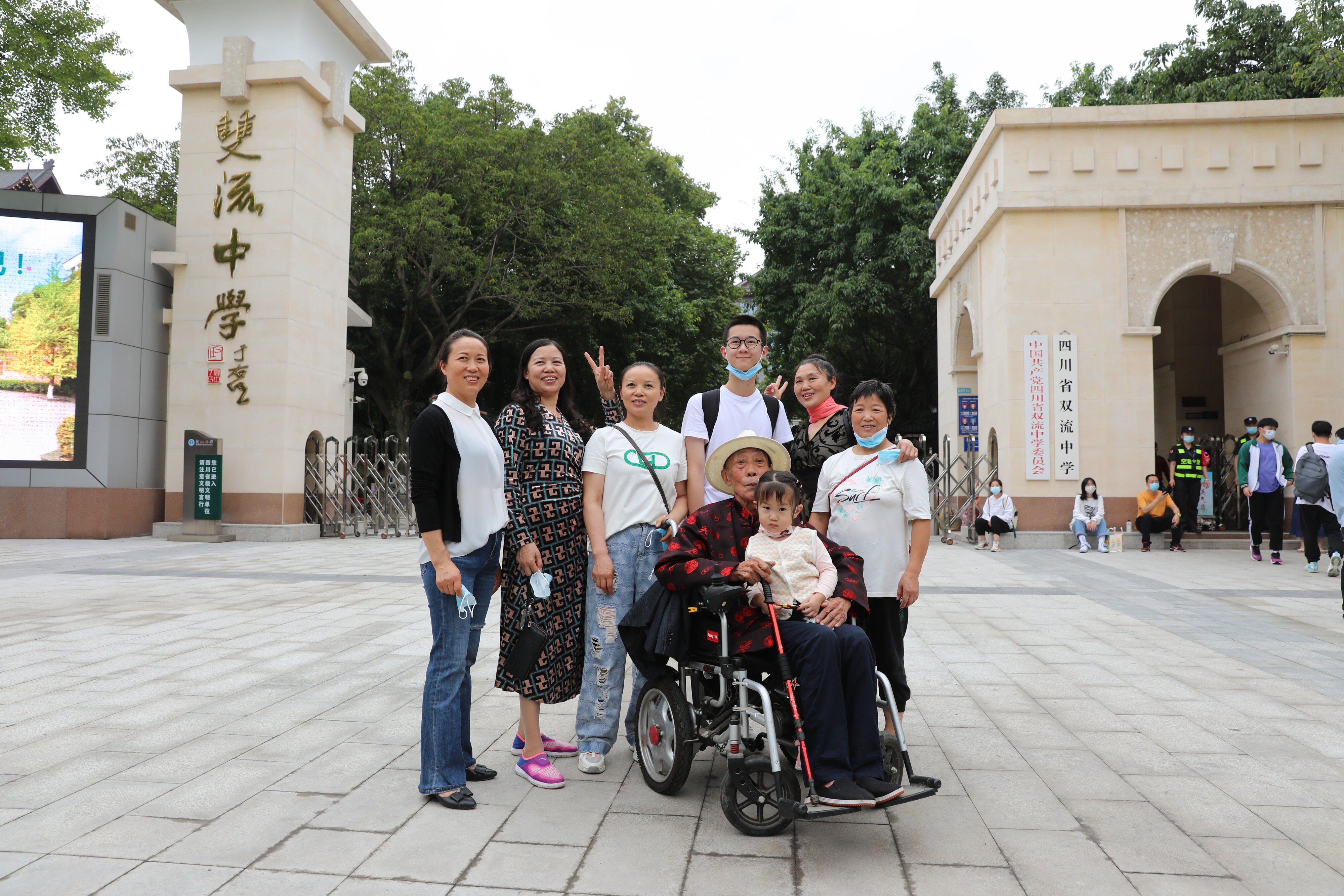 下午1:30是高一年級(jí)新生的入學(xué)報(bào)到時(shí)間,很多學(xué)生在家長(zhǎng)的陪同下提前到學(xué)校門外等候。(圖為 高一新生和家人在校門口合影留念)
