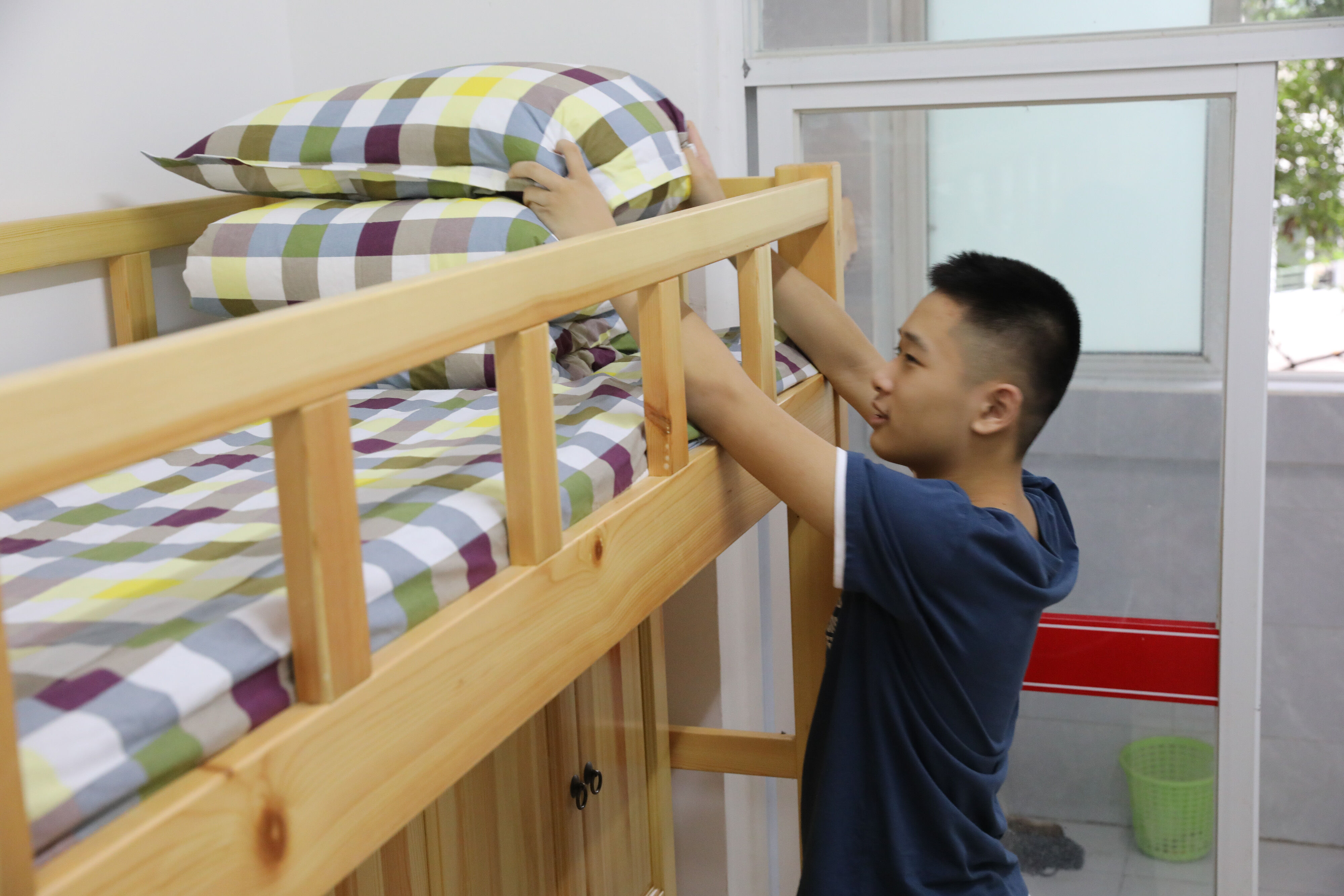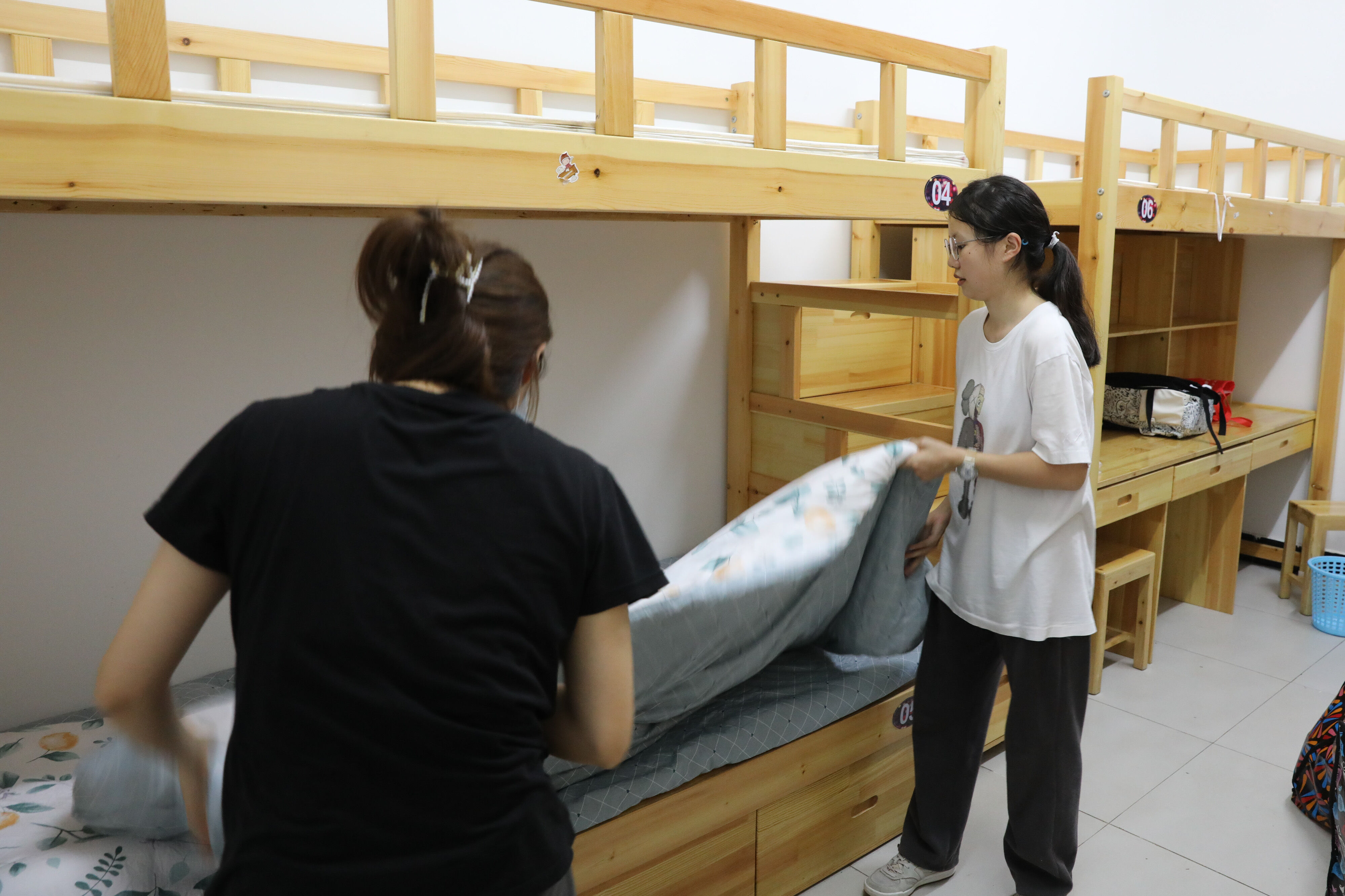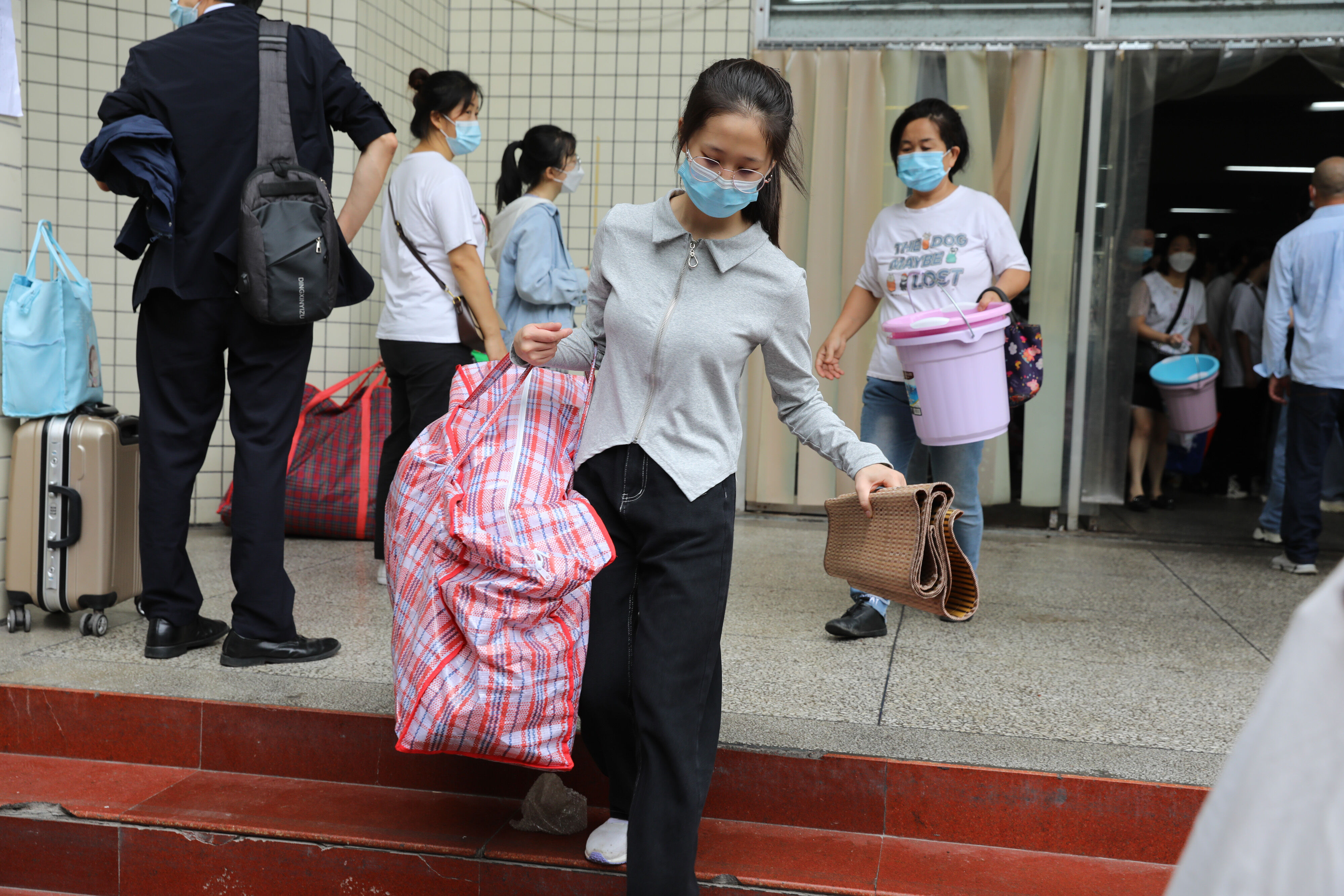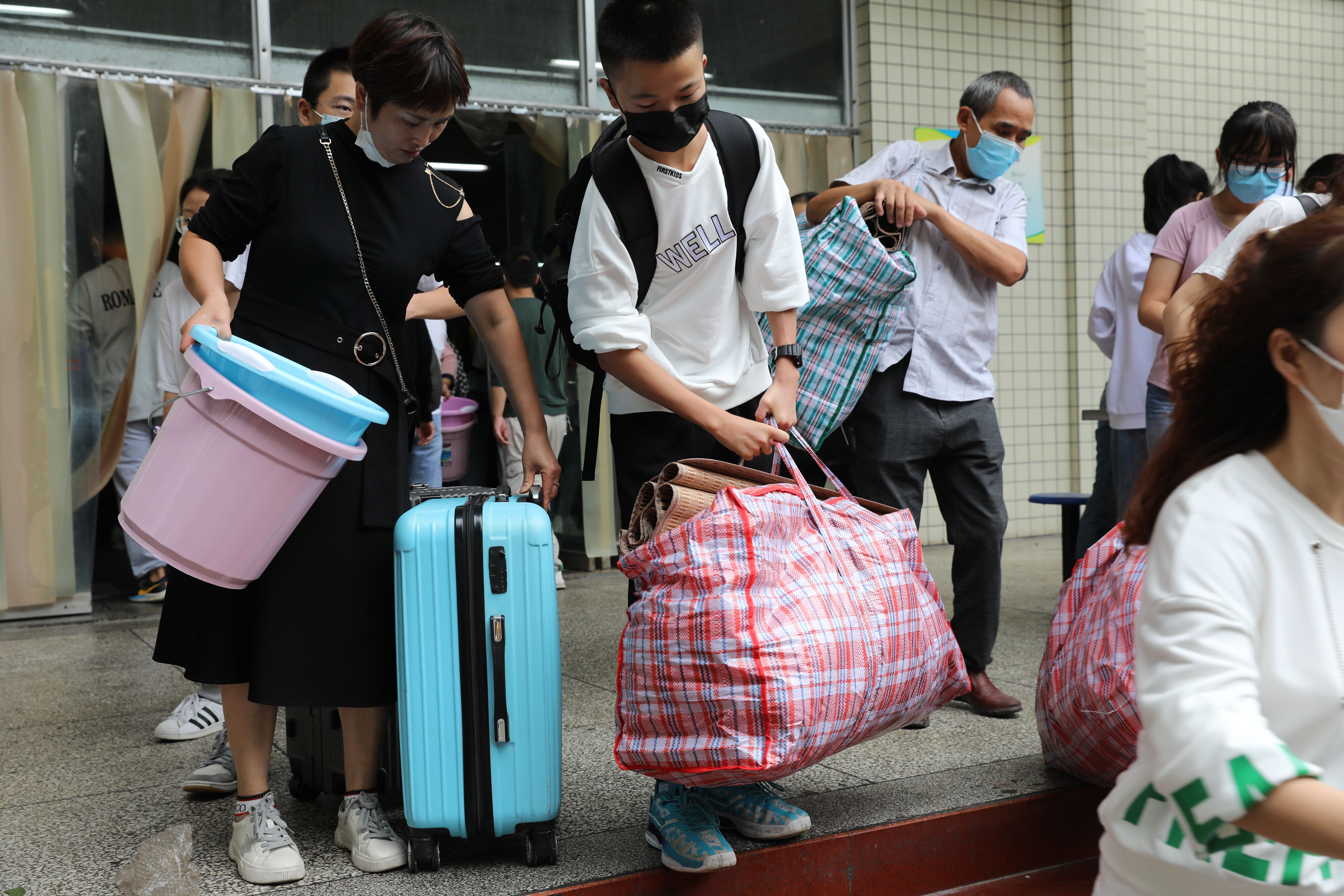 高年級(jí)志愿者幫助七年級(jí)新生搬行李