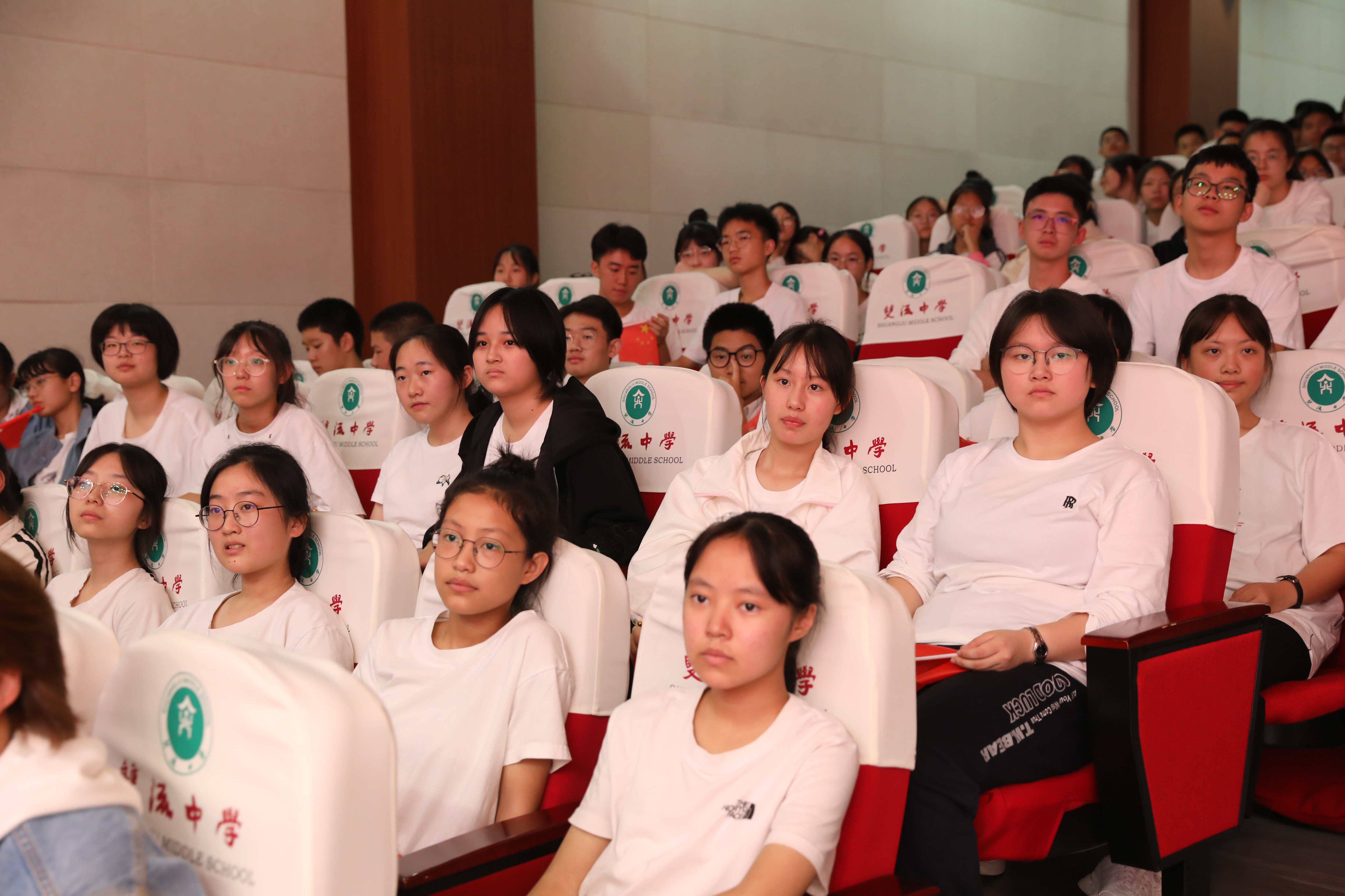 臺(tái)下的同學(xué)欣賞其他班級(jí)合唱演出