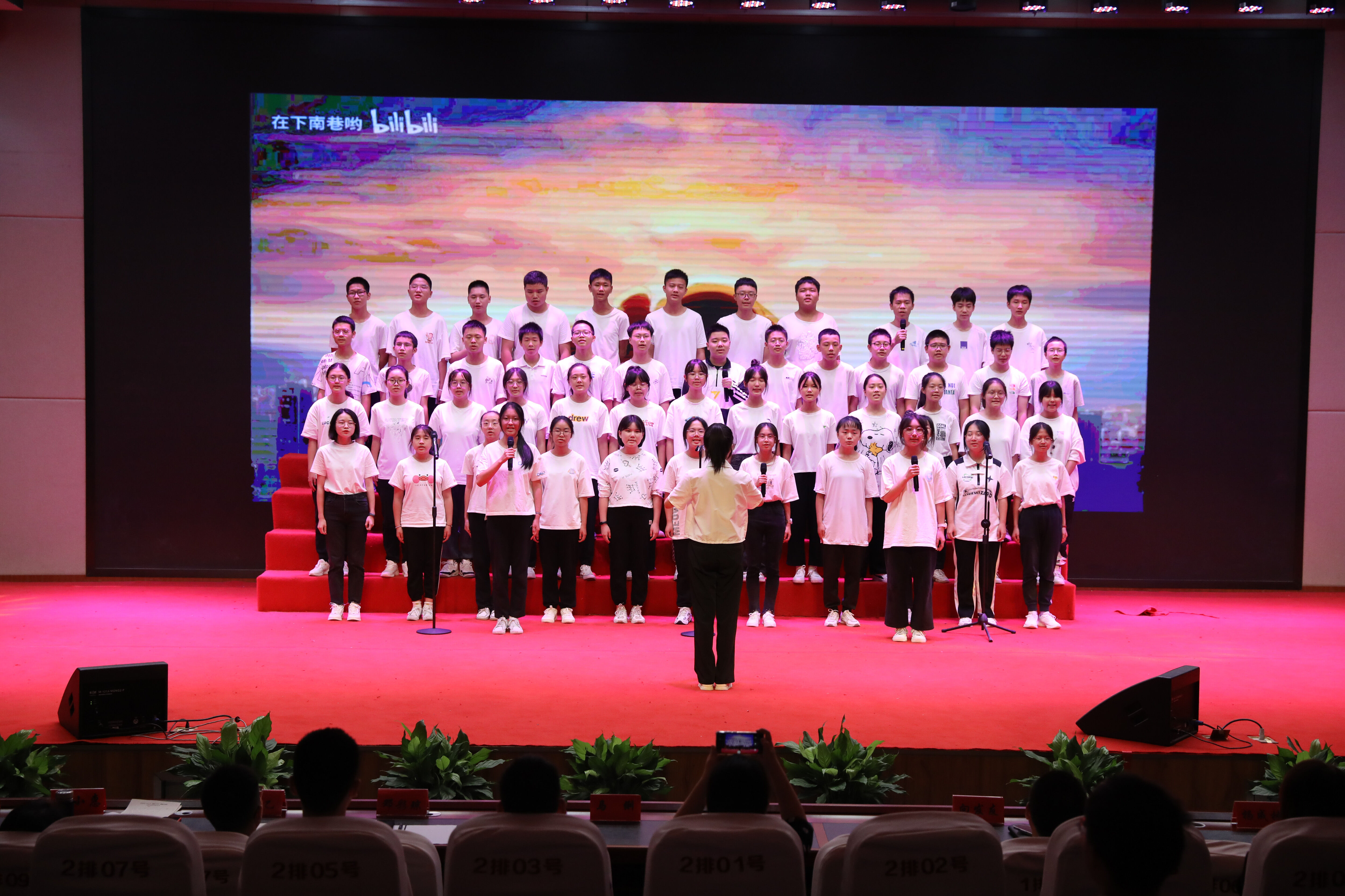 臺(tái)下的同學(xué)欣賞其他班級(jí)的合唱演出