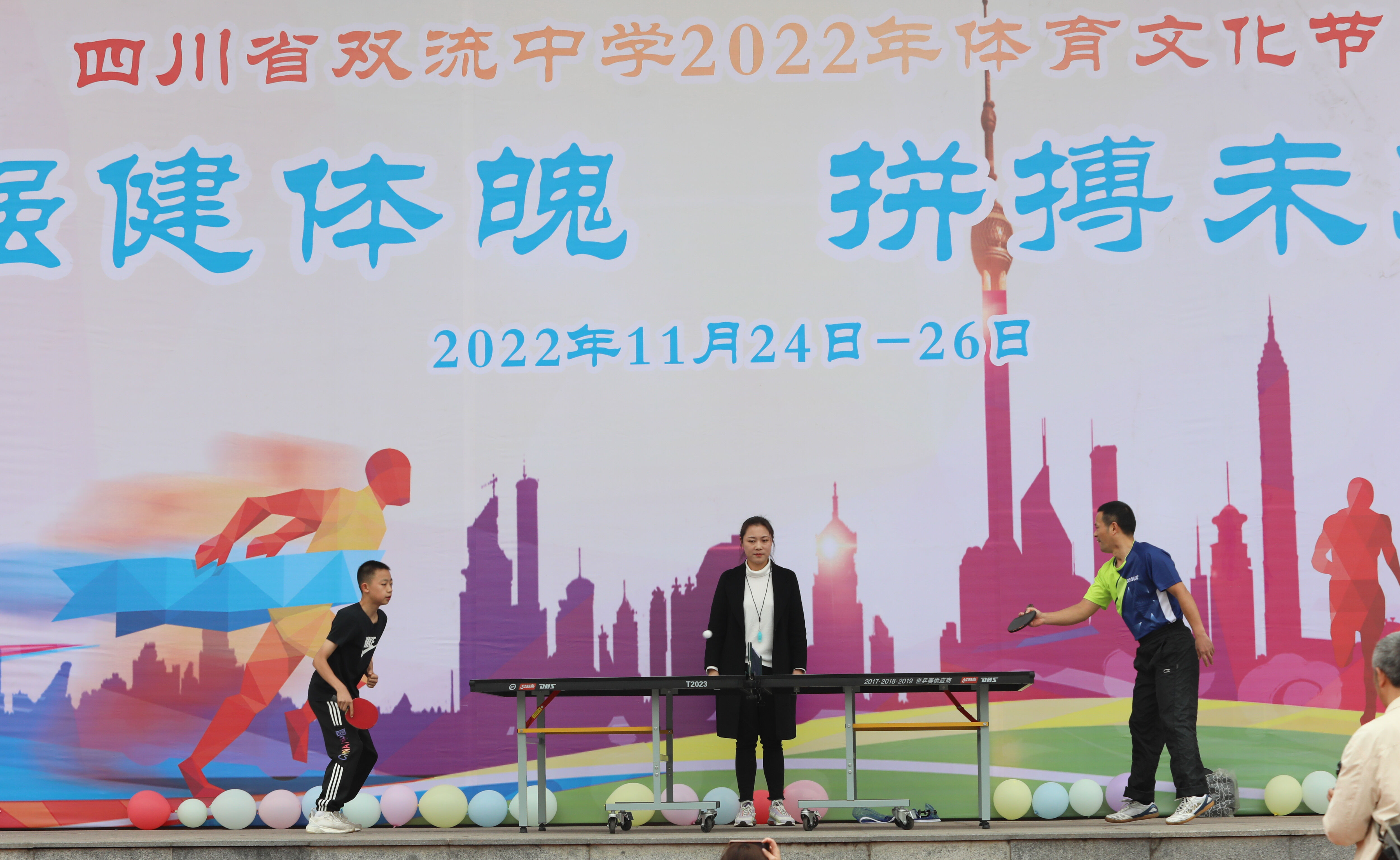 2022年11月24日,在“2022雙流中學(xué)體育文化藝術(shù)節(jié)”初中比賽日中,由學(xué)校羅毅老師和七年級(jí)嚴(yán)森林同學(xué)為師生們帶來(lái)了一場(chǎng)精彩的師生乒乓球挑戰(zhàn)賽。