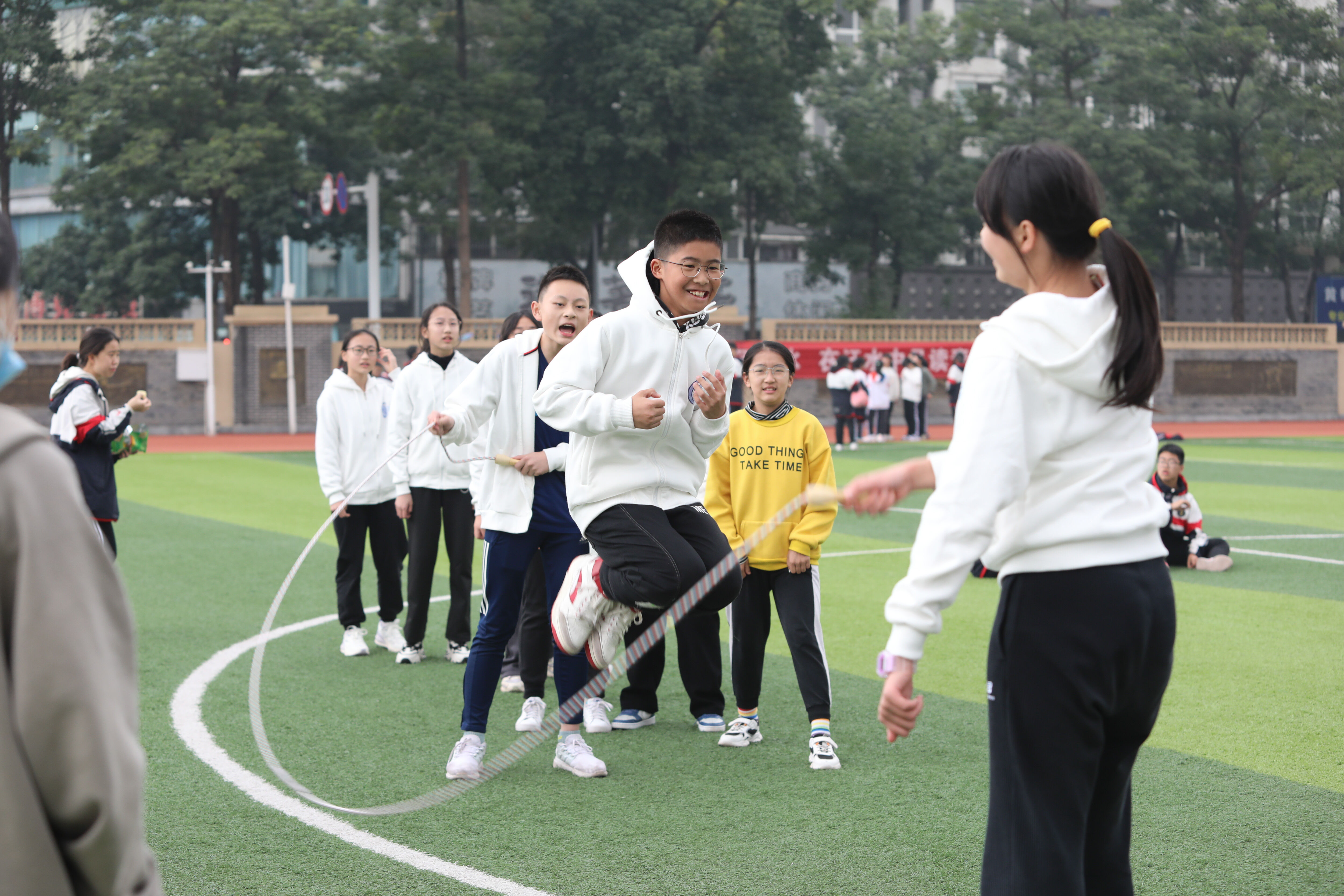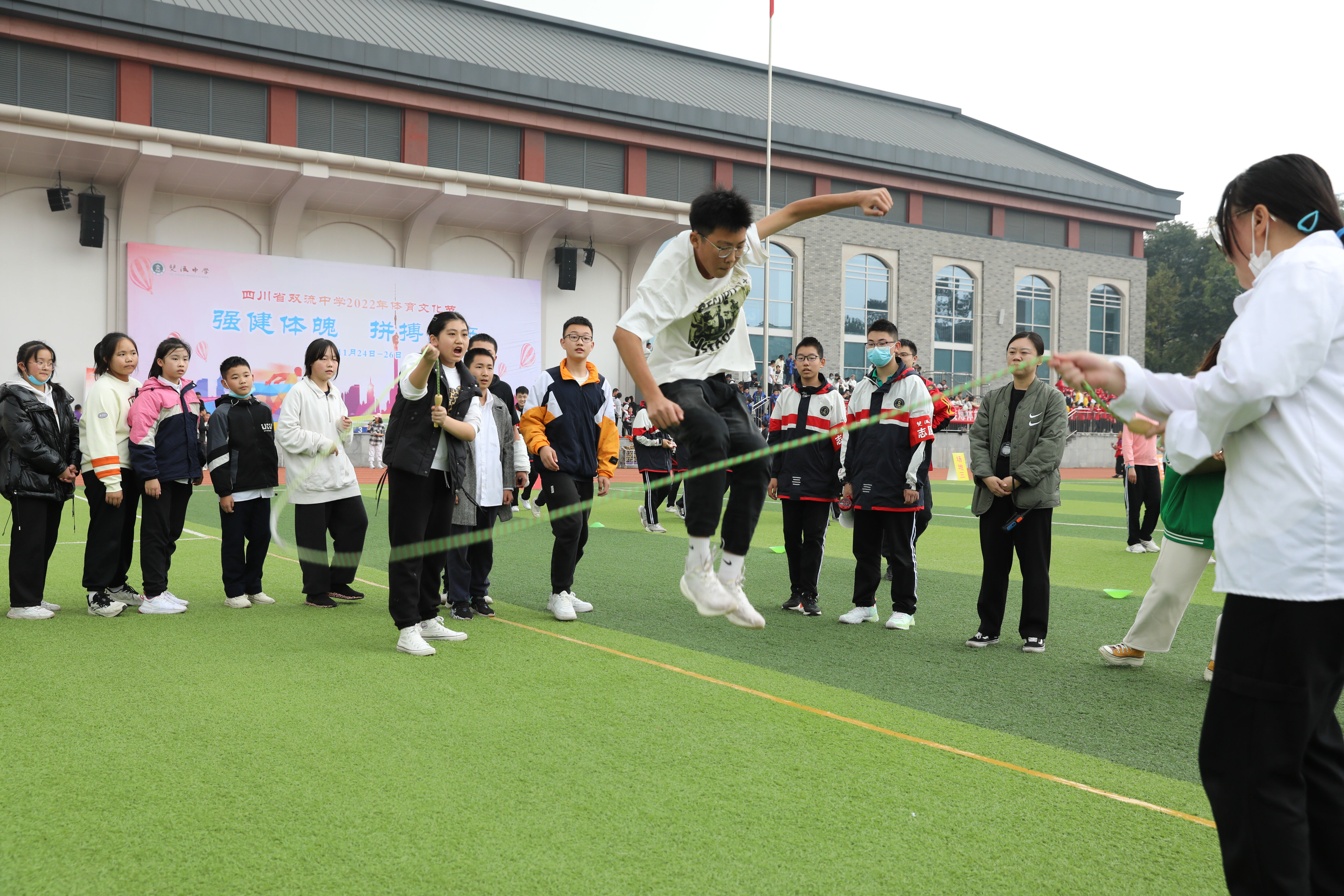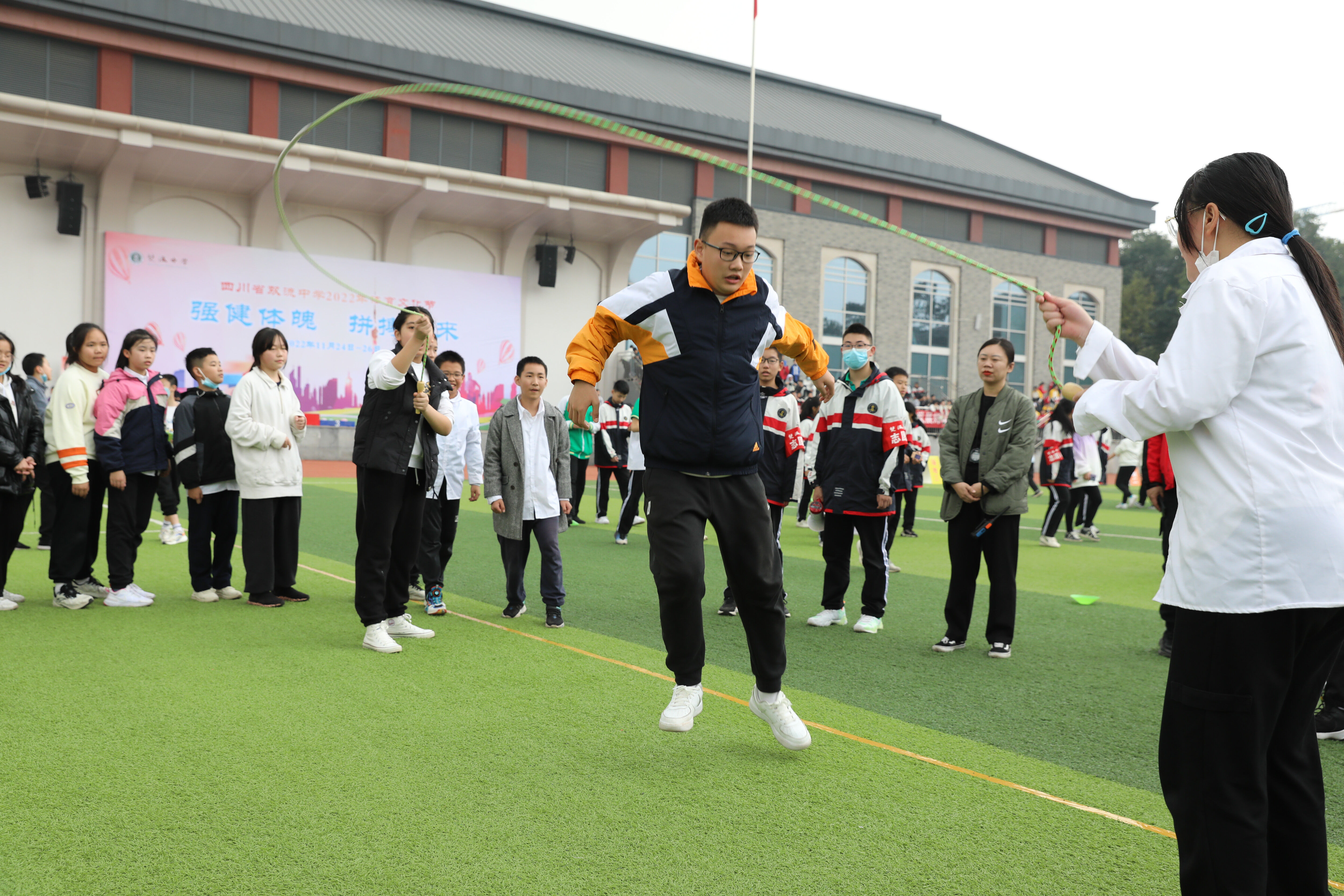 2022年11月24日下午14:30,七年級趣味跳繩比賽如期舉行。
