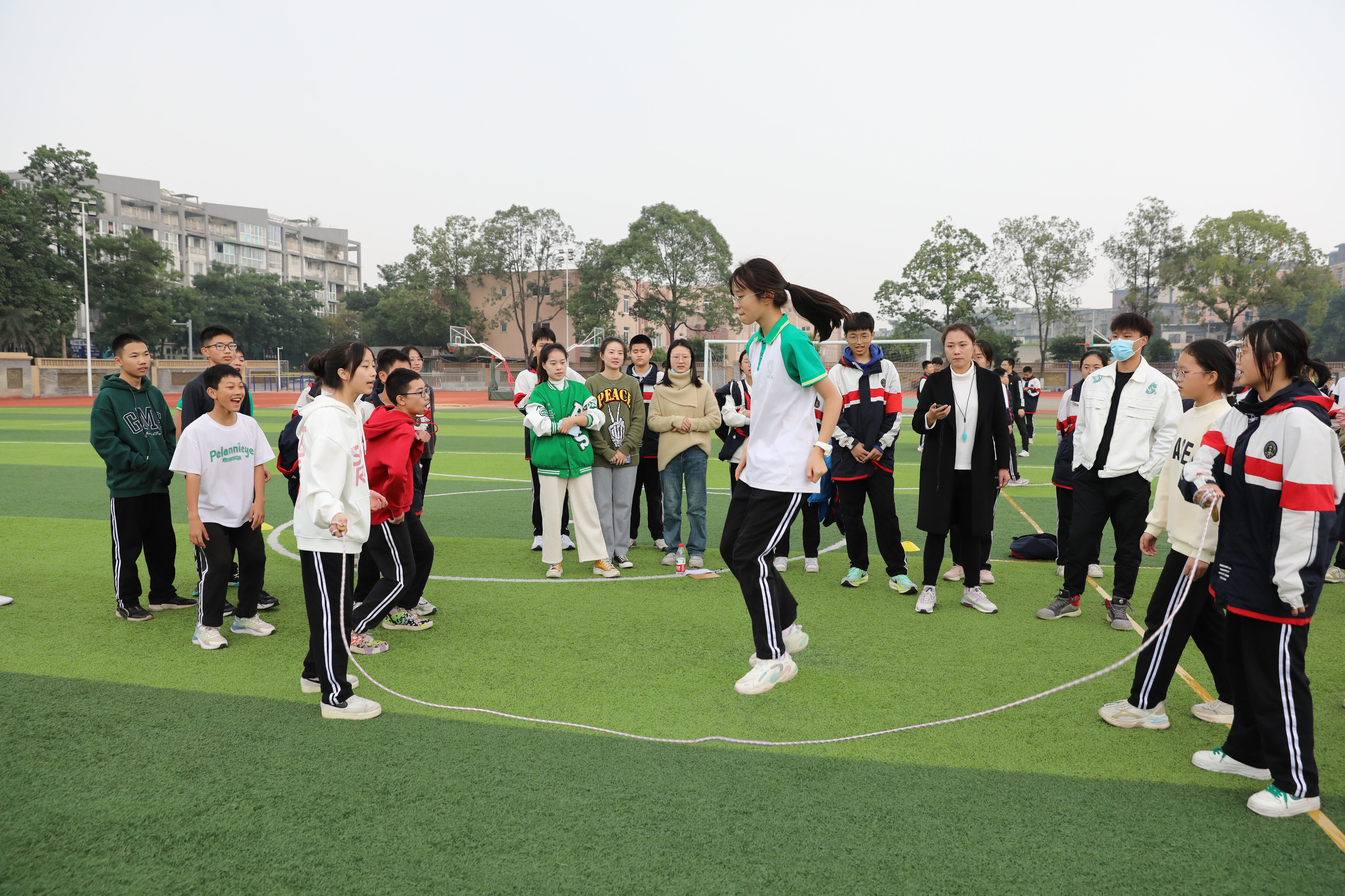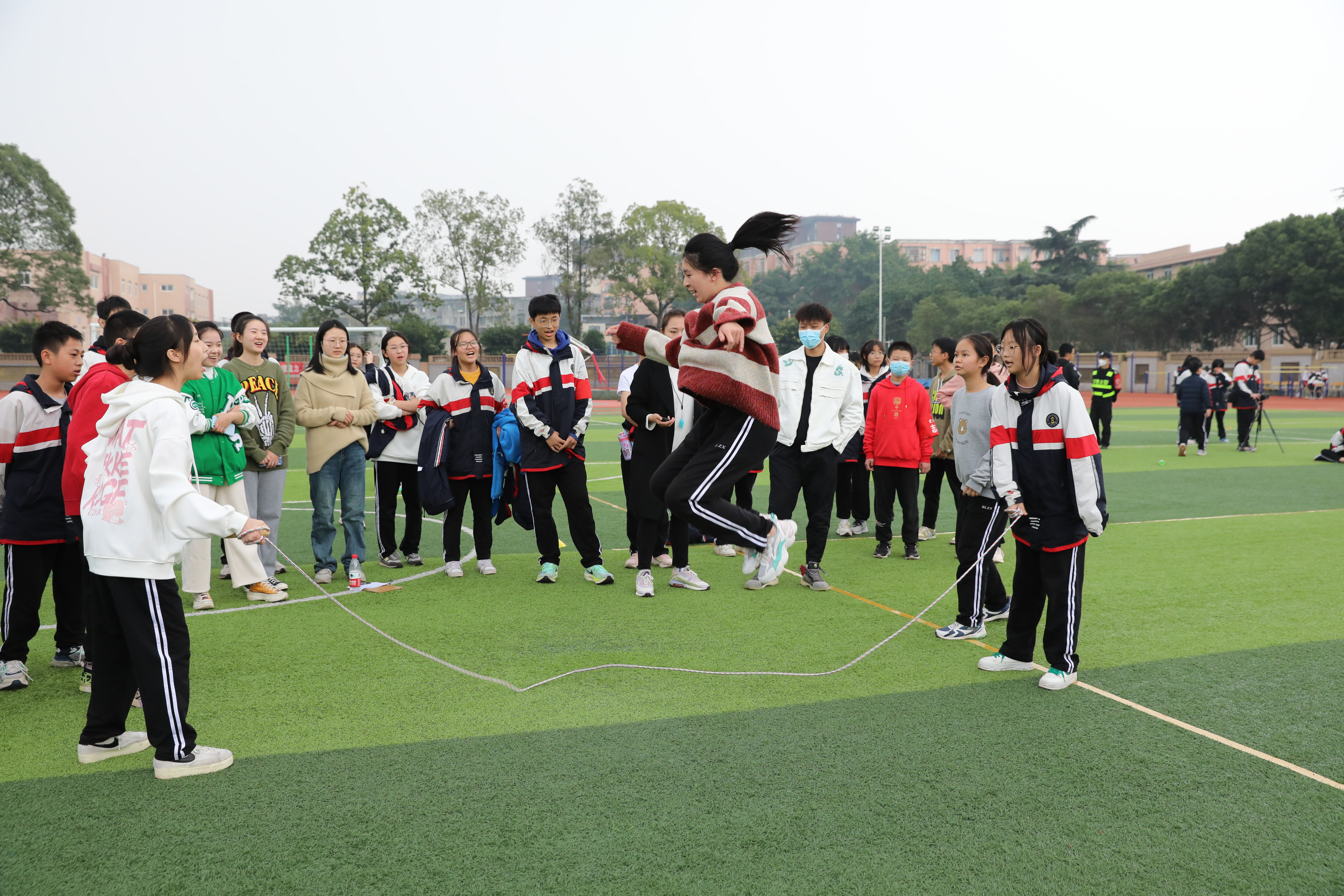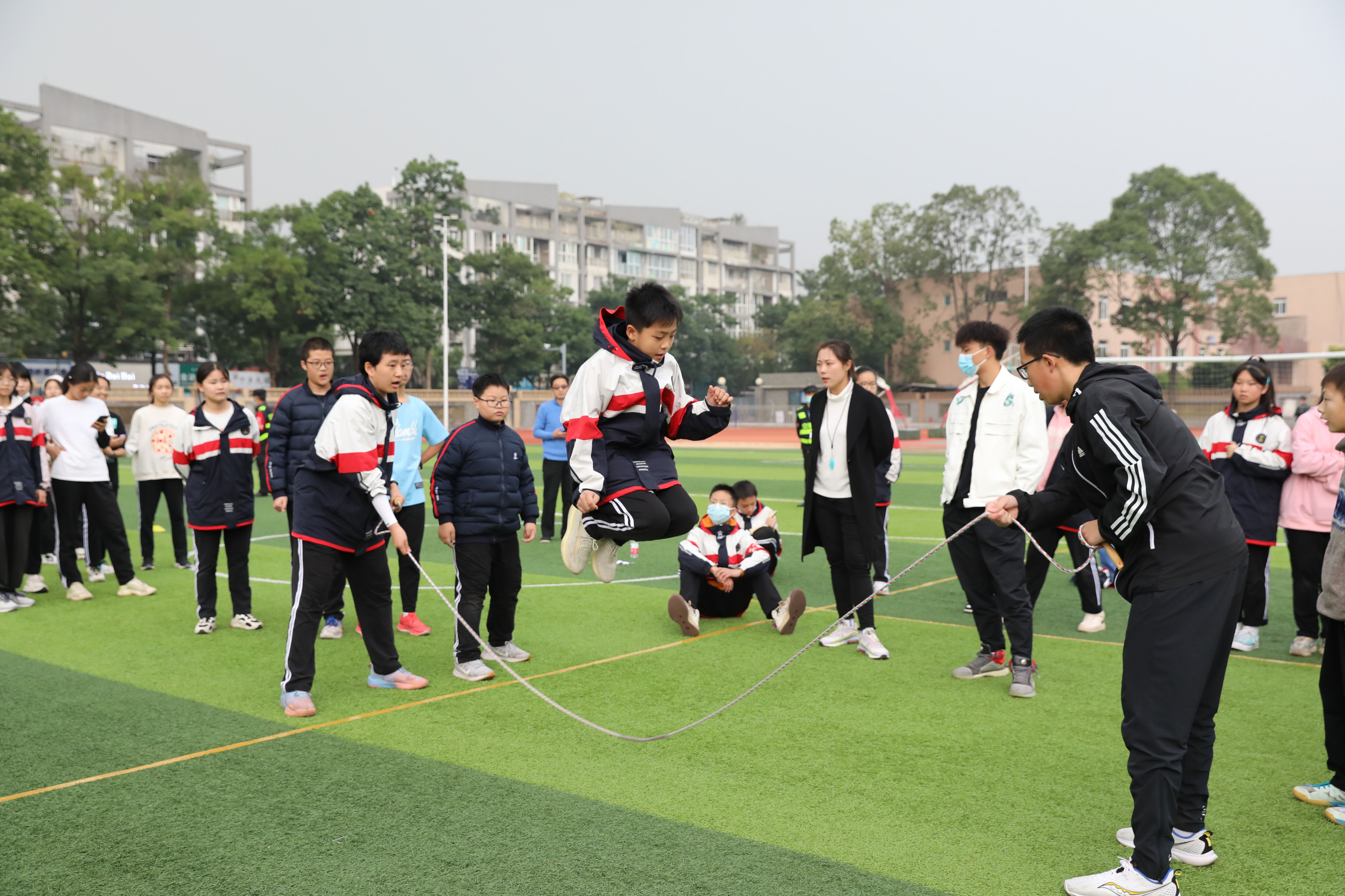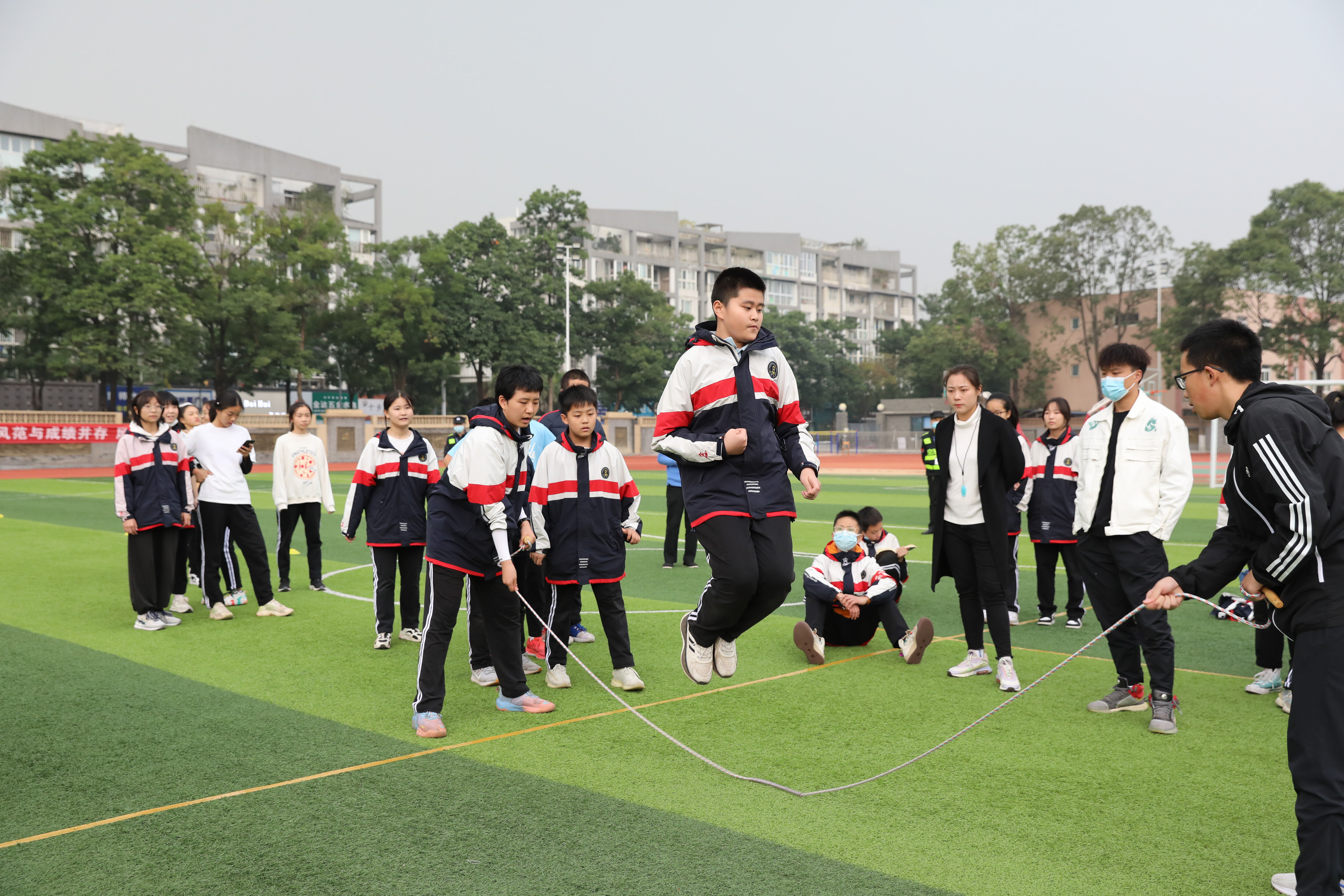 八年級(jí)趣味跳繩比賽,觀賽的同學(xué)