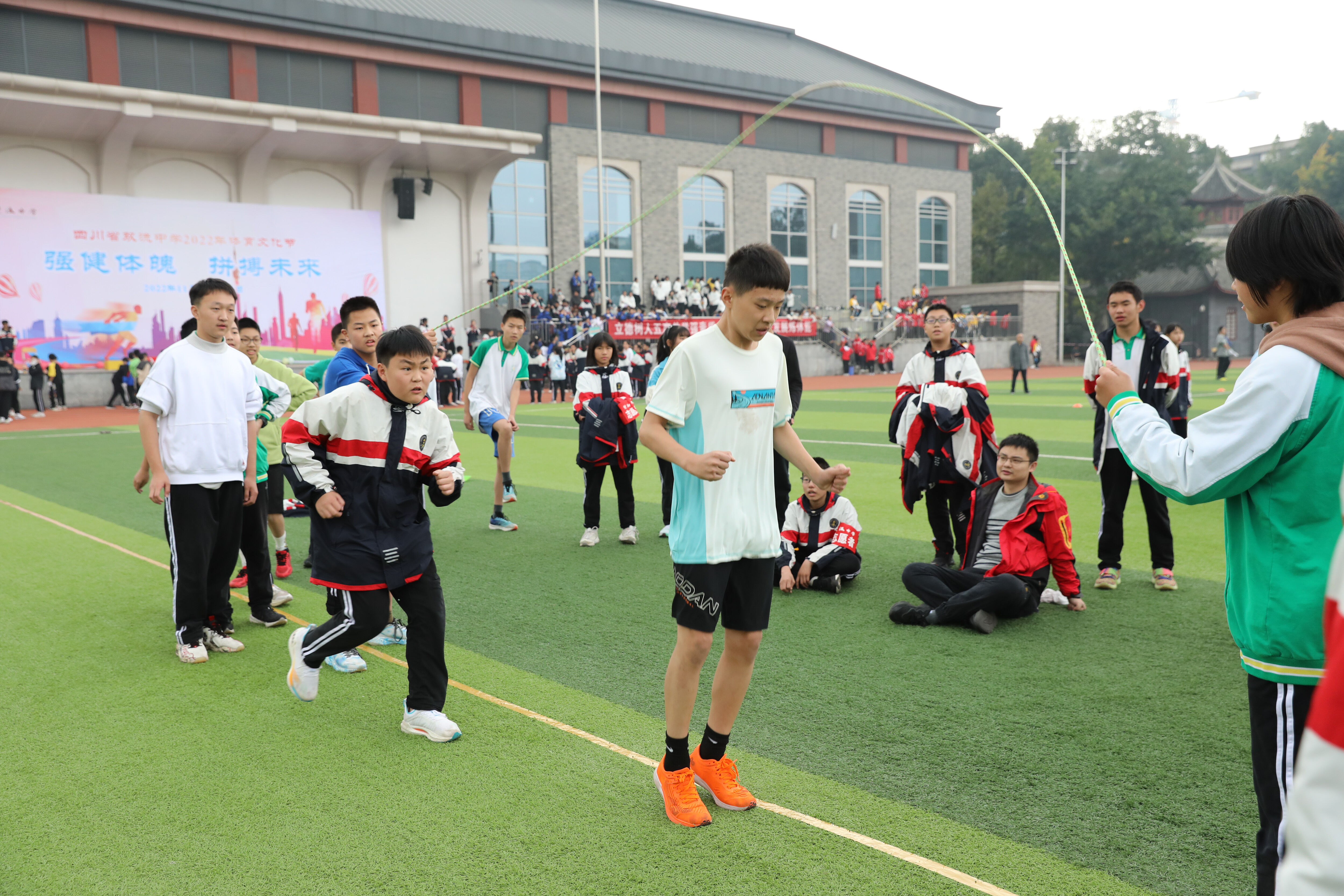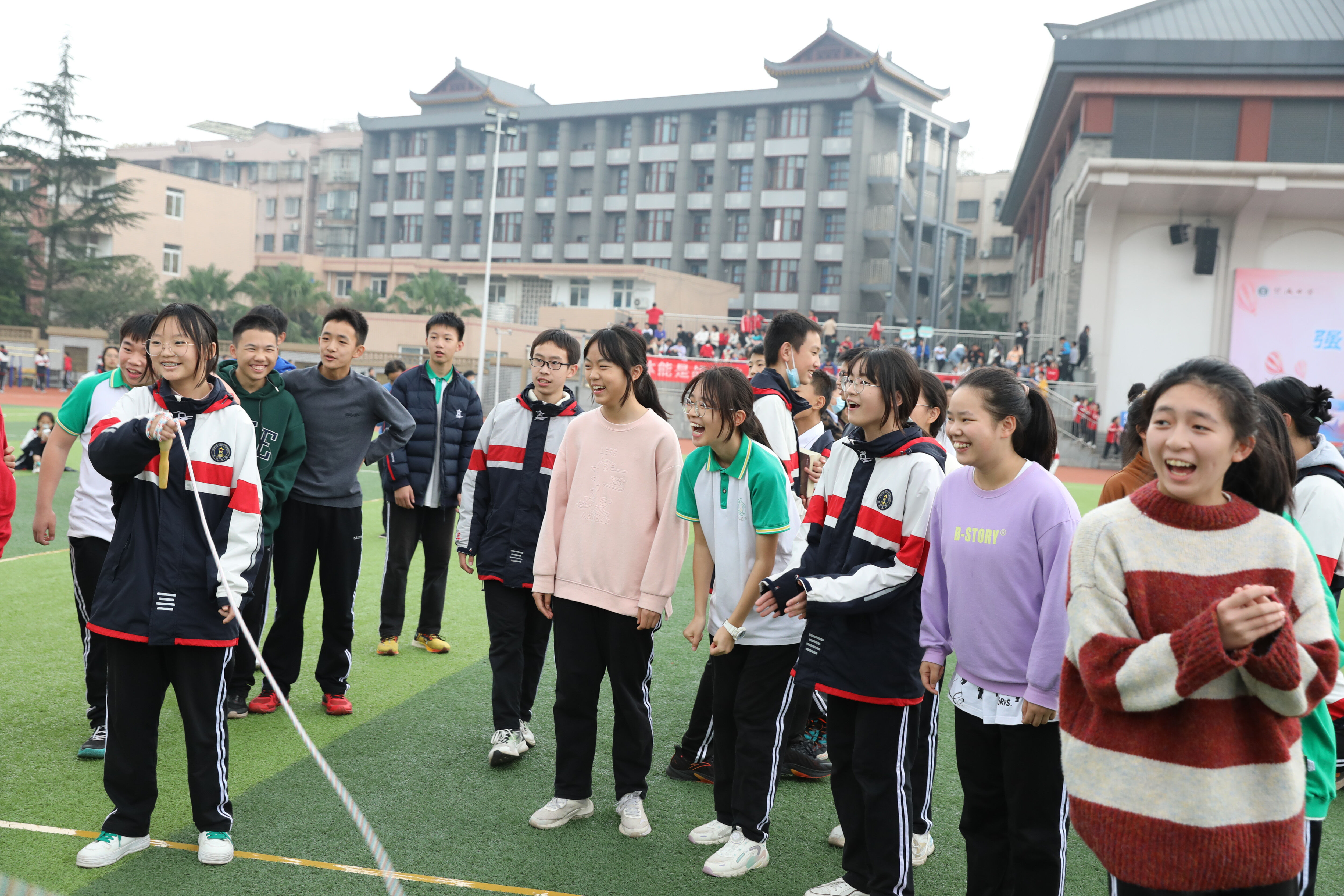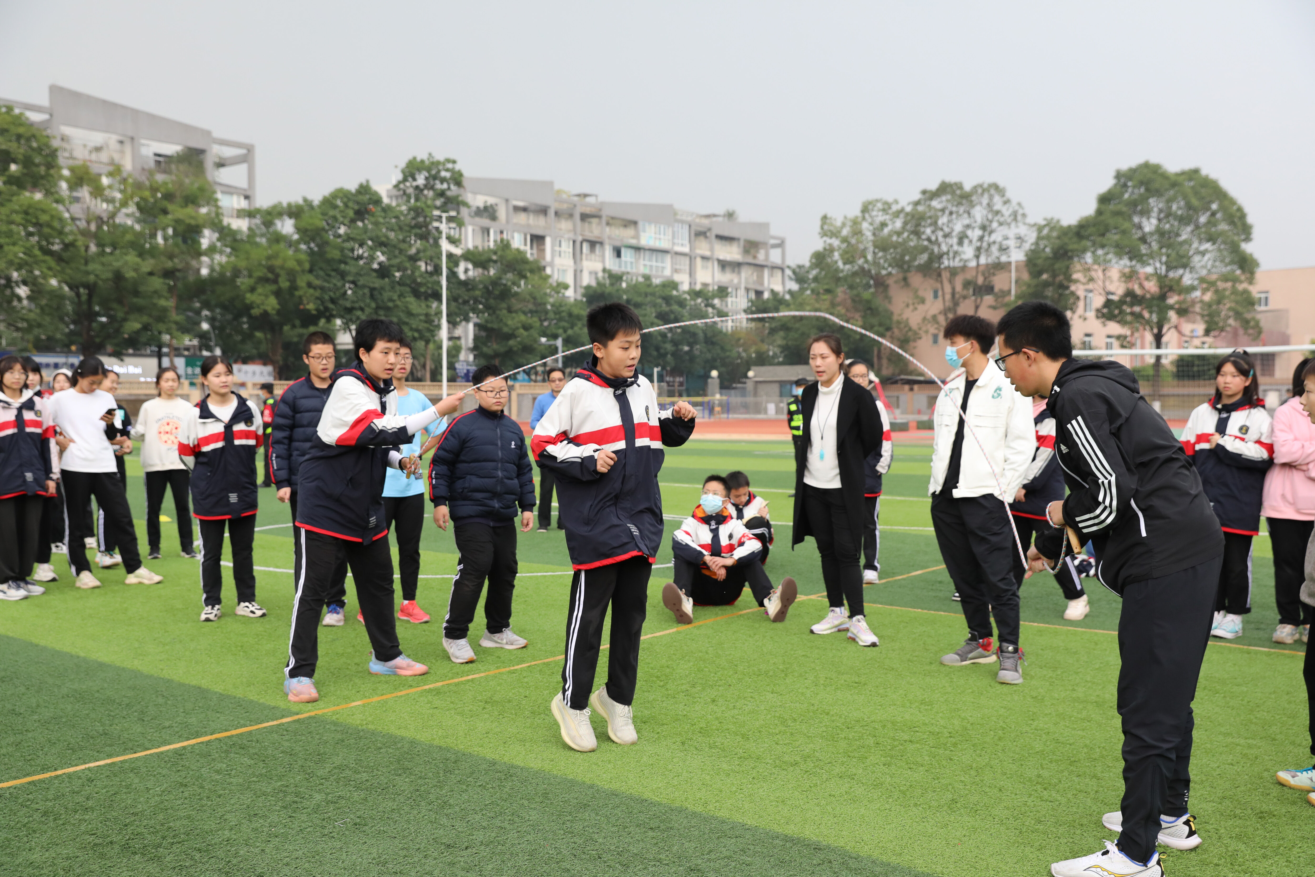 八年級(jí)趣味跳繩比賽,觀賽的同學(xué)