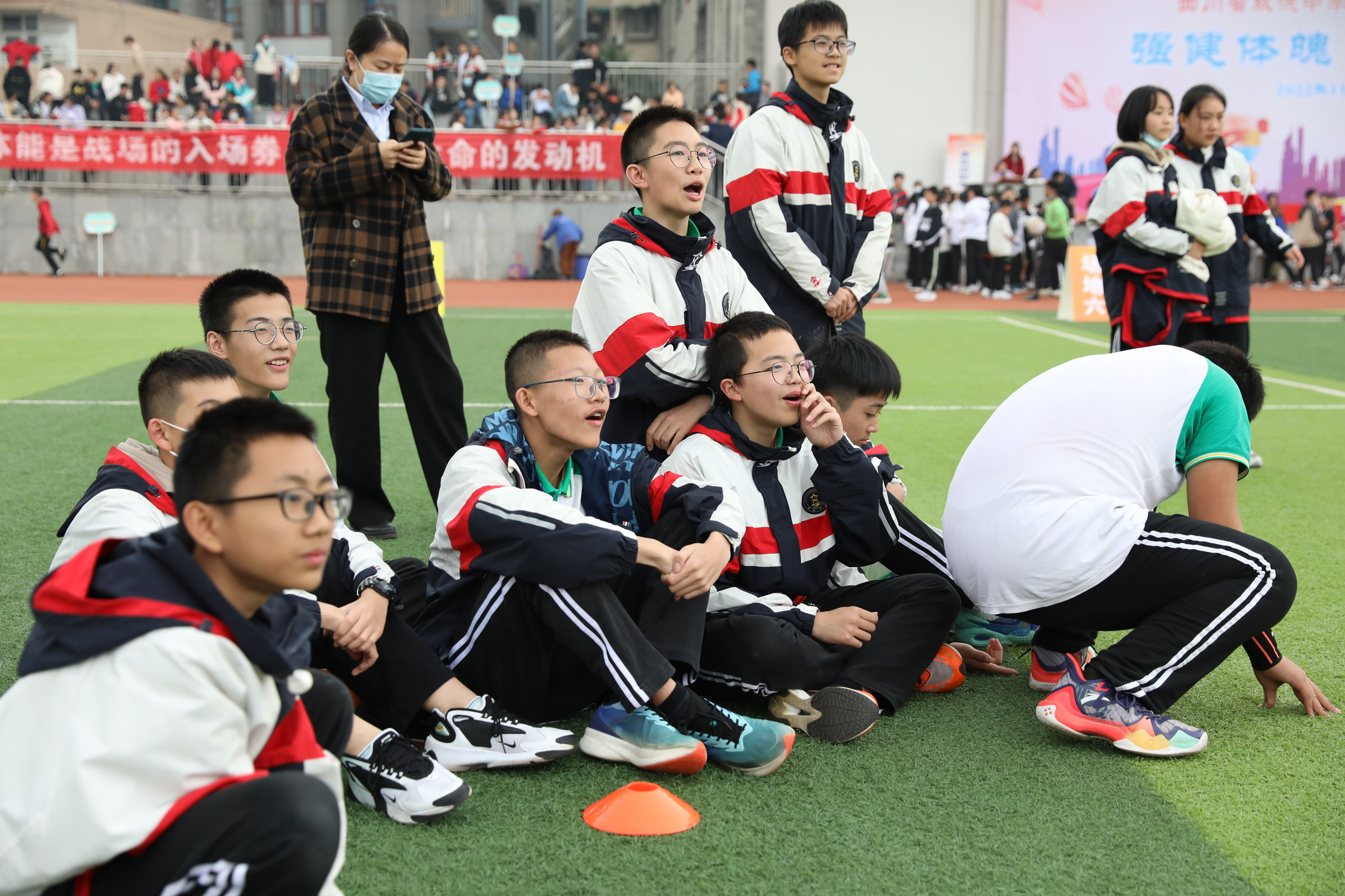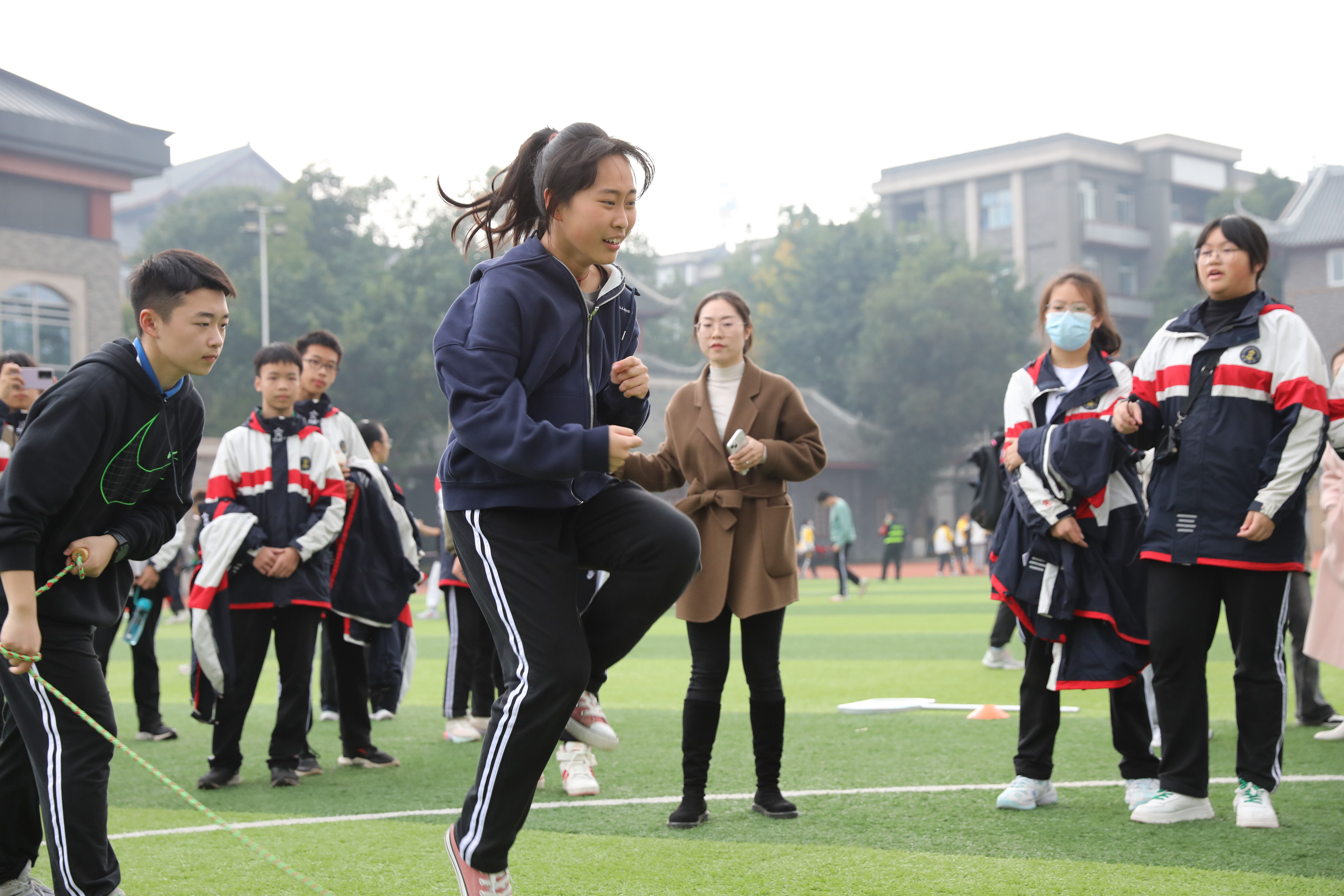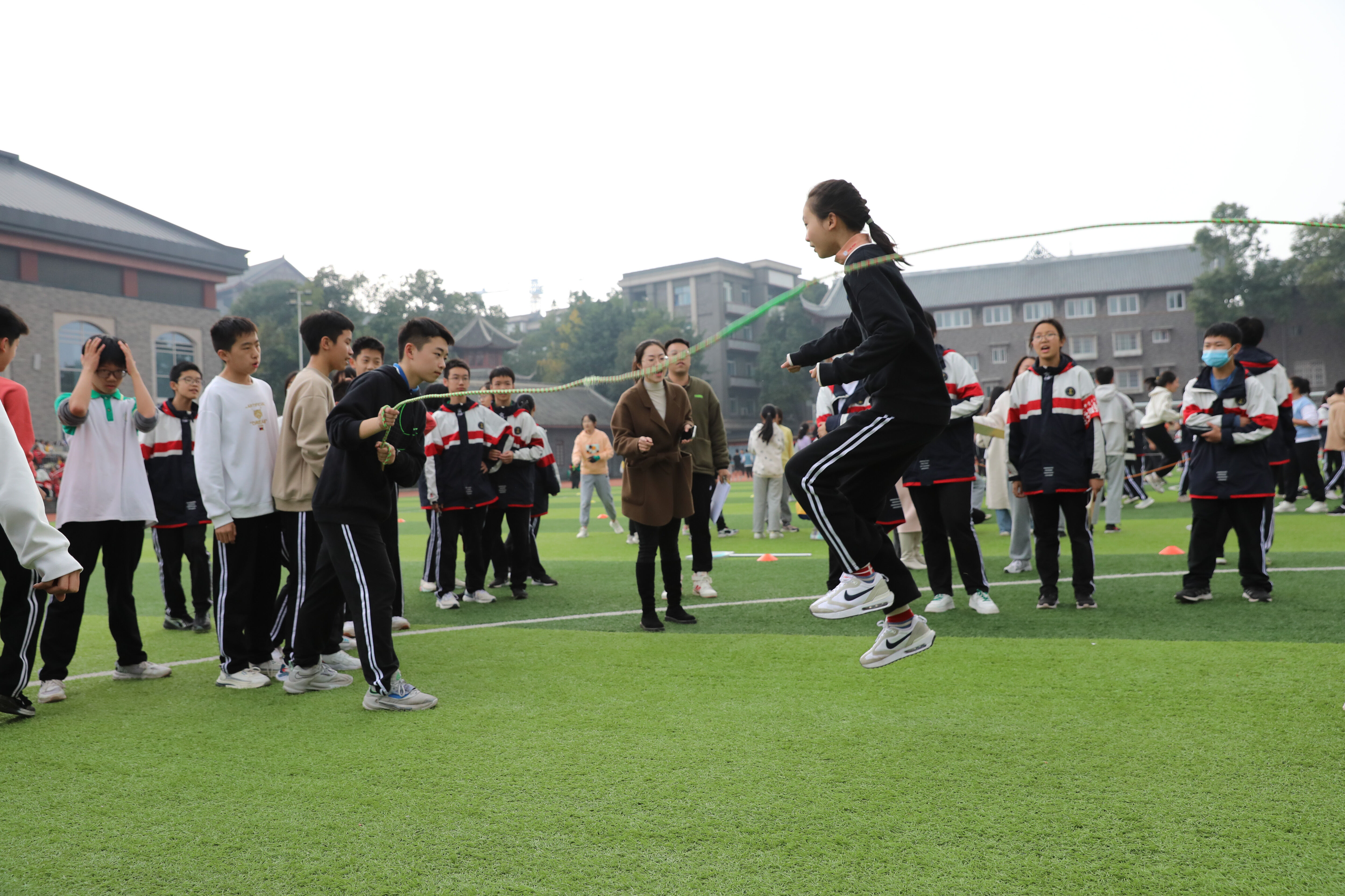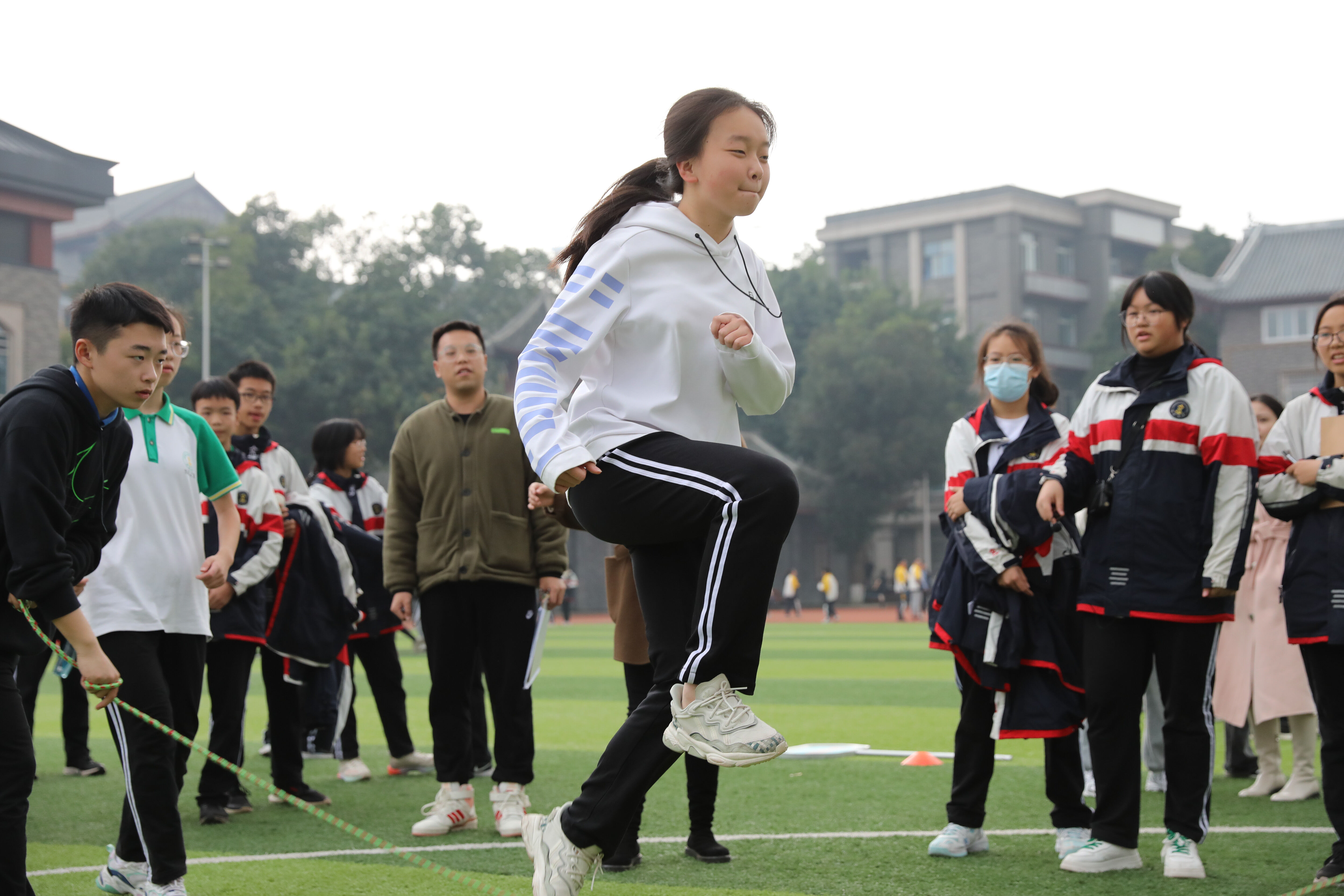 八年級(jí)趣味跳繩比賽,觀賽的同學(xué)