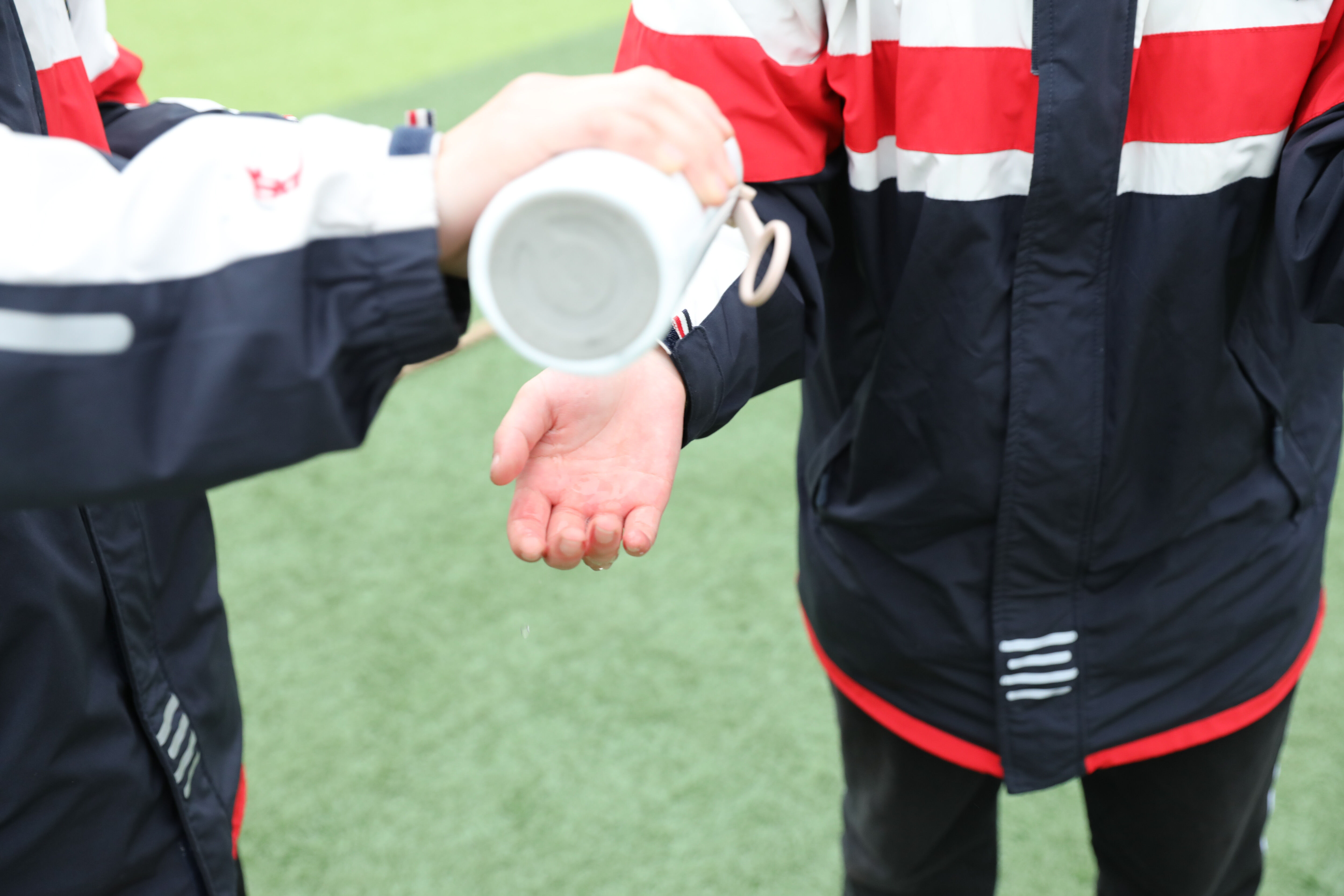 參賽同學手都快磨破了,澆點水緩解