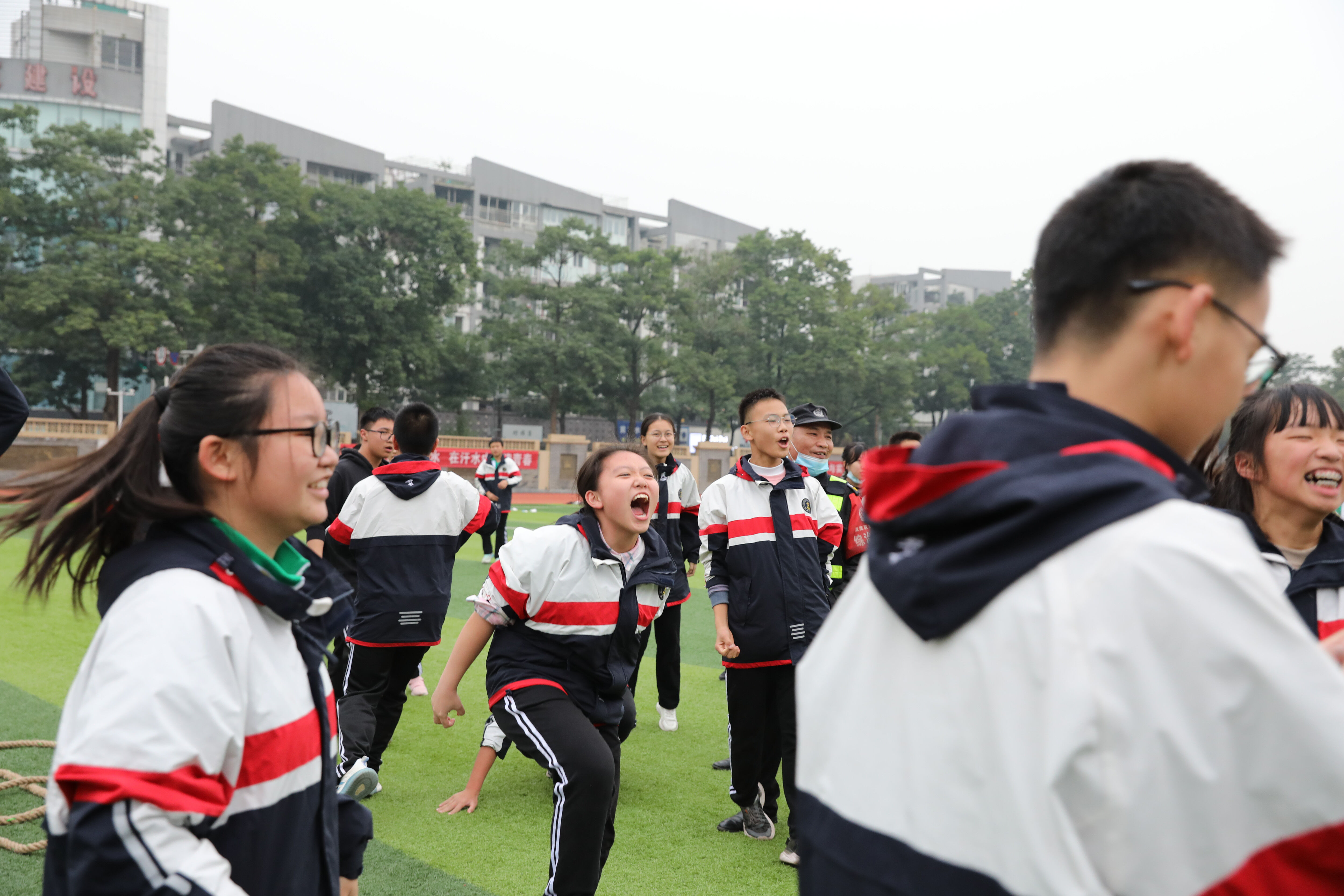 最終由八年級5班獲勝(圖為5班學生獲勝后歡呼、吶喊)