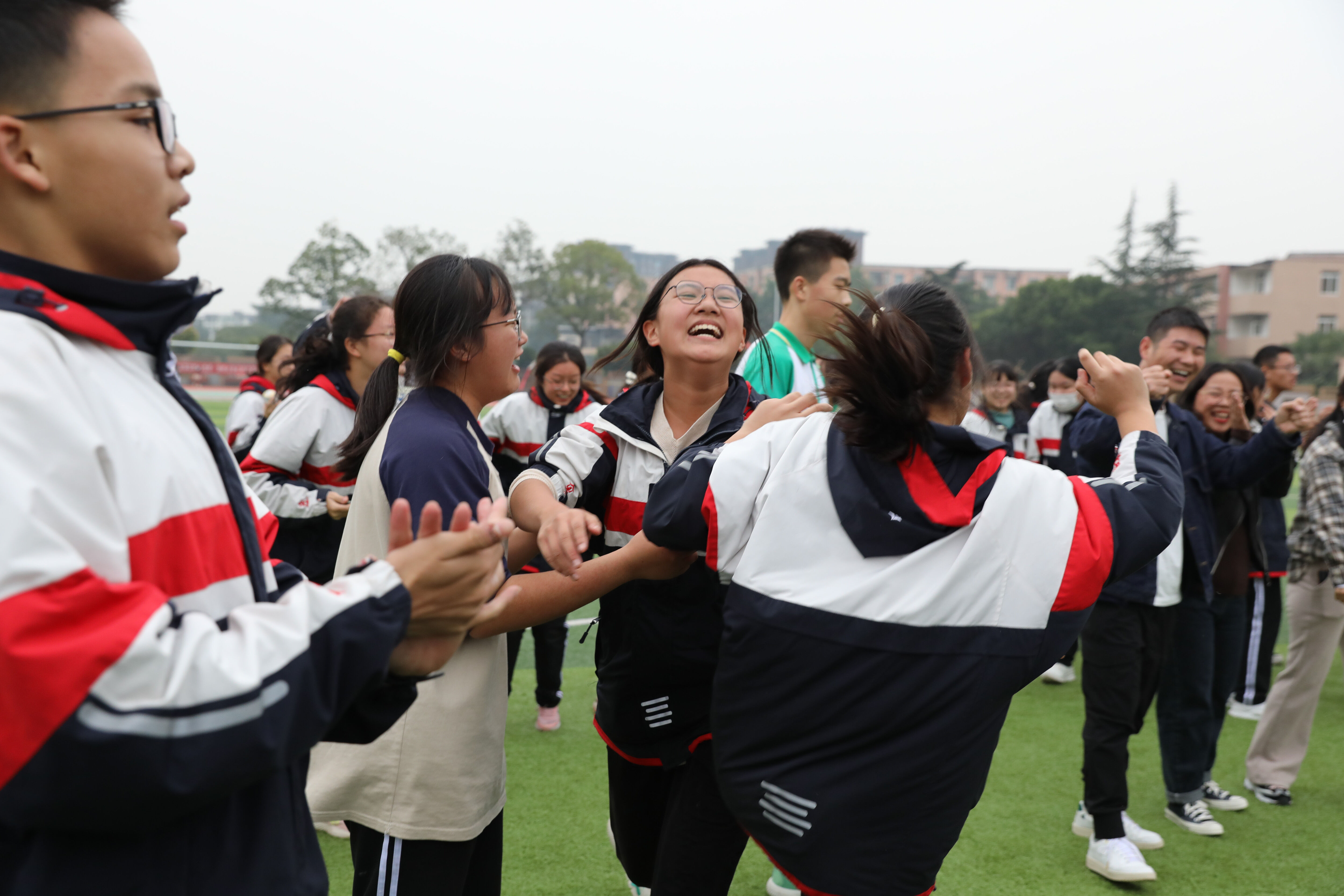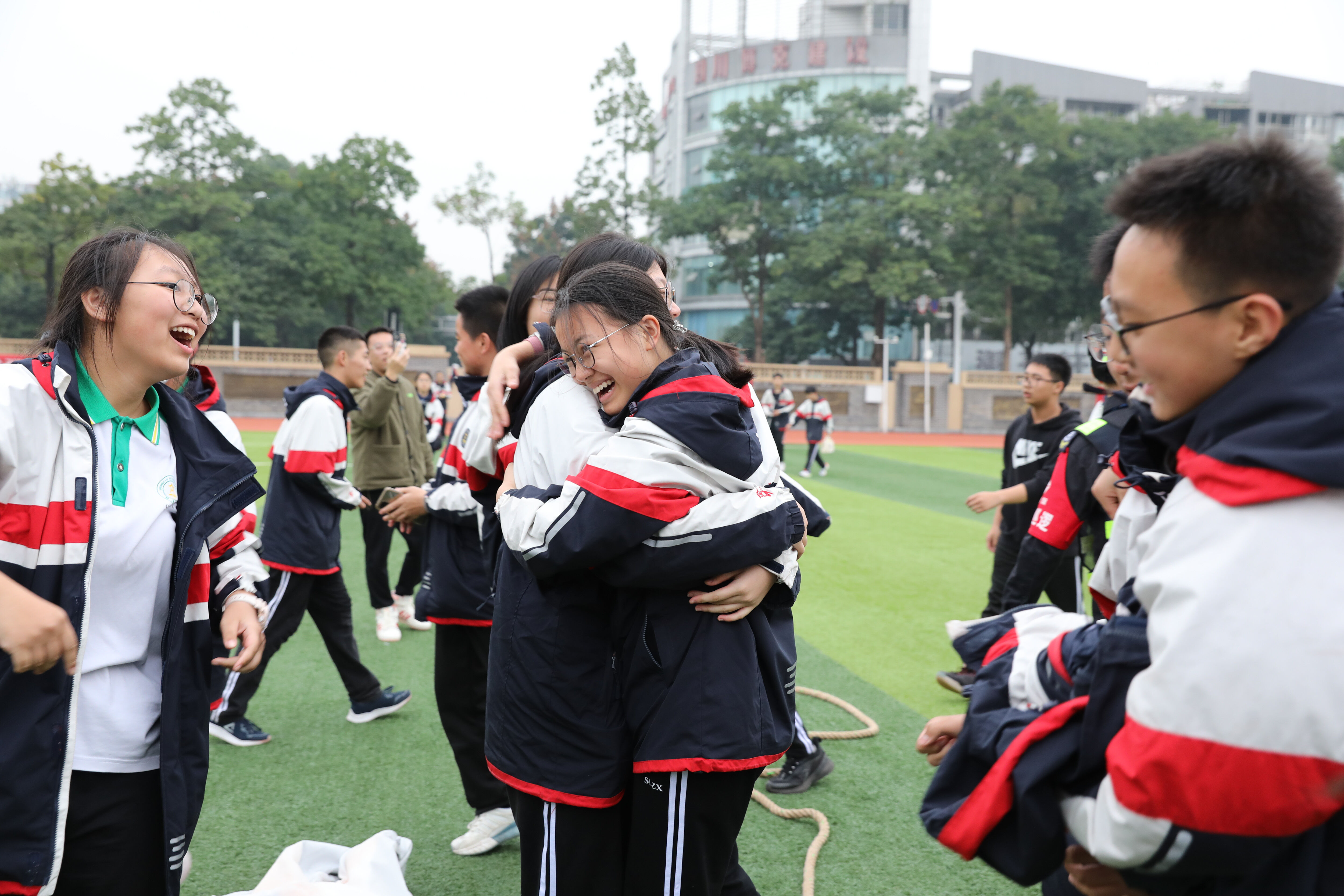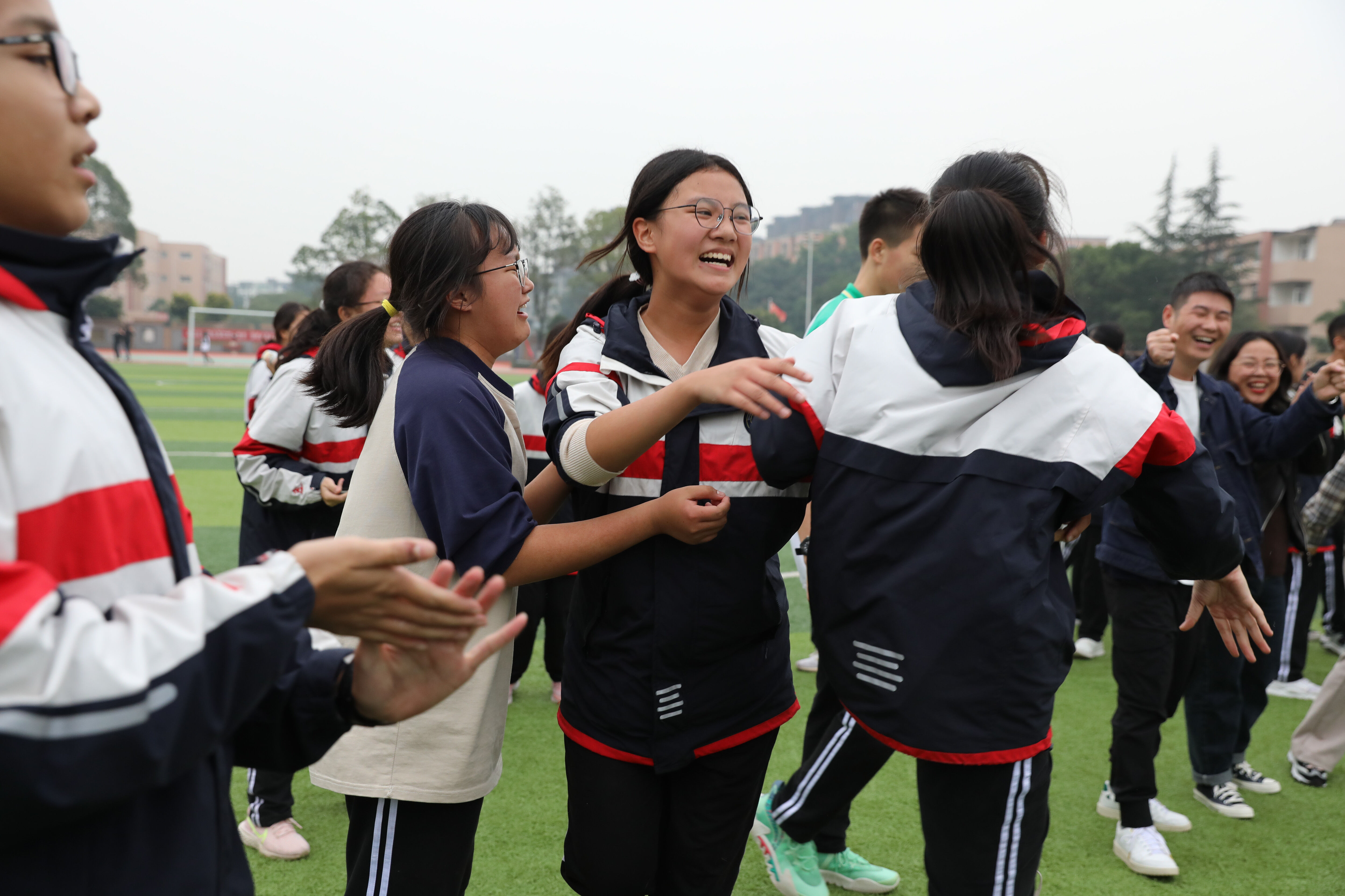 最終由八年級5班獲勝(圖為5班學生獲勝后歡呼)