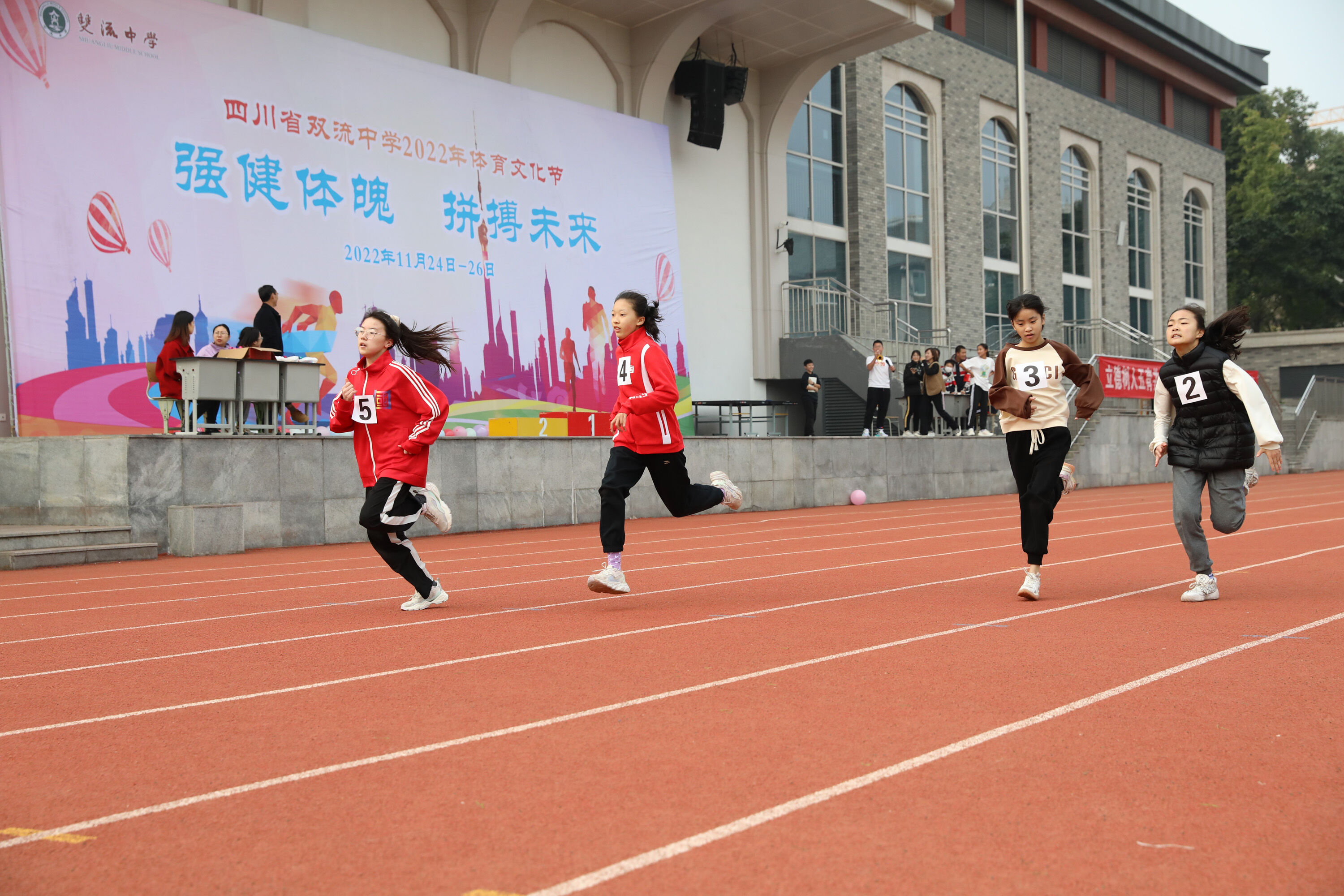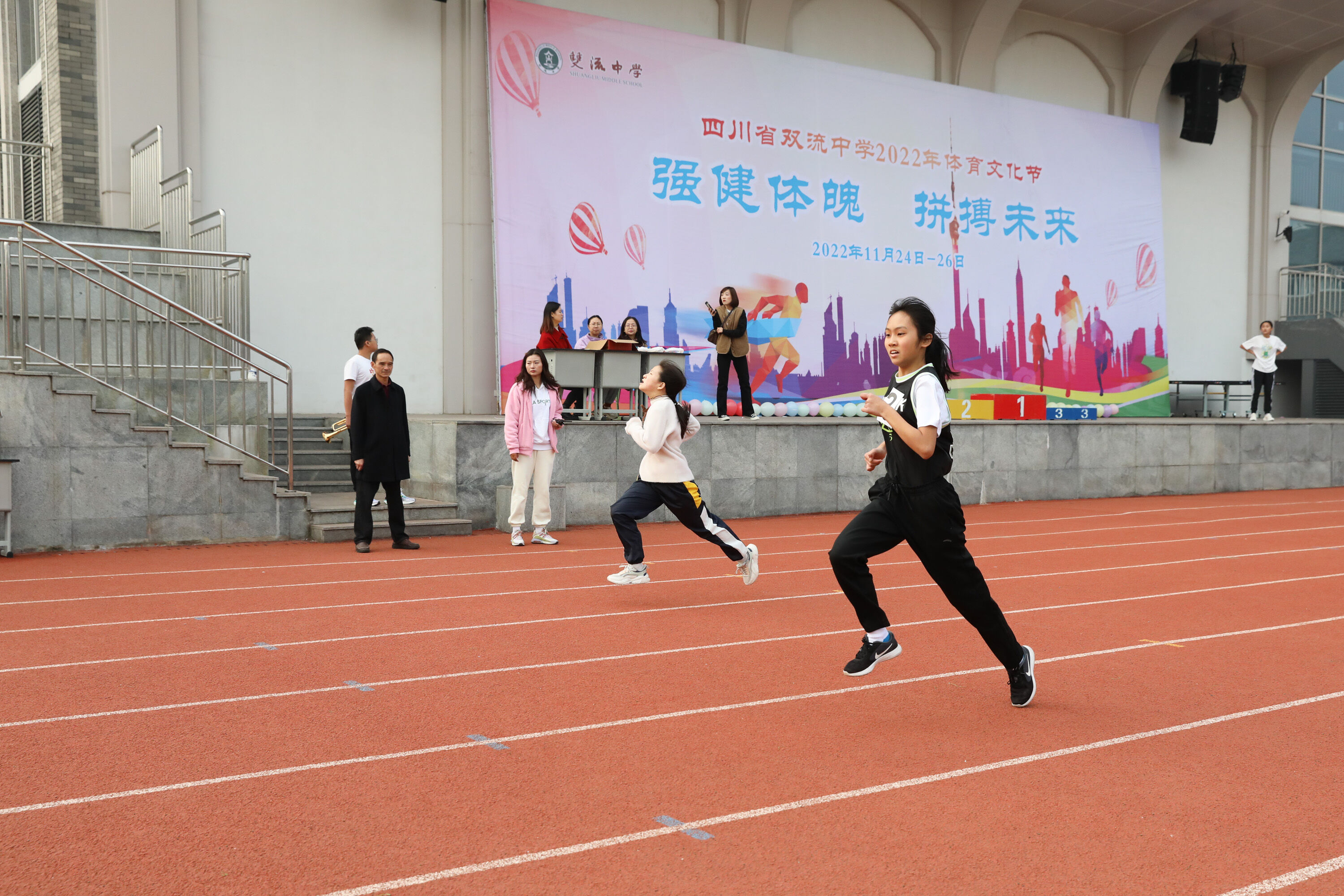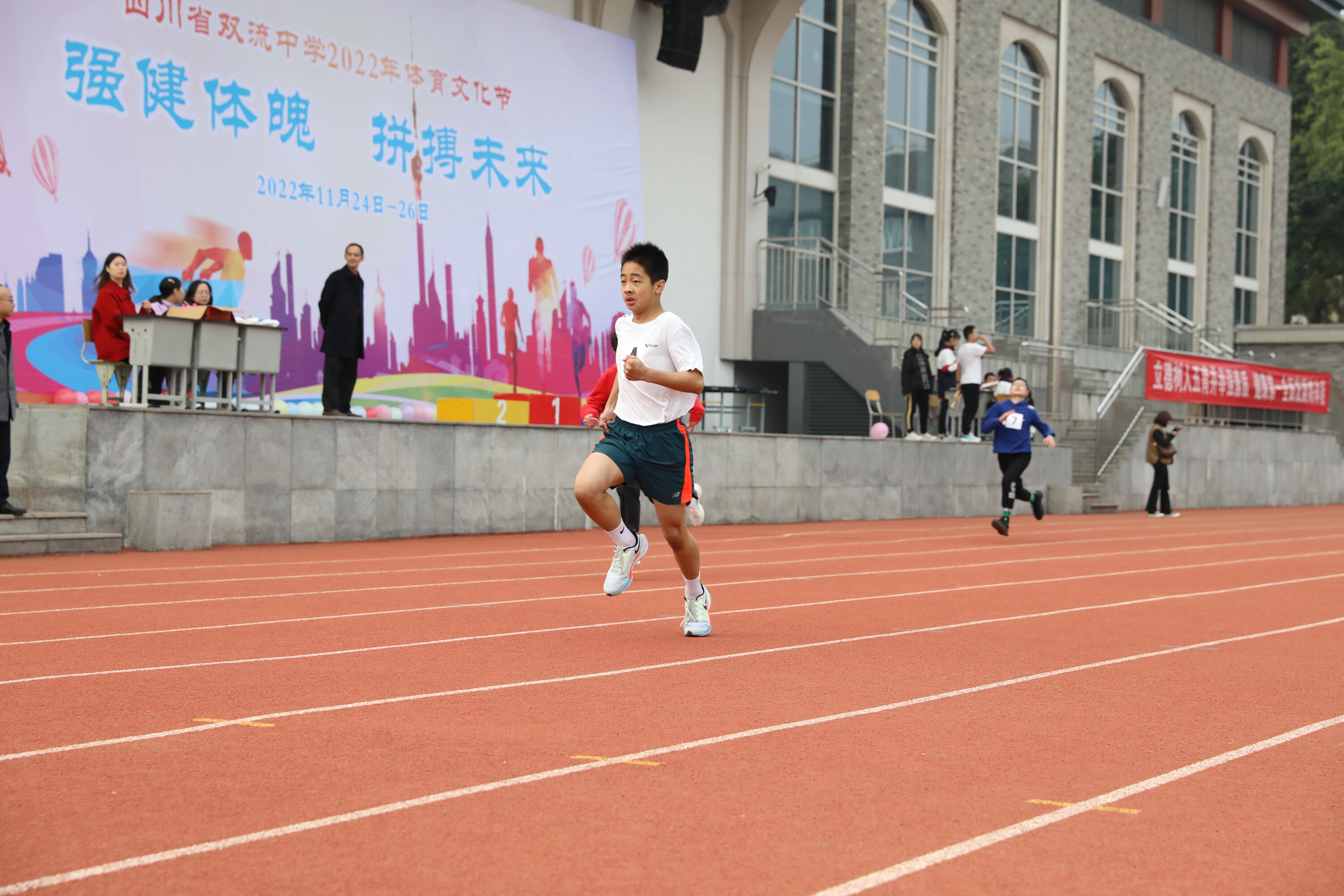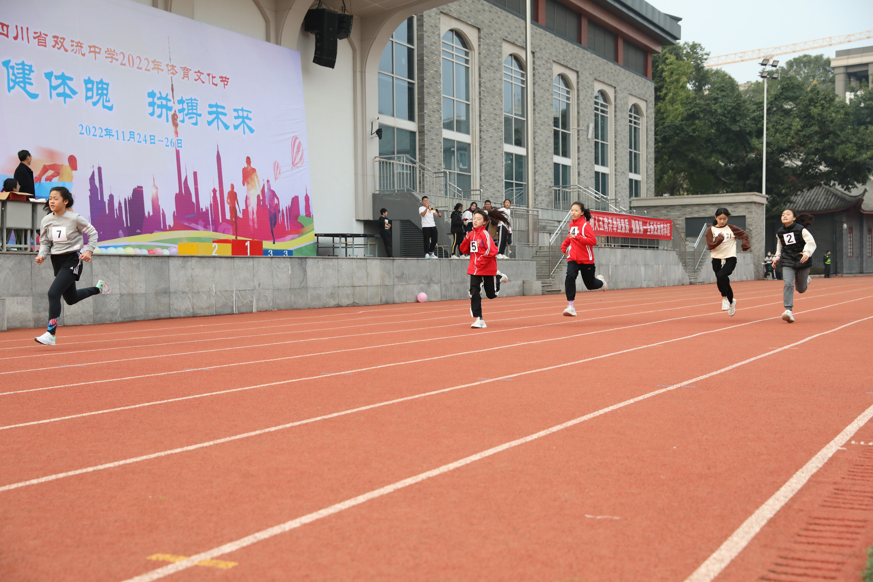 2022年11月24日-26日,雙流中學(xué)舉辦了一年一度的體育文化節(jié)。七年級200米比賽在24日上午舉行。(圖為 七年級男子200米比賽)