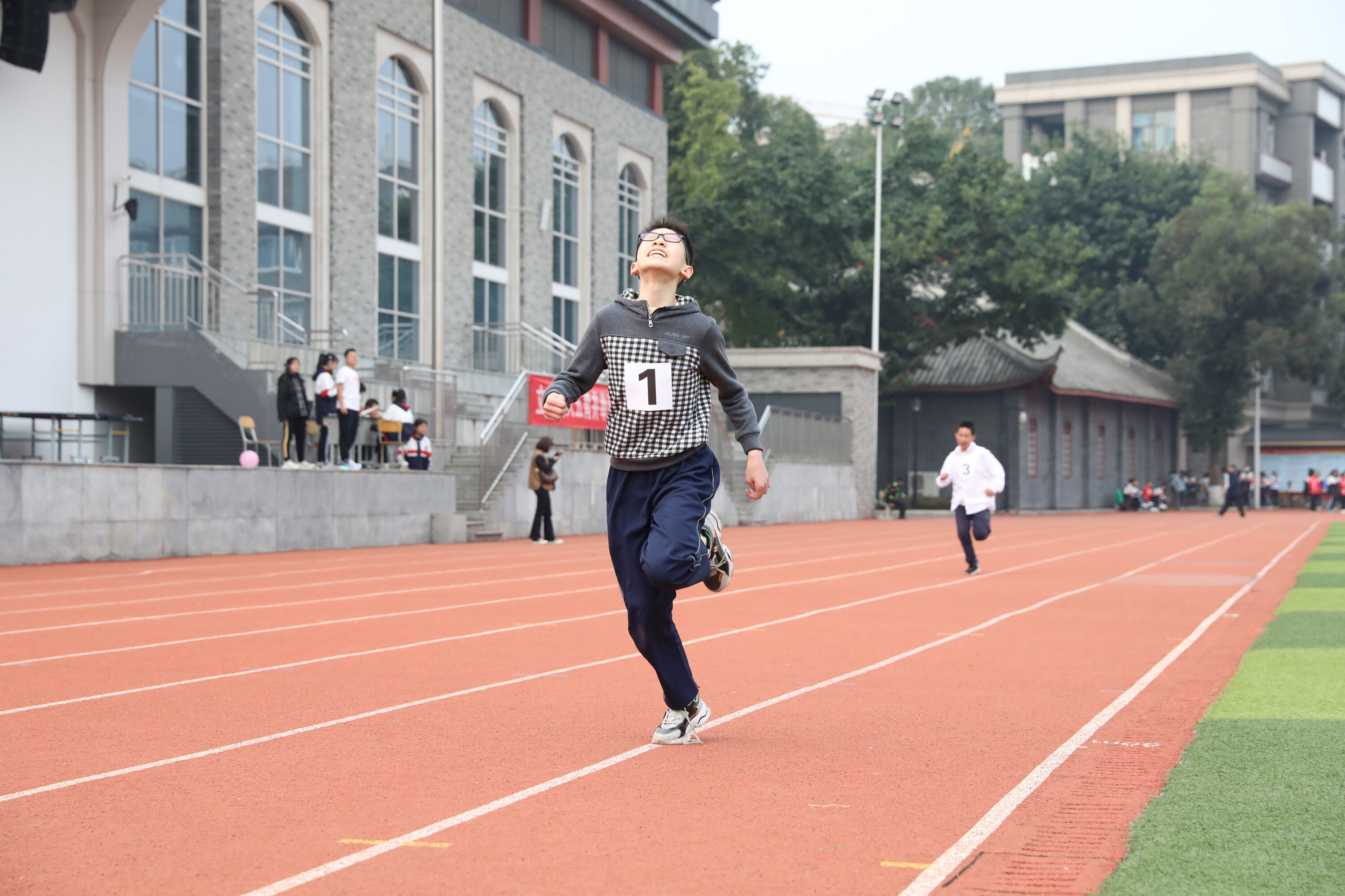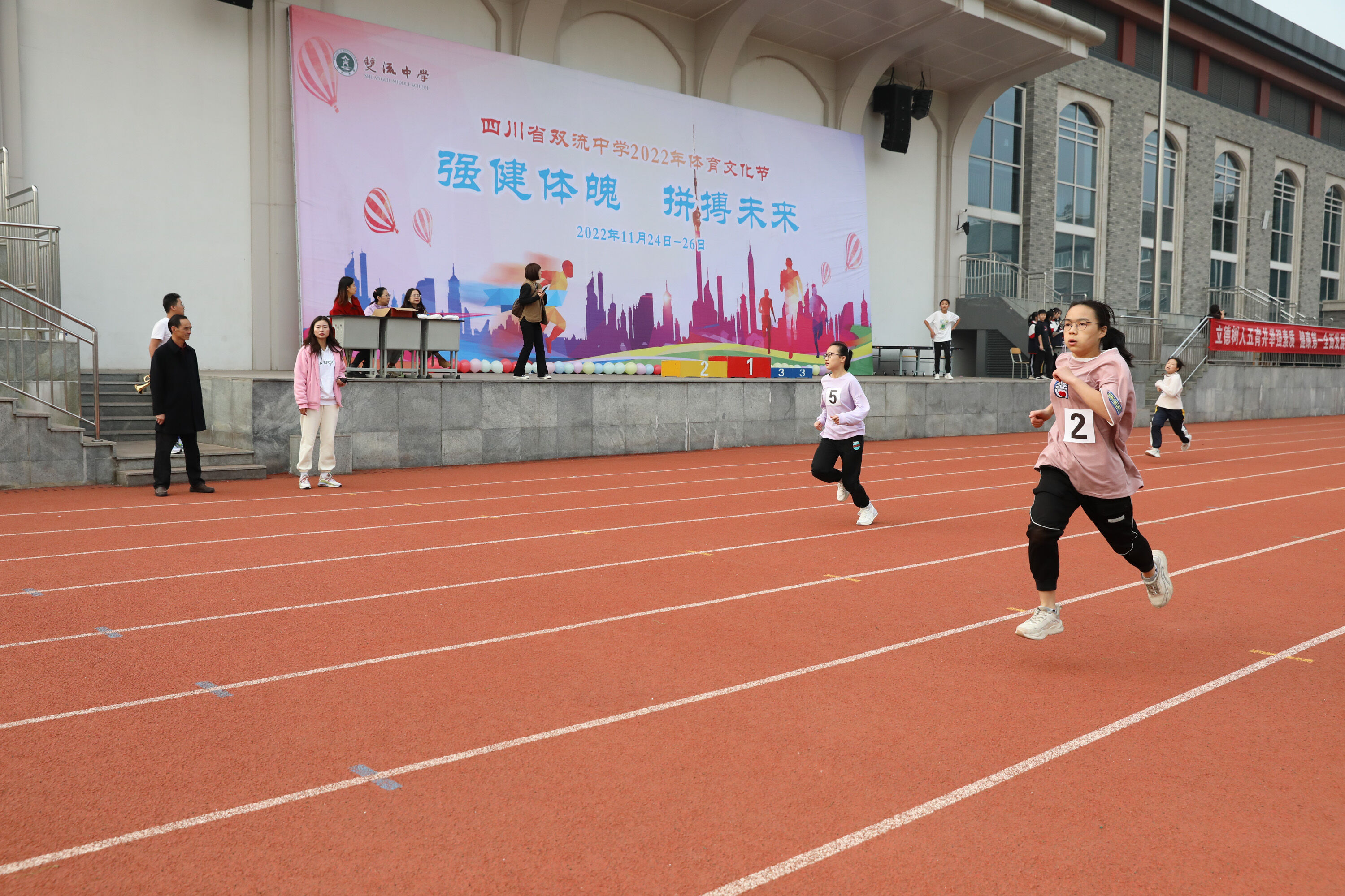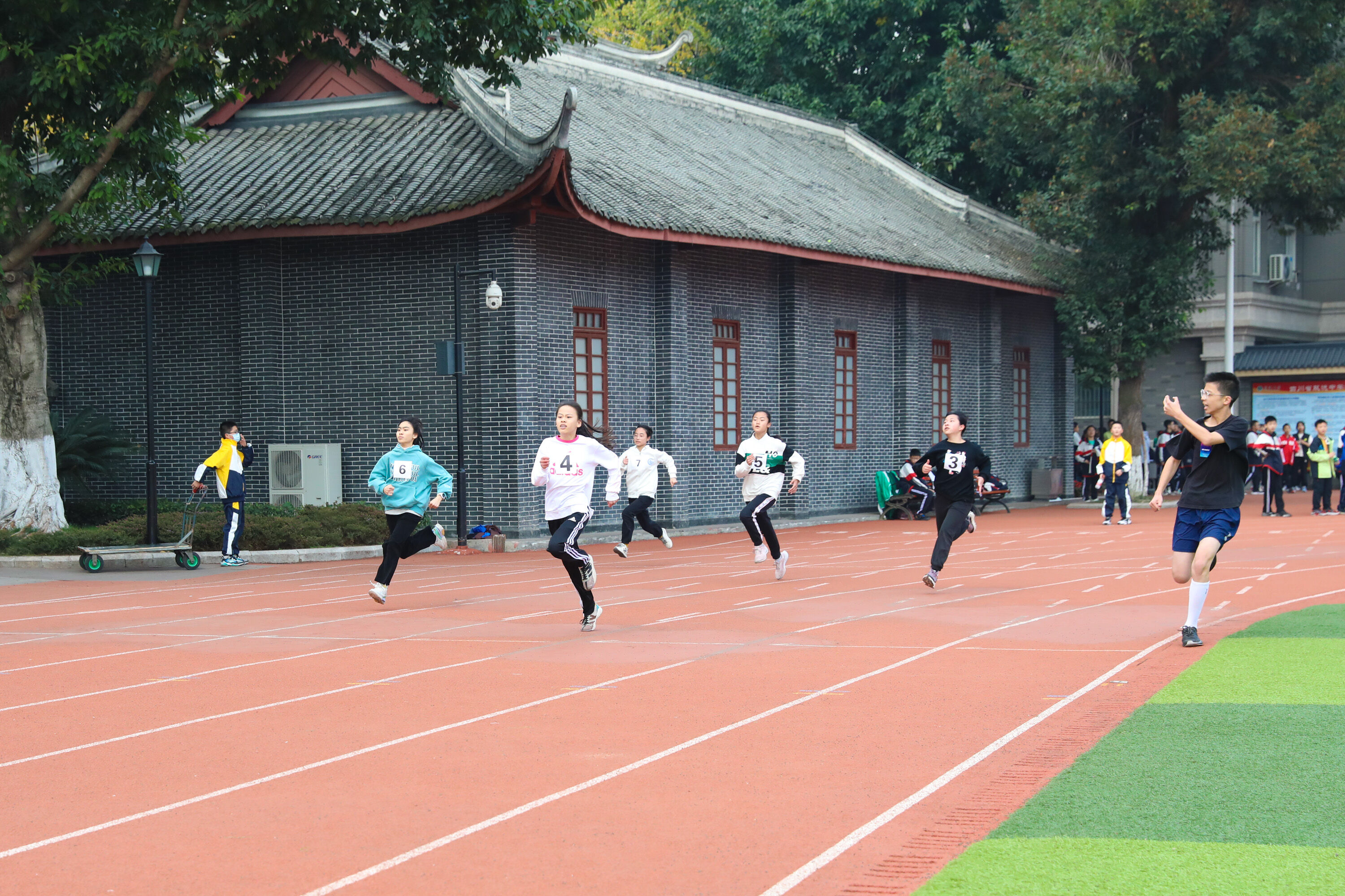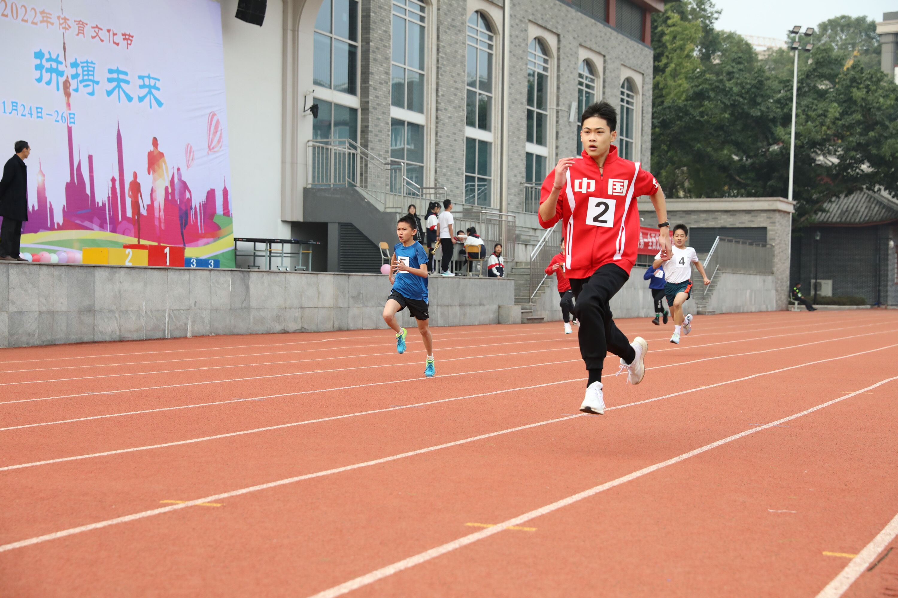 2022年11月24日-26日,雙流中學(xué)舉辦了一年一度的體育文化節(jié)。七年級200米比賽在24日上午舉行。(圖為 七年級男子200米比賽)