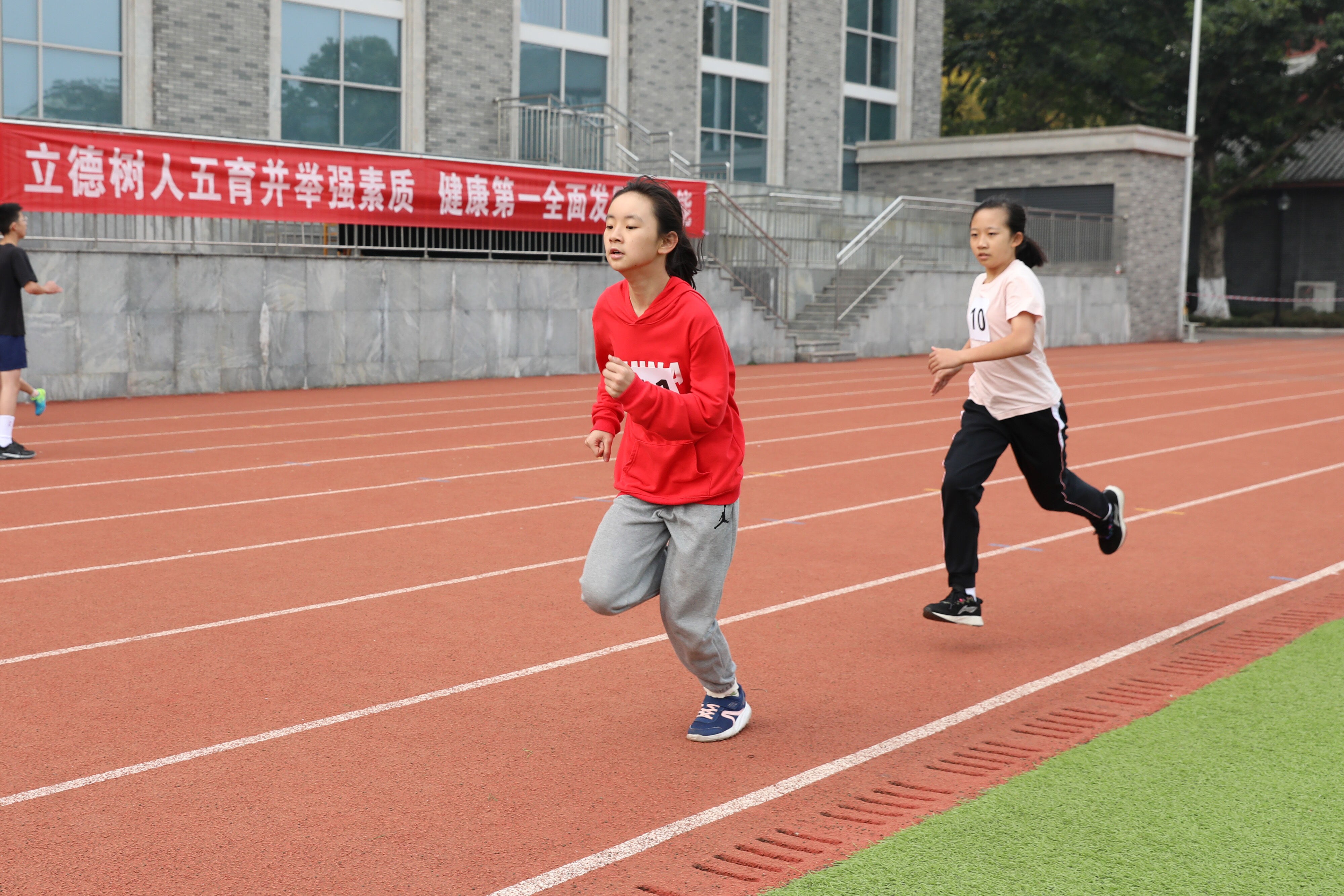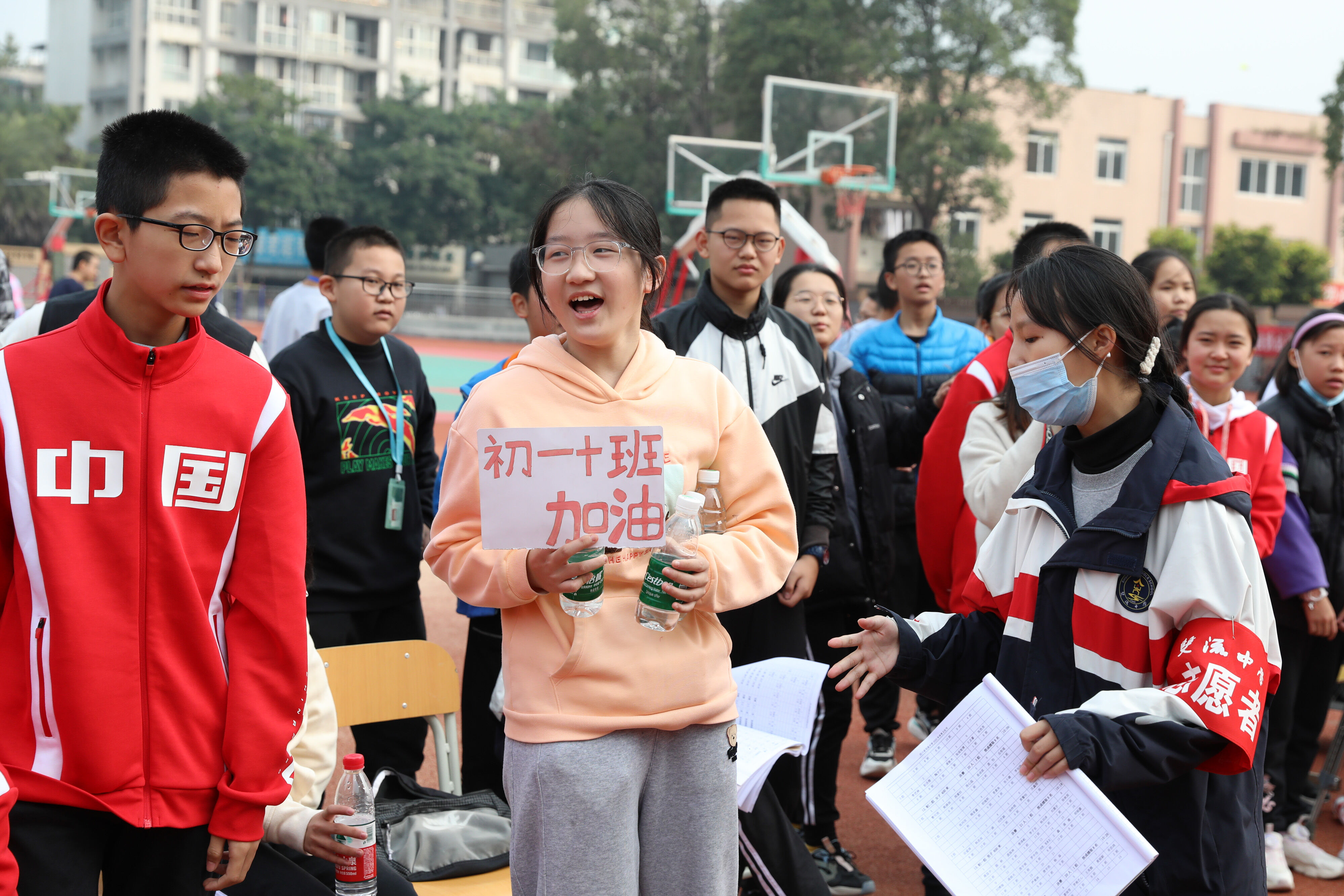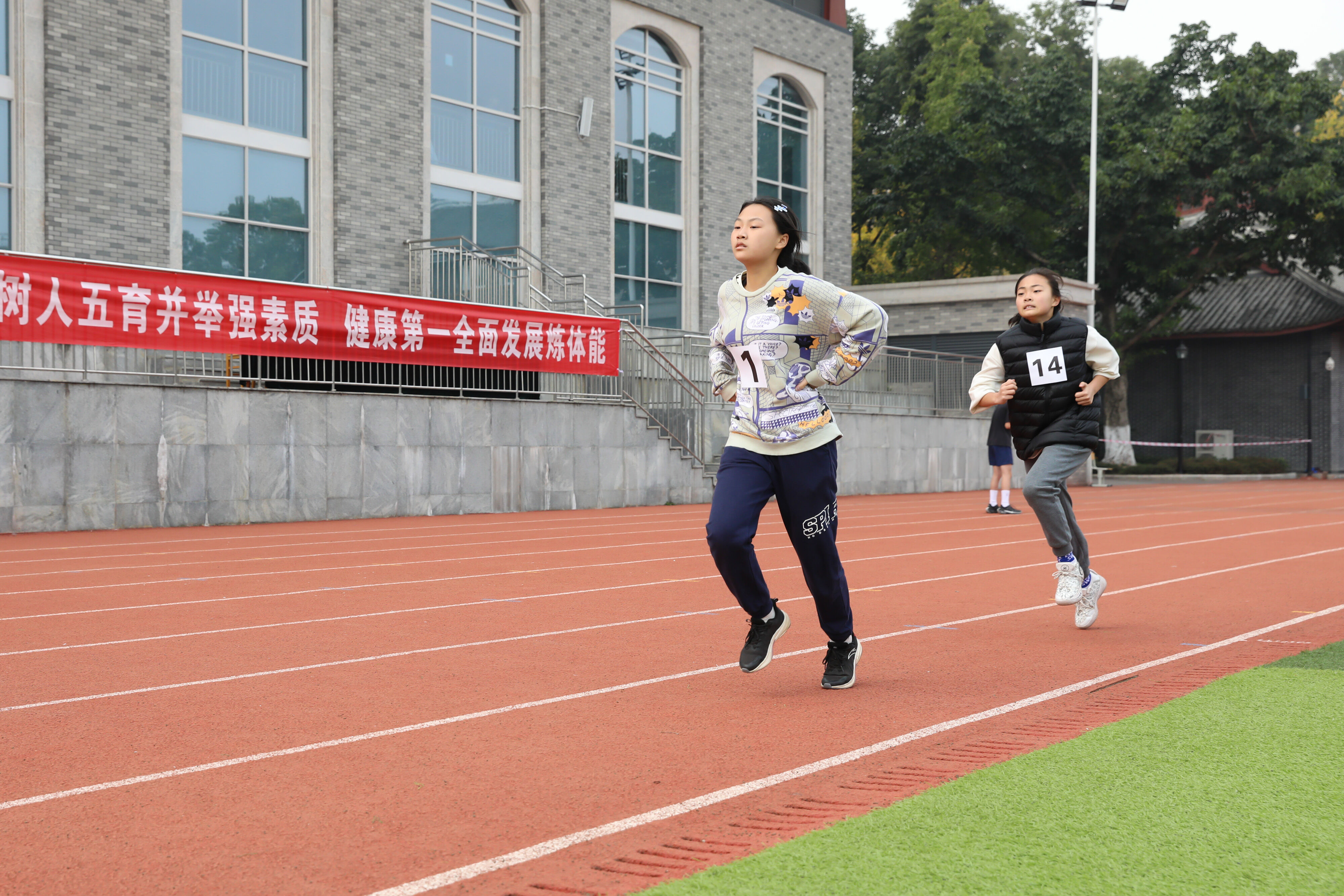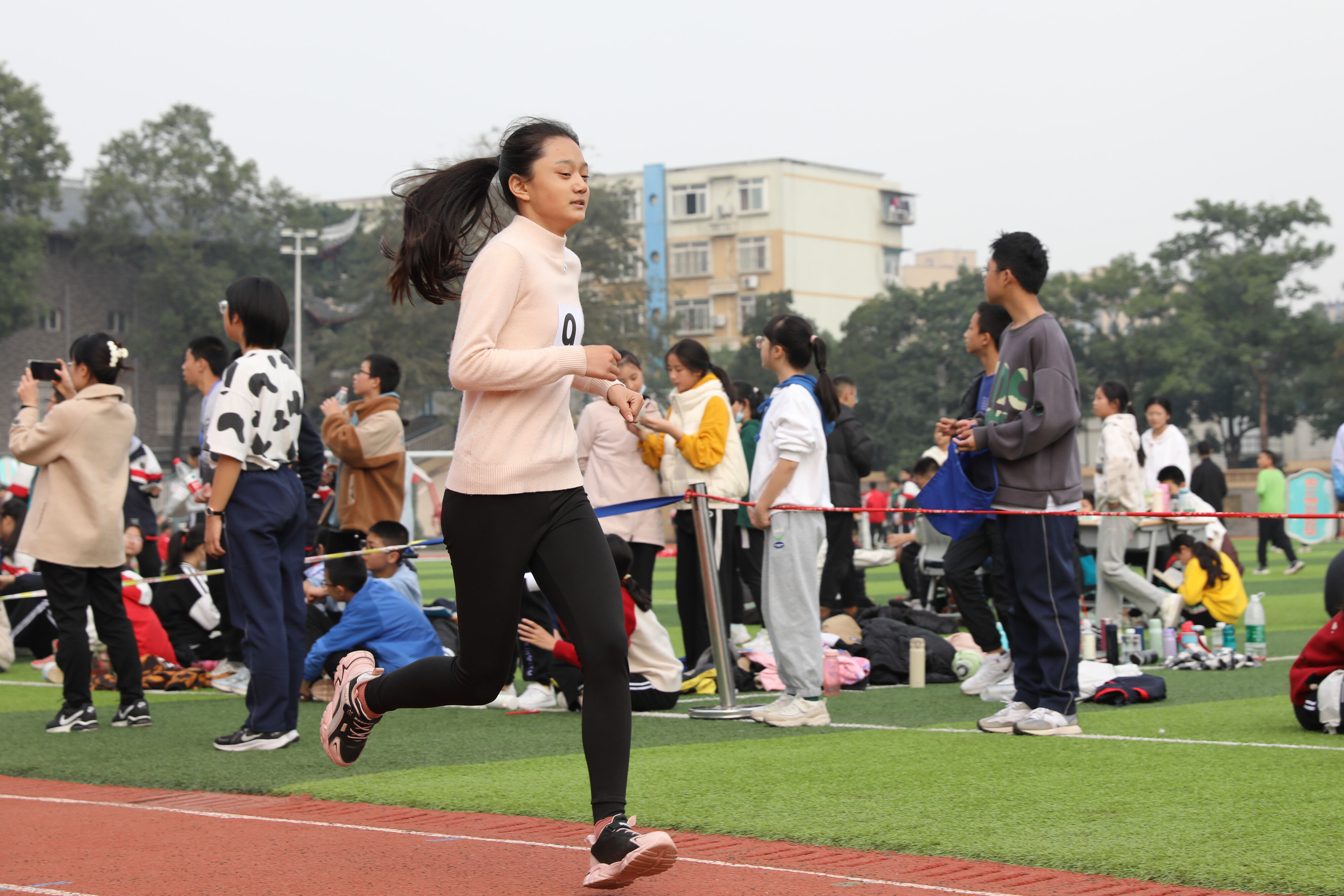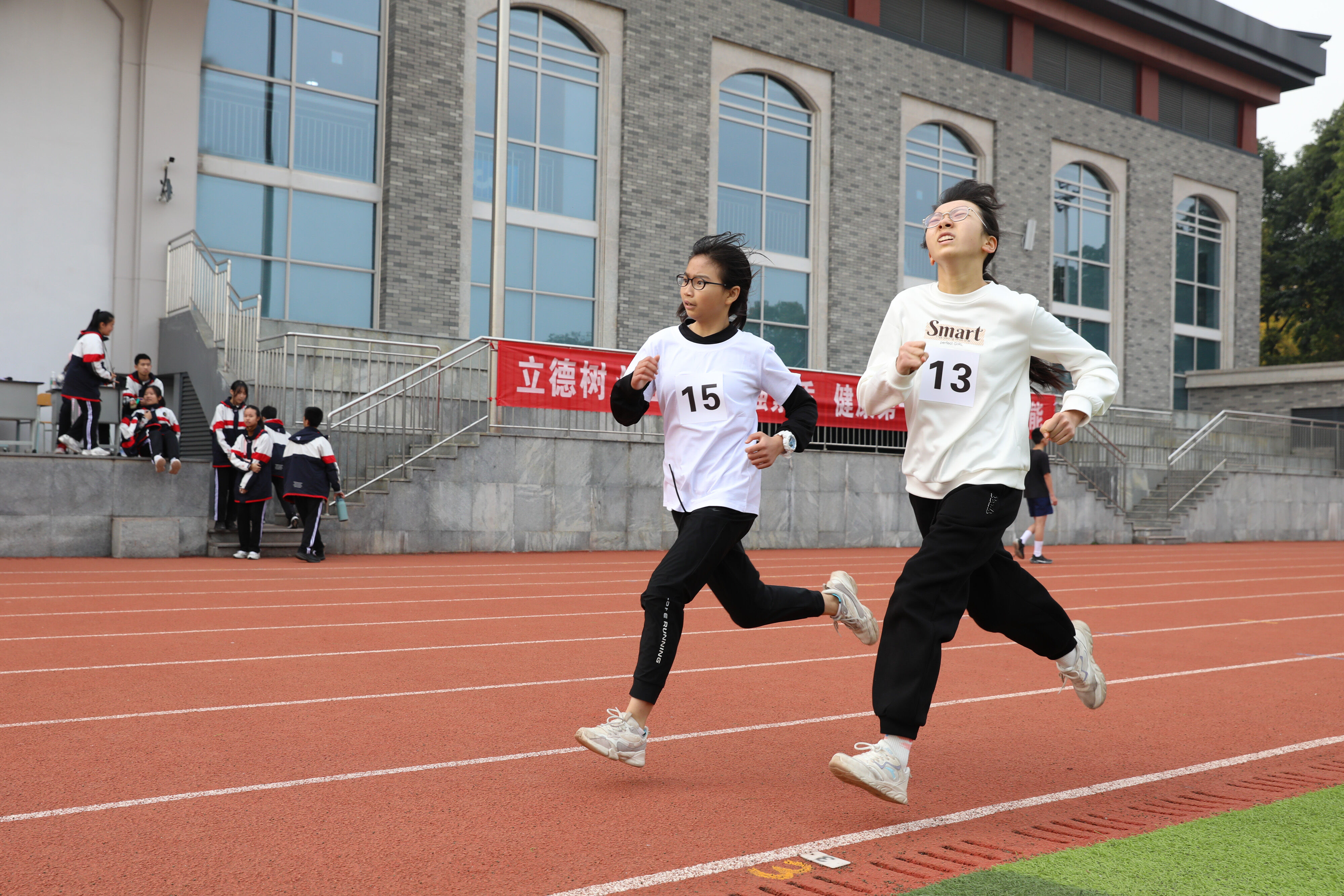 2022年11月24日上午11:00,在雙流中學體育文化藝術節(jié)上,七年級800米比賽在運動場舉行。圖為 七年級女子800米比賽運動員起跑瞬間