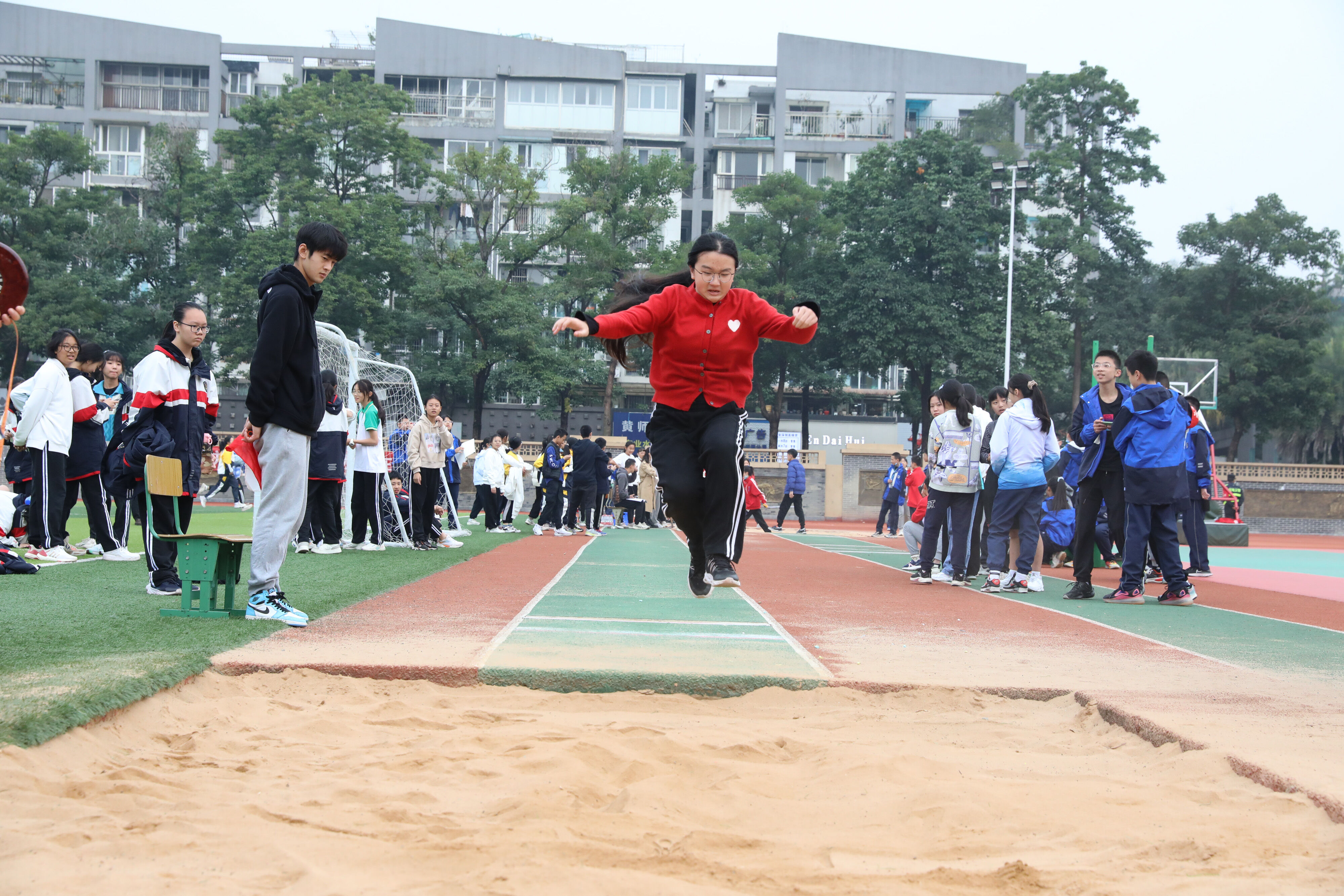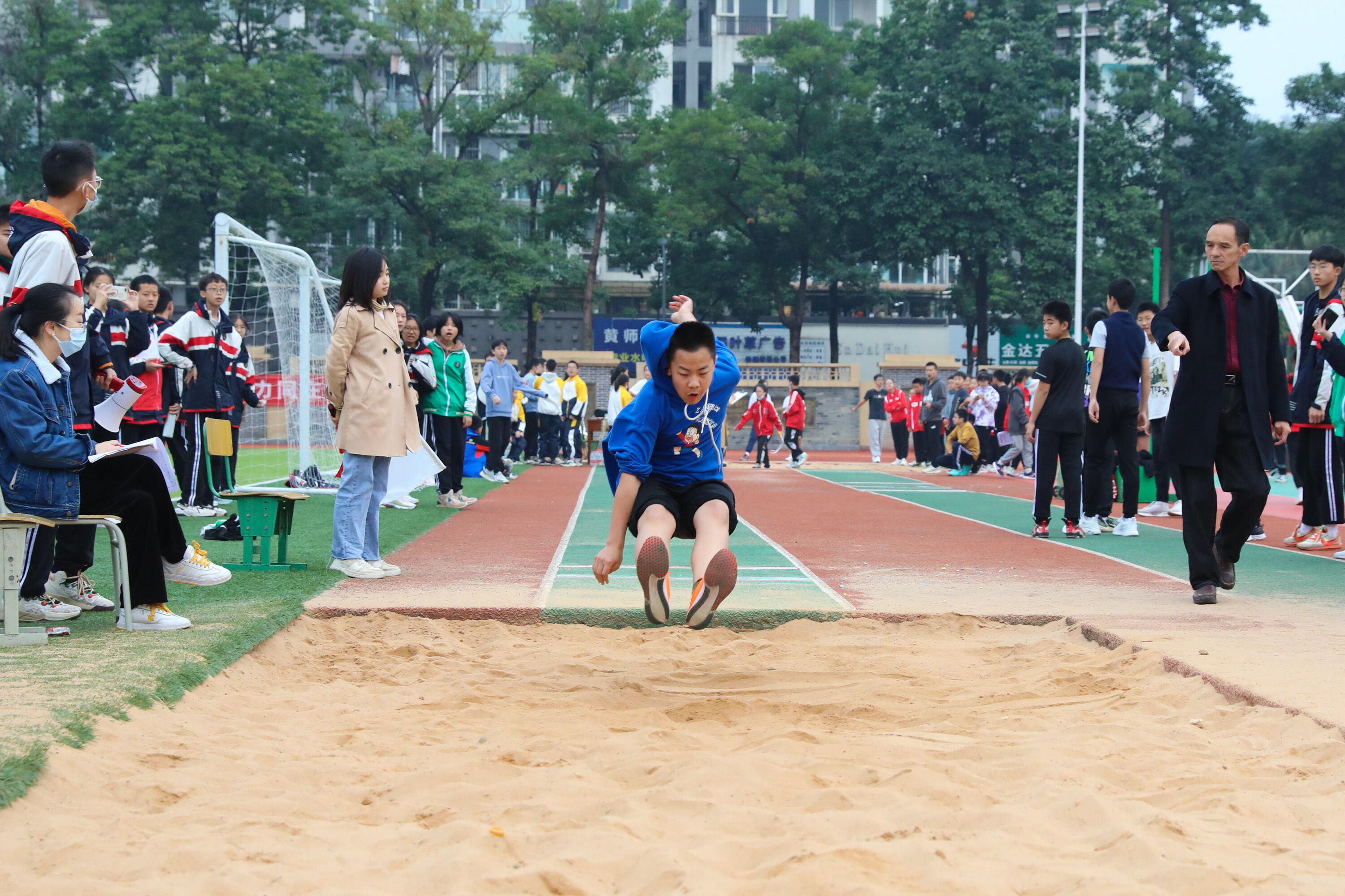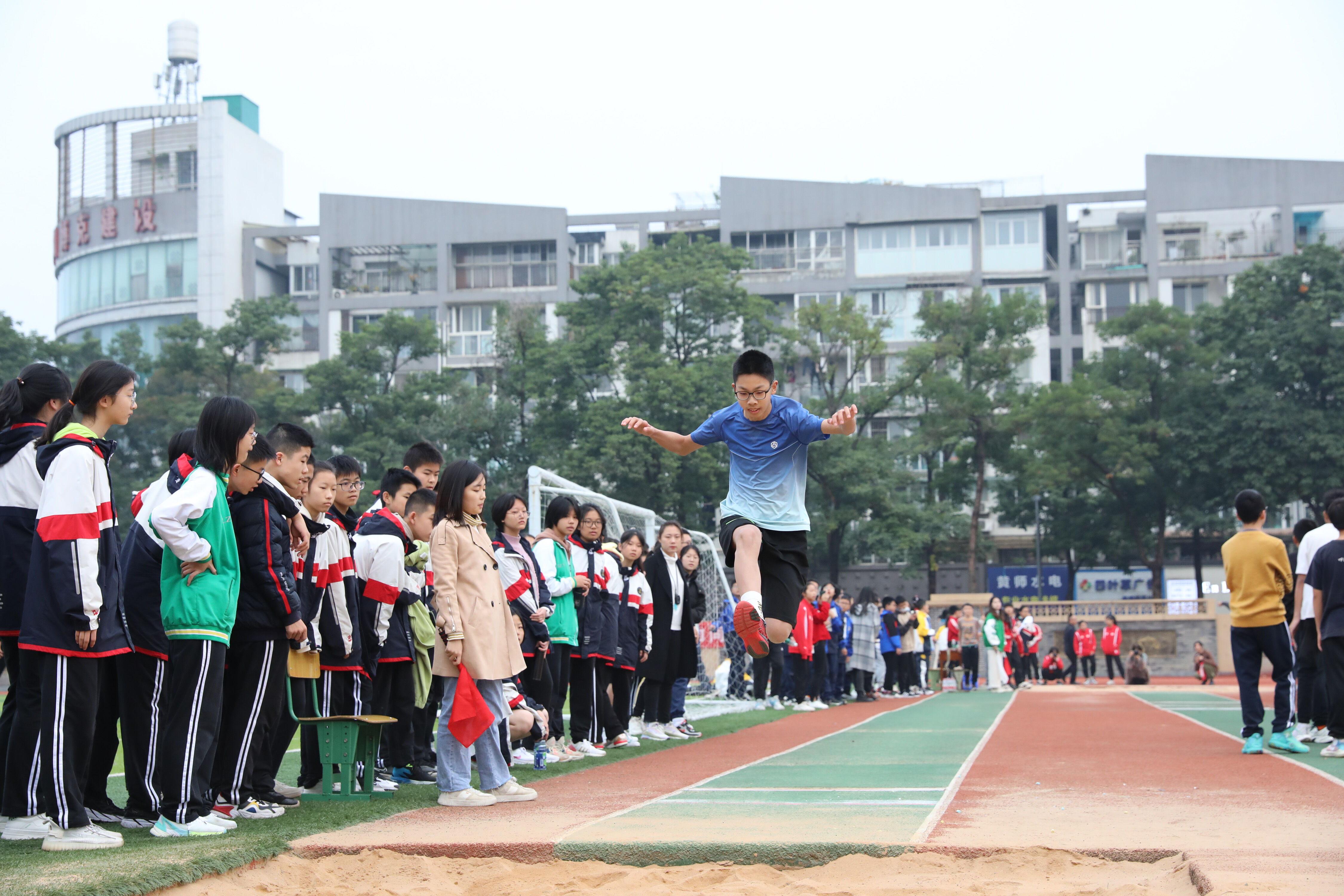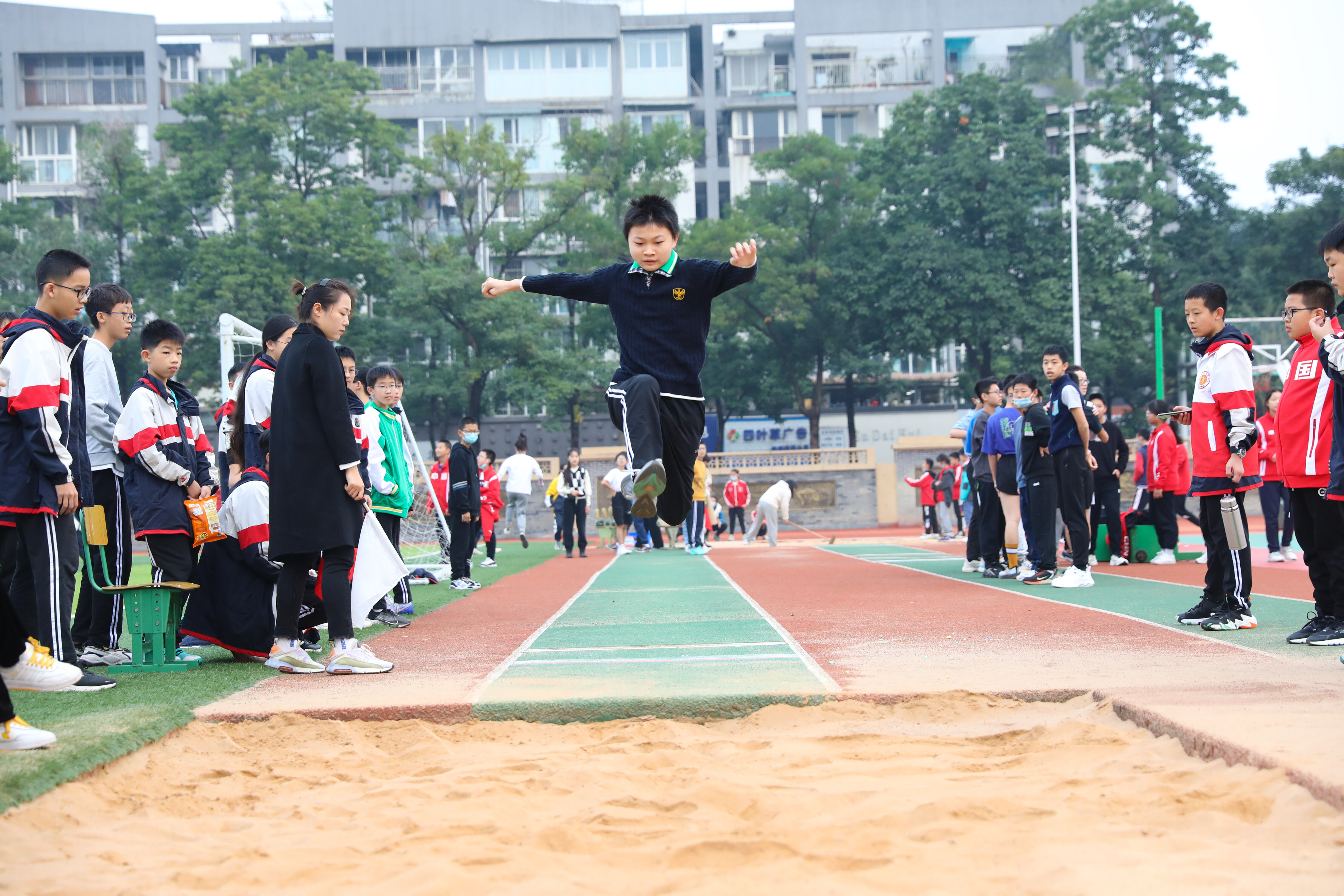 2022年11月24日上午,雙流中學(xué)舉行八年級跳遠(yuǎn)比賽。