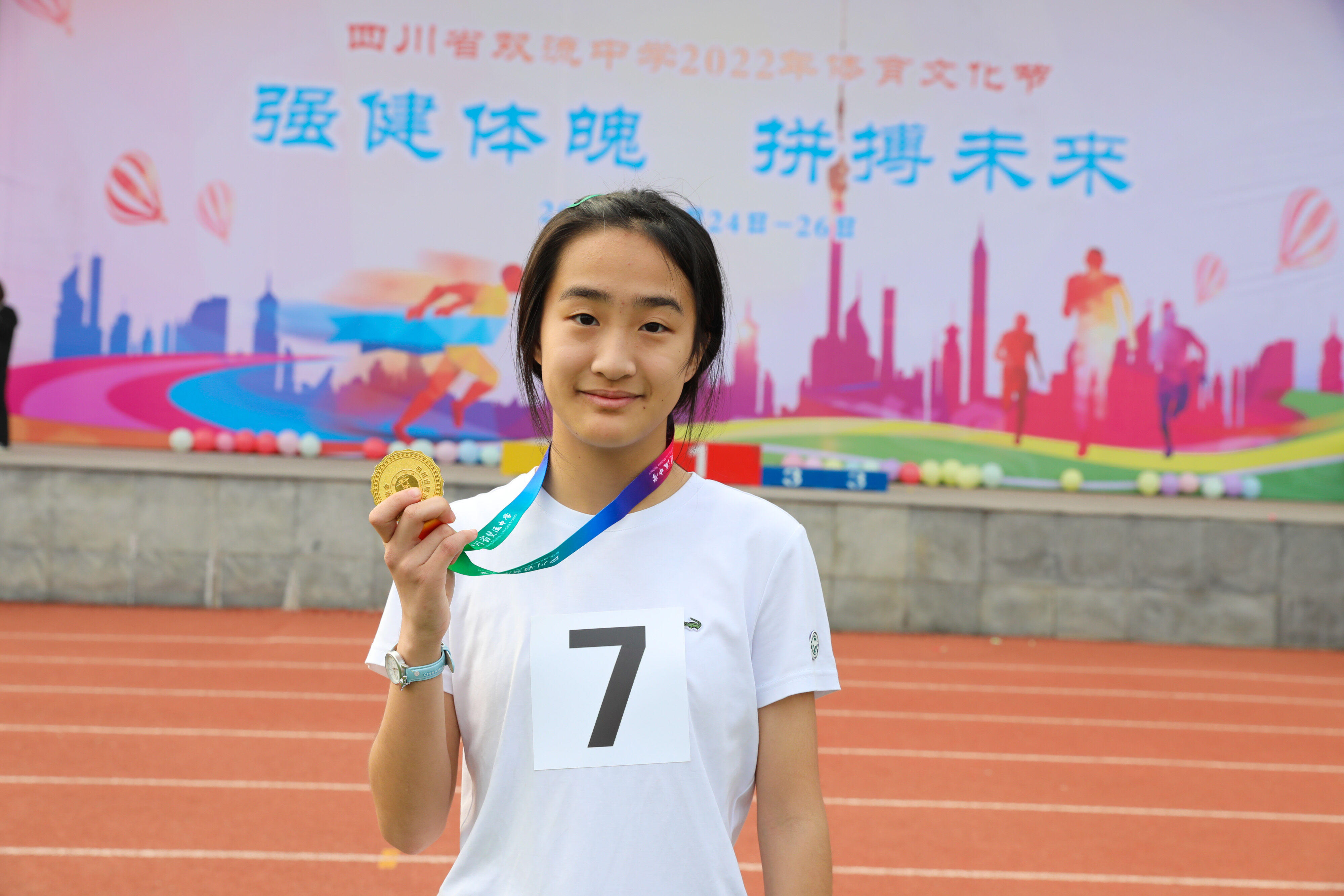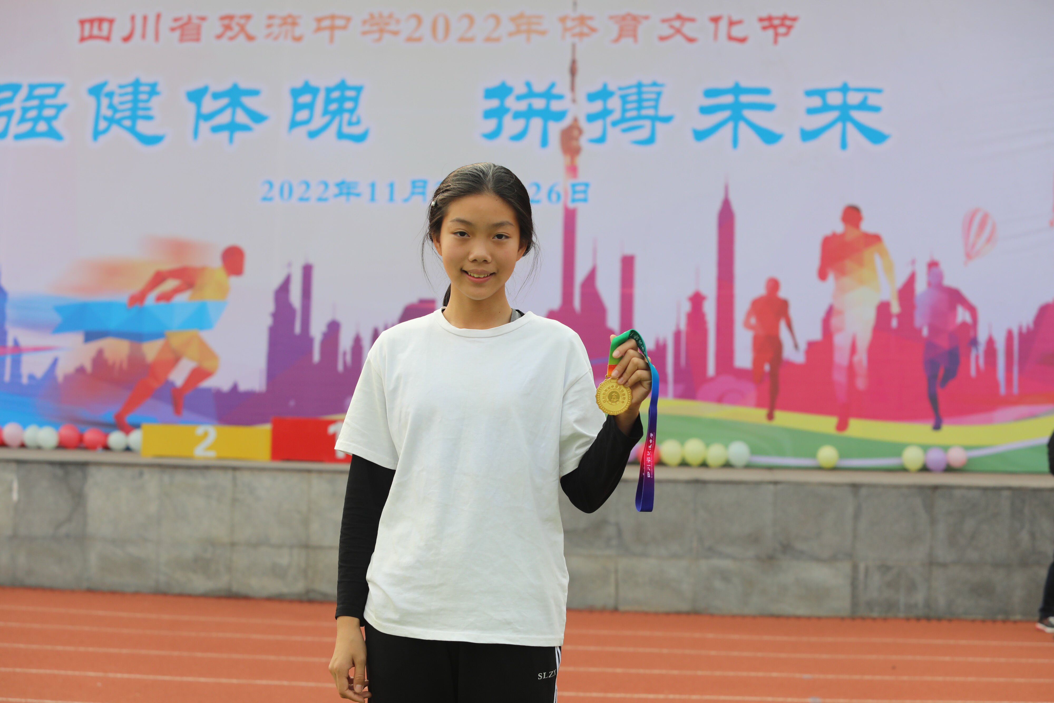 獲得初二女子200米比賽金牌的鄭吉坤同學(xué)