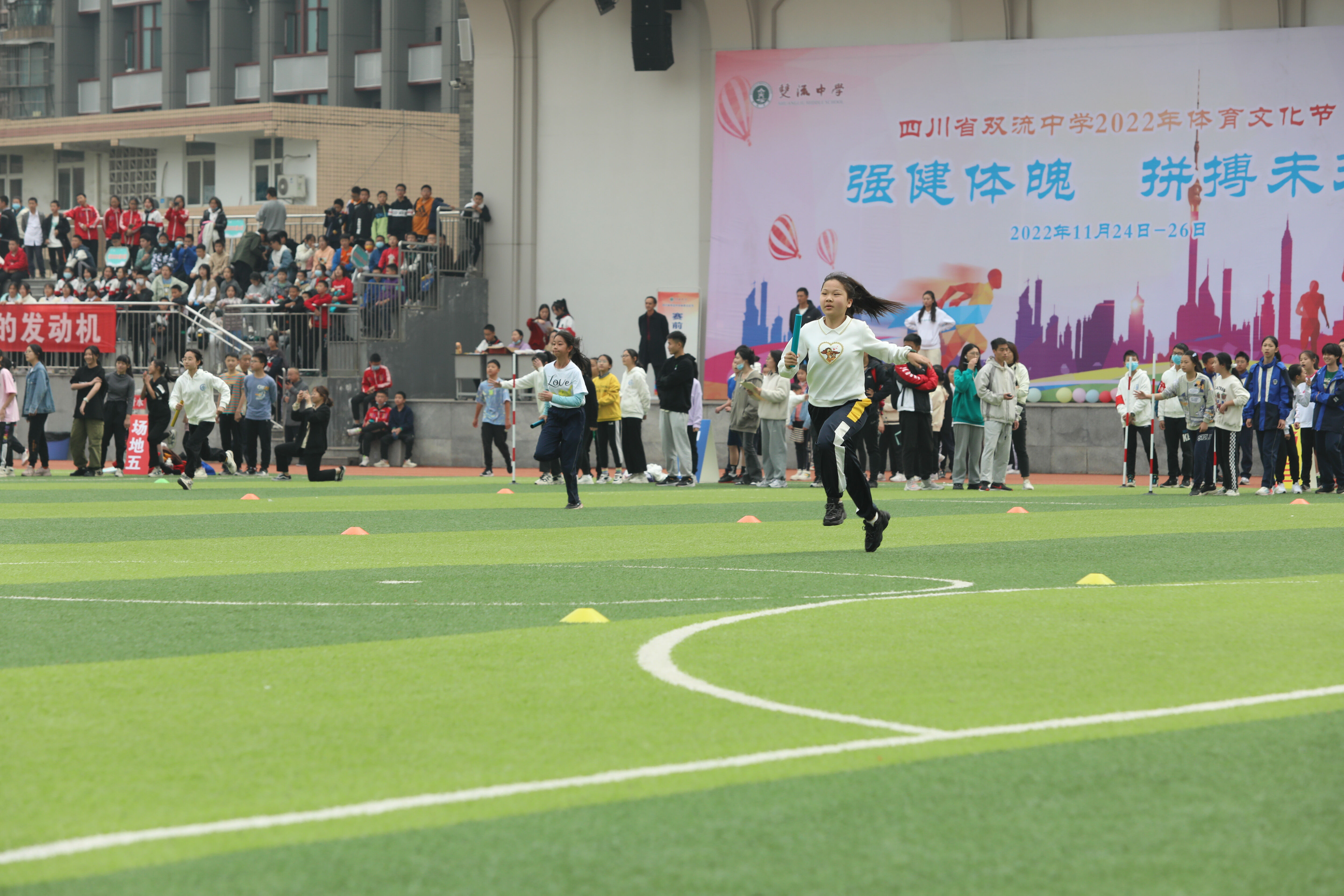 2022年11月24日下午2:00,七年級集體項目混合接力比賽在學(xué)校運動場舉行。