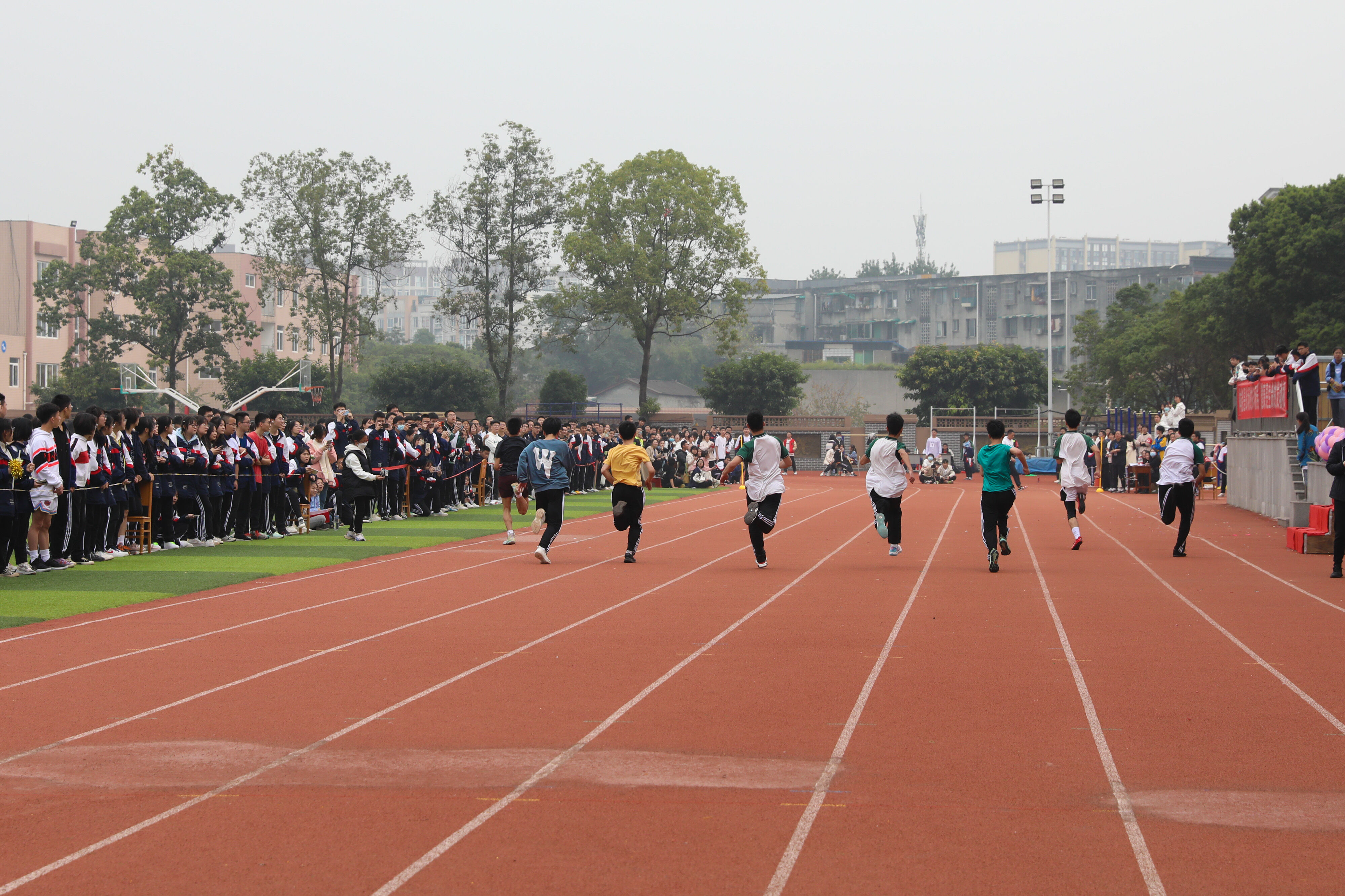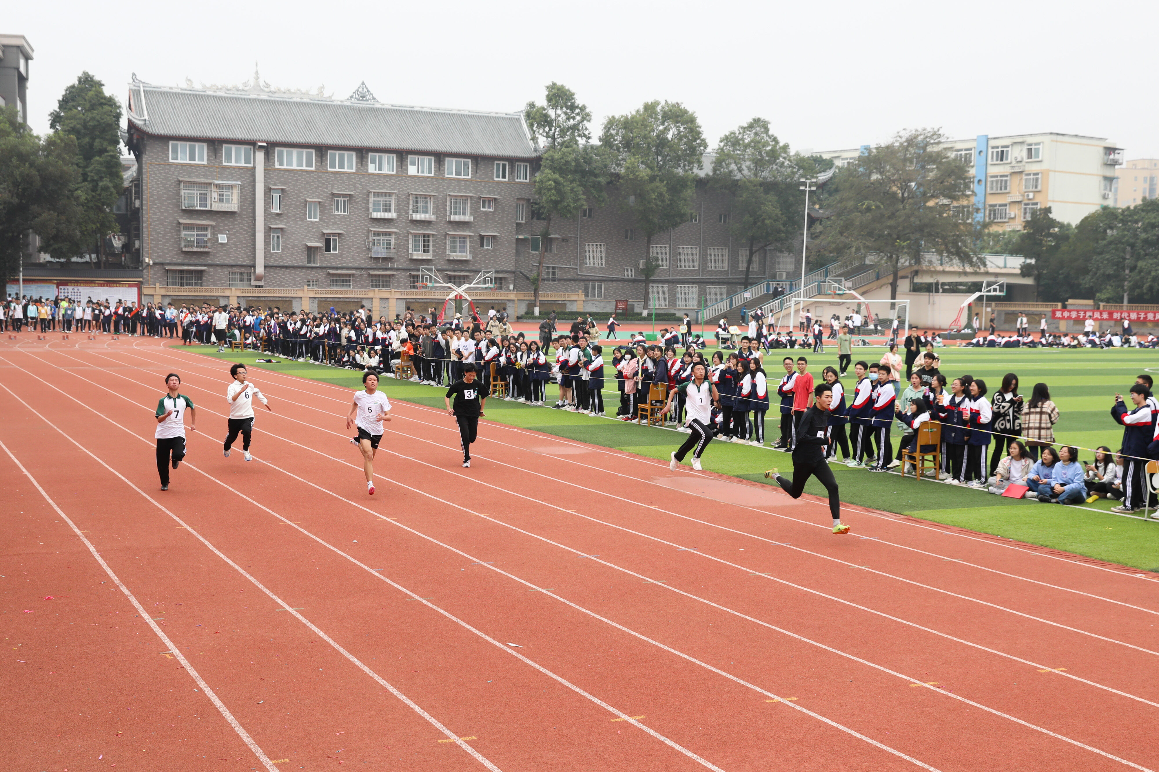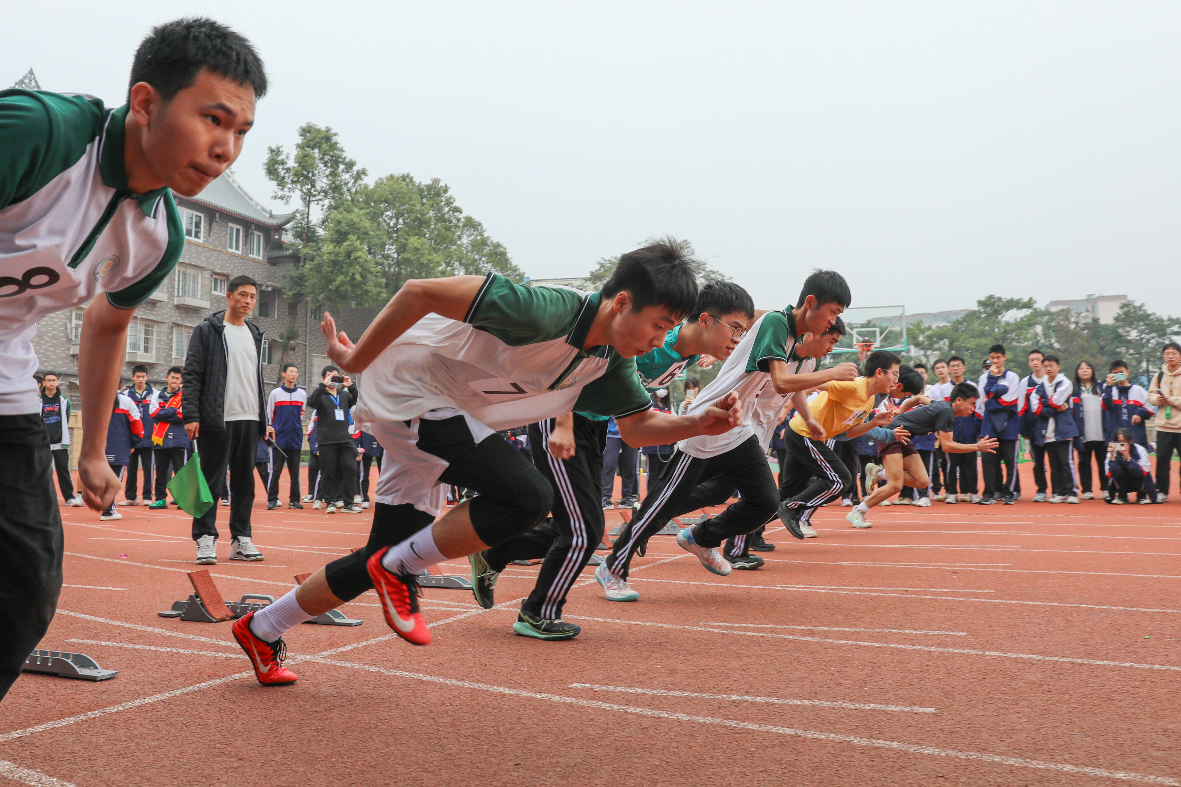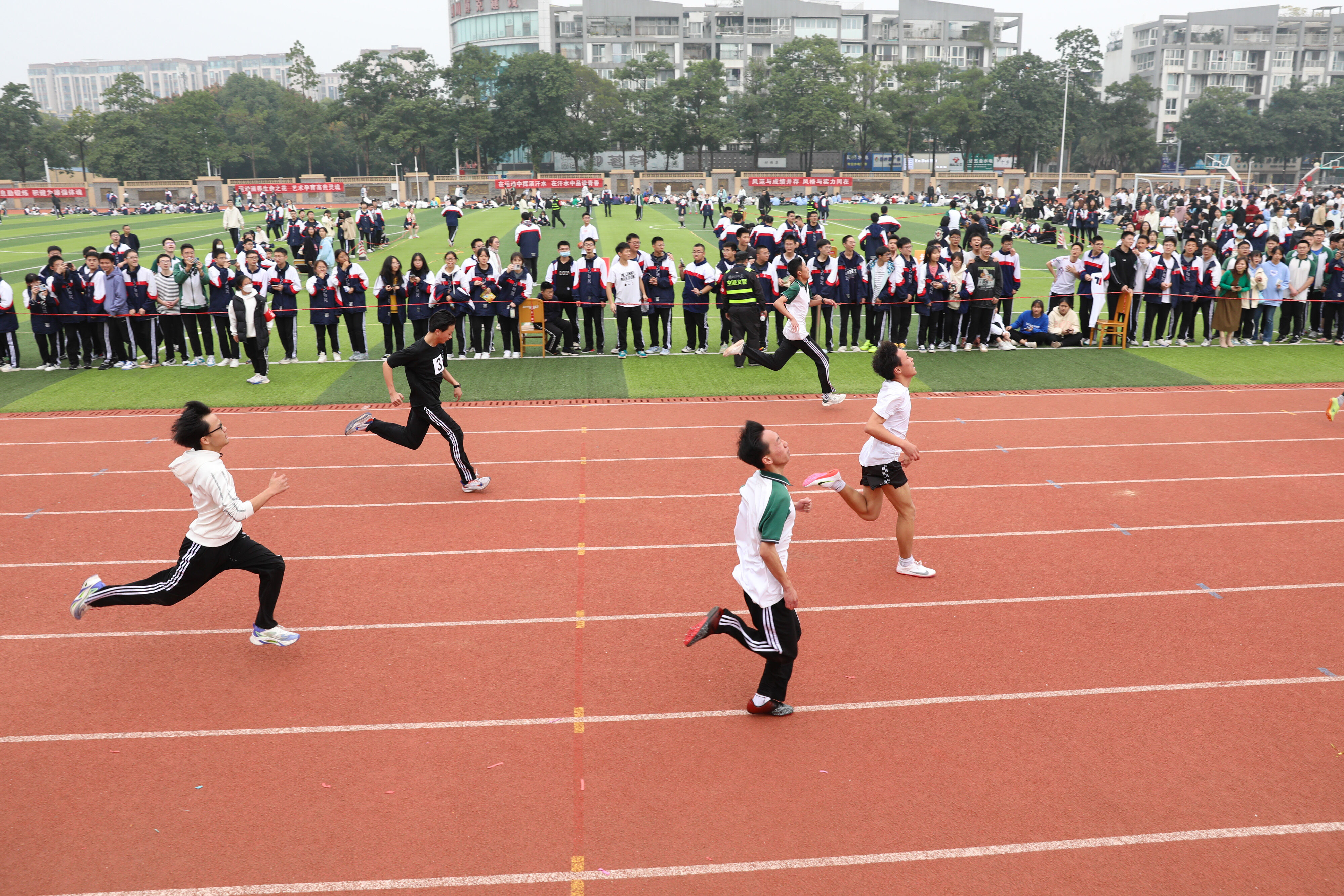 2022年11月25日14:30,高二年級100米小組賽在運動場舉行。圖為 男子100米比賽
