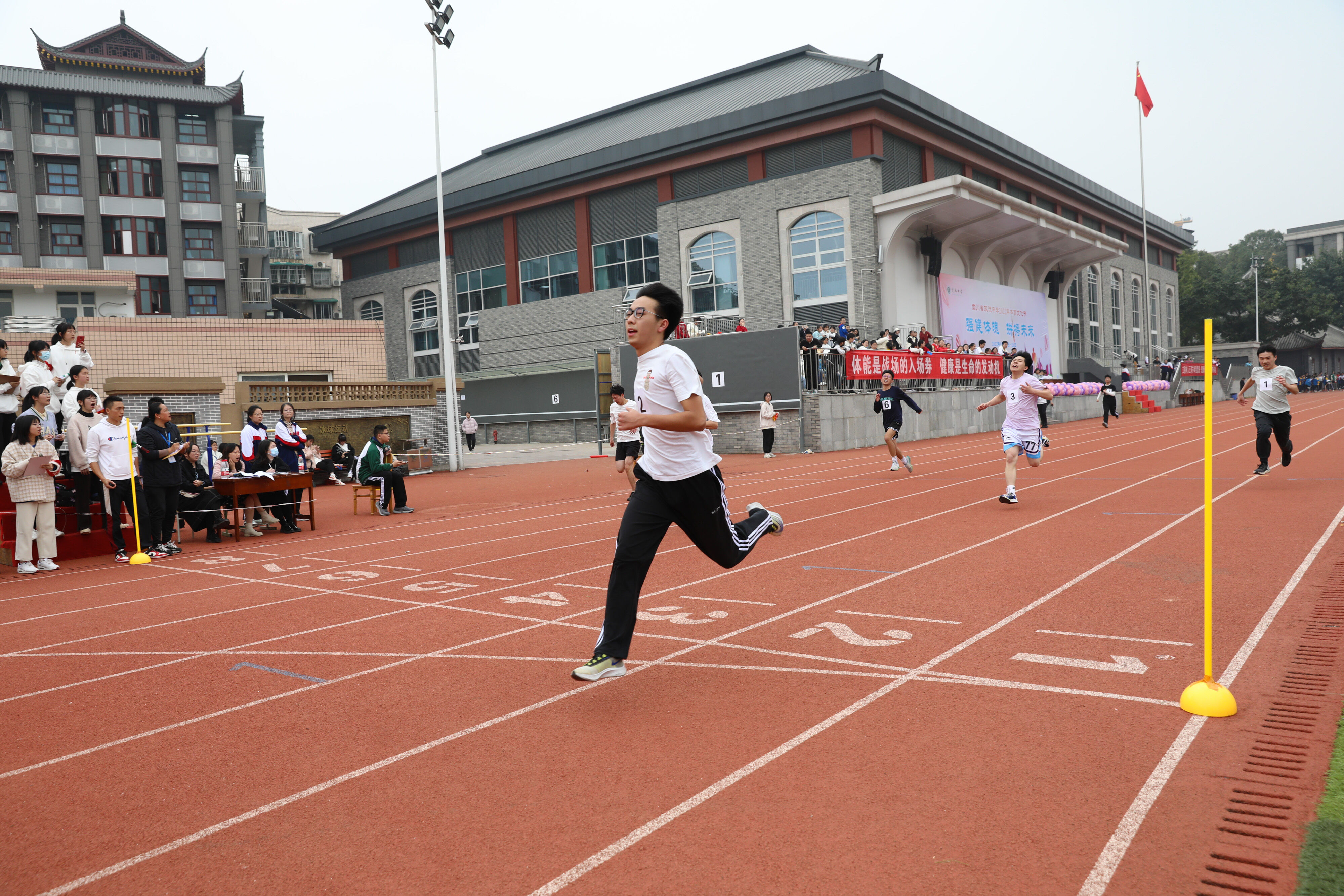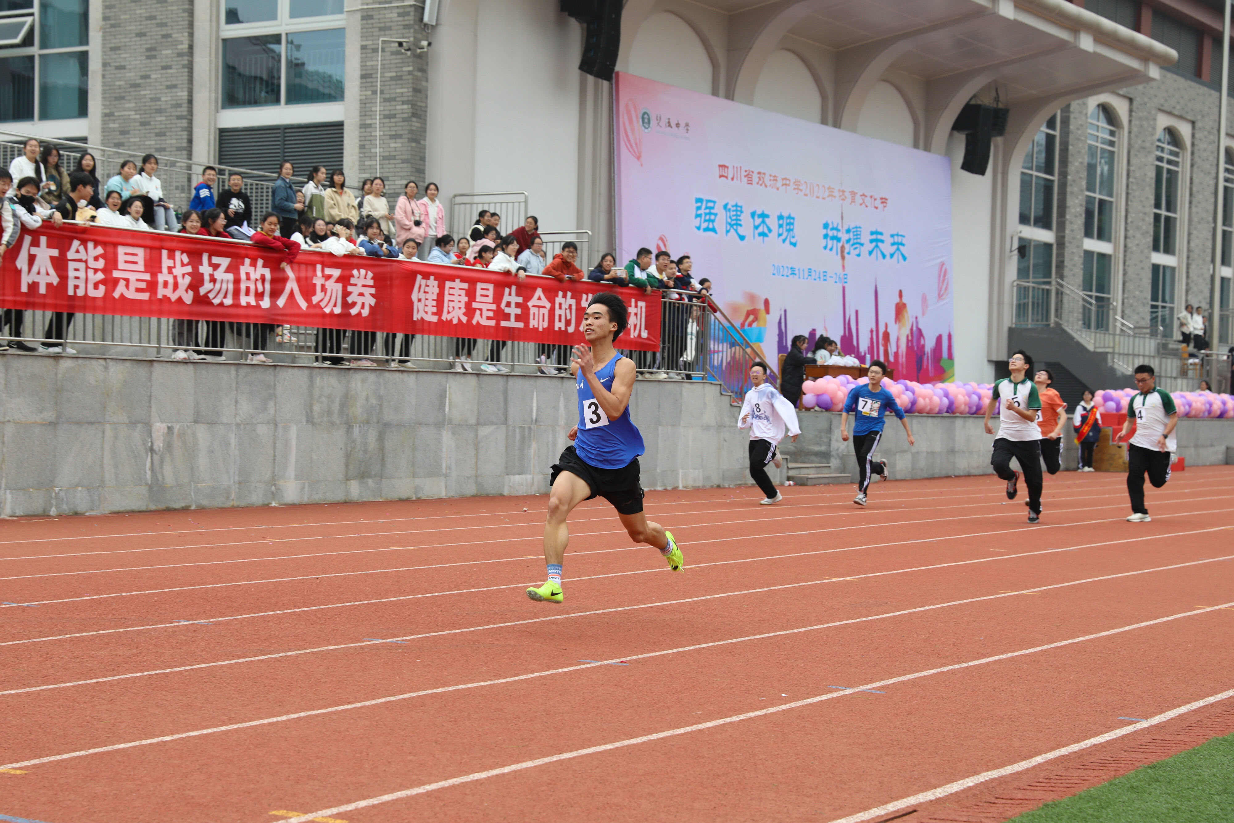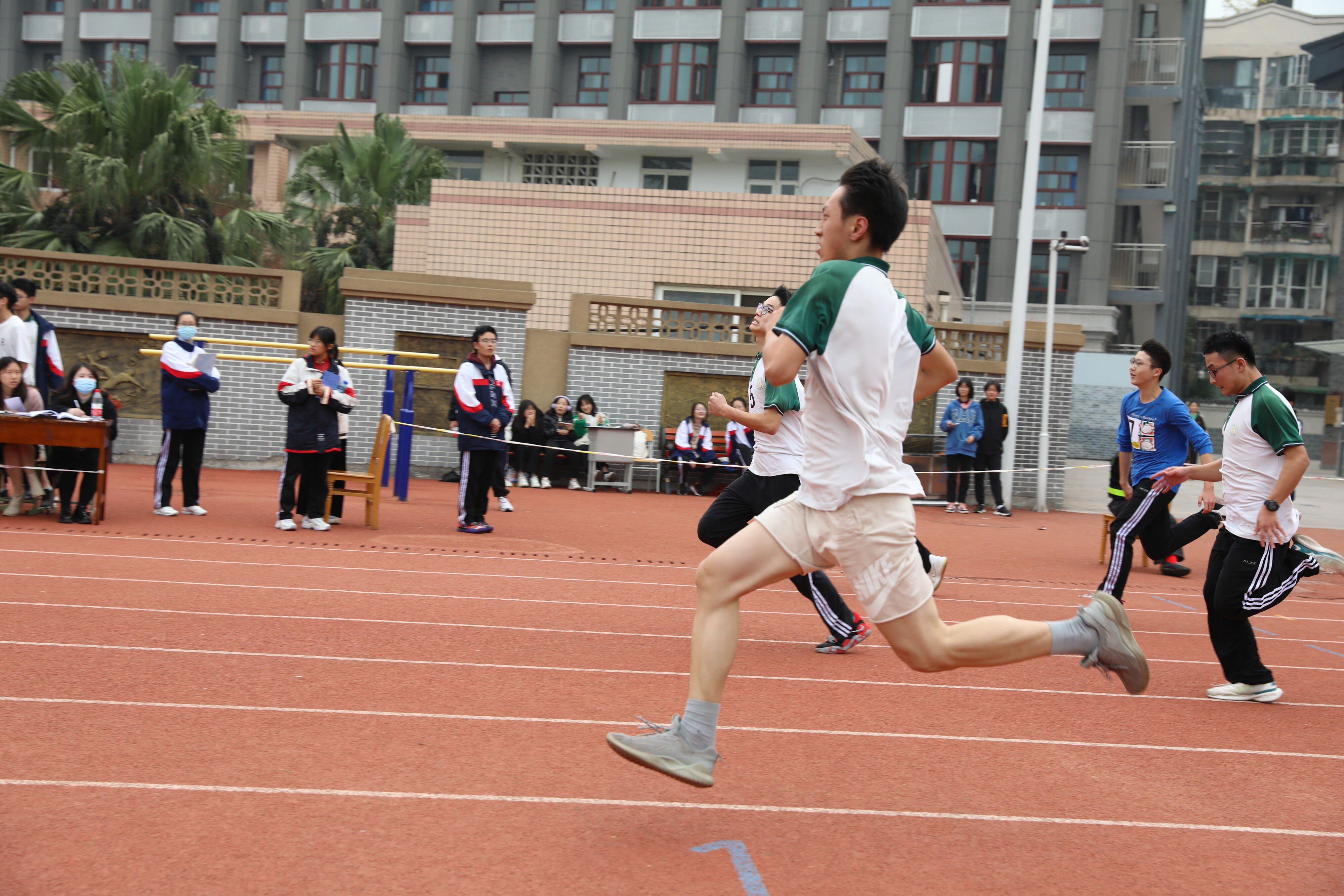 2022年11月25日14:30,高二年級100米小組賽在運動場舉行。圖為 男子100米比賽