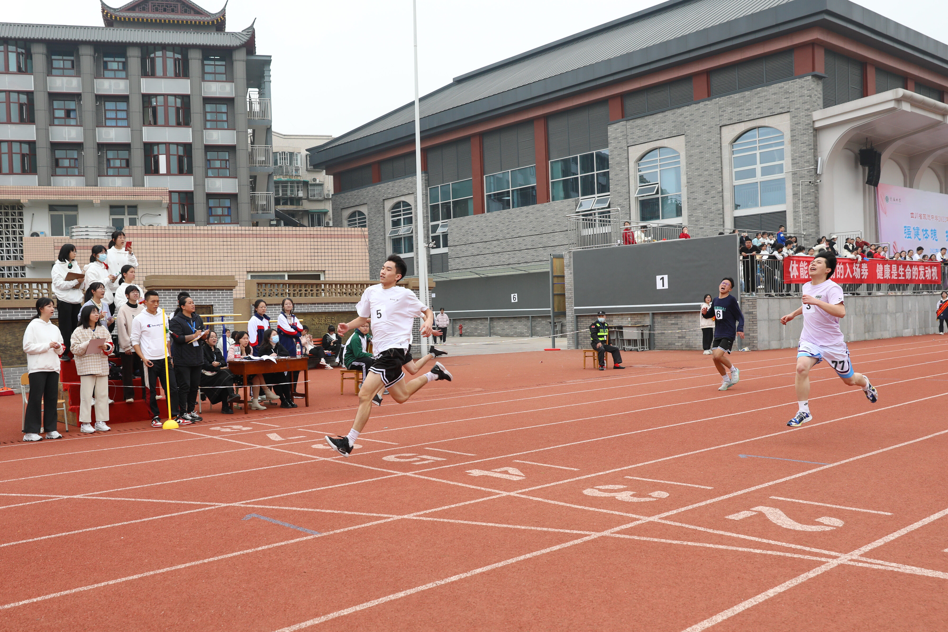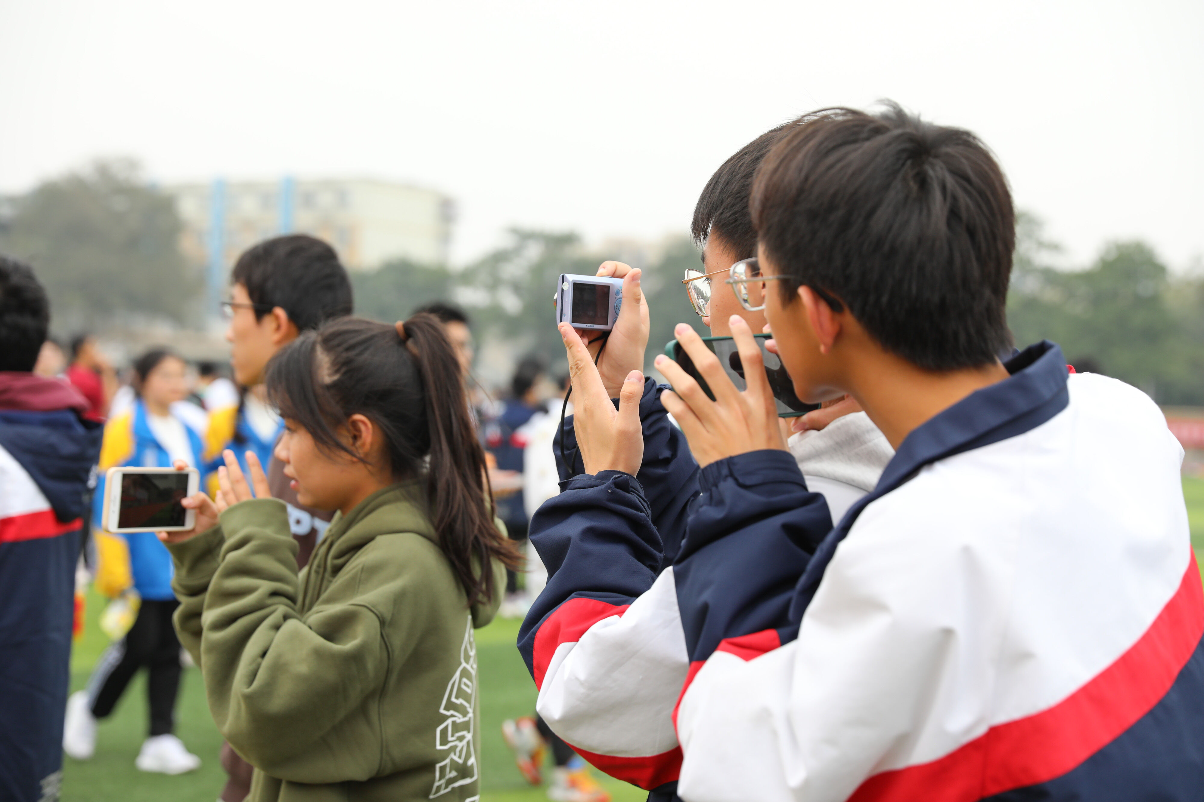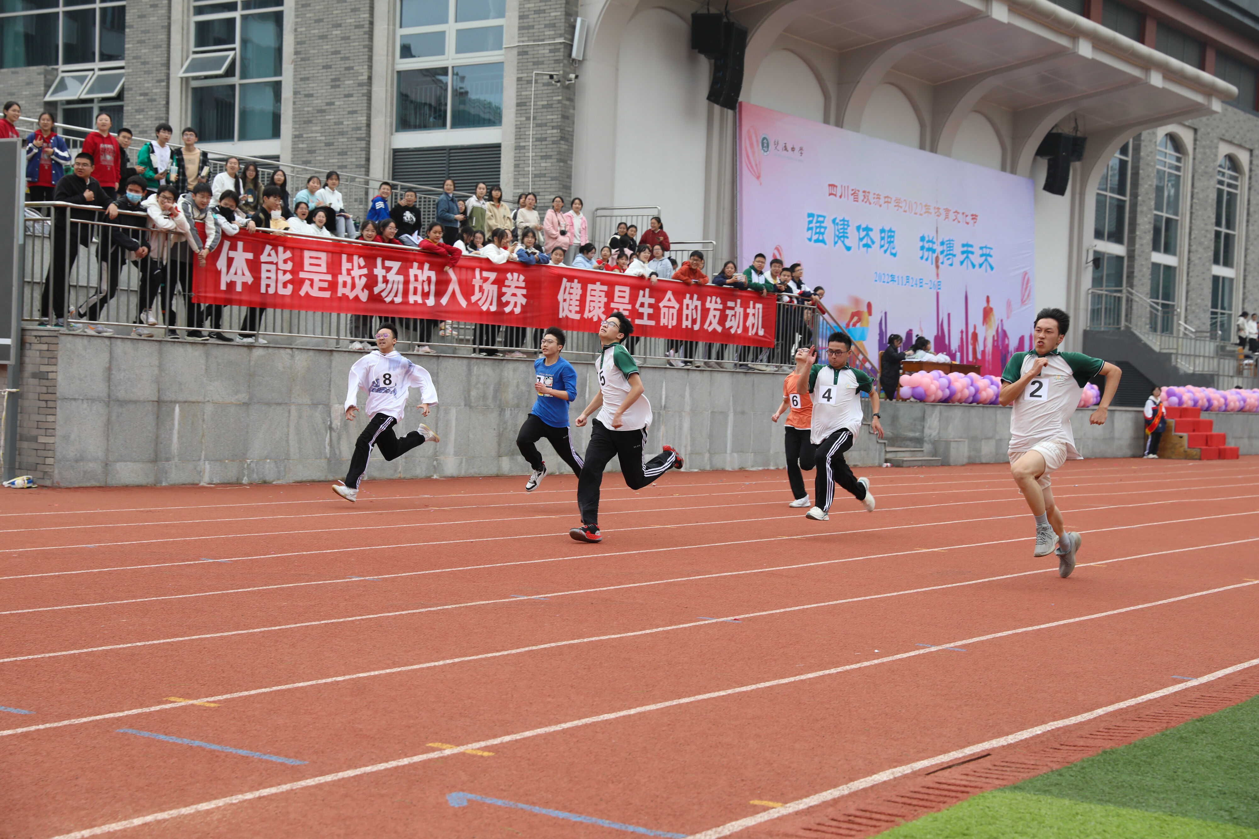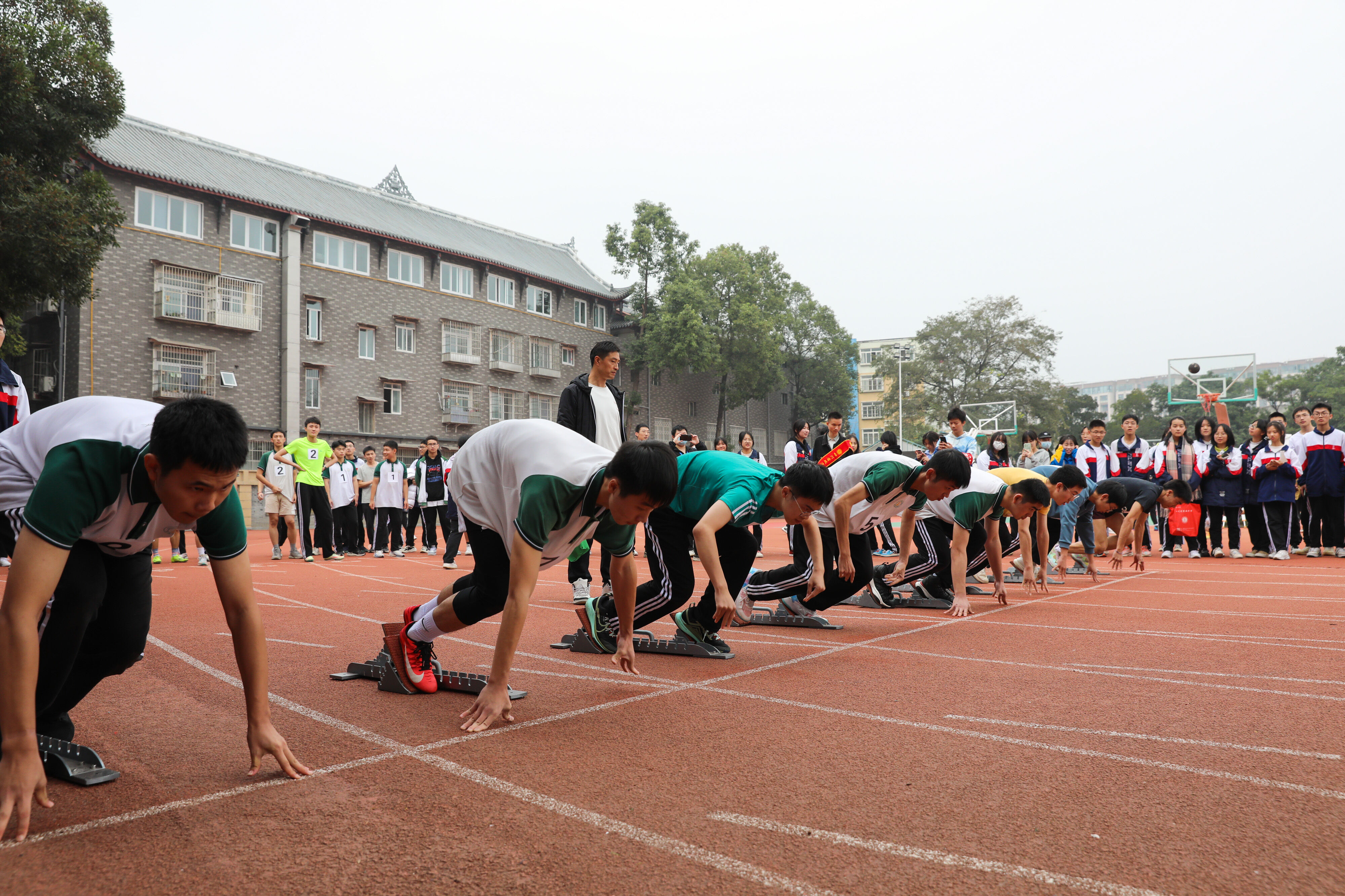 2022年11月25日14:30,高二年級100米小組賽在運動場舉行。圖為 男子100米比賽