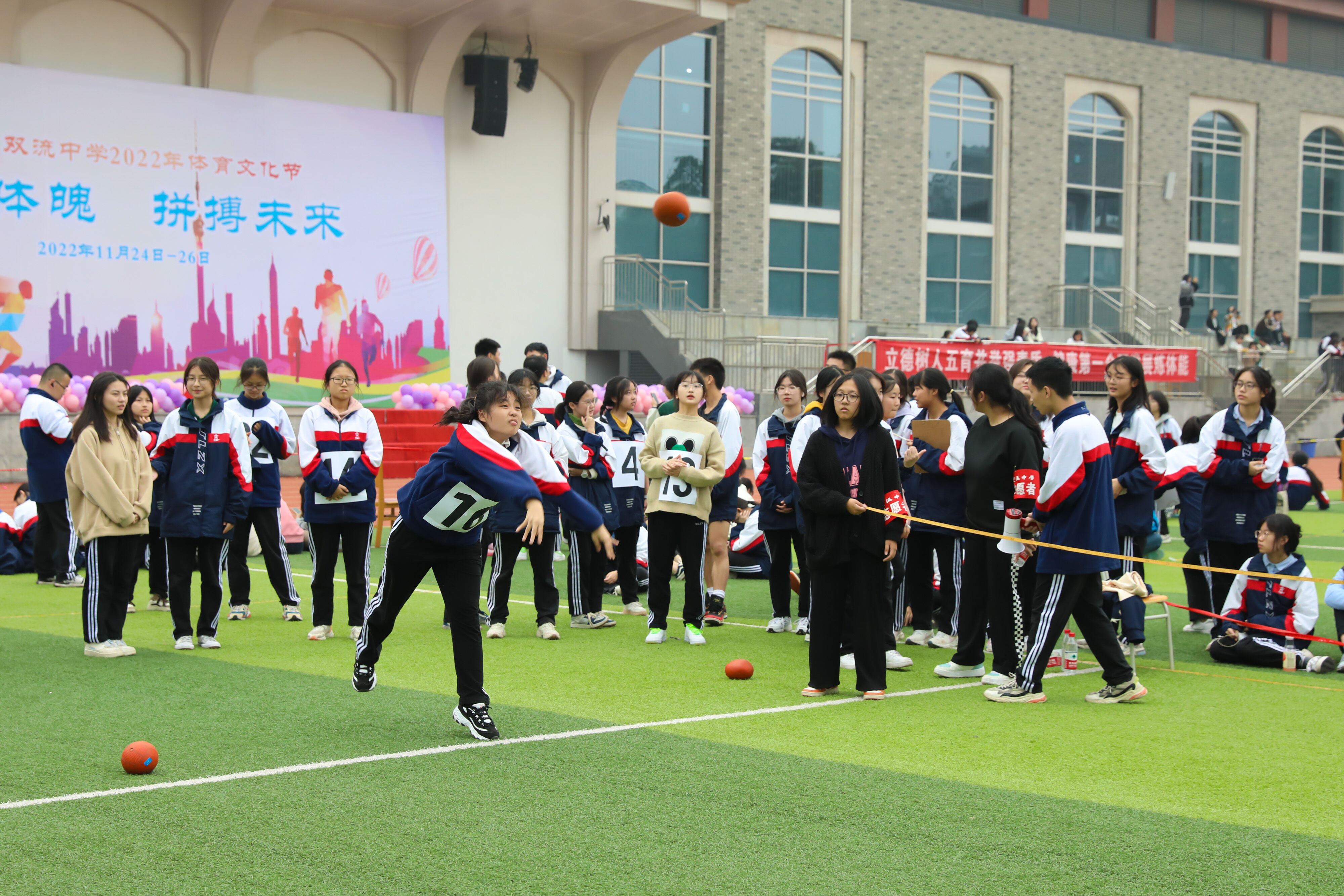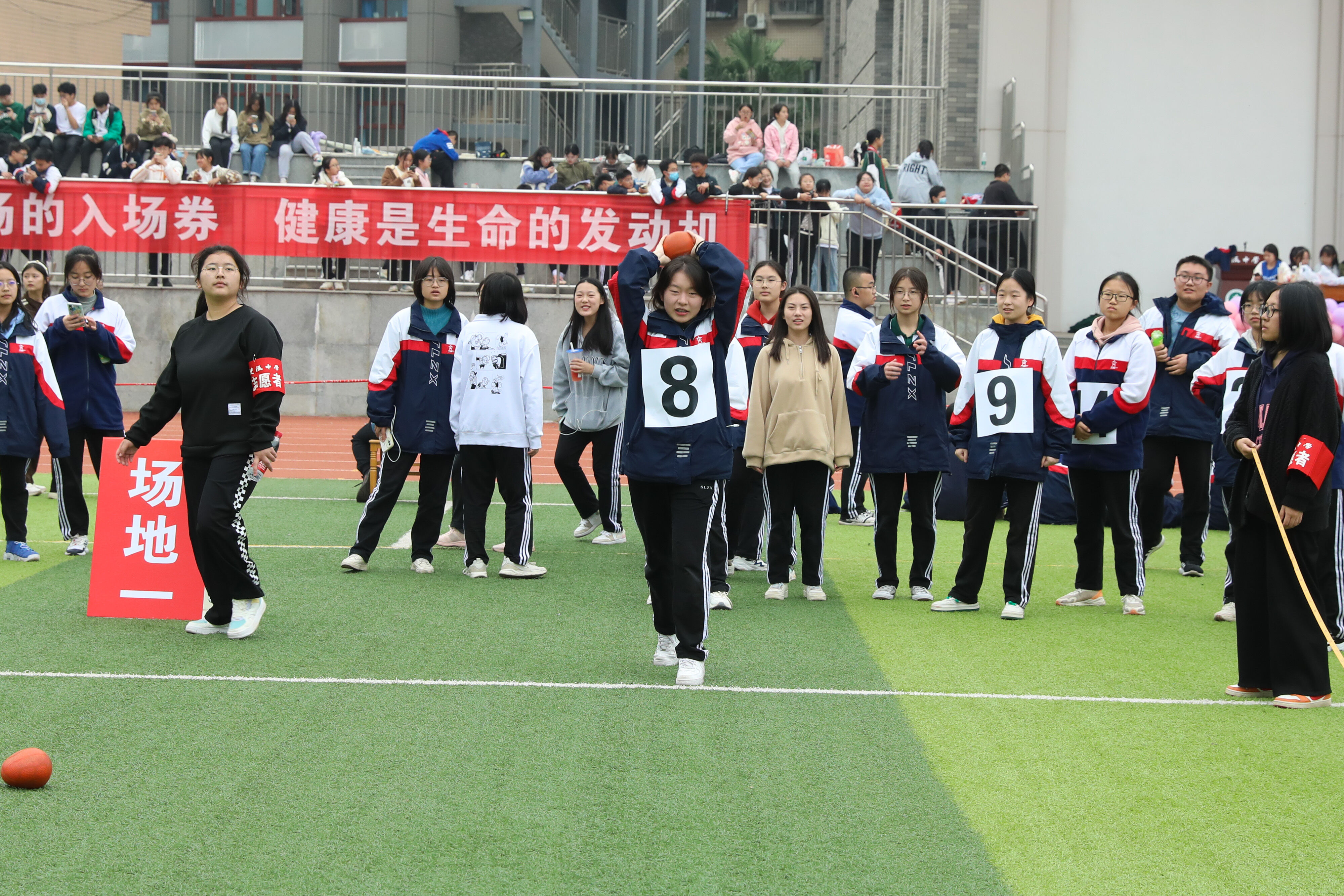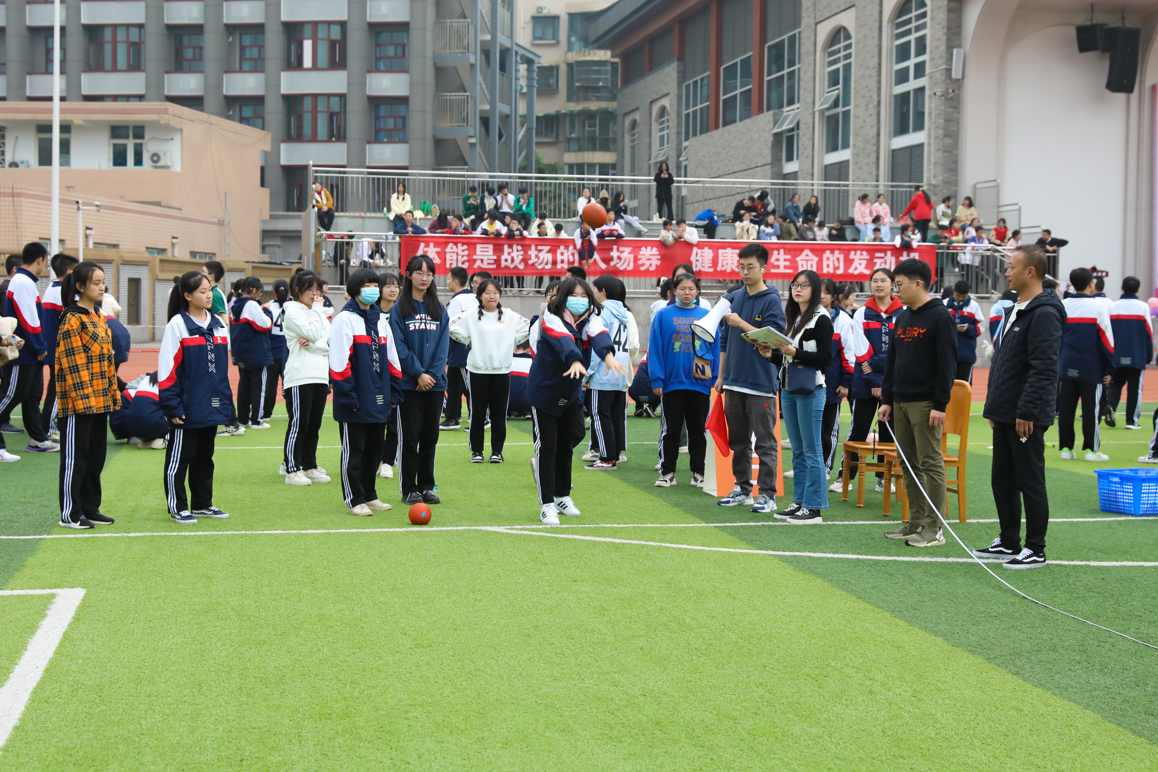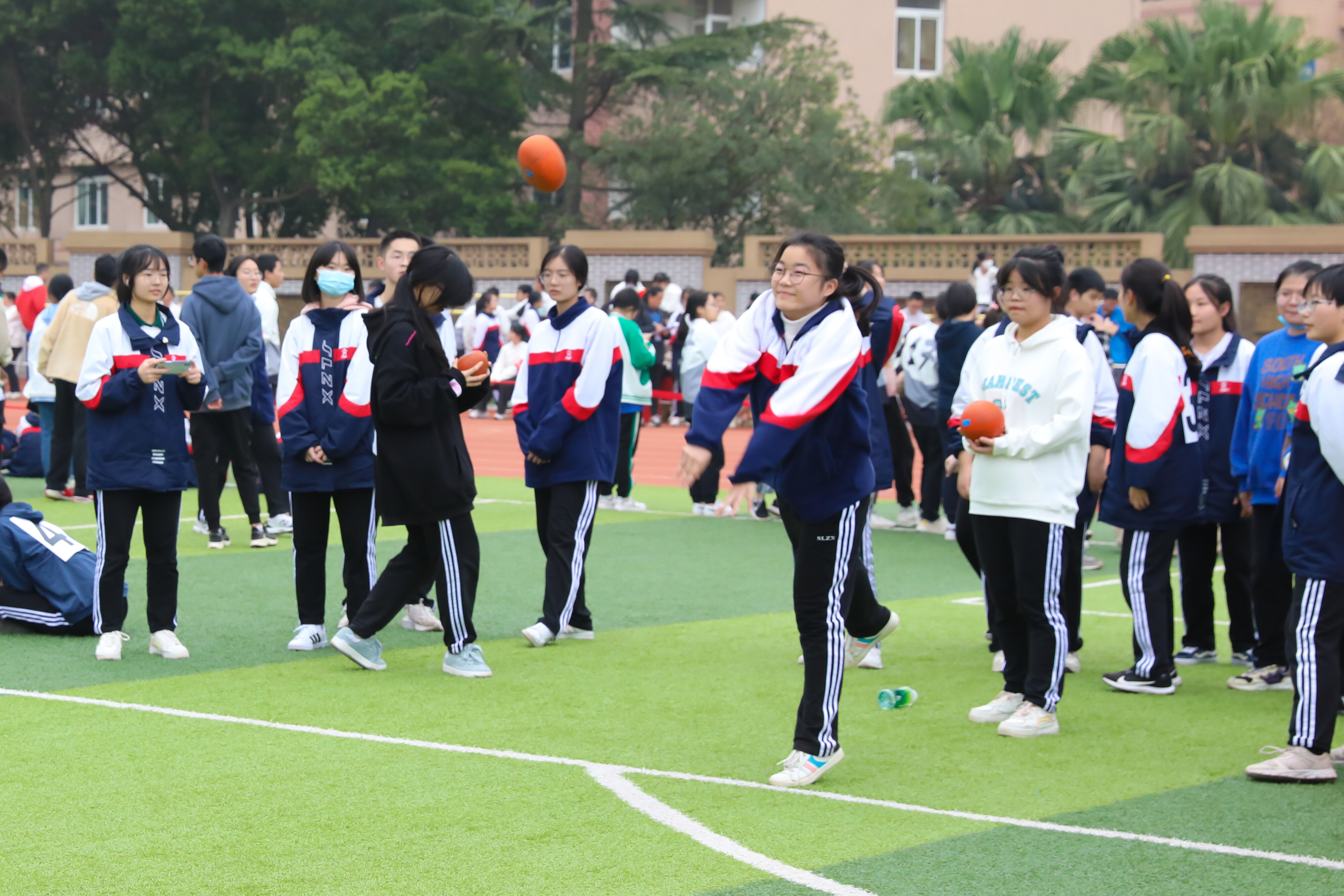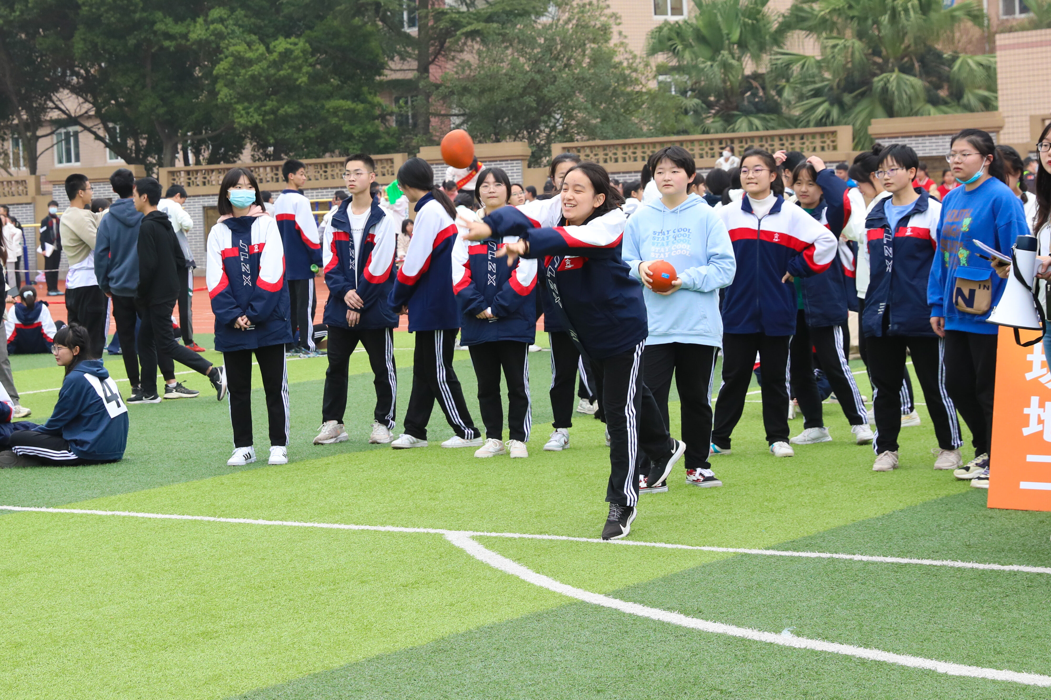 2022年11月25日下午,高二年級實(shí)心球比賽在運(yùn)動(dòng)場舉行。圖為 男子實(shí)心球比賽