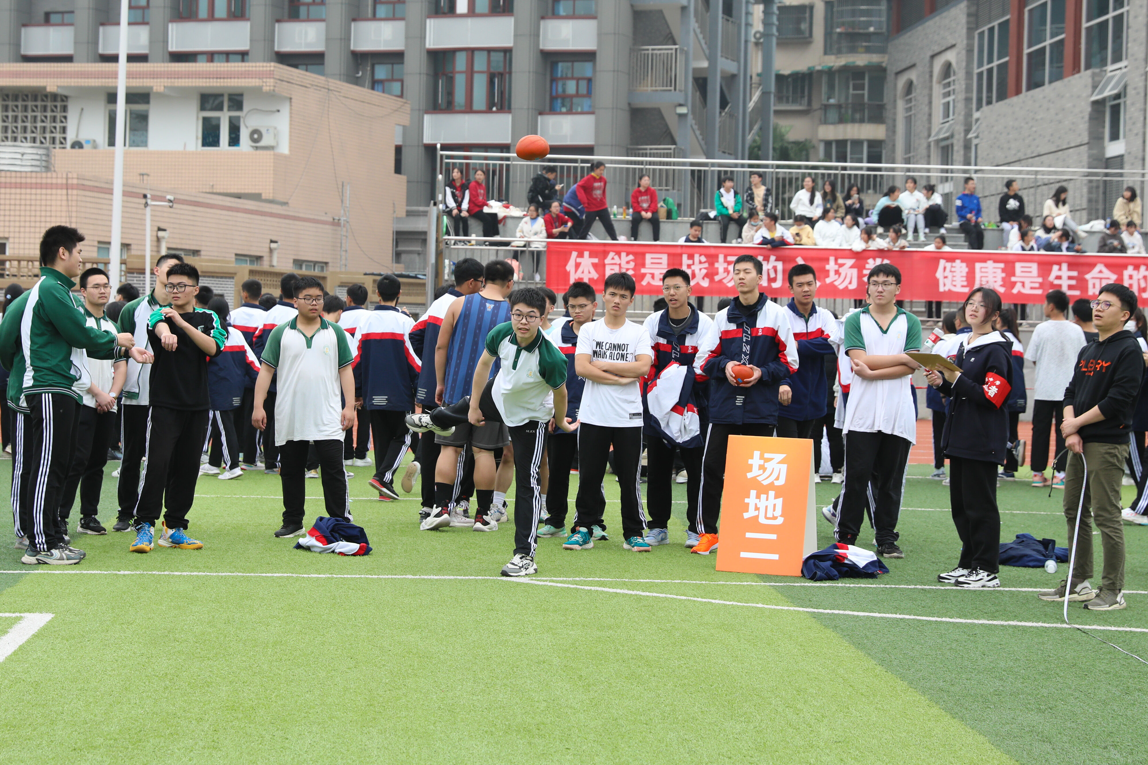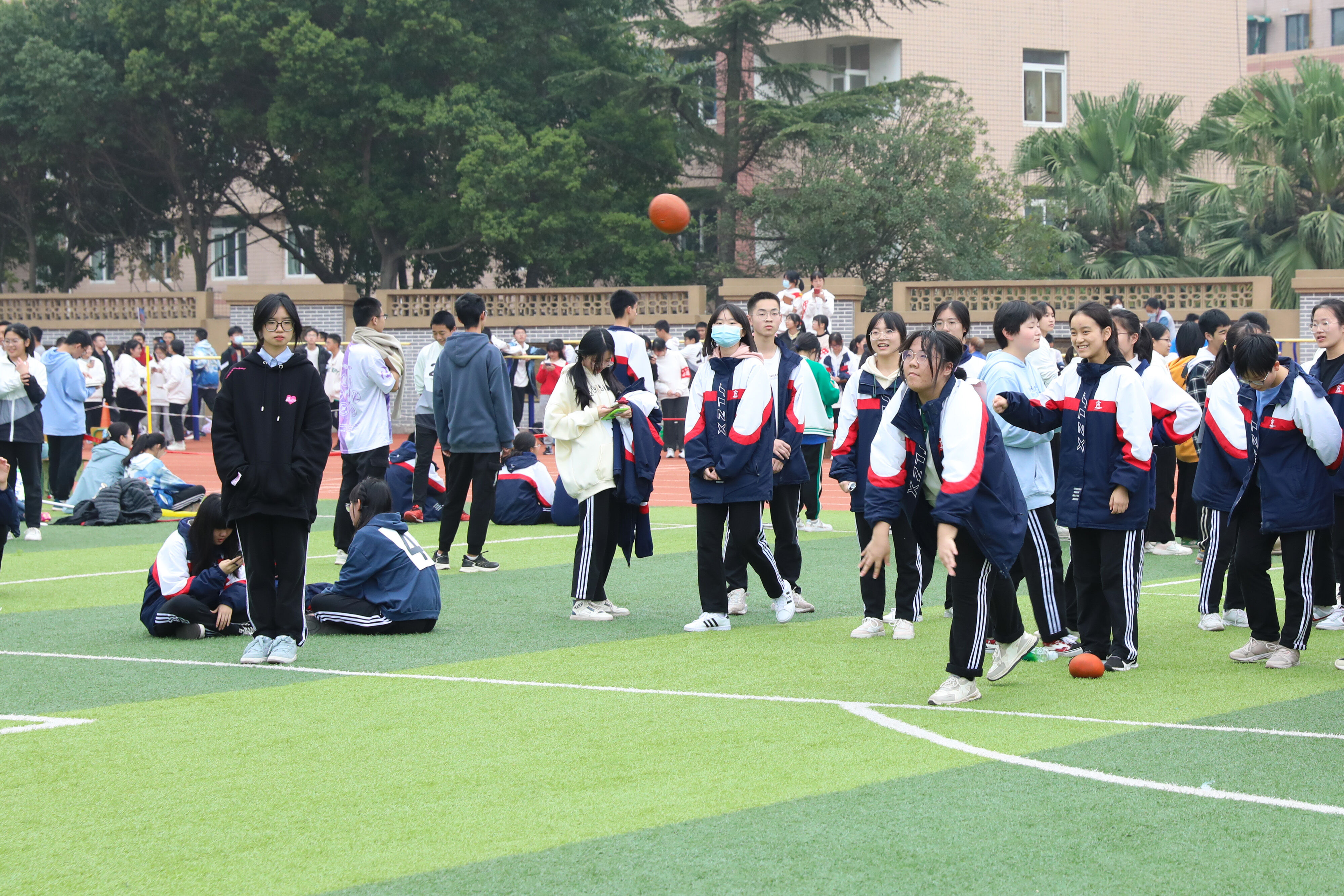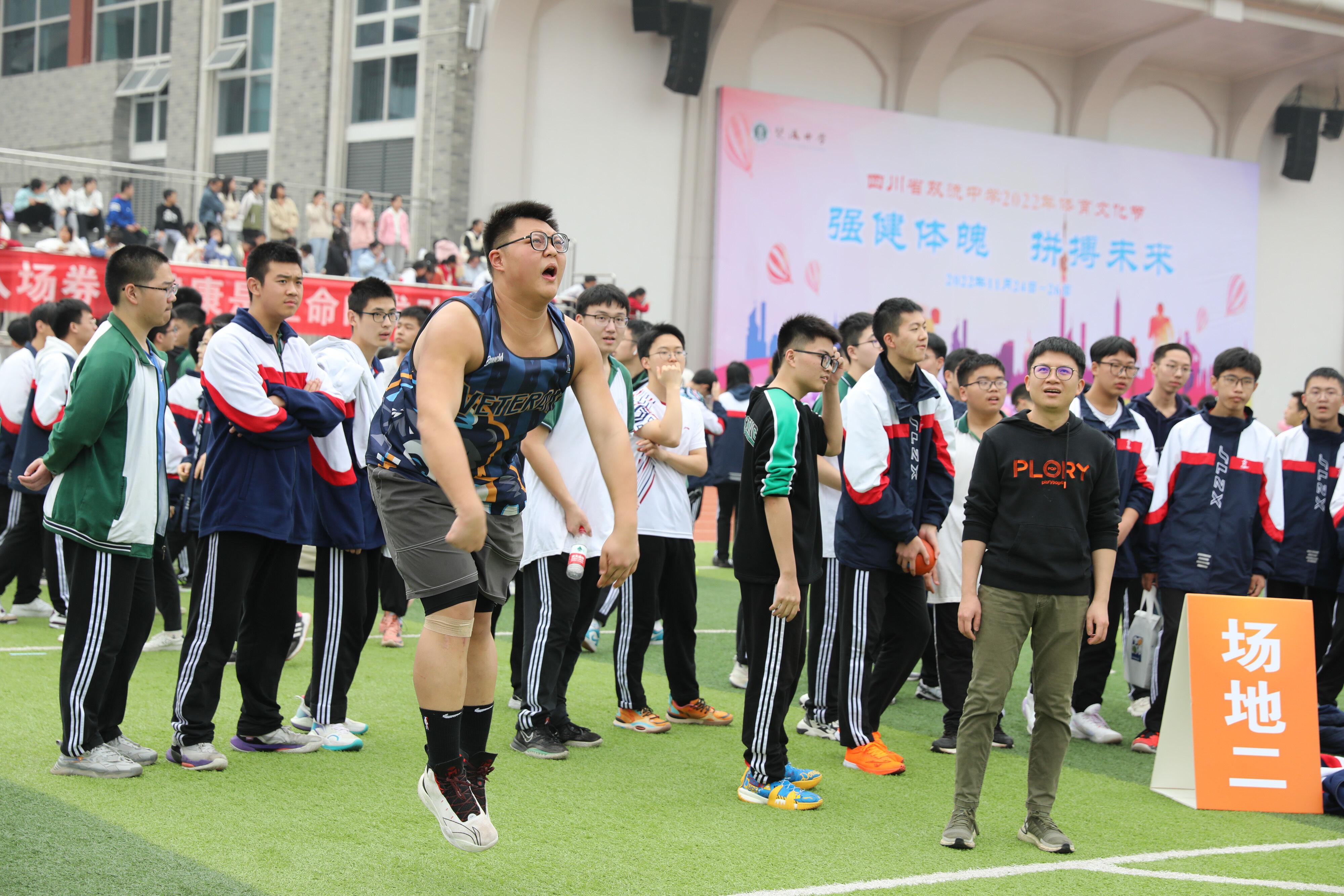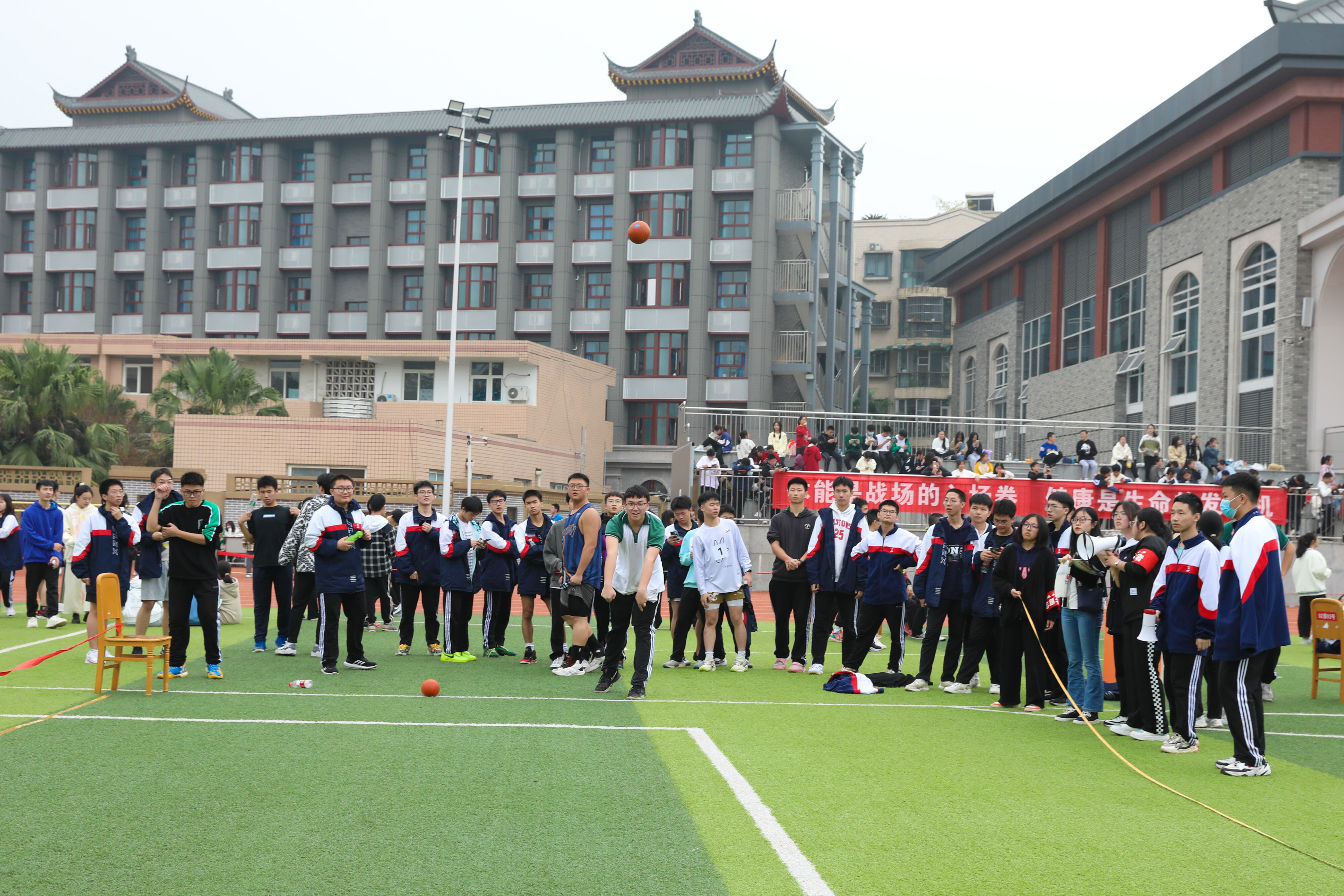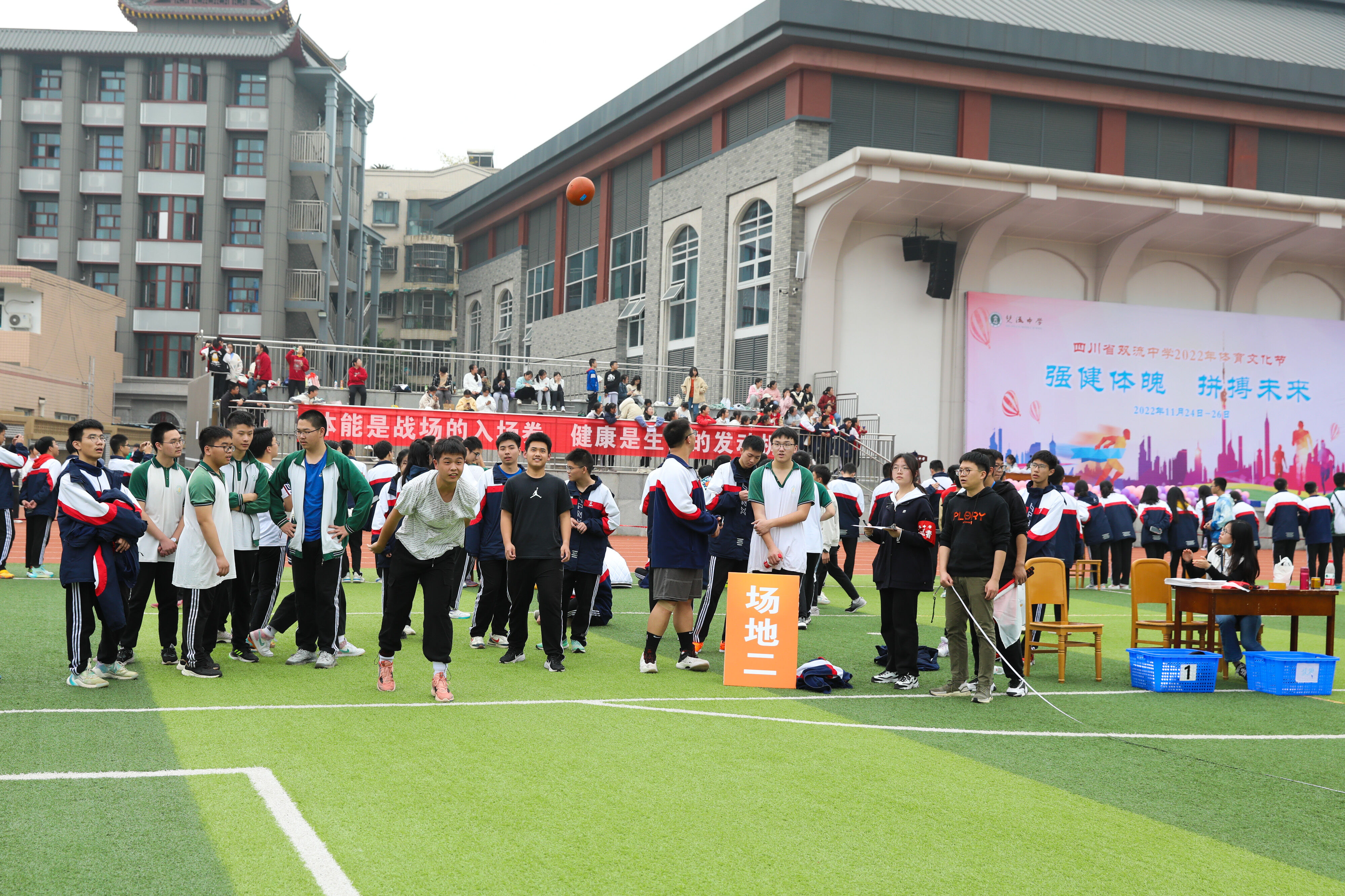 2022年11月25日下午,高二年級實(shí)心球比賽在運(yùn)動(dòng)場舉行。圖為 男子實(shí)心球比賽