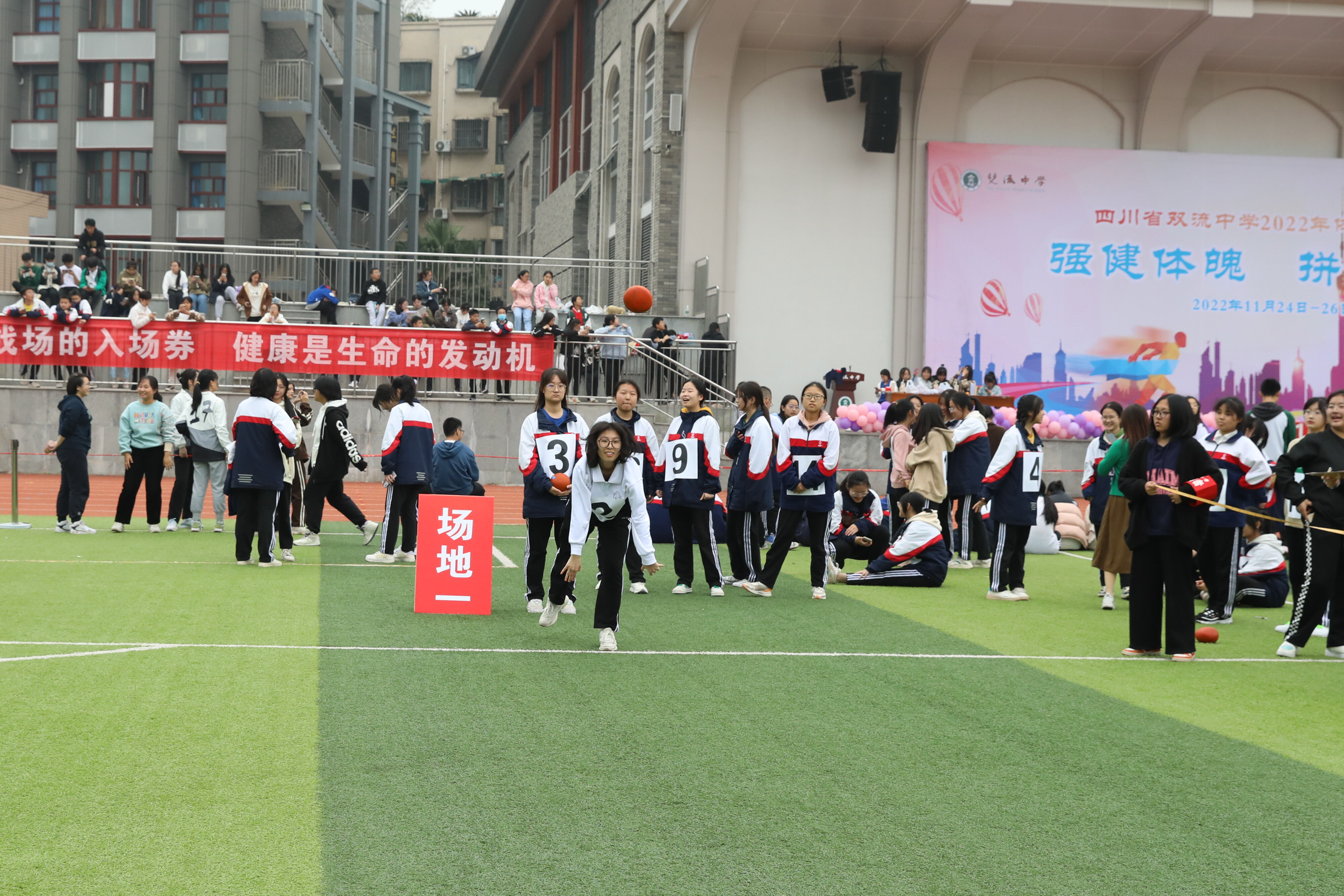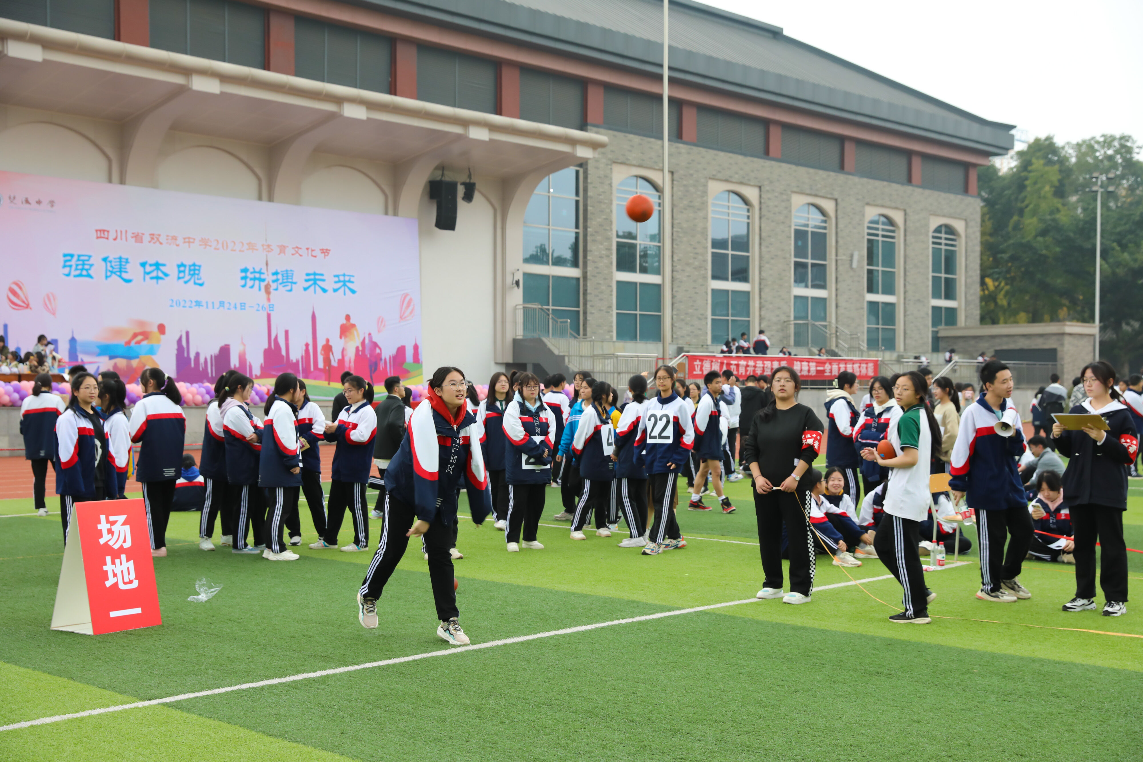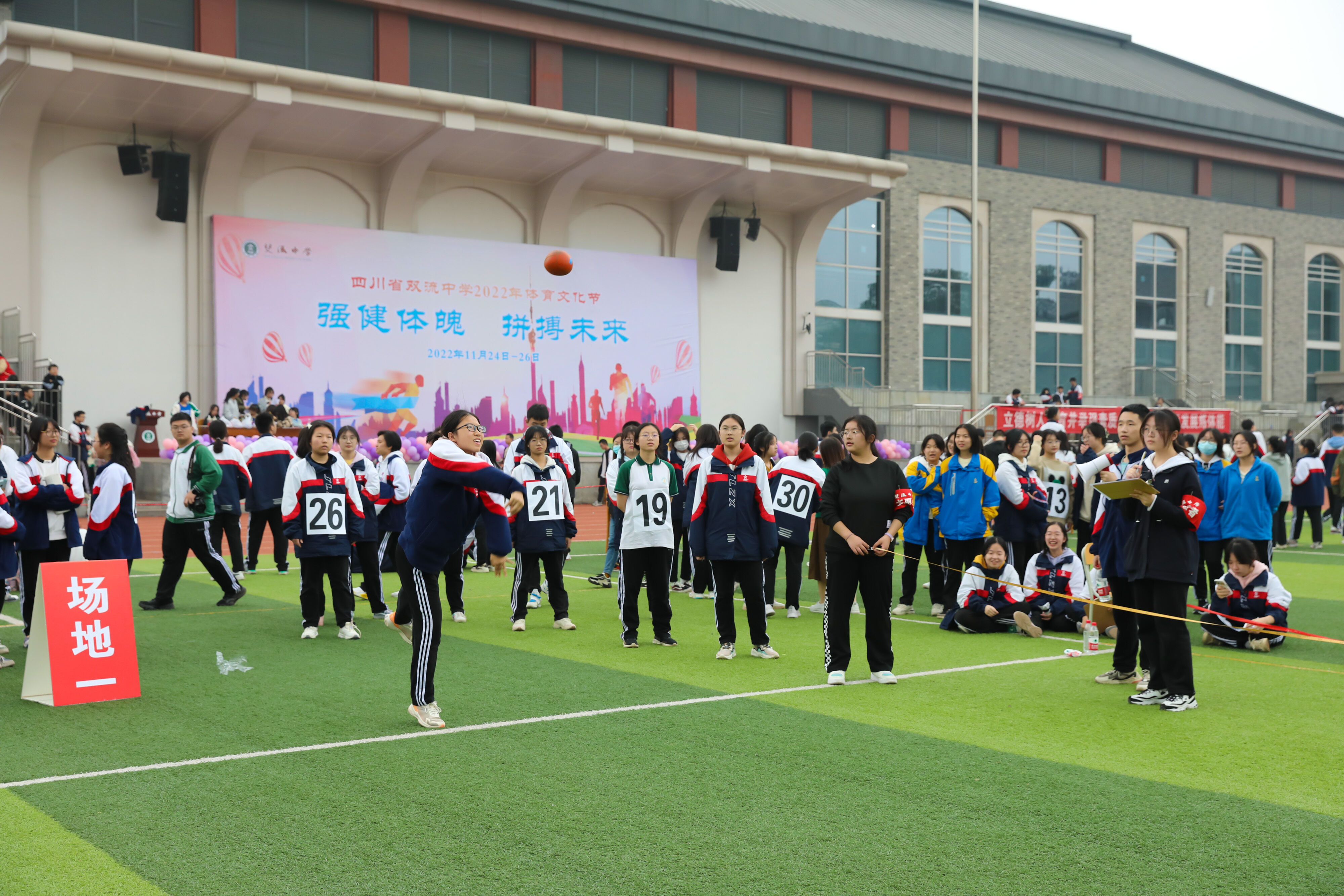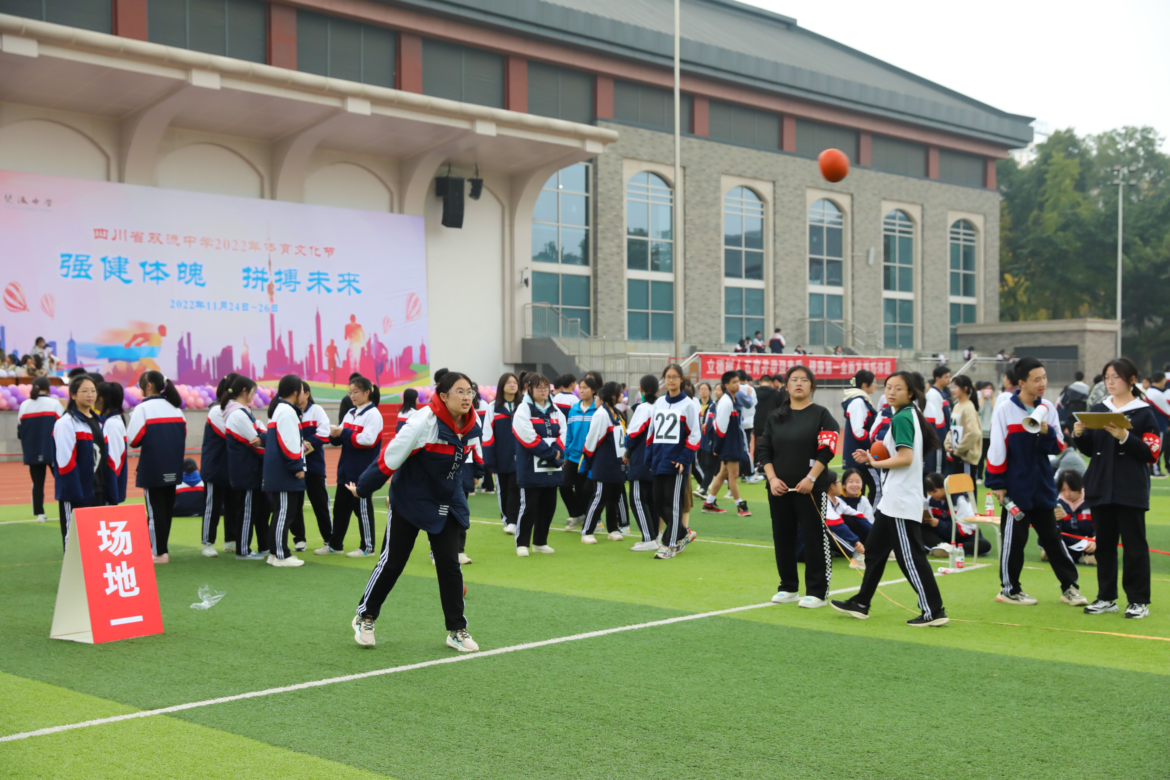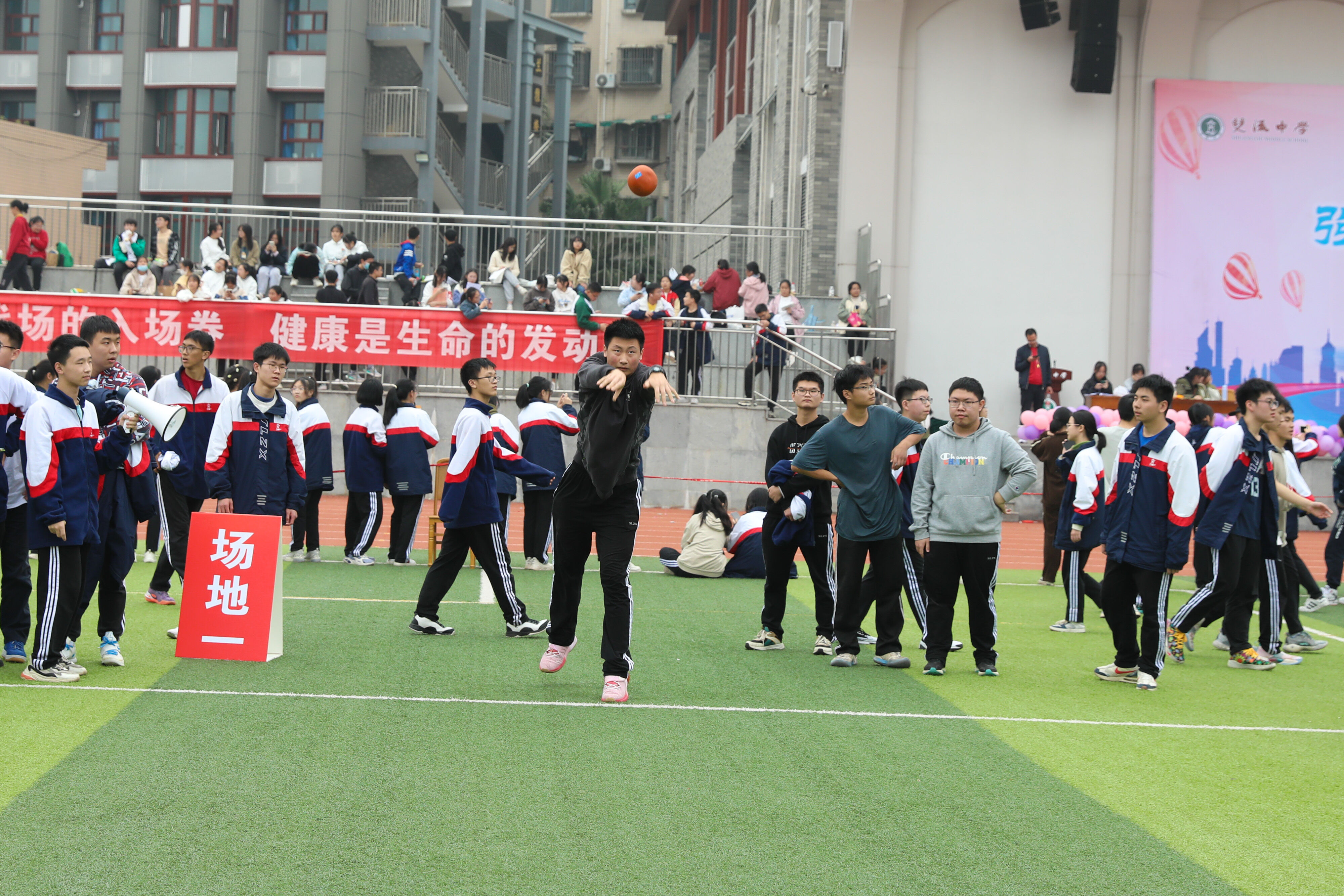 2022年11月25日下午,高二年級實(shí)心球比賽在運(yùn)動(dòng)場舉行。圖為 男子實(shí)心球比賽