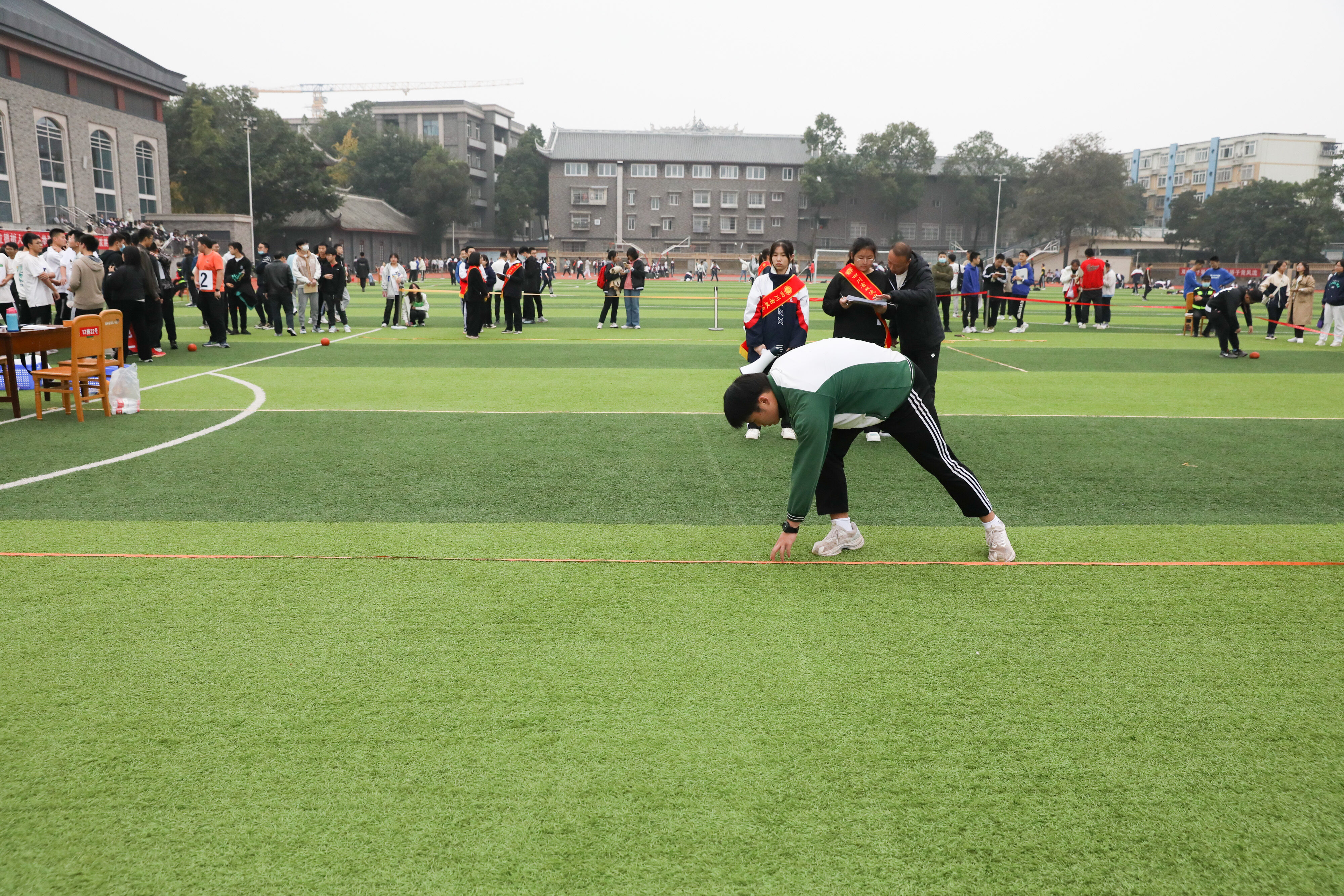2022年雙流中學(xué)體育文化藝術(shù)節(jié),高一實心球比賽項目于11月26日上午舉行。圖為 高一男子實心球比賽中,志愿者認(rèn)真測量選手成績。