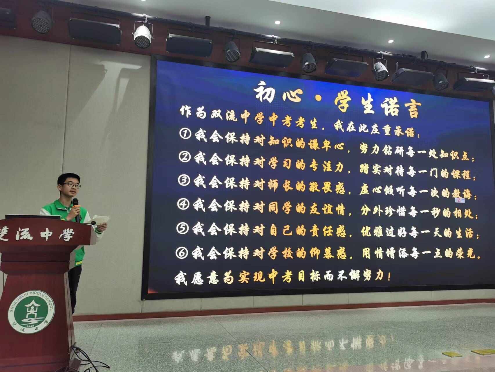 2023年4月14日上午十點(diǎn),雙流中學(xué)初中部在叢桂廳舉行了初2020級中考誓師大會。雙流中學(xué)黨委委員、工會主席田明建,德育安全處副主任夏小平和研培處副主任王亞莉出席了本次會議。