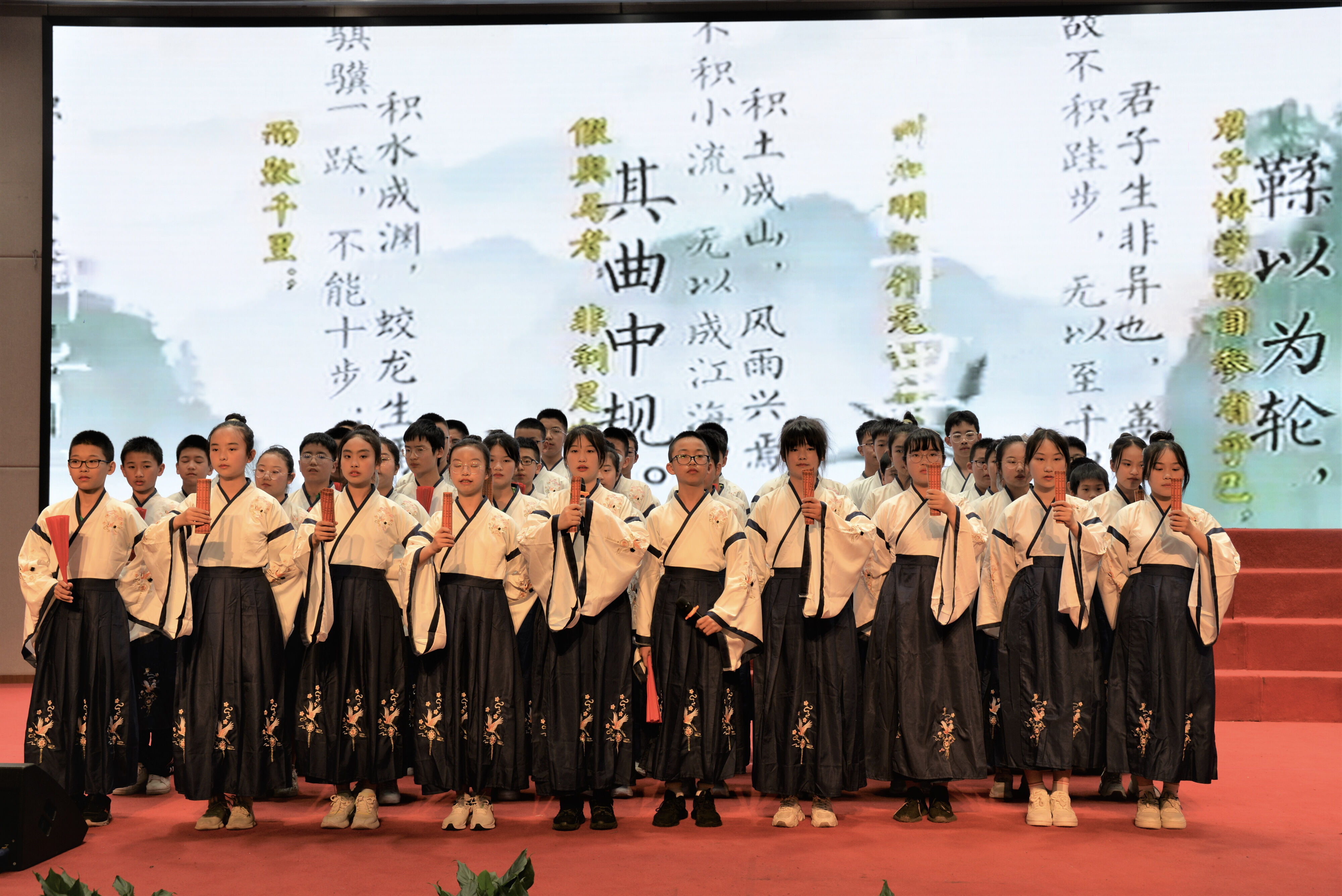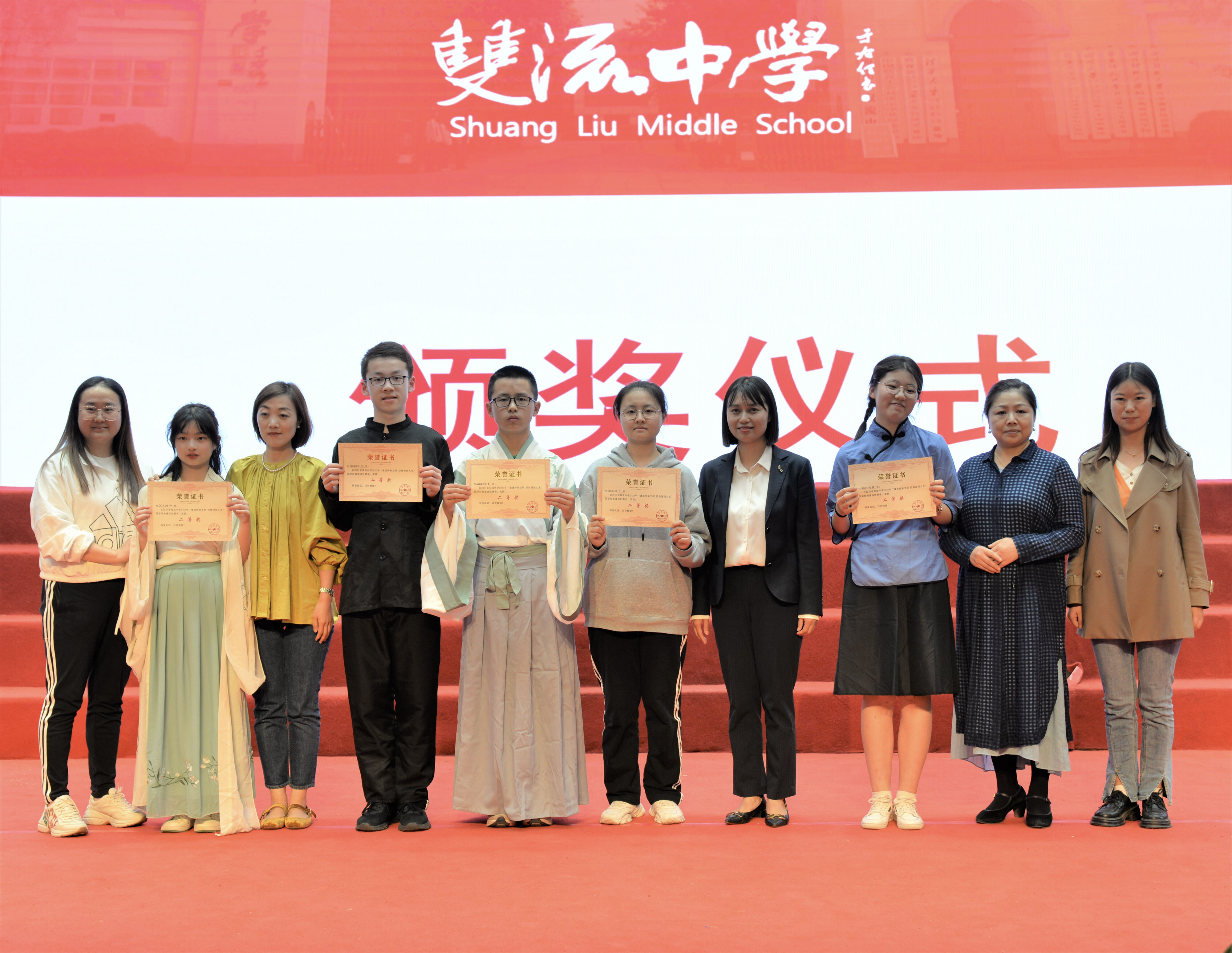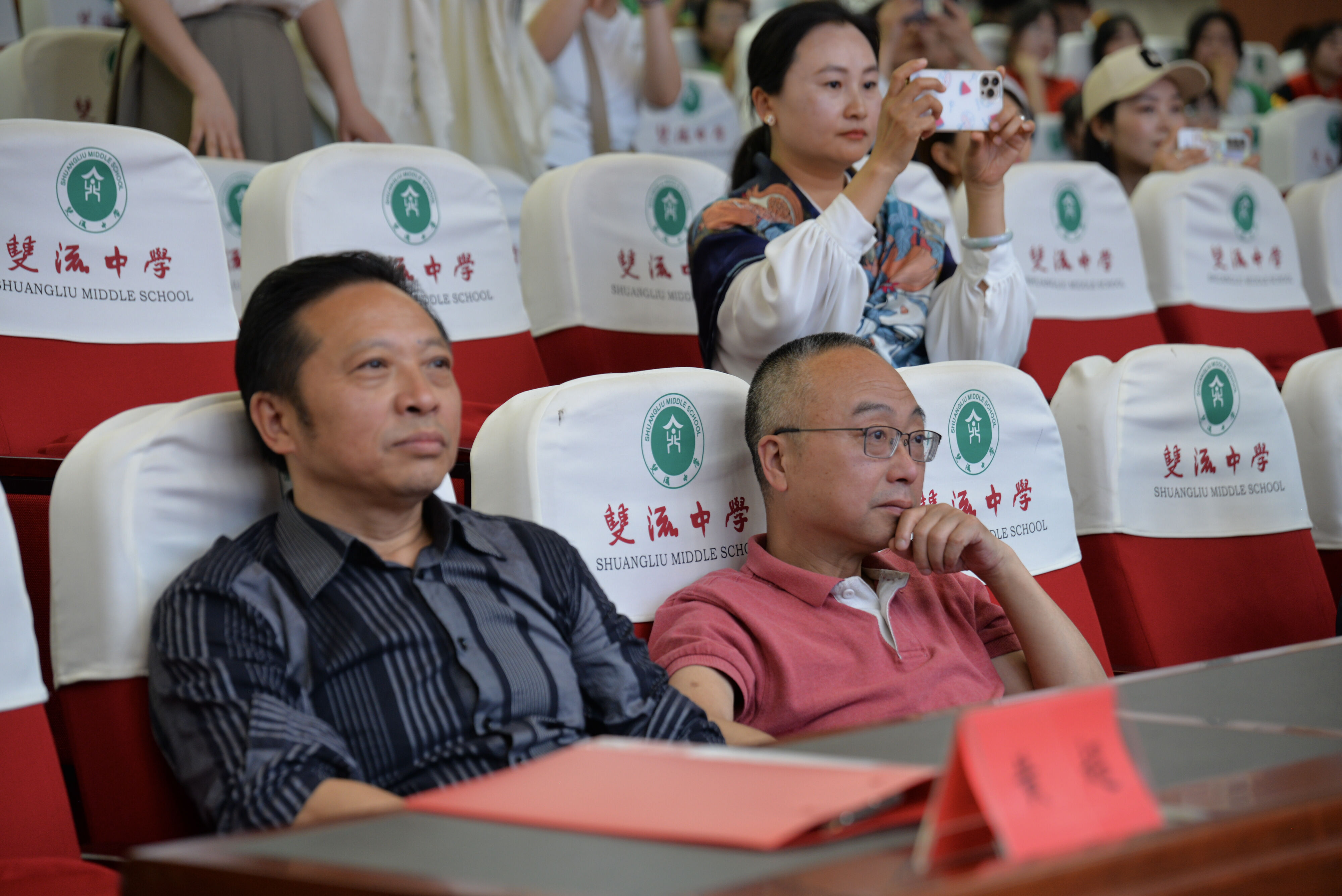 2023年4月27日晚,雙流中學(xué)初中部七年級(jí)在玉蘭廳開展了以“誦讀傳承文明·經(jīng)典浸潤人生”為主題的國學(xué)經(jīng)典朗誦比賽。雙流中學(xué)黨委書記黃超、工會(huì)主席田明建、德育安全處主任郝碧婭、德育安全處副主任夏小平、團(tuán)委副書記白玲及評(píng)委老師出席本次活動(dòng)。(圖為 雙流中學(xué)黨委書記黃超參加活動(dòng))