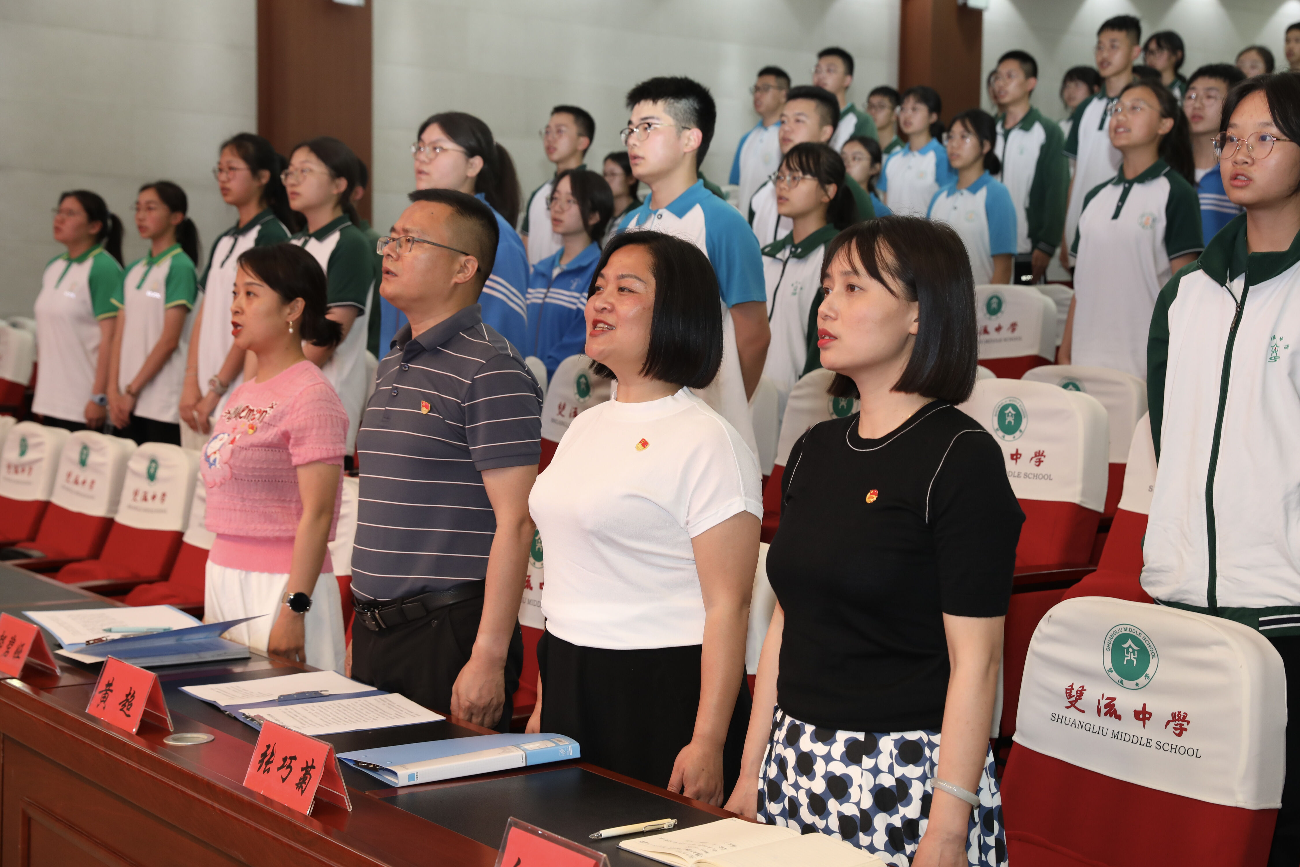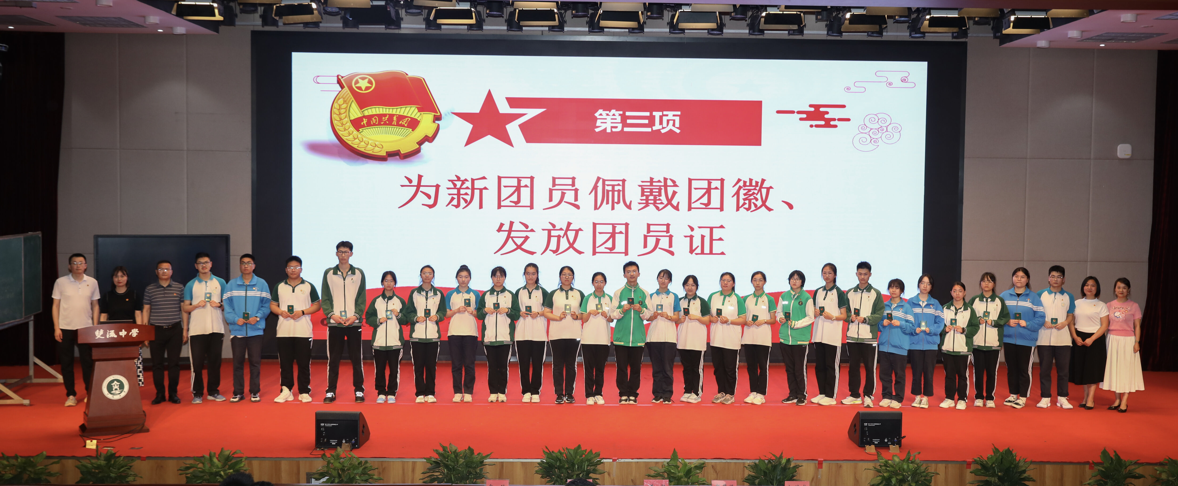 2023年5月4日在玉蘭廳會(huì)議室舉行2022-2023學(xué)年下學(xué)期新團(tuán)員入團(tuán)儀式。校黨委書(shū)記、校長(zhǎng)黃超,校黨委委員、總務(wù)處主任張巧菊,校德育安全處主任郝碧婭,校團(tuán)委書(shū)記白玲出席儀式,共同見(jiàn)證雙中又一批優(yōu)秀青年的成長(zhǎng)和進(jìn)步。(圖為 校團(tuán)委胡峻聞老師主持儀式)