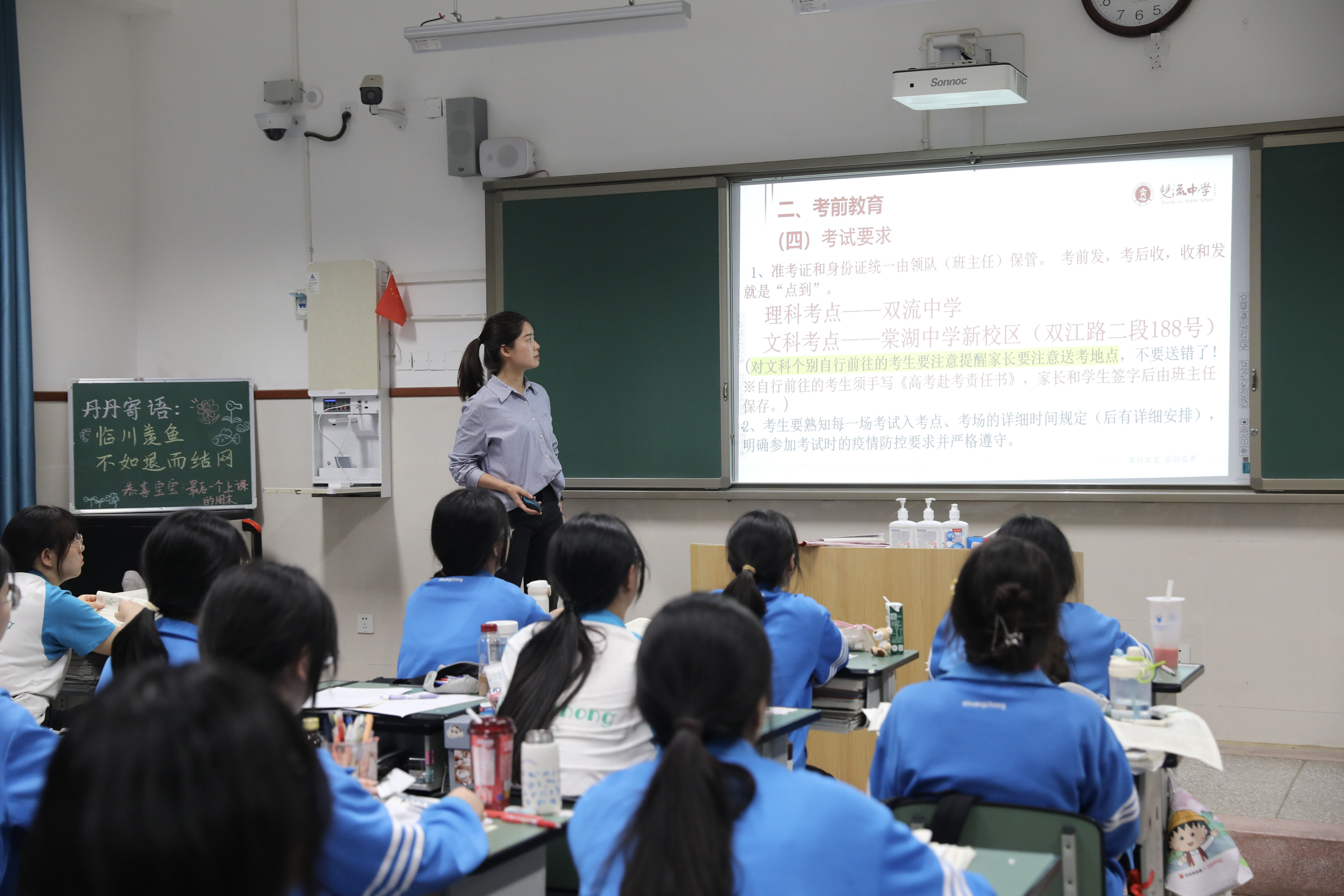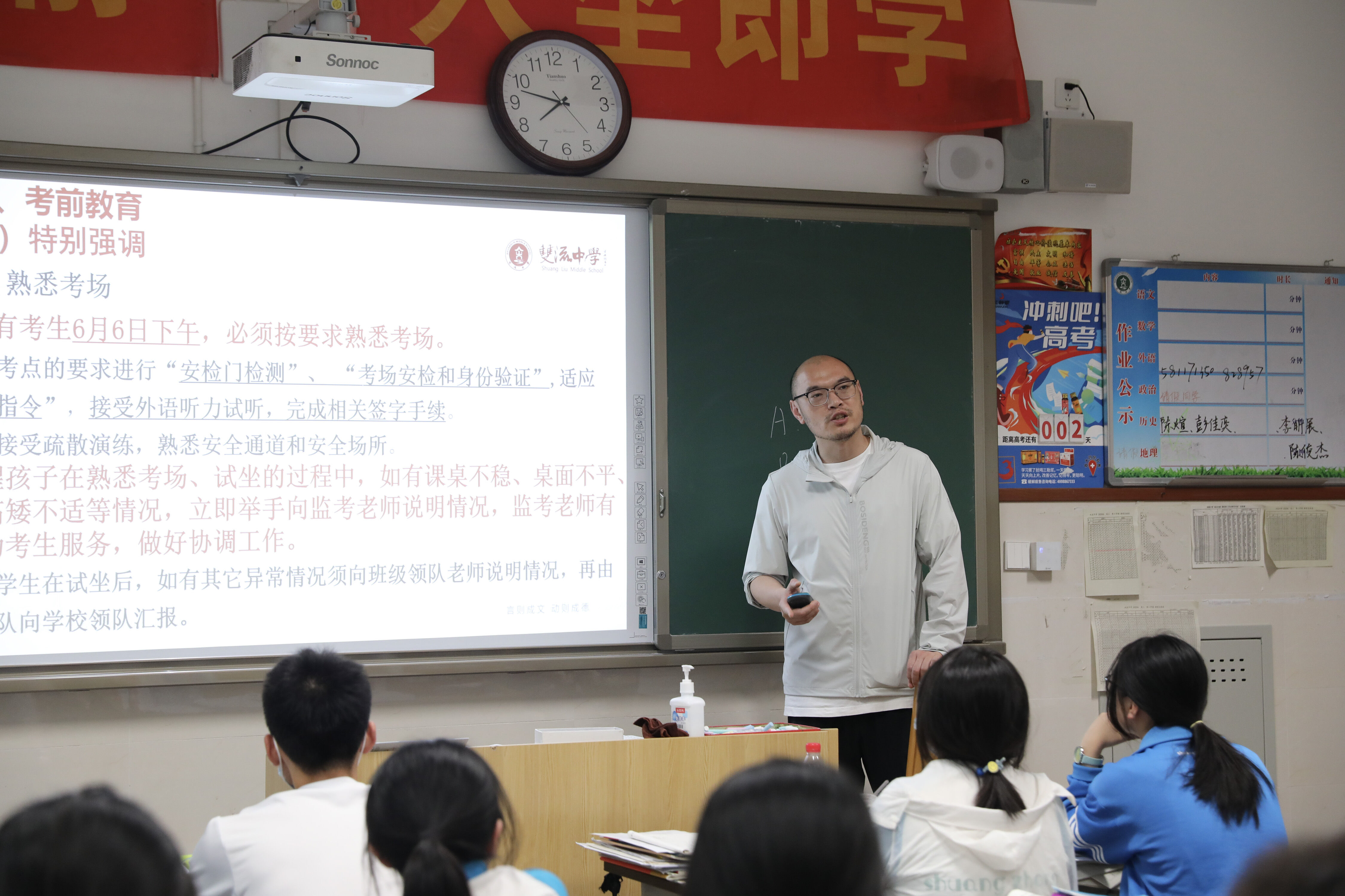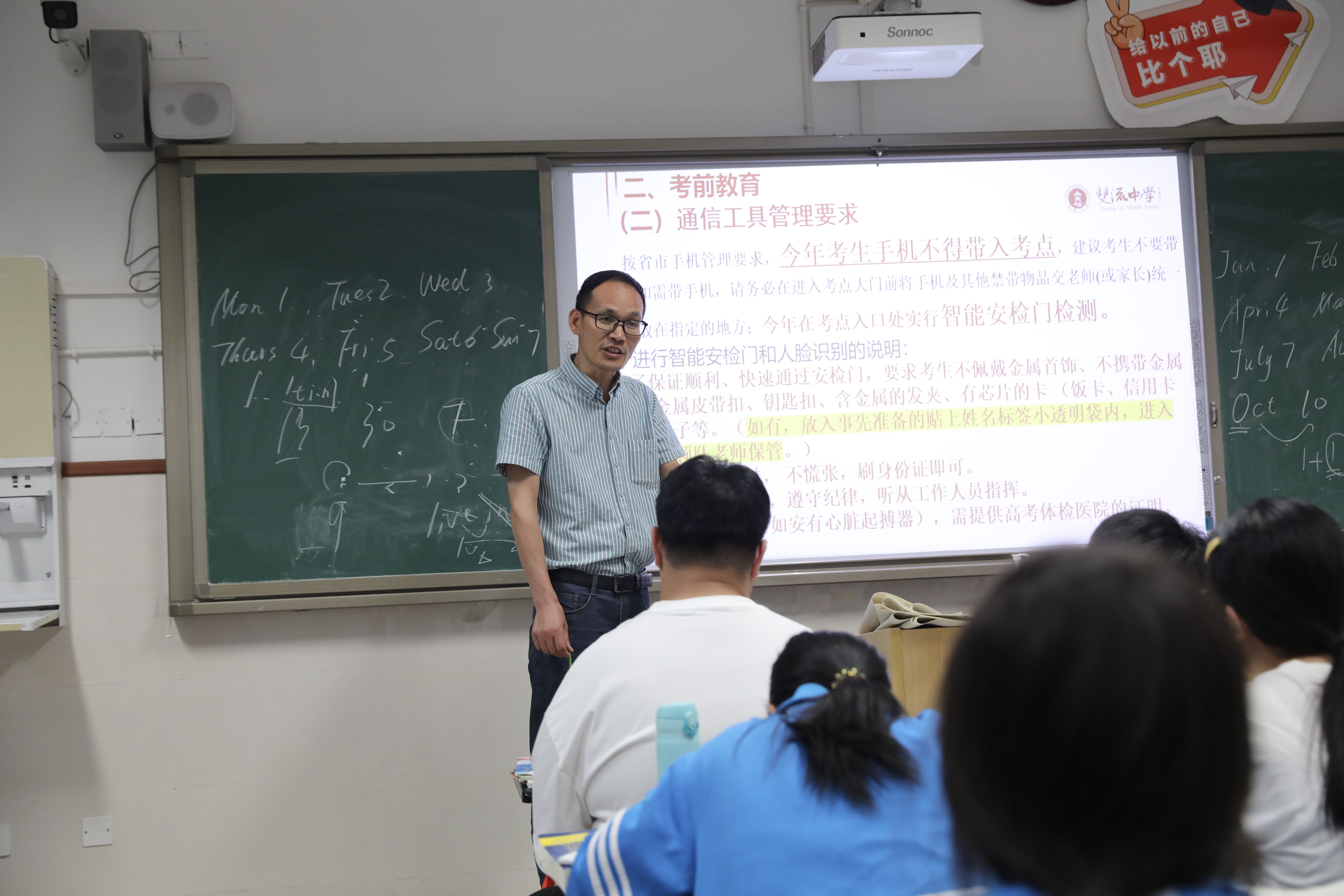 高三最后一個(gè)晚自習(xí),班主任陳老師進(jìn)行考前指導(dǎo)