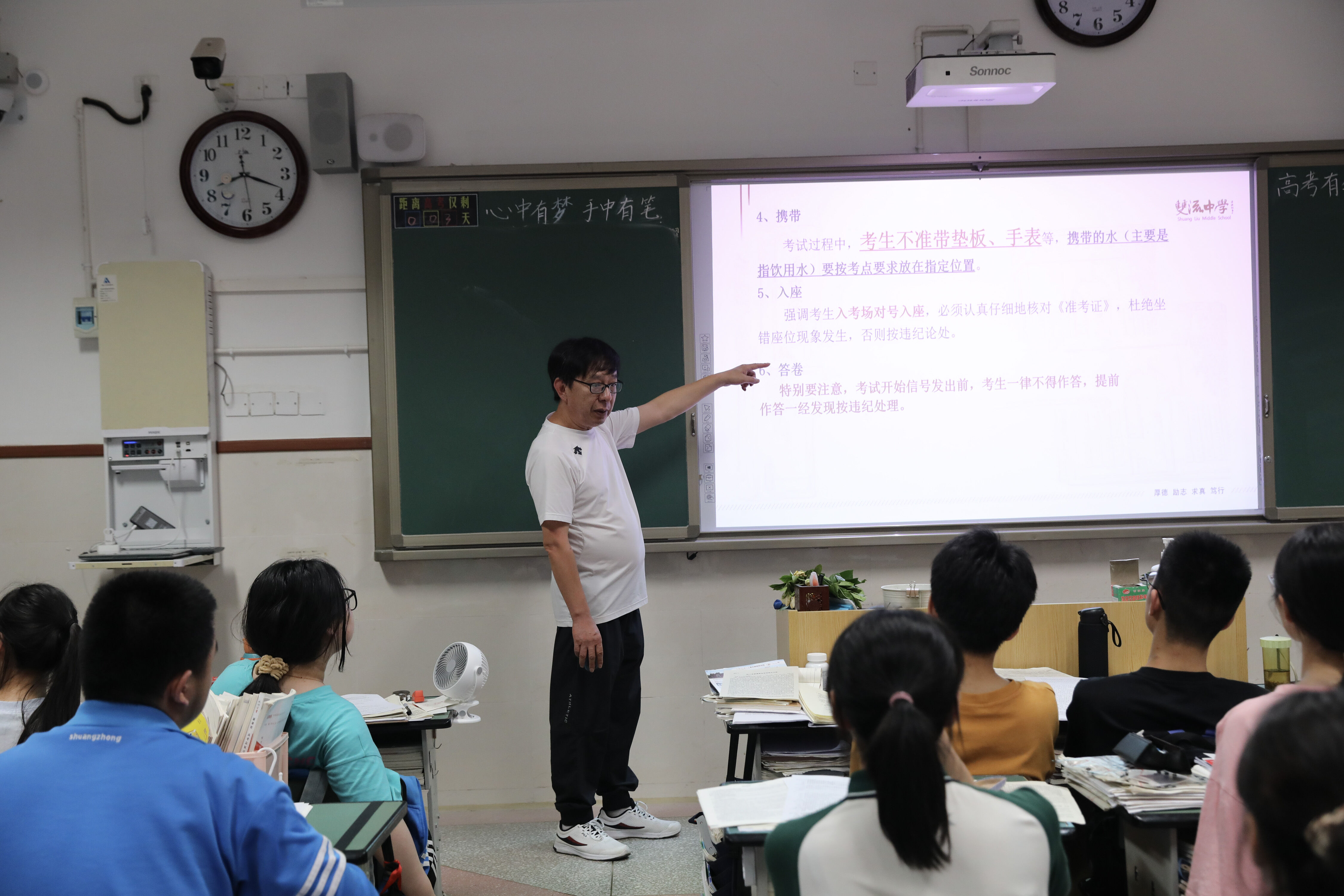 高三最后一個(gè)晚自習(xí),班主任余老師進(jìn)行考前指導(dǎo)