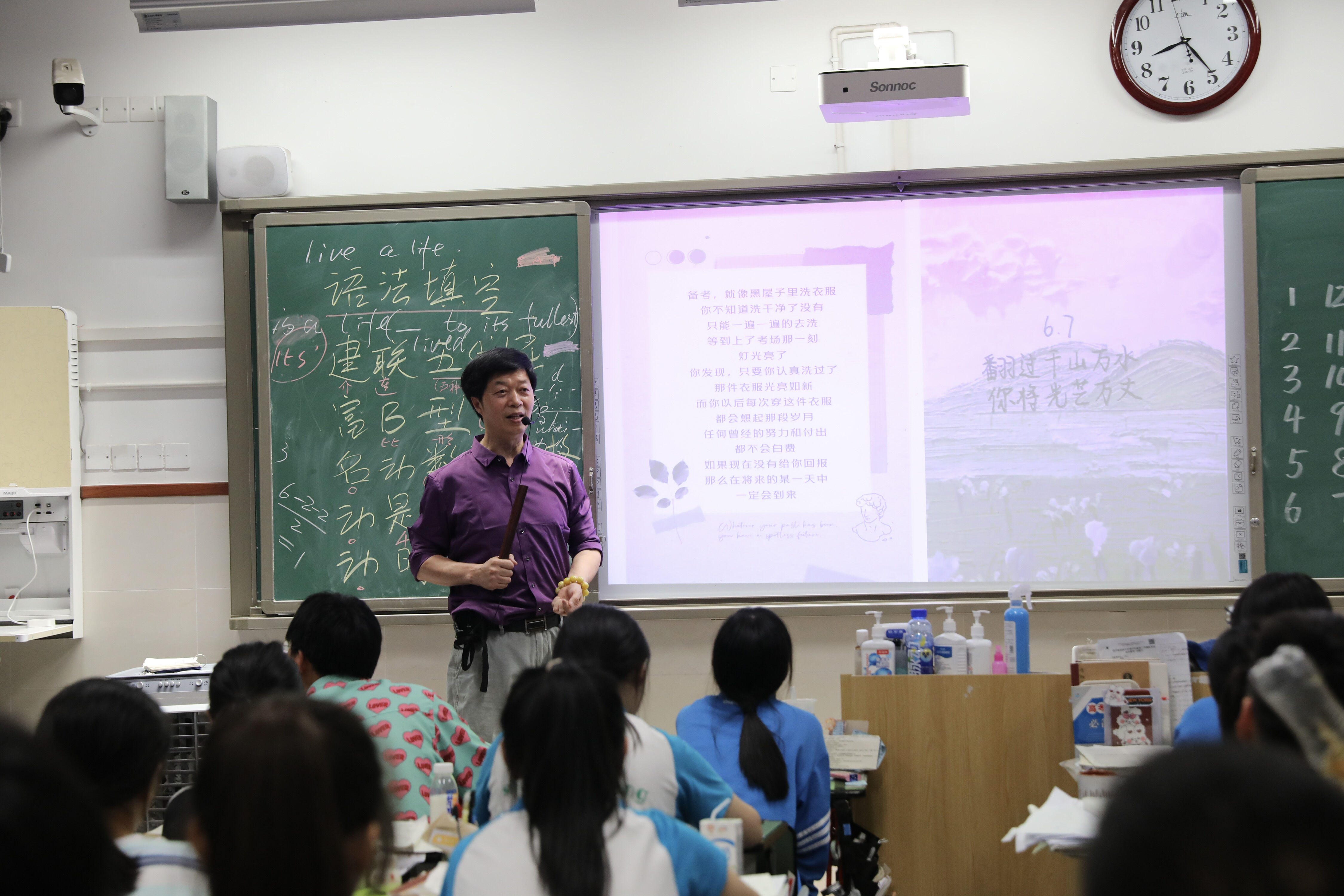 高三最后一個(gè)晚自習(xí),語文馬老師和學(xué)生一起
