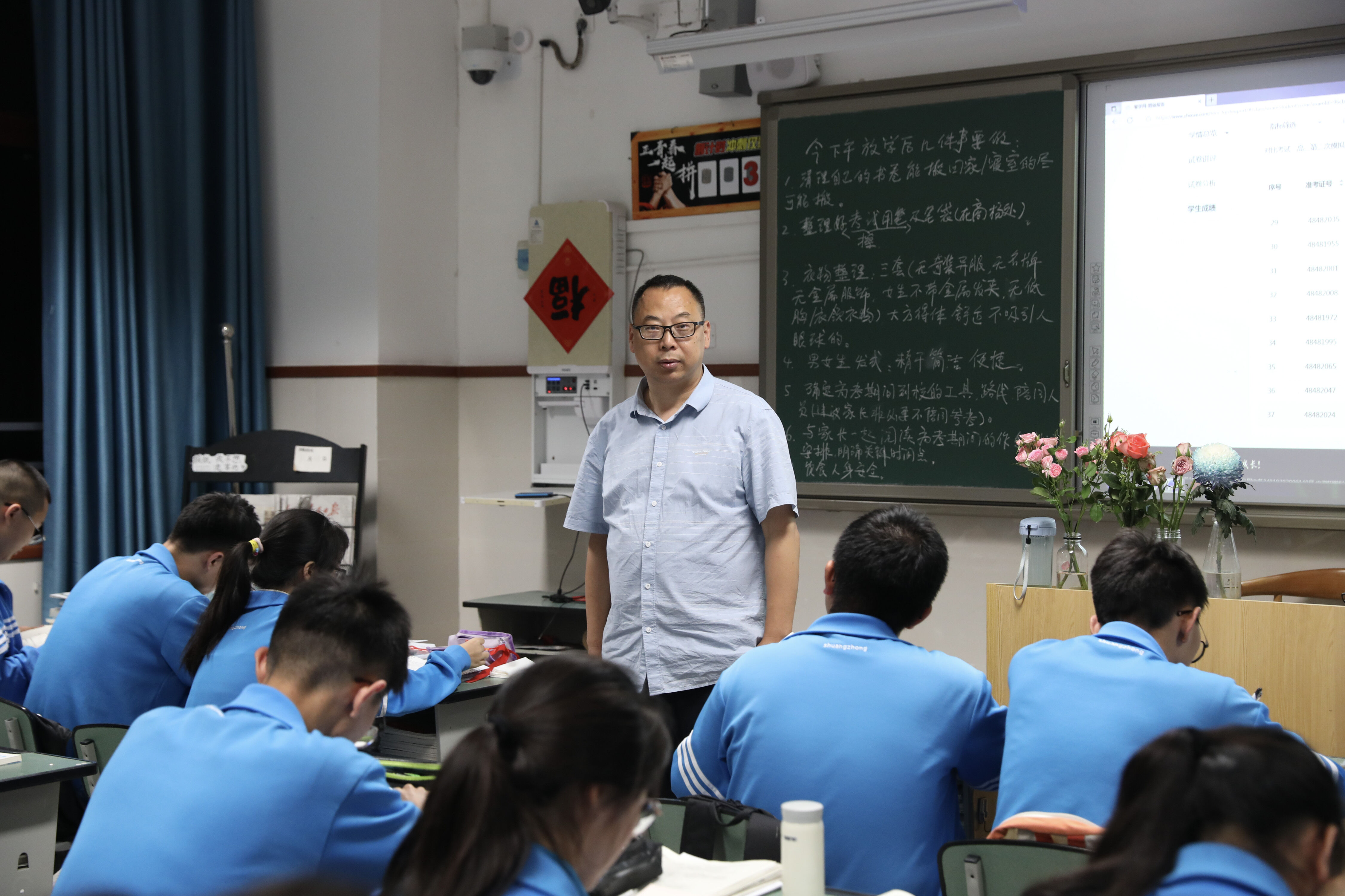 高三最后一個(gè)晚自習(xí),班主任徐老師進(jìn)行考前指導(dǎo)